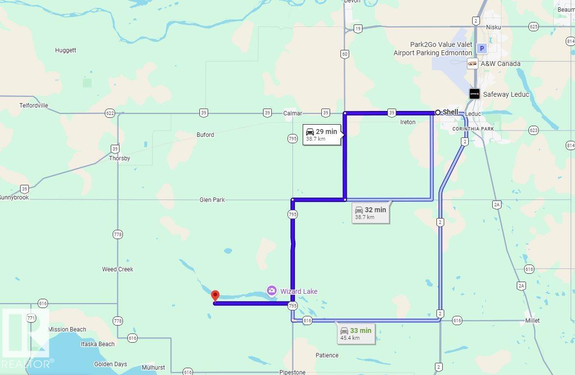 PERFECT RETREAT from city life! 12.6 Private Acres SURROUNDED BY FOREST with a gated entrance. Located on a QUIET ROAD NEXT TO WIZARD LAKE, less than 40 minutes from Edmonton. Over 4000sq.ft. SHOP is ready for your projects and sectioned into multiple different spaces. 24x48 with Hoist, FULL BATHROOM and heated with furnace. 32x56 with DUAL RADIANT TUBES plus a woodstove & HIGH CEILINGS. 16x48 Cold Storage and 24x16 covered storage that could be closed in. LOTS OF POWER and room to expand. HEAVY DUTY GRAVEL YARD stays clean in wet weather and is well set up for equipment. 528 sq.ft. SEASONAL CABIN WITH SUMMER KITCHEN, private bedroom and wood stove for heat COMES FULLY EQUIPPED and ready to use. Large deck and some nice open spaces are GREAT ALL SUMMER. Small Wood shed adjacent. 16x16 Storage shed for the extra items. HIGH PRODUCING ARTESIAN WATER WELL has endless water. Septic tank and discharge on site. Zoned Country Residential with UPSIDE DEVELOPMENT POTENTIAL. Prime Property is ONE OF A KIND!