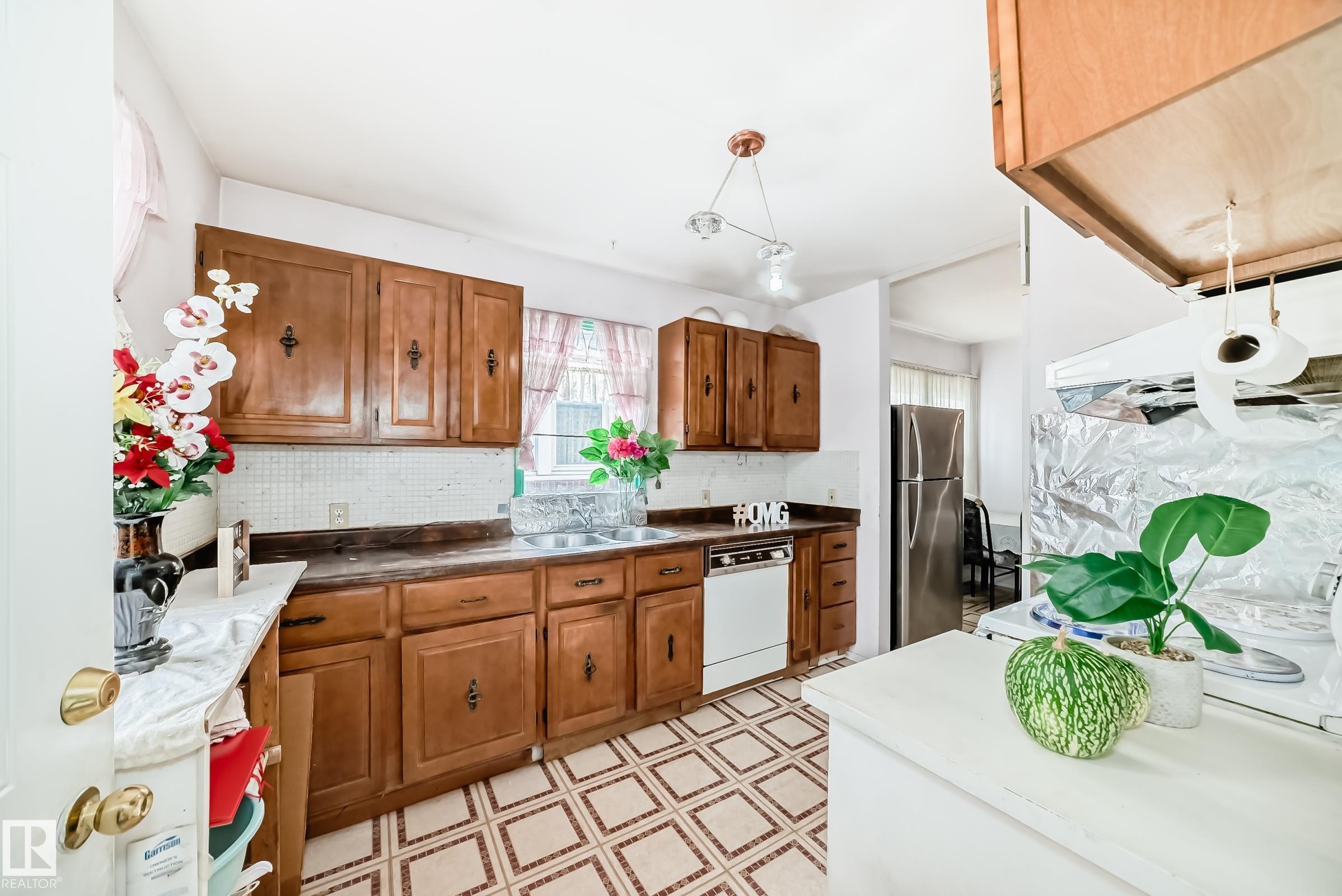 Calling all investors & first-time home buyers! This is your chance to own this affordable single-detached house in a prime-convenient location--just minutes to public transit, schools, shopping, Royal Alexandra Hospital, downtown, 97 Street, Yellowhead Trail & all major amenities. Main floor you'll find a living room with bright window, a kitchen featuring oak-color cabinetry, adjacent to dining area, perfect for everyday living. This level also offers 2 bedrooms and a 4-piece bathroom. A separate back door entrance leads to the fully finished basement--completes with a second kitchen, a family room, 2 additional bedrooms, a 4-piece bathroom, laundry & utility area. Enjoy the fully landscaped & fenced backyard with back alley access, plus a double detached garage. Added value includes newer shingles for peace of mind. Amazing opportunity for investors or first-time buyers looking to build equity! Quick possession available. Don't miss out--own this home today!