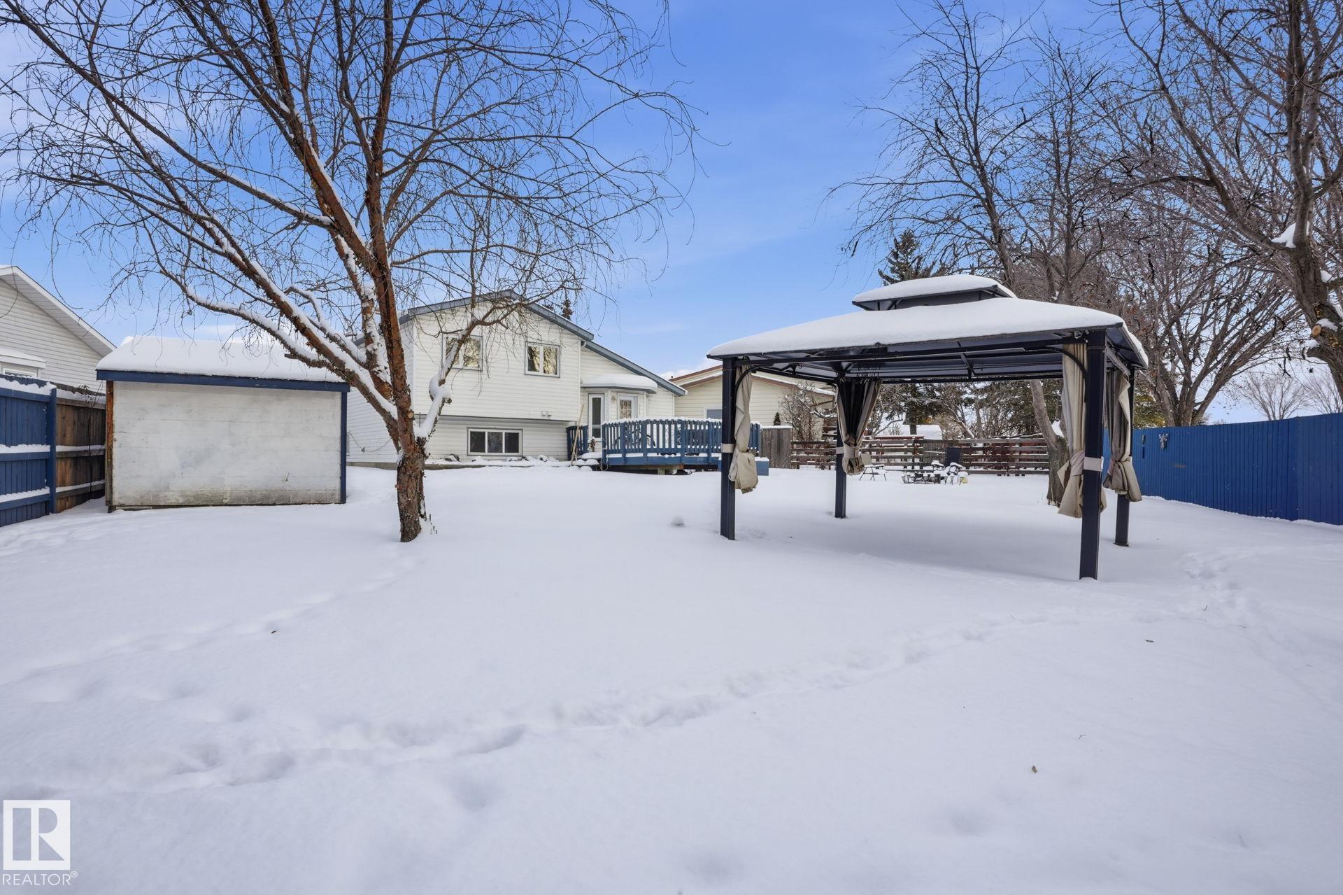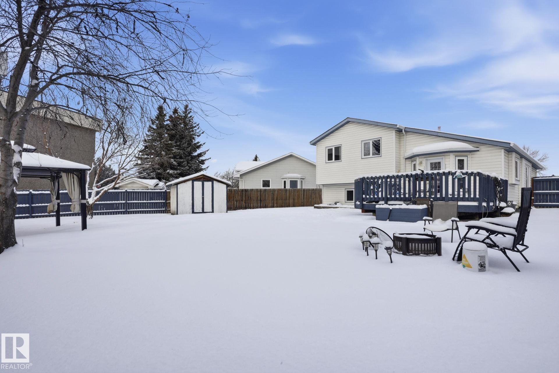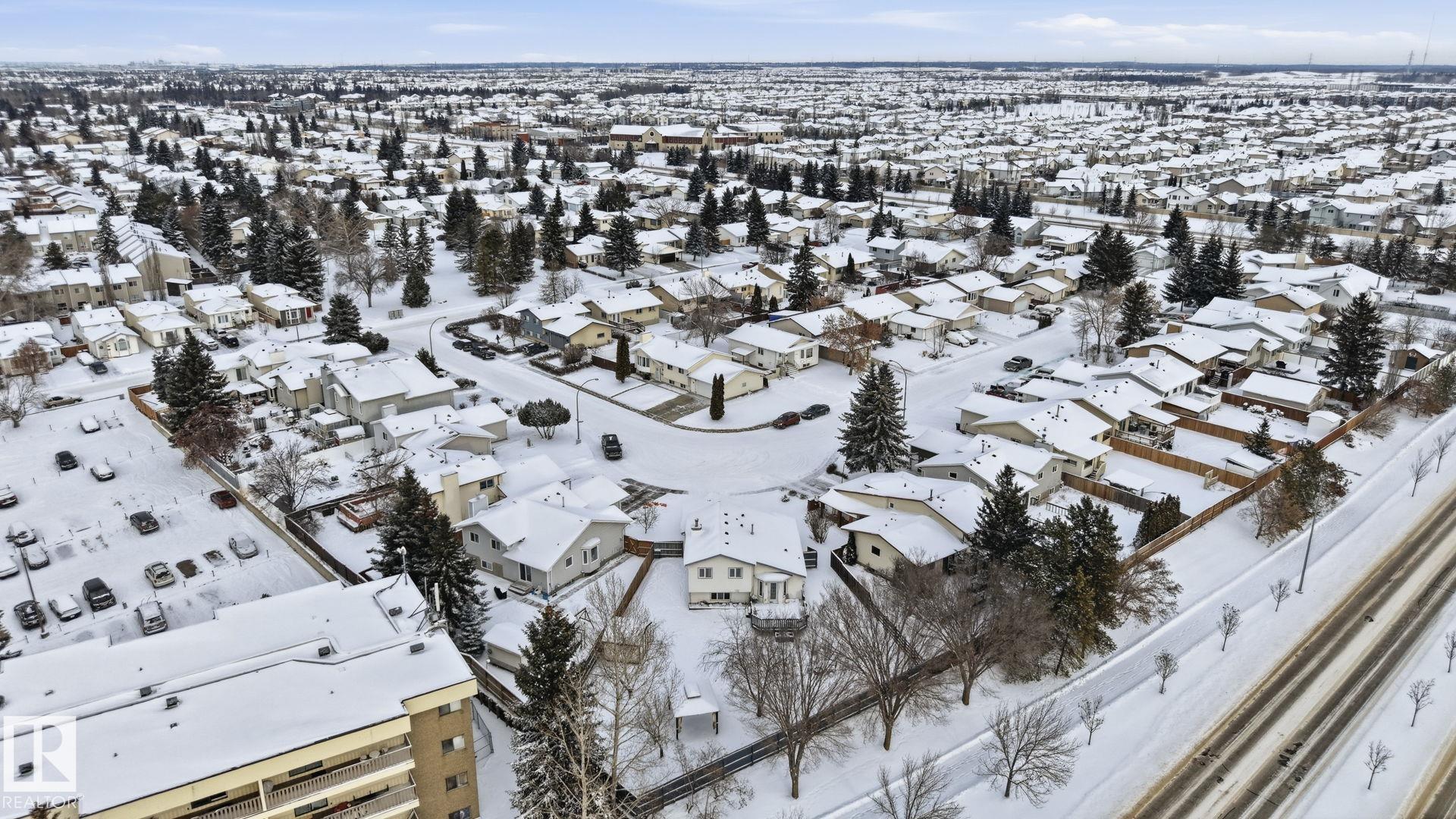 Welcome to this well-maintained 4-level split in the desirable community of Bisset! Situated on a large pie-shaped lot, this home offers plenty of outdoor space for entertaining, gardening, or future possibilities. Inside, you'll find 3 spacious bedrooms and 2.5 bathrooms, providing a functional layout ideal for families or first-time buyers. The thoughtful floor plan creates defined living spaces while maintaining a comfortable flow throughout the home. Key upgrades include NEW SAMSUNG APPLIANCES, a NEW HIGH EFFICIENT FURNACE,NEW HOT WATER TANK and recently installed 25 -YEAR SHINGLE AND EAVESTROUGHS, offering peace of mind and improved energy efficiency for years to come. Located close to parks, schools, shopping, public transit, and easy access to major routes, this home combines VALUE, SPACE , and LOCATION. A fantastic opportunity to own in a family-friendly southeast Edmonton neighbourhood!
