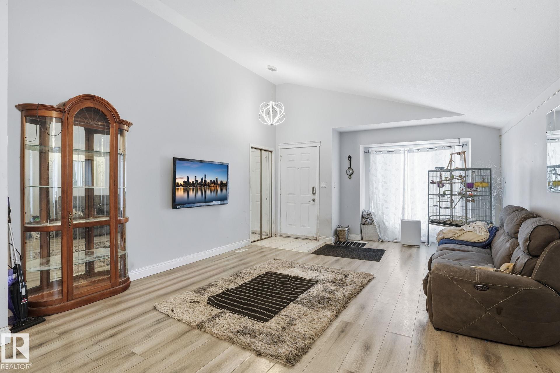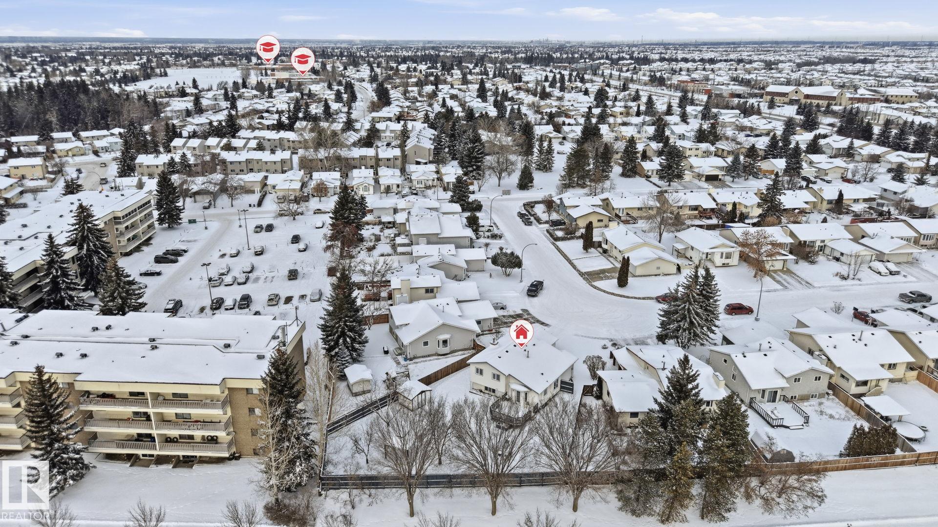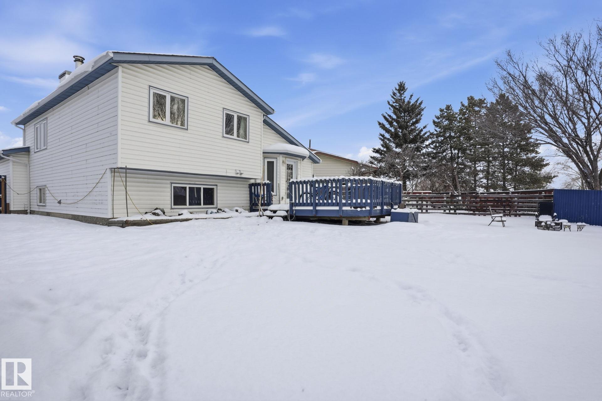 Welcome to this well-maintained 4-level split in the desirable community of Bisset! Situated on a large pie-shaped lot, this home offers plenty of outdoor space for entertaining, gardening, or future possibilities. Inside, you'll find 3 spacious bedrooms and 2.5 bathrooms, providing a functional layout ideal for families or first-time buyers. The thoughtful floor plan creates defined living spaces while maintaining a comfortable flow throughout the home. Key upgrades include NEW SAMSUNG APPLIANCES, a NEW HIGH EFFICIENT FURNACE,NEW HOT WATER TANK and recently installed 25 -YEAR SHINGLE AND EAVESTROUGHS, offering peace of mind and improved energy efficiency for years to come. Located close to parks, schools, shopping, public transit, and easy access to major routes, this home combines VALUE, SPACE , and LOCATION. A fantastic opportunity to own in a family-friendly southeast Edmonton neighbourhood!