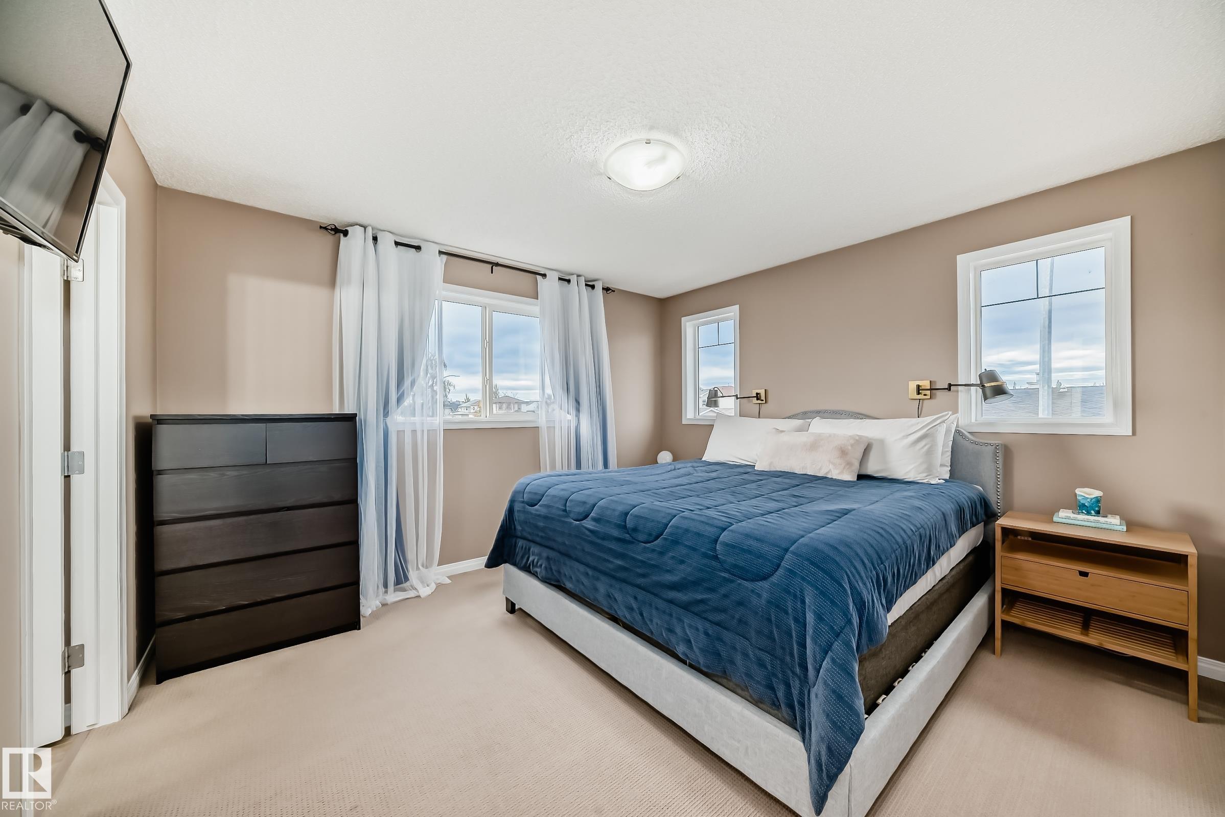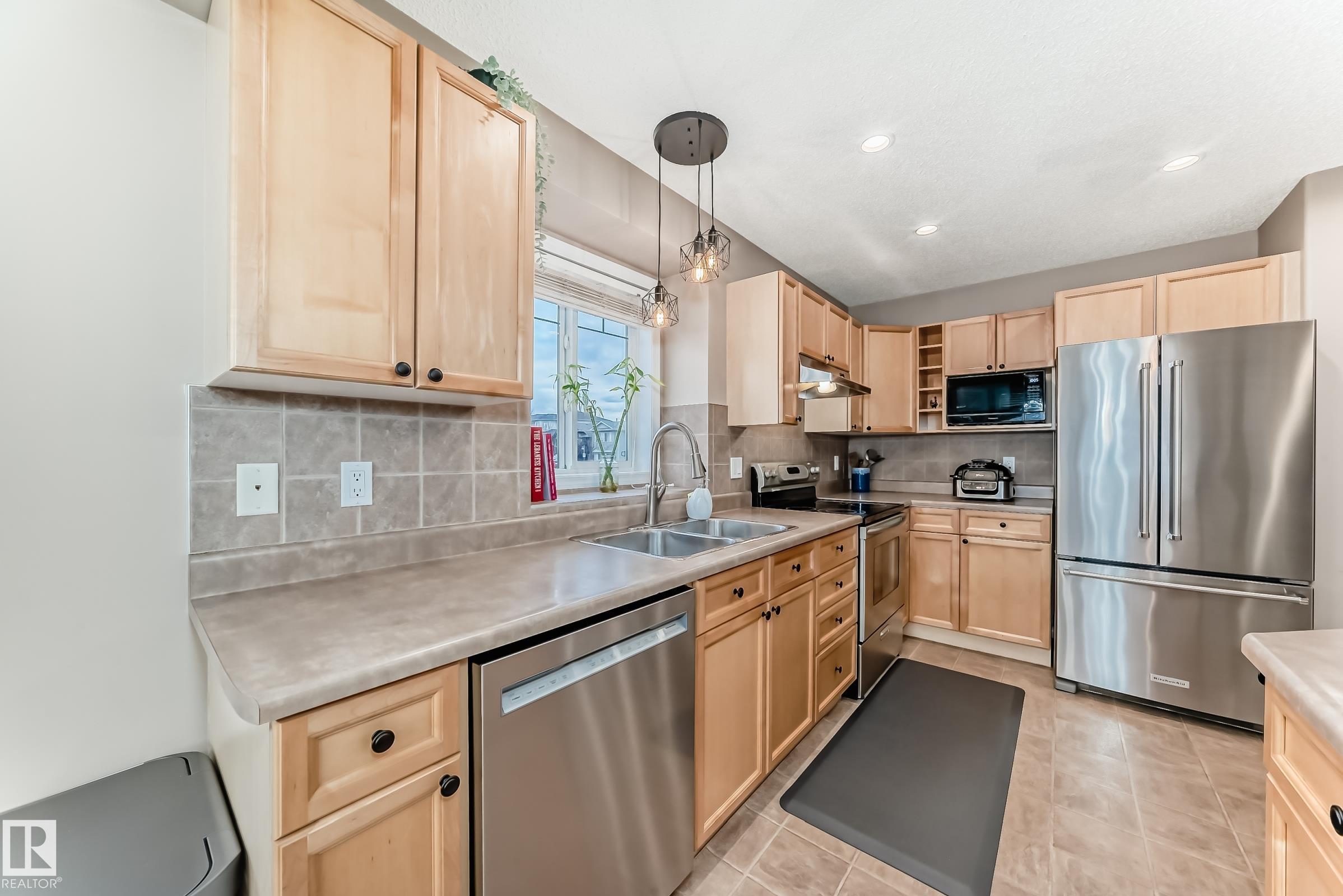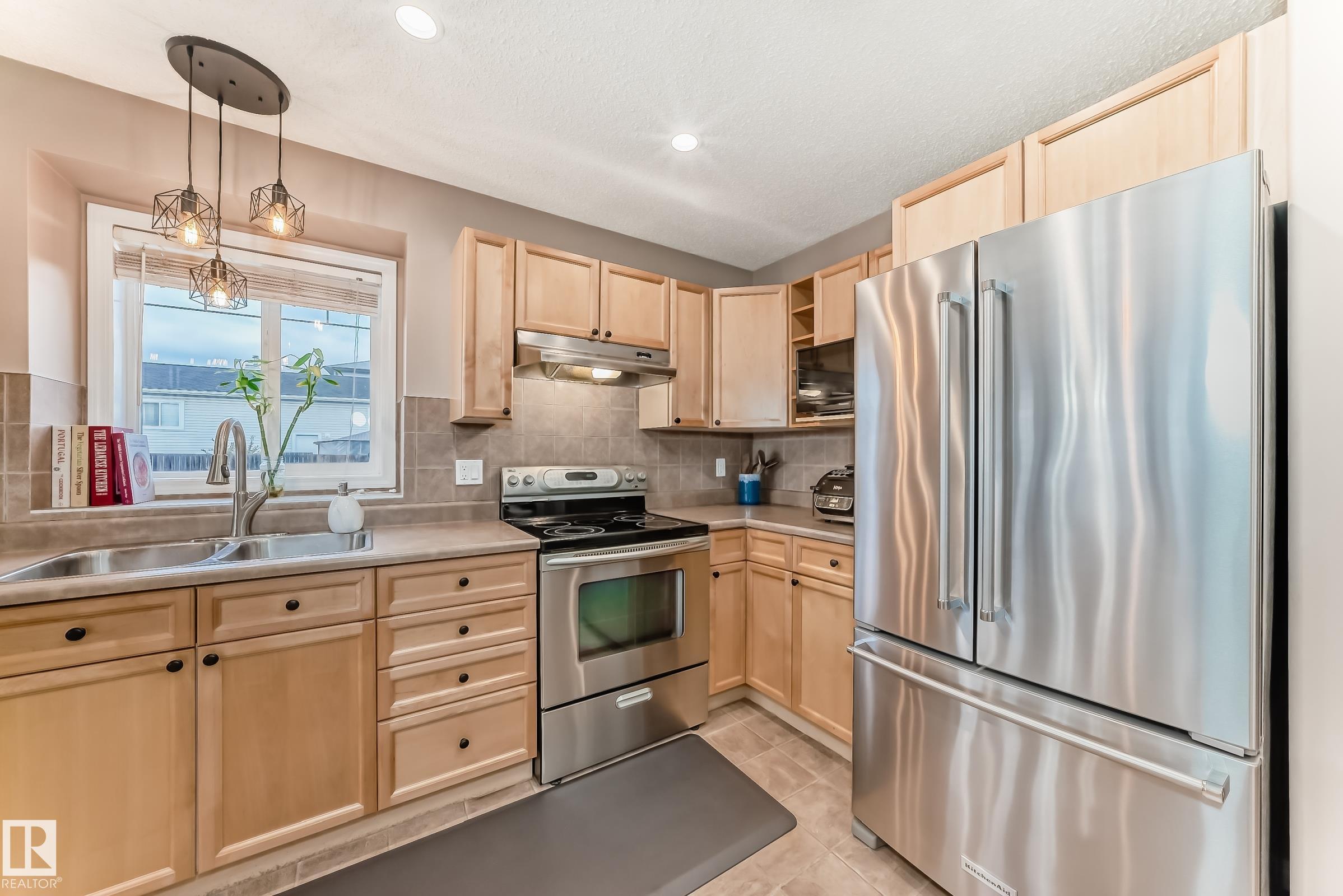CORNER LOT | MASSIVE GARAGE | MODERN UPGRADES Welcome to this well-maintained 3 bed, 2.5 bath family home on a rare oversized corner lot in Brintnell! This bright 2-storey boasts a spacious open layout with hardwood floors, a cozy front living room, and a large eat-in kitchen with breakfast nook. Upstairs features 3 comfortable bedrooms including a primary suite with 4-piece ensuite and walk-in closet. The 28x26 detached garage is a dream for car lovers, hobbyists, or anyone needing extra space. Recent upgrades include: new shingles (2023) with 50-year warranty, AC, tankless water heater, high-efficiency furnace (2021), water softener & plumbing upgrades (2022), insulation (2024), and a new deck (2020). The unfinished basement is bathed in natural light and offers secondary suite potential. Fully landscaped and fenced, steps to the park, transit, schools, and Manning Town Centre--with quick access to Anthony Henday. (Photos that have been digitally staged or modified.)