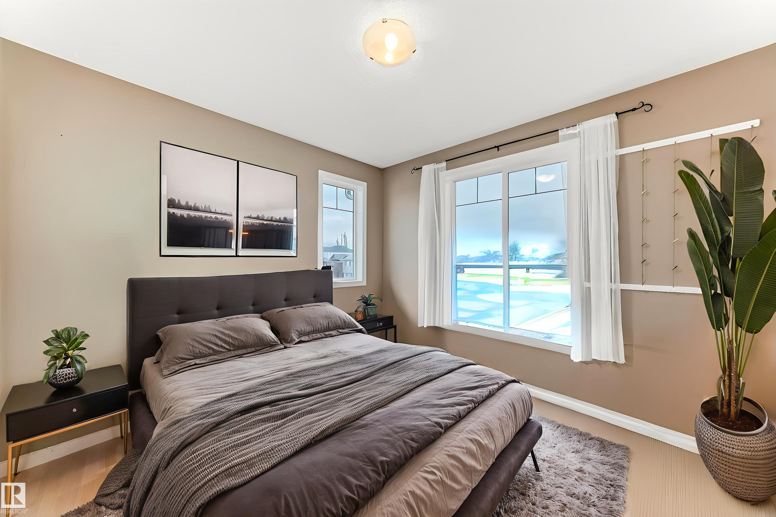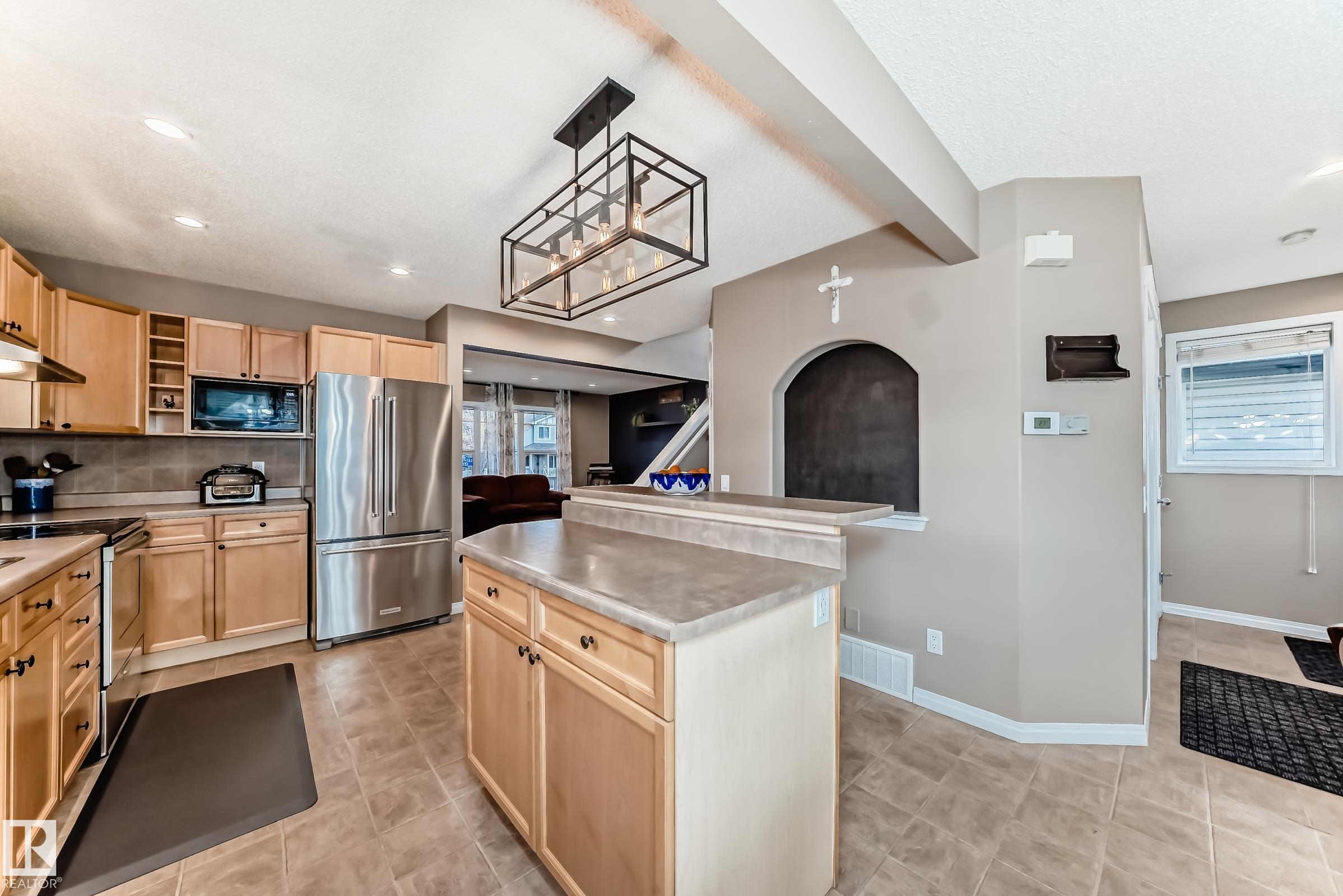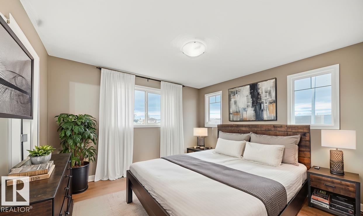 CORNER LOT | MASSIVE GARAGE | MODERN UPGRADES Welcome to this well-maintained 3 bed, 2.5 bath family home on a rare oversized corner lot in Brintnell! This bright 2-storey boasts a spacious open layout with hardwood floors, a cozy front living room, and a large eat-in kitchen with breakfast nook. Upstairs features 3 comfortable bedrooms including a primary suite with 4-piece ensuite and walk-in closet. The 28x26 detached garage is a dream for car lovers, hobbyists, or anyone needing extra space. Recent upgrades include: new shingles (2023) with 50-year warranty, AC, tankless water heater, high-efficiency furnace (2021), water softener & plumbing upgrades (2022), insulation (2024), and a new deck (2020). The unfinished basement is bathed in natural light and offers secondary suite potential. Fully landscaped and fenced, steps to the park, transit, schools, and Manning Town Centre--with quick access to Anthony Henday. (Photos that have been digitally staged or modified.)