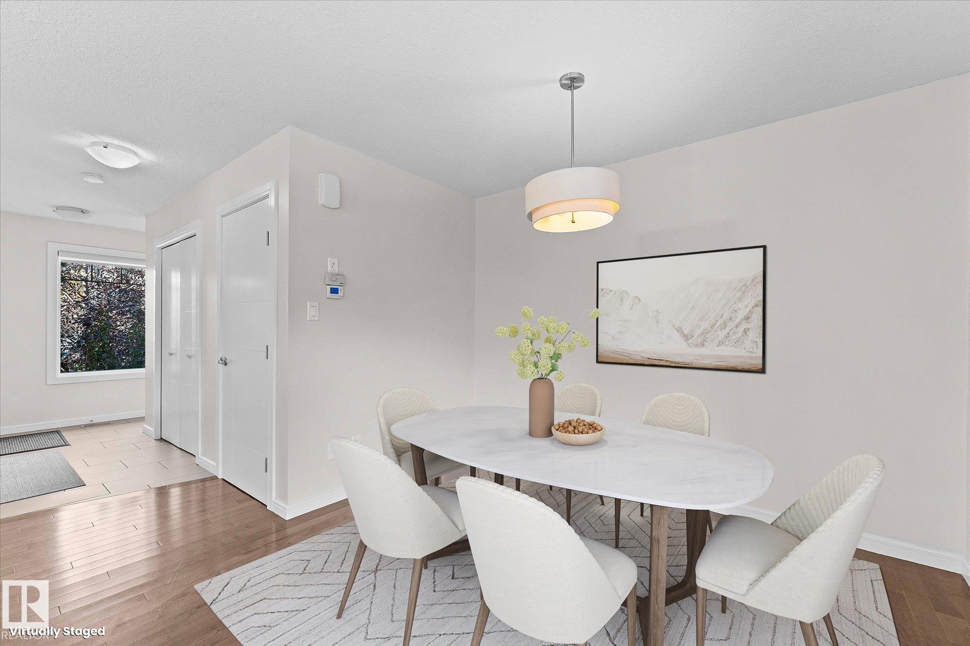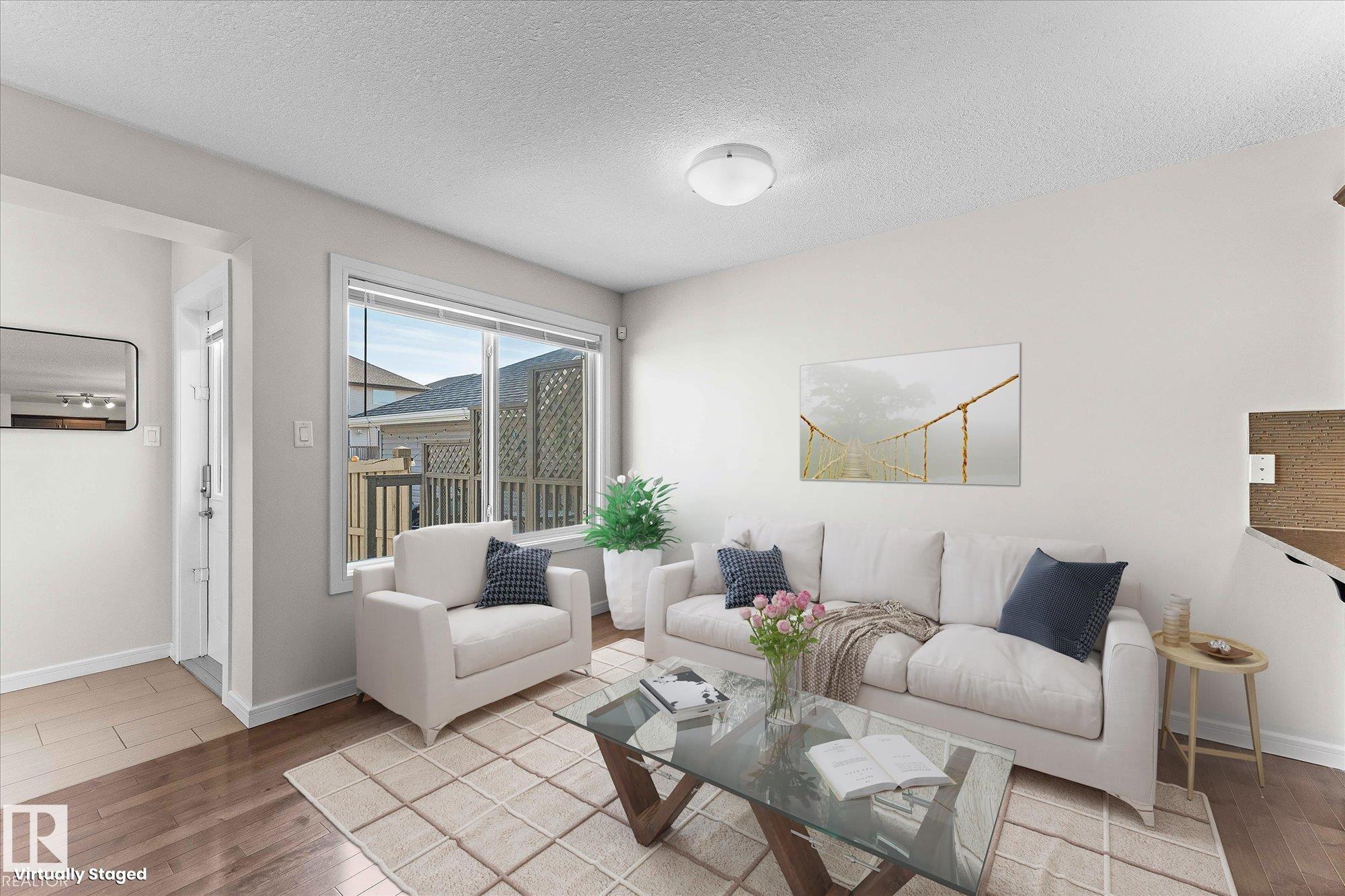 Welcome to 1,213 sq. ft. of light-filled living in the community of Chappelle. Freshly cleaned & move-in ready, this attached home has both timeless style and functionality, perfect for young families or investors seeking the opportunity. Hardwood floors set the tone as you step inside, leading you through a bright main floor. The kitchen is a dream with stainless steel appliances, a corner pantry for extra storage & plenty of space for gathering around. Upstairs, you'll find 3 bedrooms & 2 bathrooms, while the finished basement offers the perfect spot for cozy movie nights, a home office, or a creative play space. The attached garage with back lane access keeps life convenient & the fenced backyard is ready for crisp fall evenings & witty banter. This neighbourhood was made for connection, picture tree-lined streets, kids running from door to door on Halloween & neighbours who become friends. Ready for quick possession, this home is waiting for you to make it your own, just in time for sweater weather.