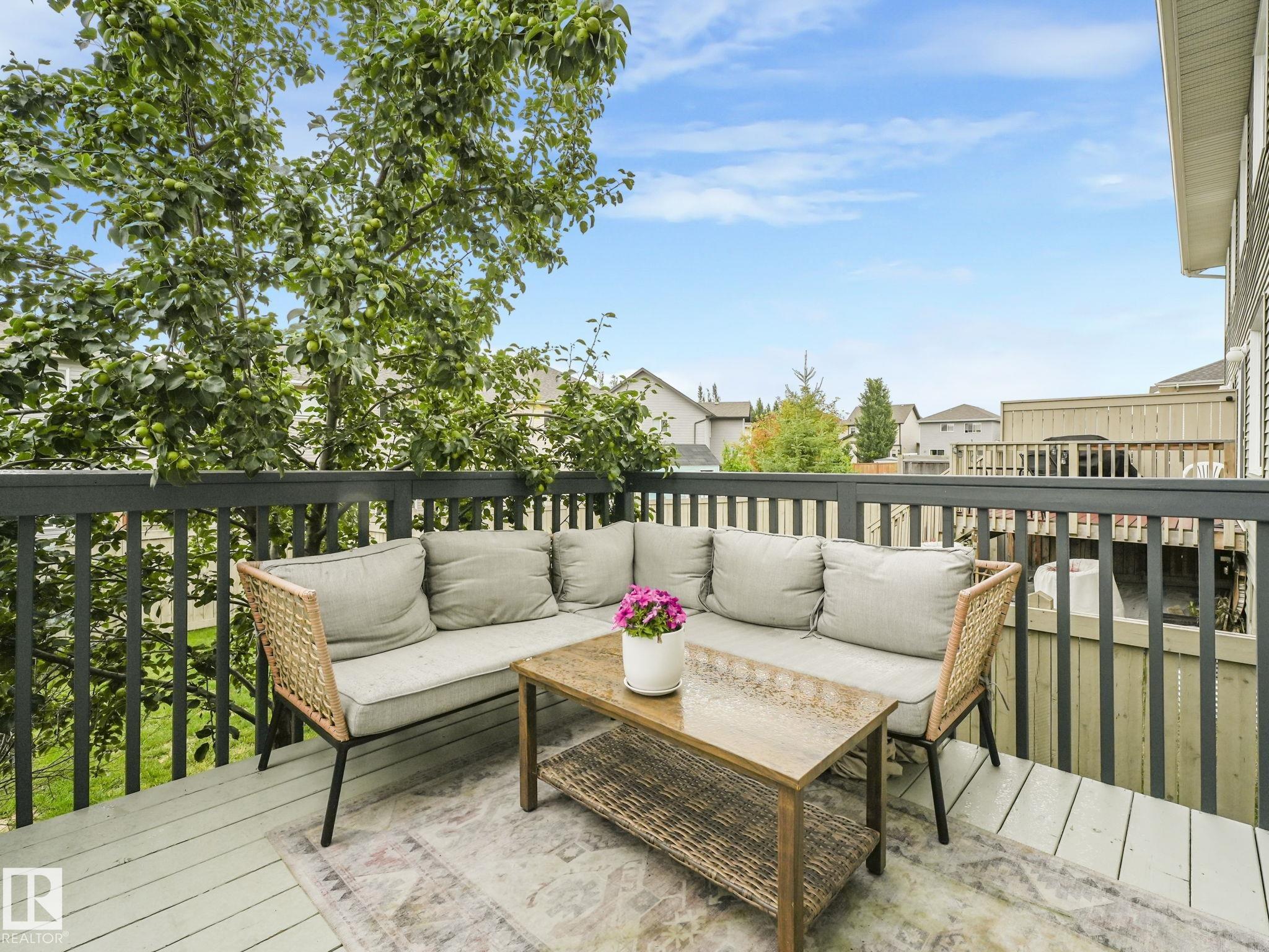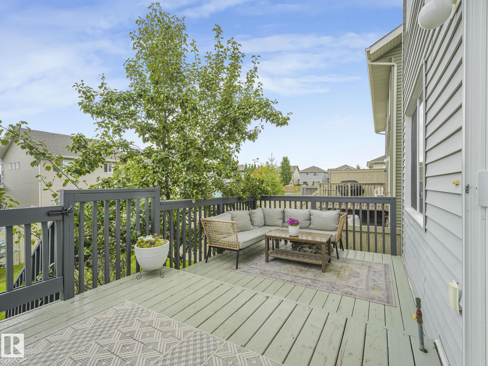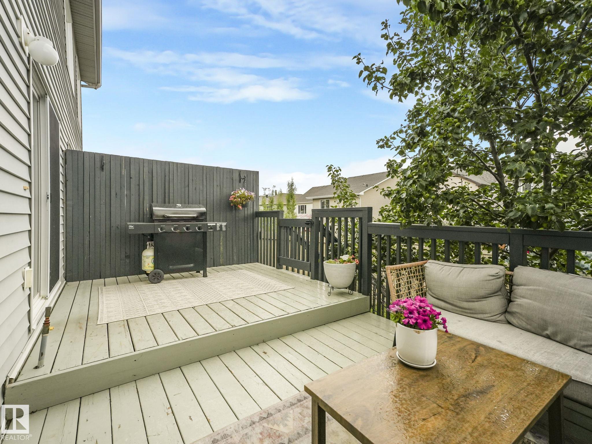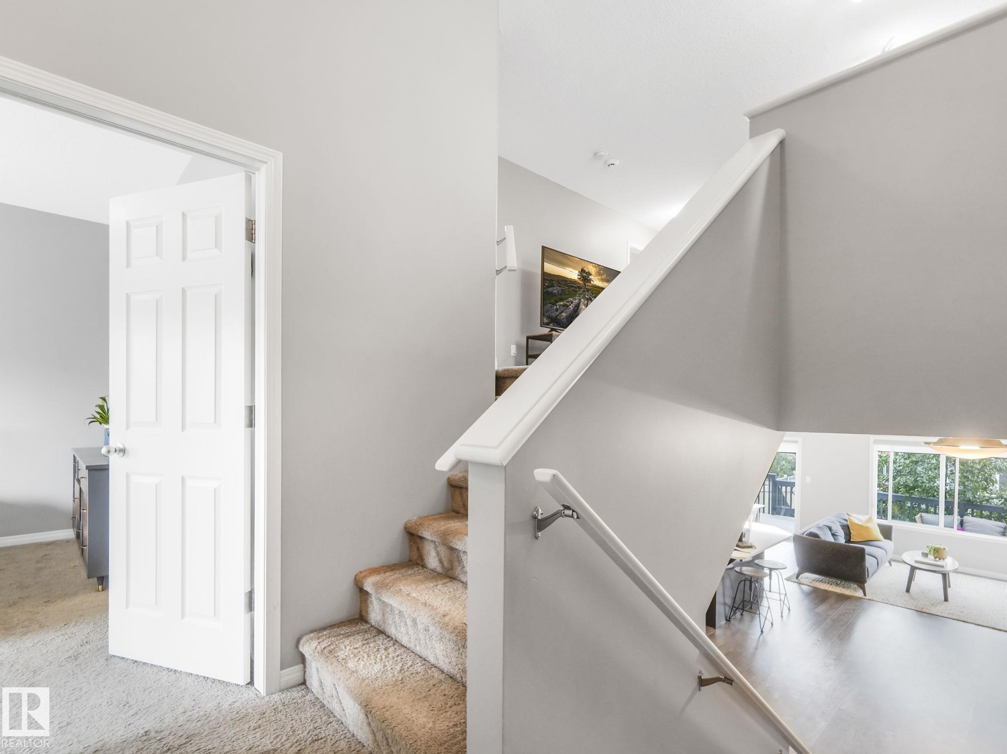 Welcome to Chappelle Gardens, one of Edmonton's most sought-after communities--offering scenic parks, ponds, skating rinks, walking trails, & an active residents' association that has plenty of activities for kids and adults! This luxury upgraded half-duplex features an open-concept floor plan perfect for entertaining, w/ a stunning kitchen that includes ceiling-height cabinets, white quartz countertops, a huge island, s.s. appliances, a large corner pantry, & spacious dining & living areas. Enjoy the cozy fireplace and large windows overlooking a massive deck & mature apple tree for shade & privacy. The primary suite is on its own level, w/ huge windows, a walk-in closet w/custom organization, & 3 pce ensuite. Upstairs also offers a bonus room, laundry, a 4 pce bath, & 2 more beds--one with it's own walk-in closet. The basement has large windows & tall ceilings. Complete with a single attached garage and Hunter Douglas blinds, this spacious home has so much to offer a couple or growing family.
