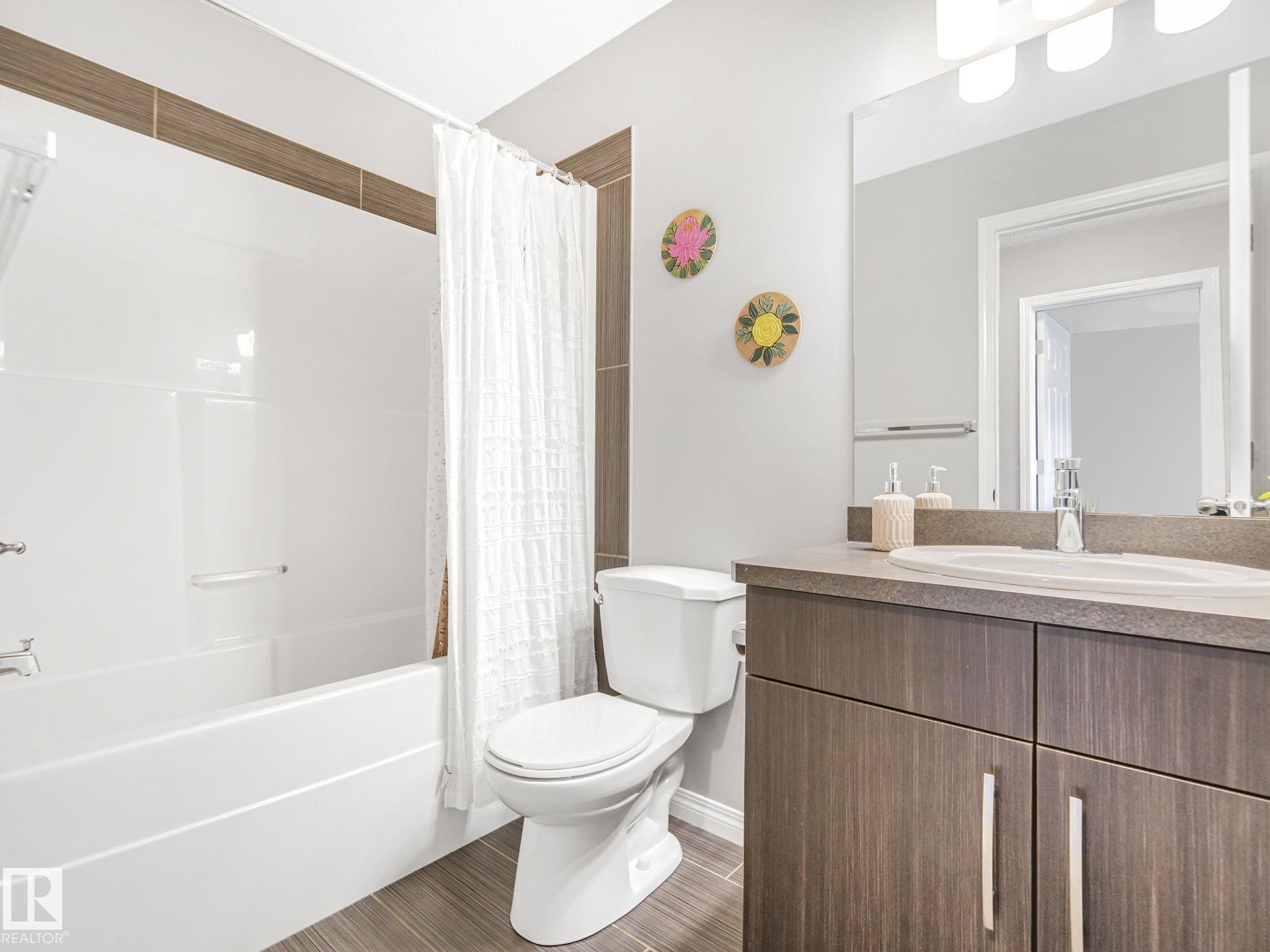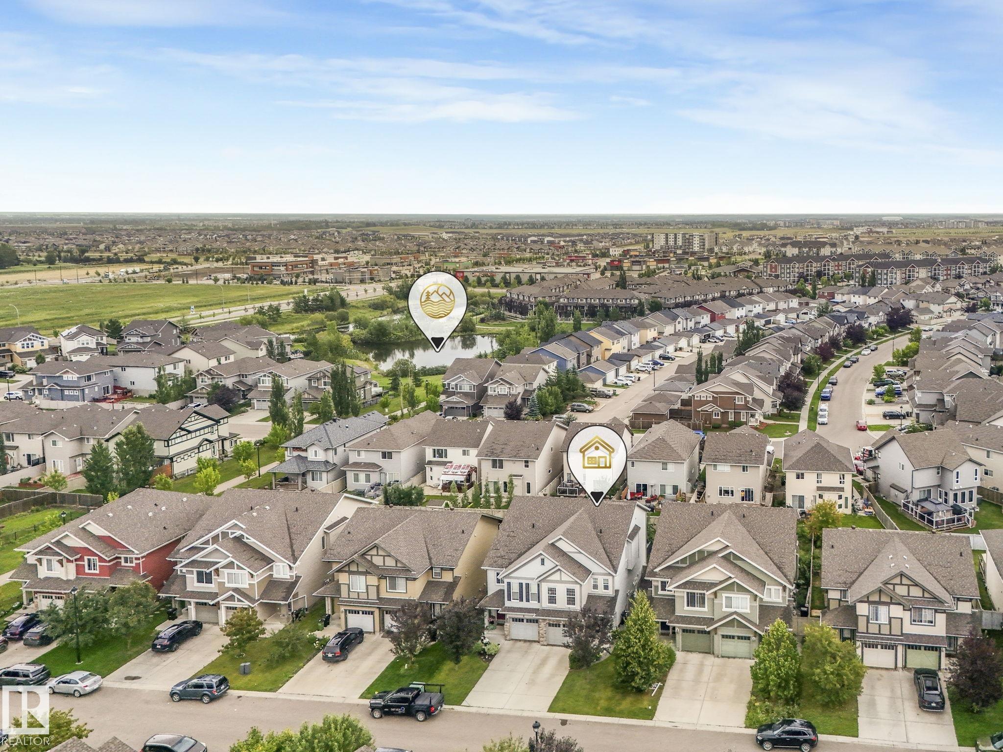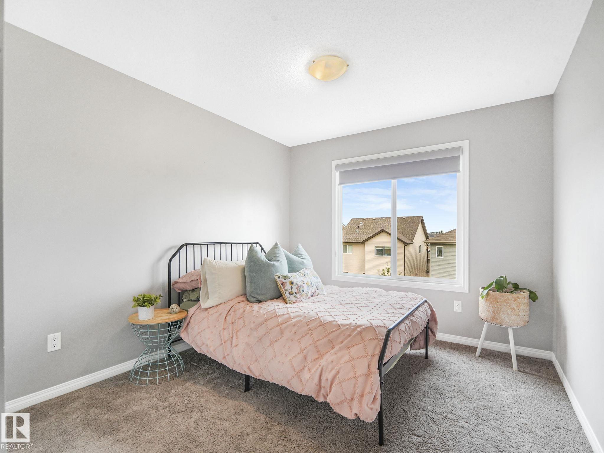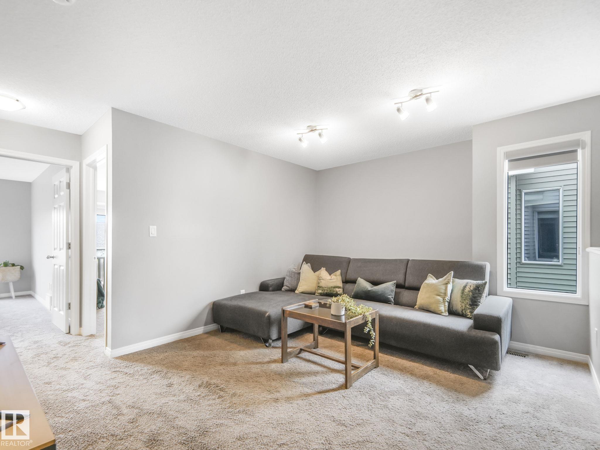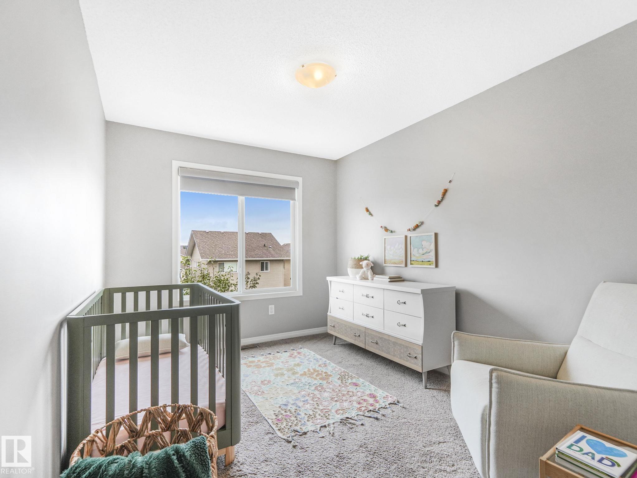 Welcome to Chappelle Gardens, one of Edmonton's most sought-after communities--offering scenic parks, ponds, skating rinks, walking trails, & an active residents' association that has plenty of activities for kids and adults! This luxury upgraded half-duplex features an open-concept floor plan perfect for entertaining, w/ a stunning kitchen that includes ceiling-height cabinets, white quartz countertops, a huge island, s.s. appliances, a large corner pantry, & spacious dining & living areas. Enjoy the cozy fireplace and large windows overlooking a massive deck & mature apple tree for shade & privacy. The primary suite is on its own level, w/ huge windows, a walk-in closet w/custom organization, & 3 pce ensuite. Upstairs also offers a bonus room, laundry, a 4 pce bath, & 2 more beds--one with it's own walk-in closet. The basement has large windows & tall ceilings. Complete with a single attached garage and Hunter Douglas blinds, this spacious home has so much to offer a couple or growing family.