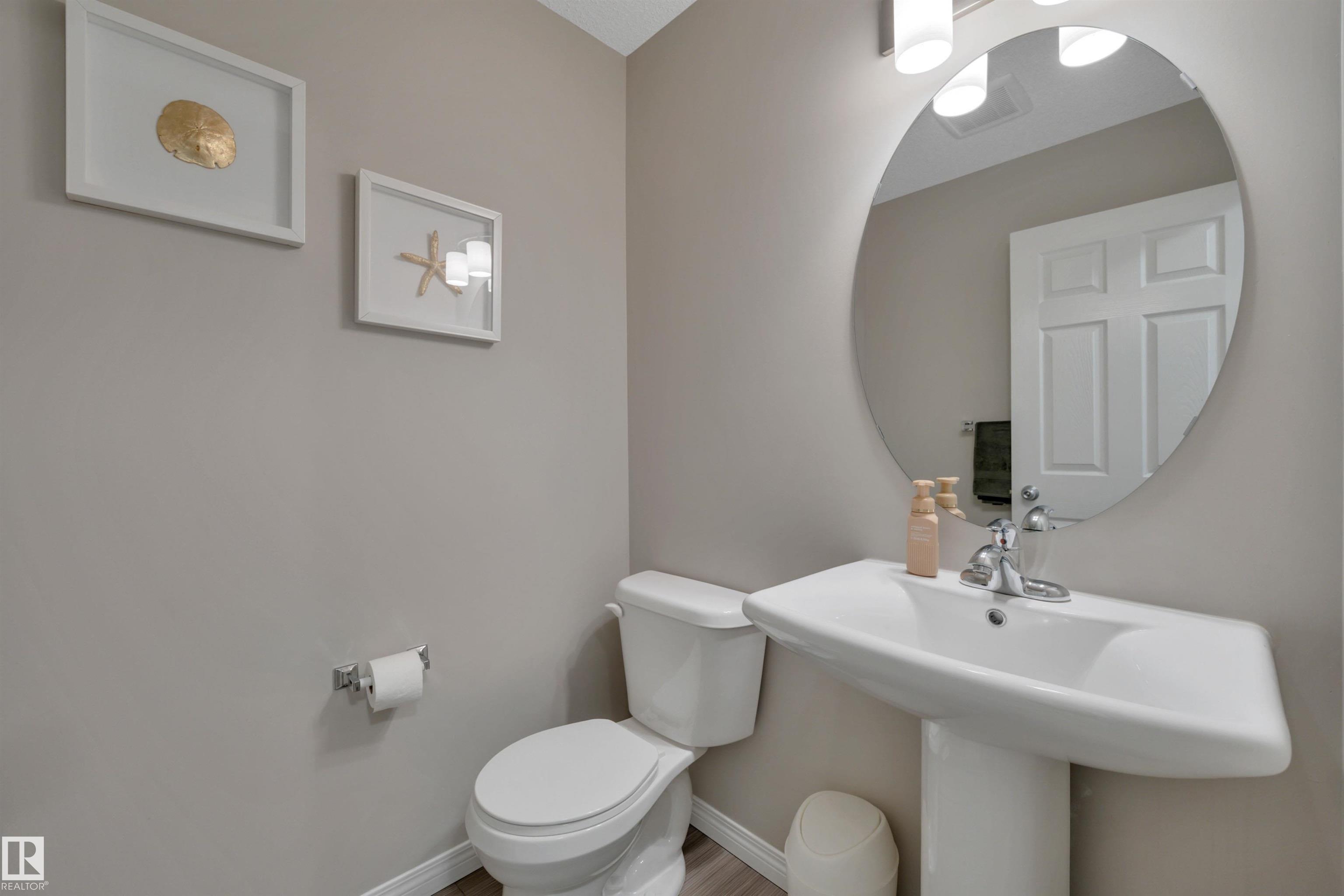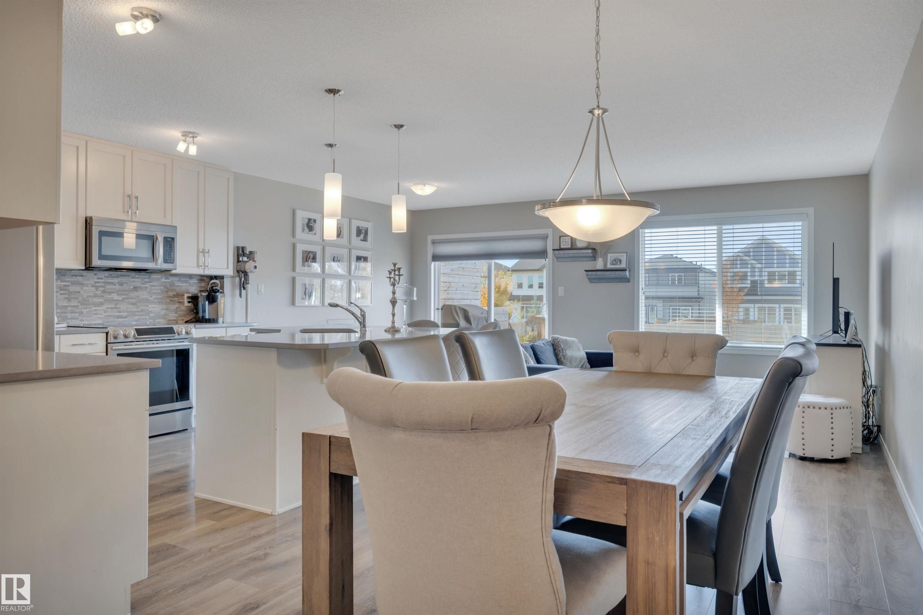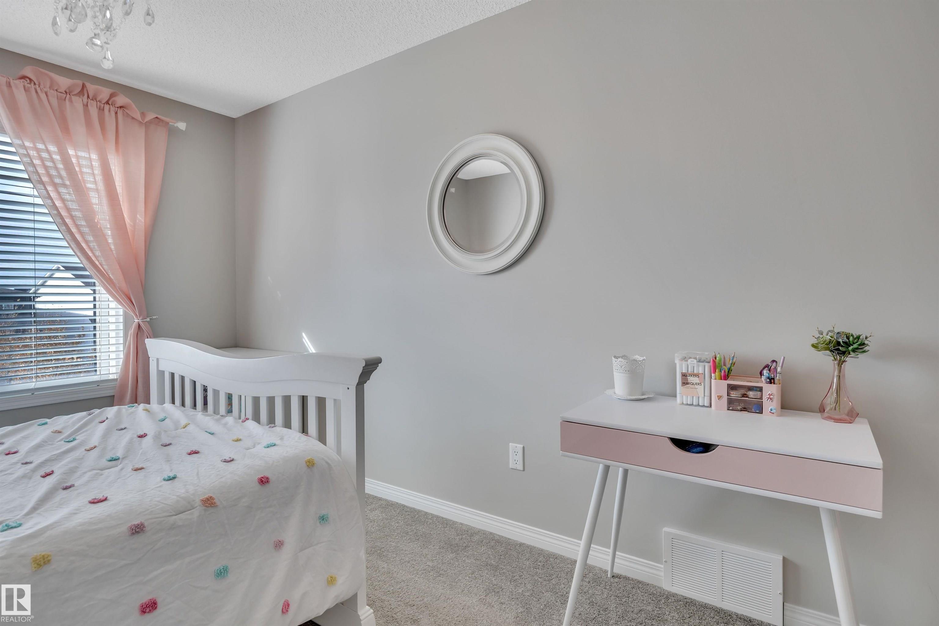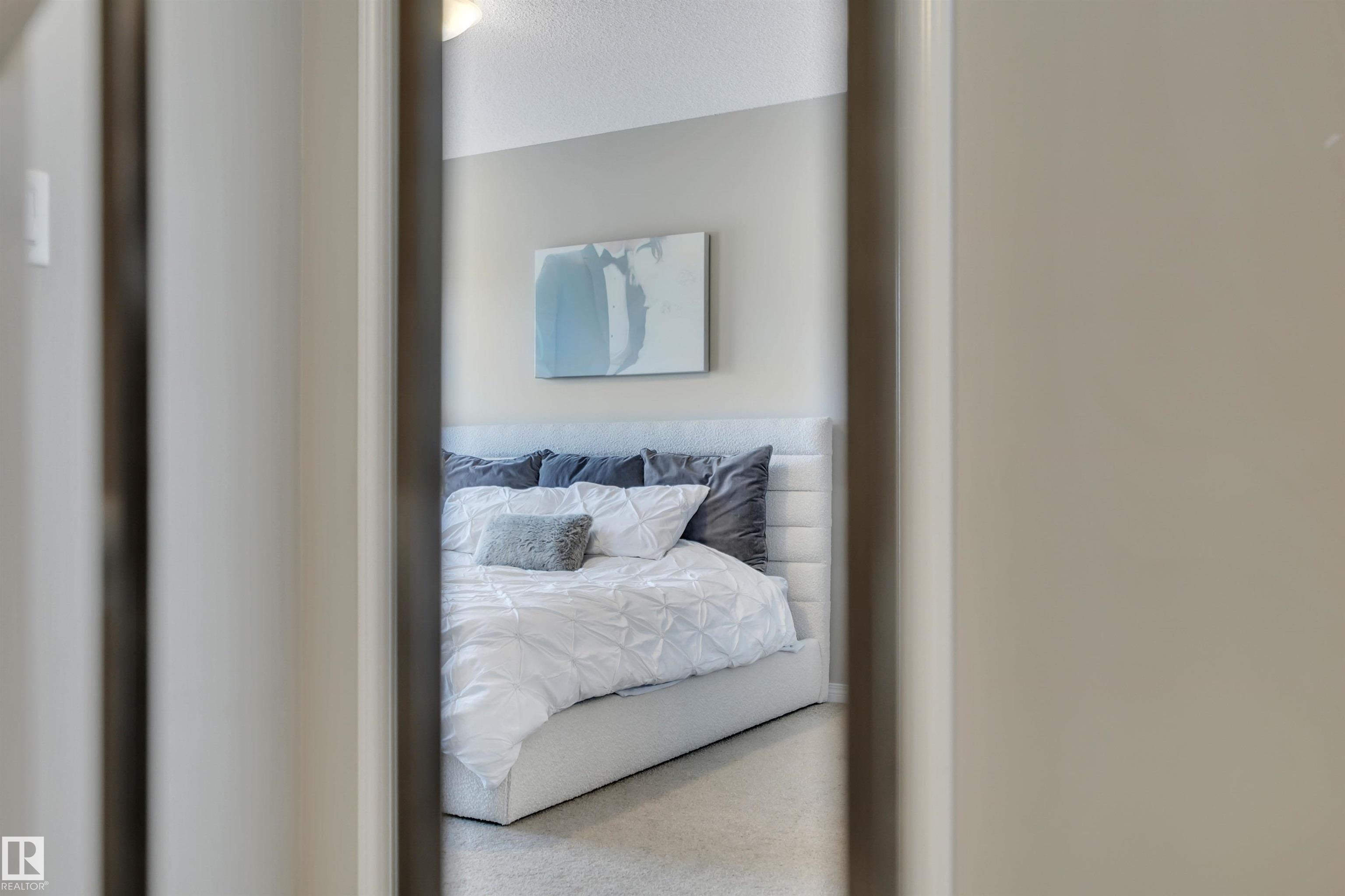 Welcome to this 3-bedroom, 2.5 bath half duplex offering over 1700 sq ft of beautifully designed living space in one of Edmonton's most sought after communities. The open-concept main floor is ideal for entertaining, featuring a spacious kitchen with stainless steel appliances, quartz countertops, and a seamless flow into the dining and living areas, plus a convenient powder room for guests. Upstairs features 3 bedrooms, including a primary with ensuite, a bonus room , another 4-piece bathroom and upper-floor laundry. Stay comfortable year round with central A/C! The huge backyard backs onto a walking path for added privacy and out-door enjoyment. The basement is unfinished and awaits your special touch. Located in the heart of Chappelle gardens you can take advantage of the amenities including outdoor skating rink, walking trails, community gardens, basketball courts, and splash park. This meticulously maintained home is move in ready and includes a single attached garage