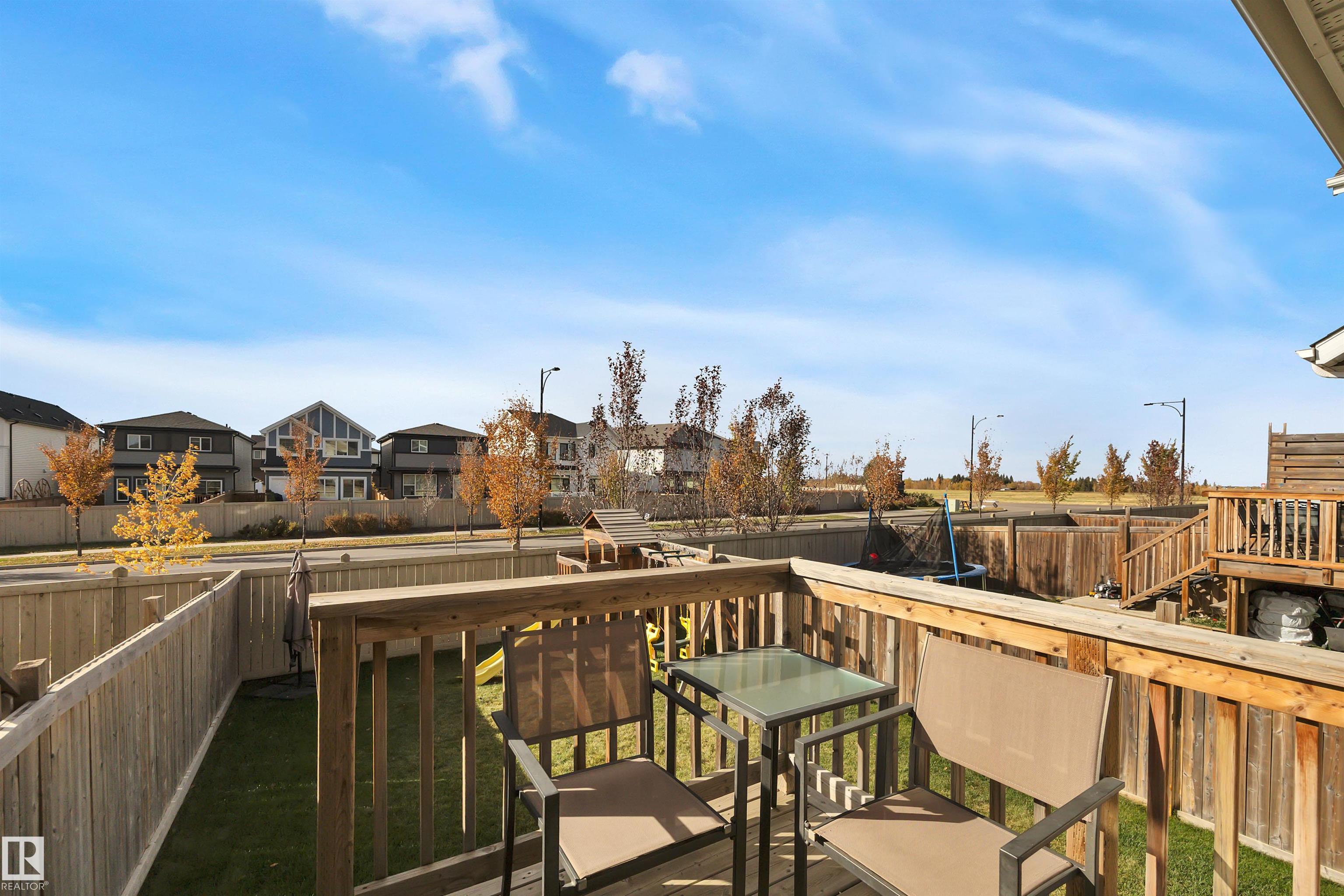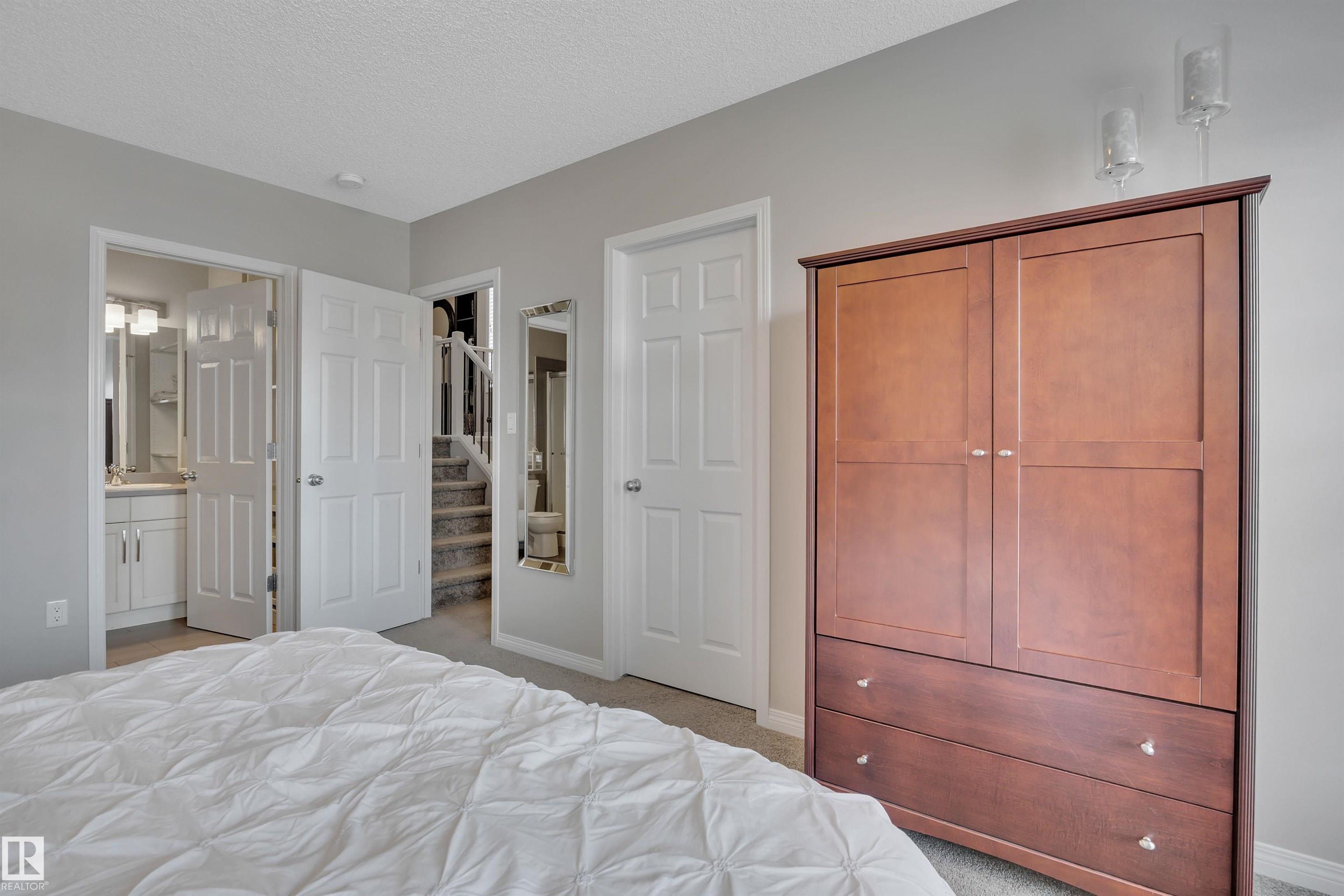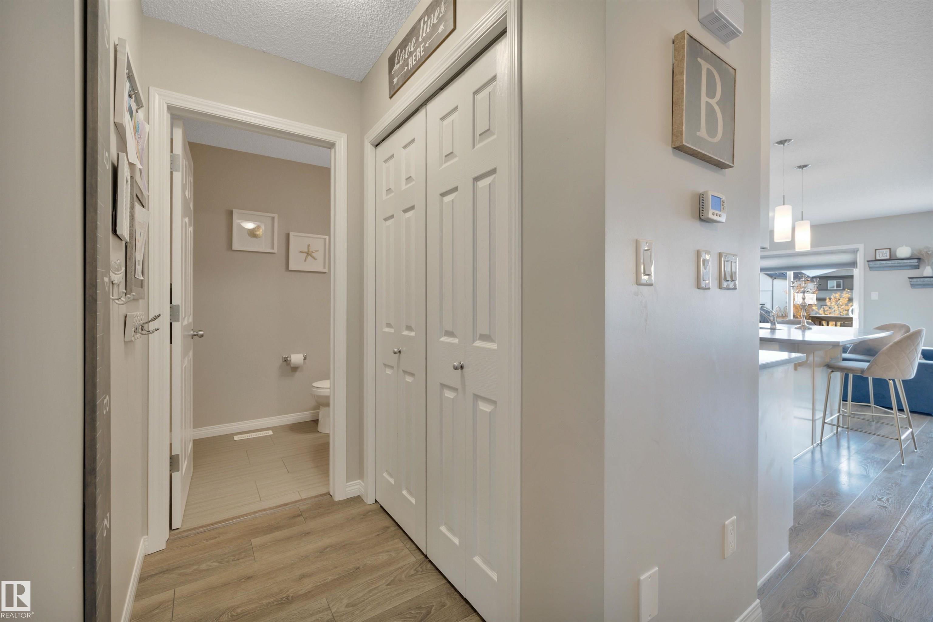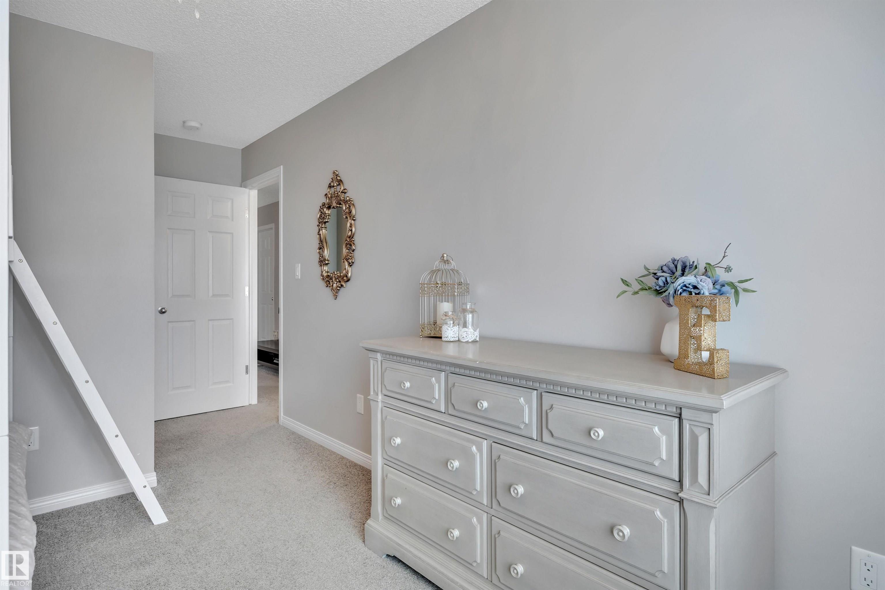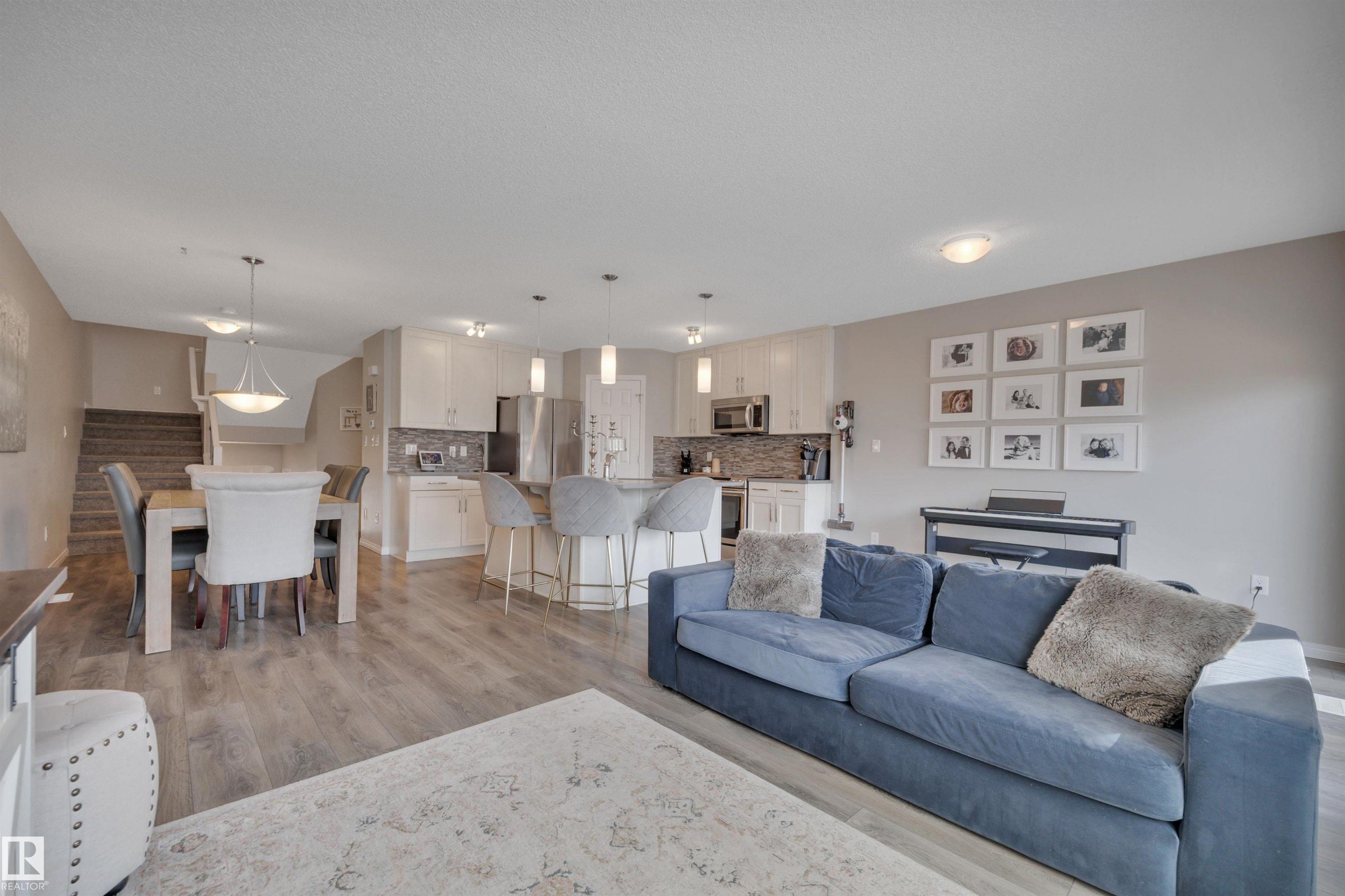 Welcome to this 3-bedroom, 2.5 bath half duplex offering over 1700 sq ft of beautifully designed living space in one of Edmonton's most sought after communities. The open-concept main floor is ideal for entertaining, featuring a spacious kitchen with stainless steel appliances, quartz countertops, and a seamless flow into the dining and living areas, plus a convenient powder room for guests. Upstairs features 3 bedrooms, including a primary with ensuite, a bonus room , another 4-piece bathroom and upper-floor laundry. Stay comfortable year round with central A/C! The huge backyard backs onto a walking path for added privacy and out-door enjoyment. The basement is unfinished and awaits your special touch. Located in the heart of Chappelle gardens you can take advantage of the amenities including outdoor skating rink, walking trails, community gardens, basketball courts, and splash park. This meticulously maintained home is move in ready and includes a single attached garage