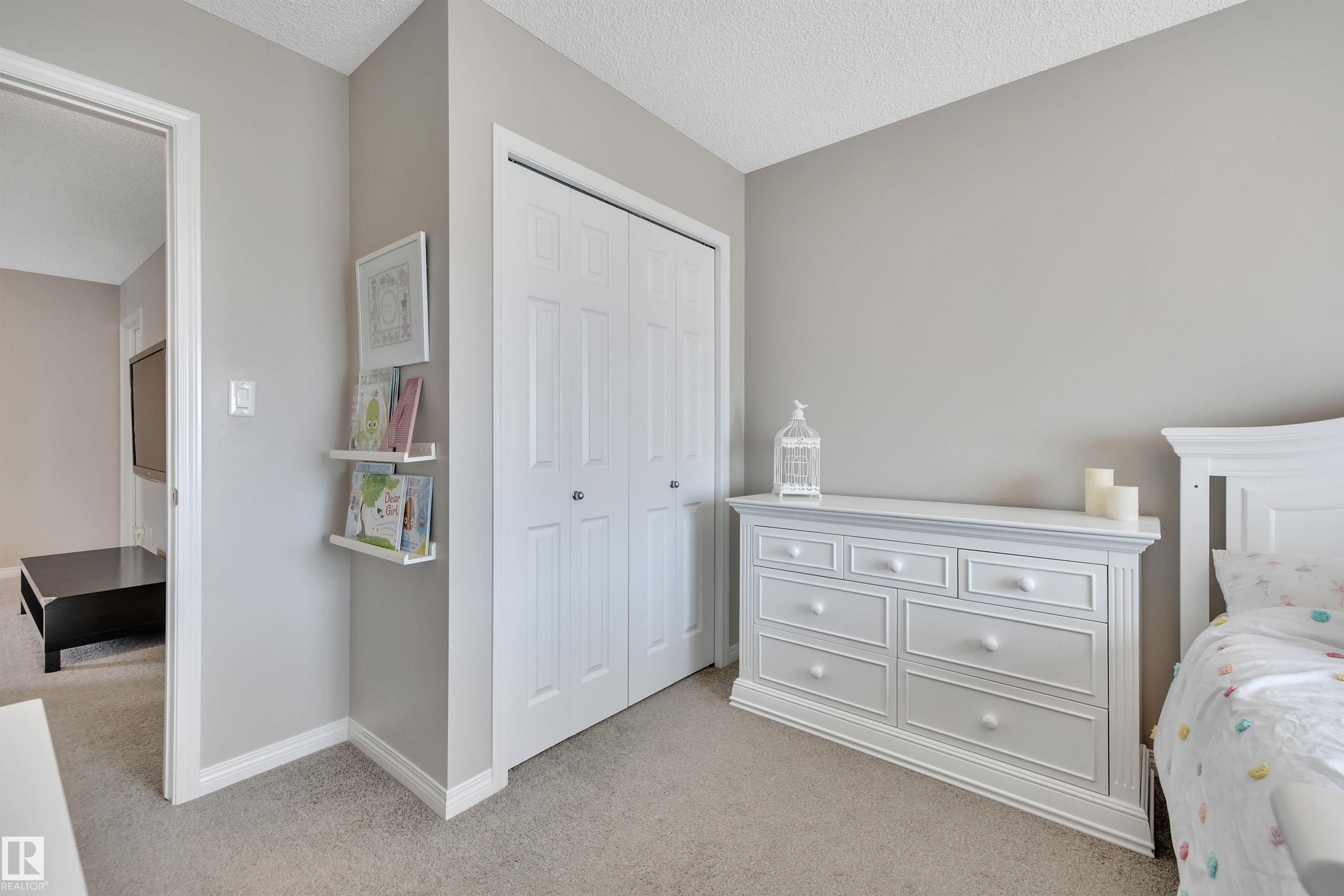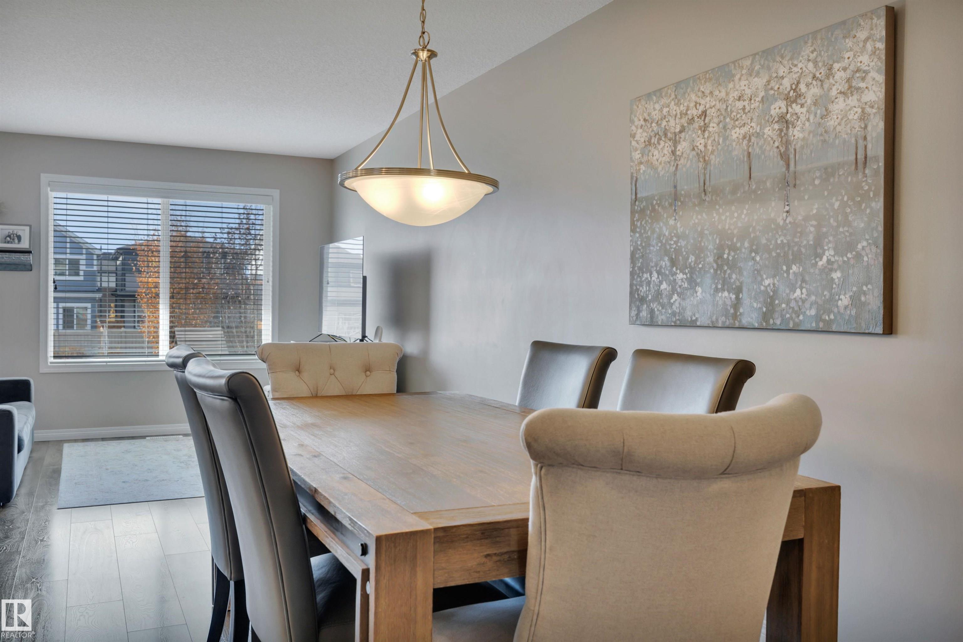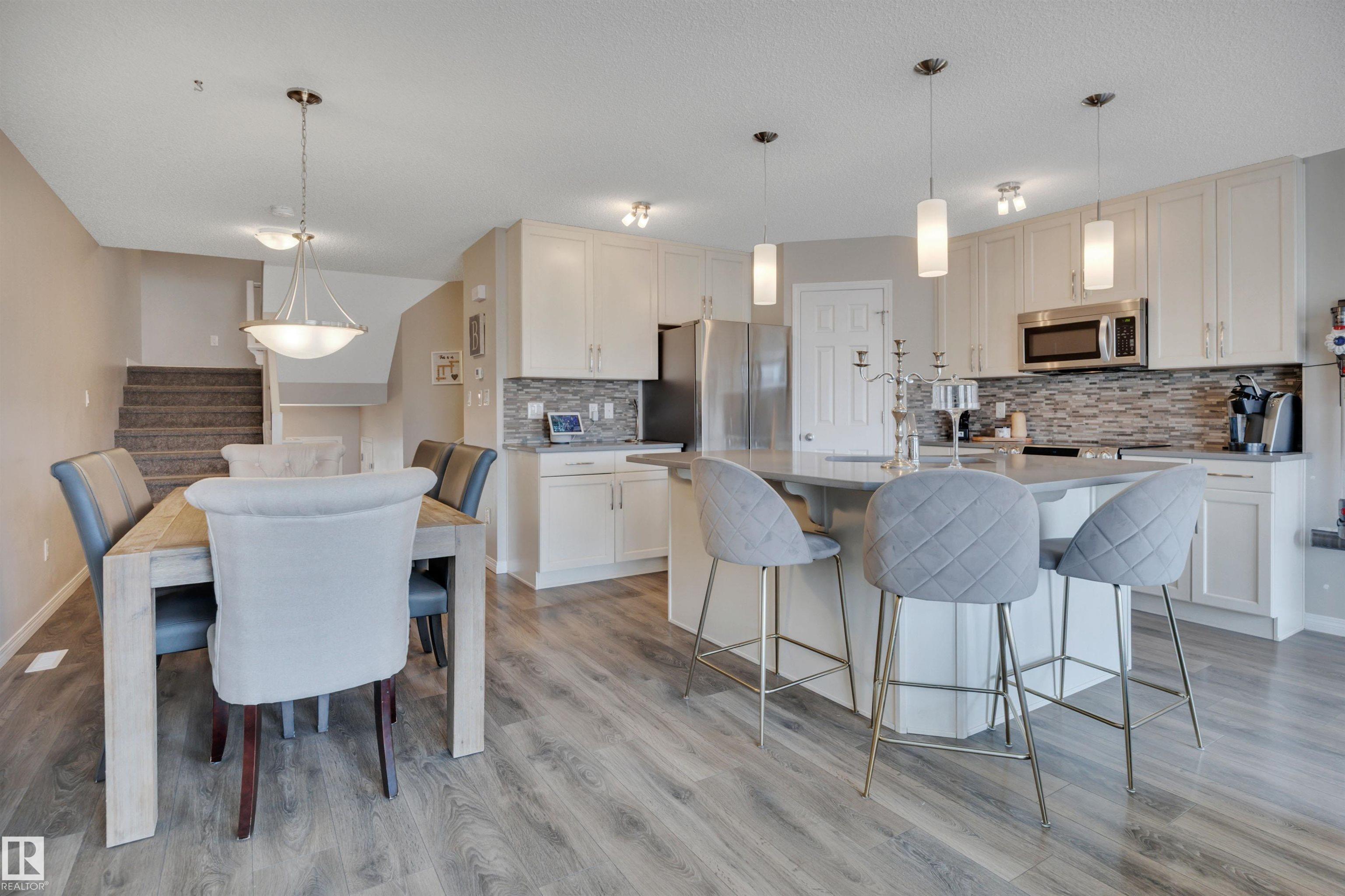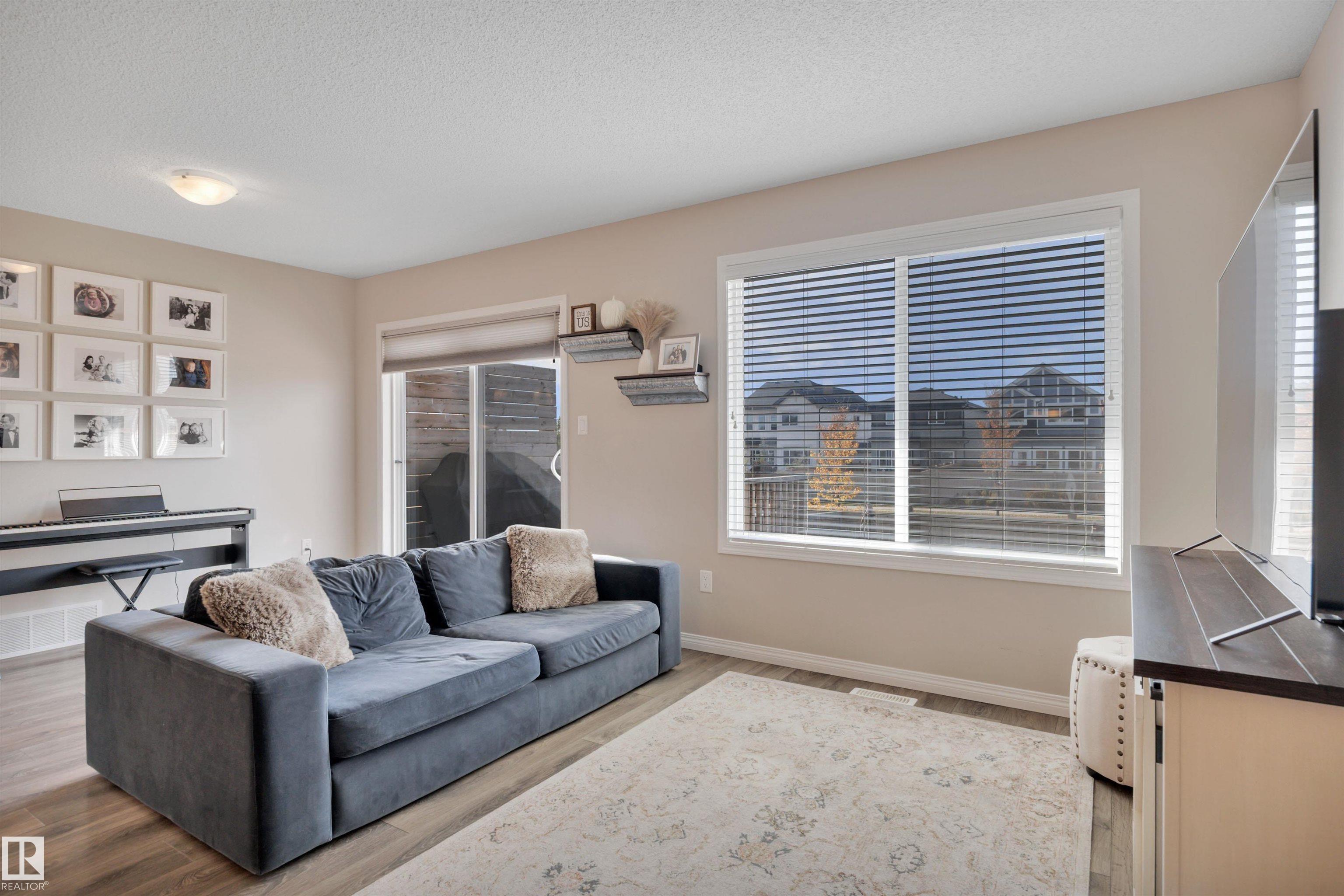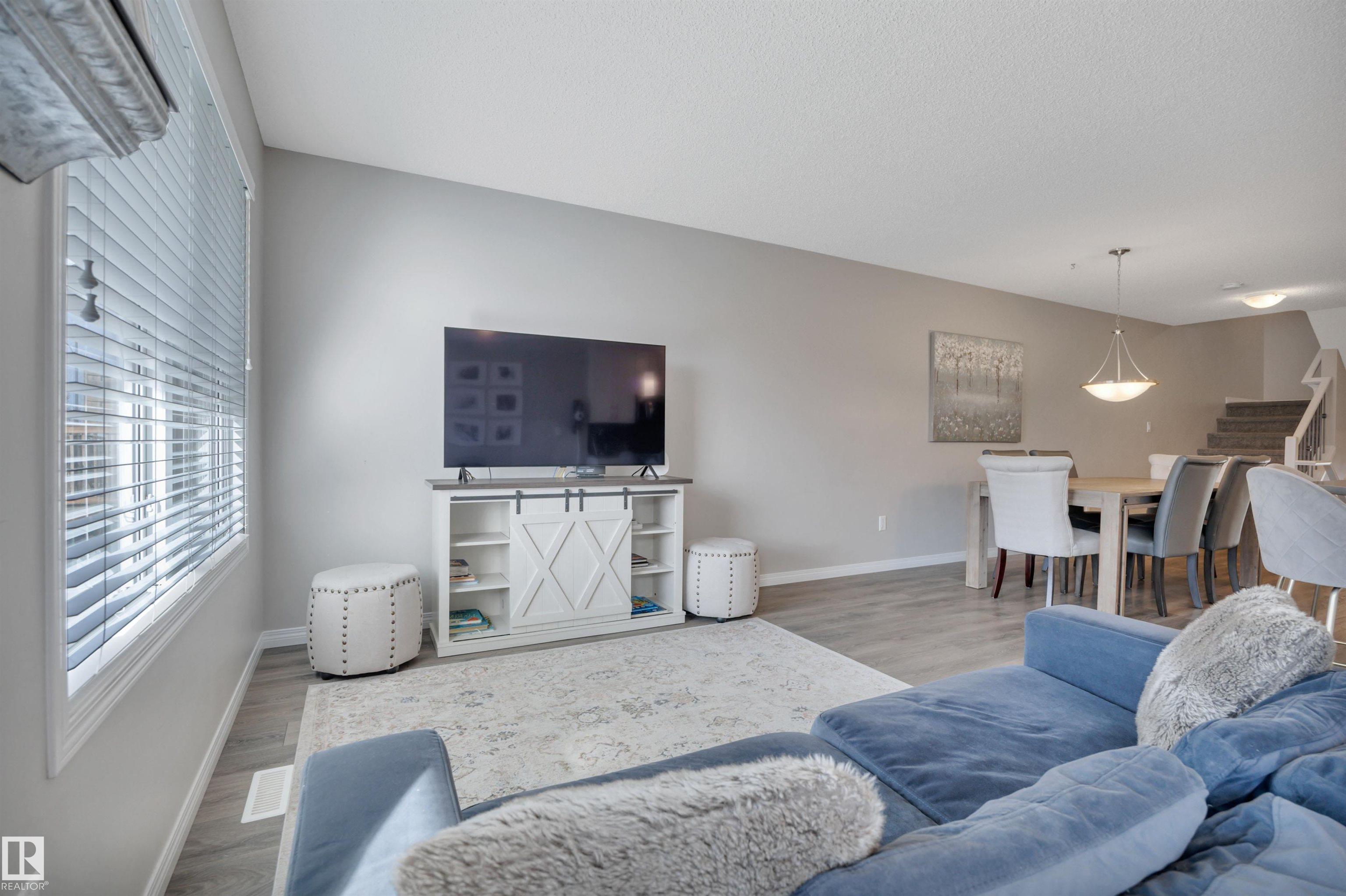 Welcome to this 3-bedroom, 2.5 bath half duplex offering over 1700 sq ft of beautifully designed living space in one of Edmonton's most sought after communities. The open-concept main floor is ideal for entertaining, featuring a spacious kitchen with stainless steel appliances, quartz countertops, and a seamless flow into the dining and living areas, plus a convenient powder room for guests. Upstairs features 3 bedrooms, including a primary with ensuite, a bonus room , another 4-piece bathroom and upper-floor laundry. Stay comfortable year round with central A/C! The huge backyard backs onto a walking path for added privacy and out-door enjoyment. The basement is unfinished and awaits your special touch. Located in the heart of Chappelle gardens you can take advantage of the amenities including outdoor skating rink, walking trails, community gardens, basketball courts, and splash park. This meticulously maintained home is move in ready and includes a single attached garage