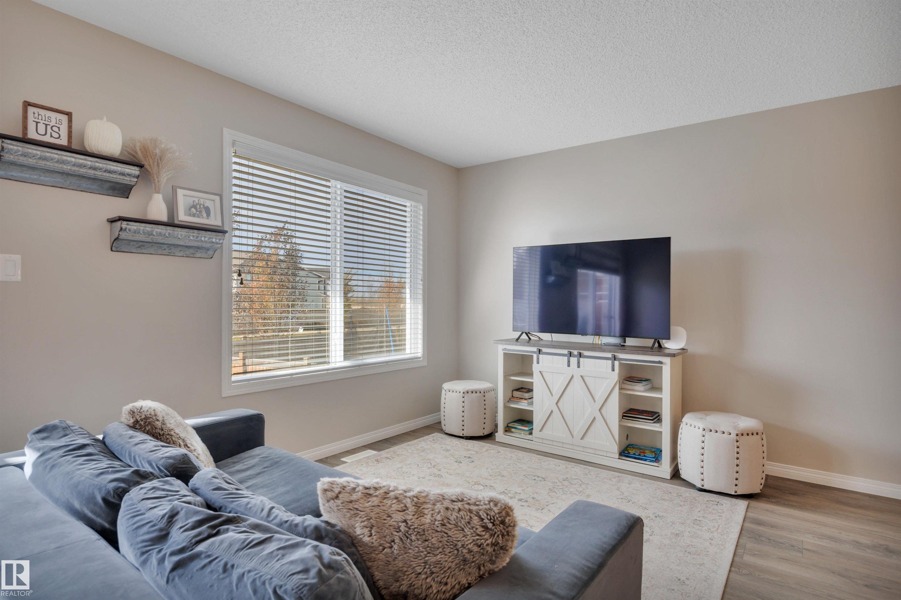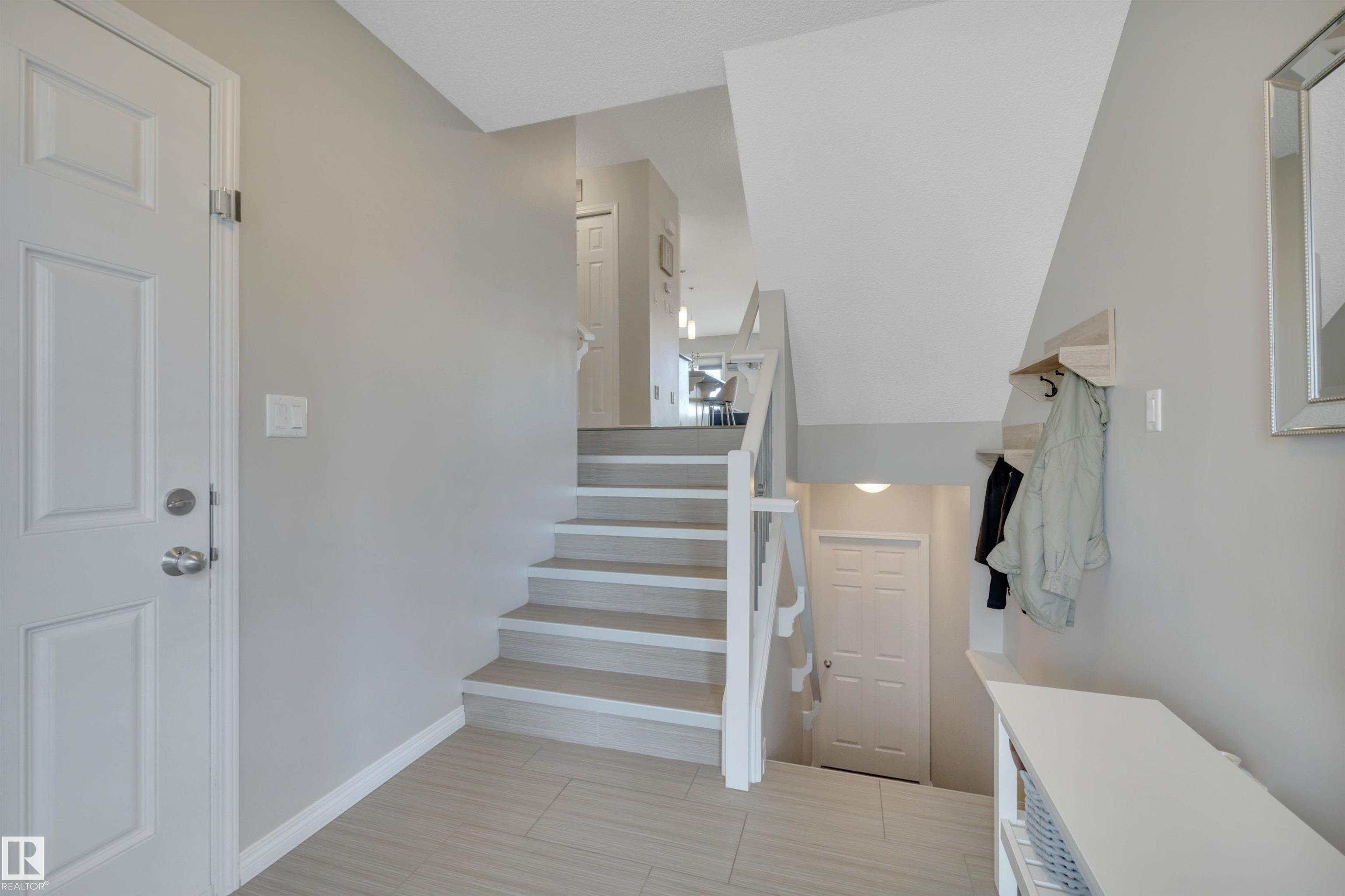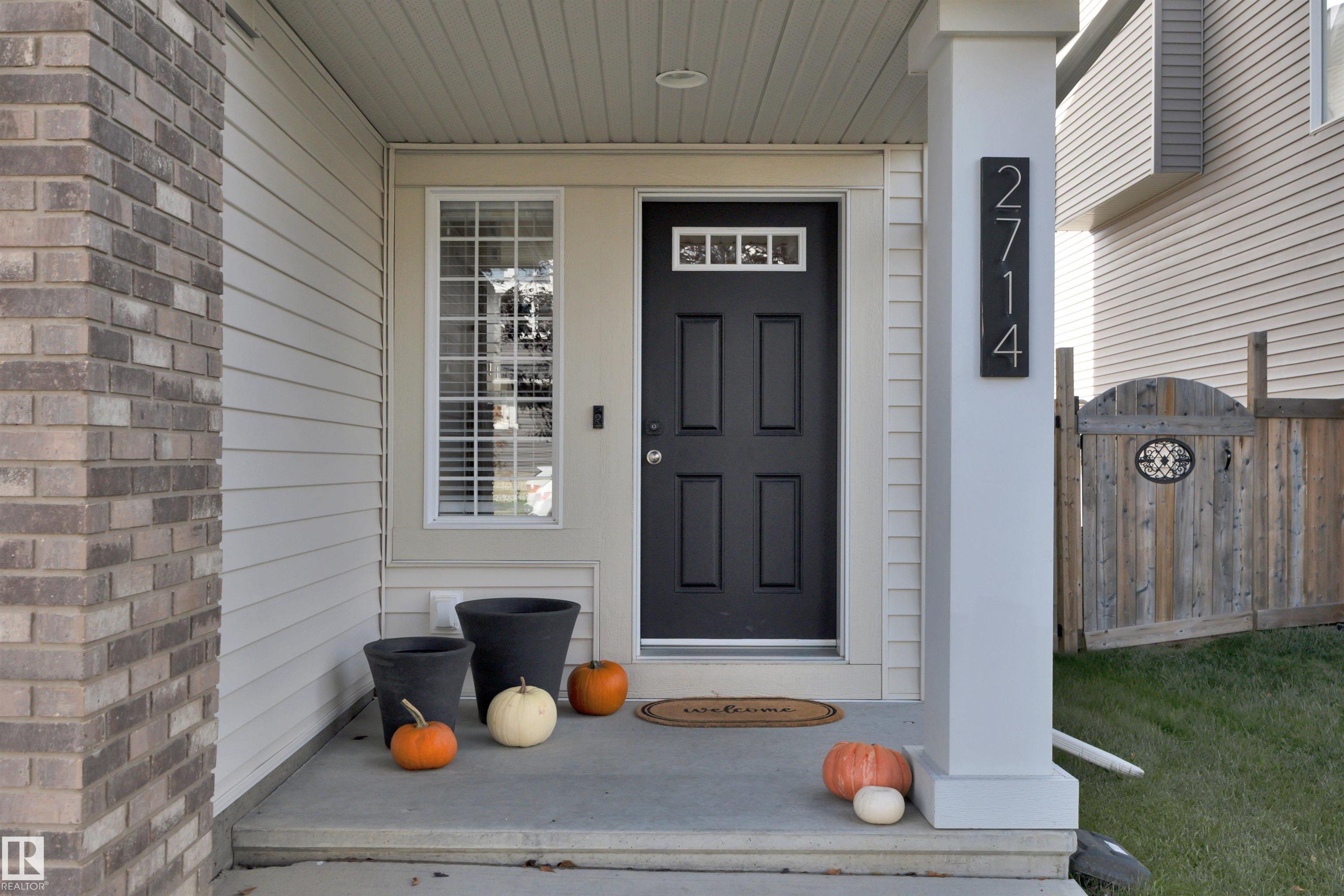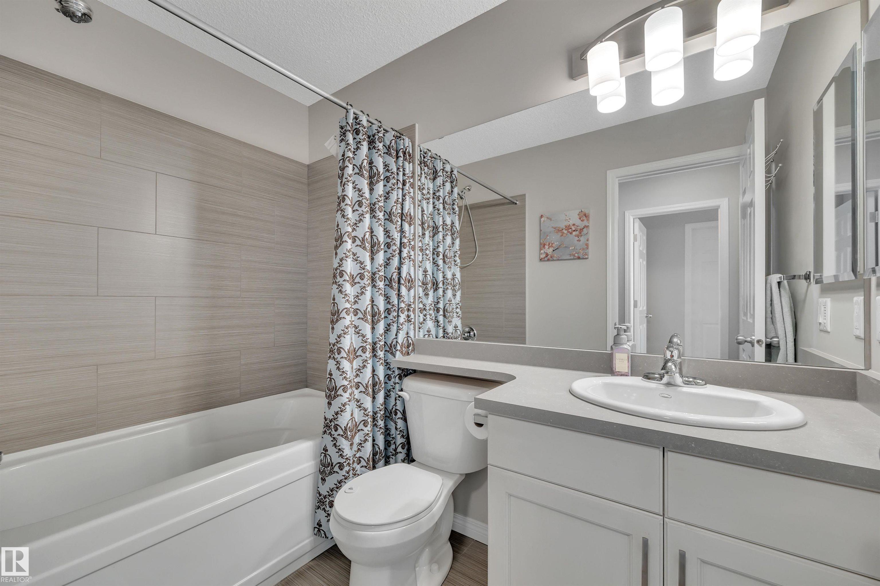Welcome to this 3-bedroom, 2.5 bath half duplex offering over 1700 sq ft of beautifully designed living space in one of Edmonton's most sought after communities. The open-concept main floor is ideal for entertaining, featuring a spacious kitchen with stainless steel appliances, quartz countertops, and a seamless flow into the dining and living areas, plus a convenient powder room for guests. Upstairs features 3 bedrooms, including a primary with ensuite, a bonus room , another 4-piece bathroom and upper-floor laundry. Stay comfortable year round with central A/C! The huge backyard backs onto a walking path for added privacy and out-door enjoyment. The basement is unfinished and awaits your special touch. Located in the heart of Chappelle gardens you can take advantage of the amenities including outdoor skating rink, walking trails, community gardens, basketball courts, and splash park. This meticulously maintained home is move in ready and includes a single attached garage
