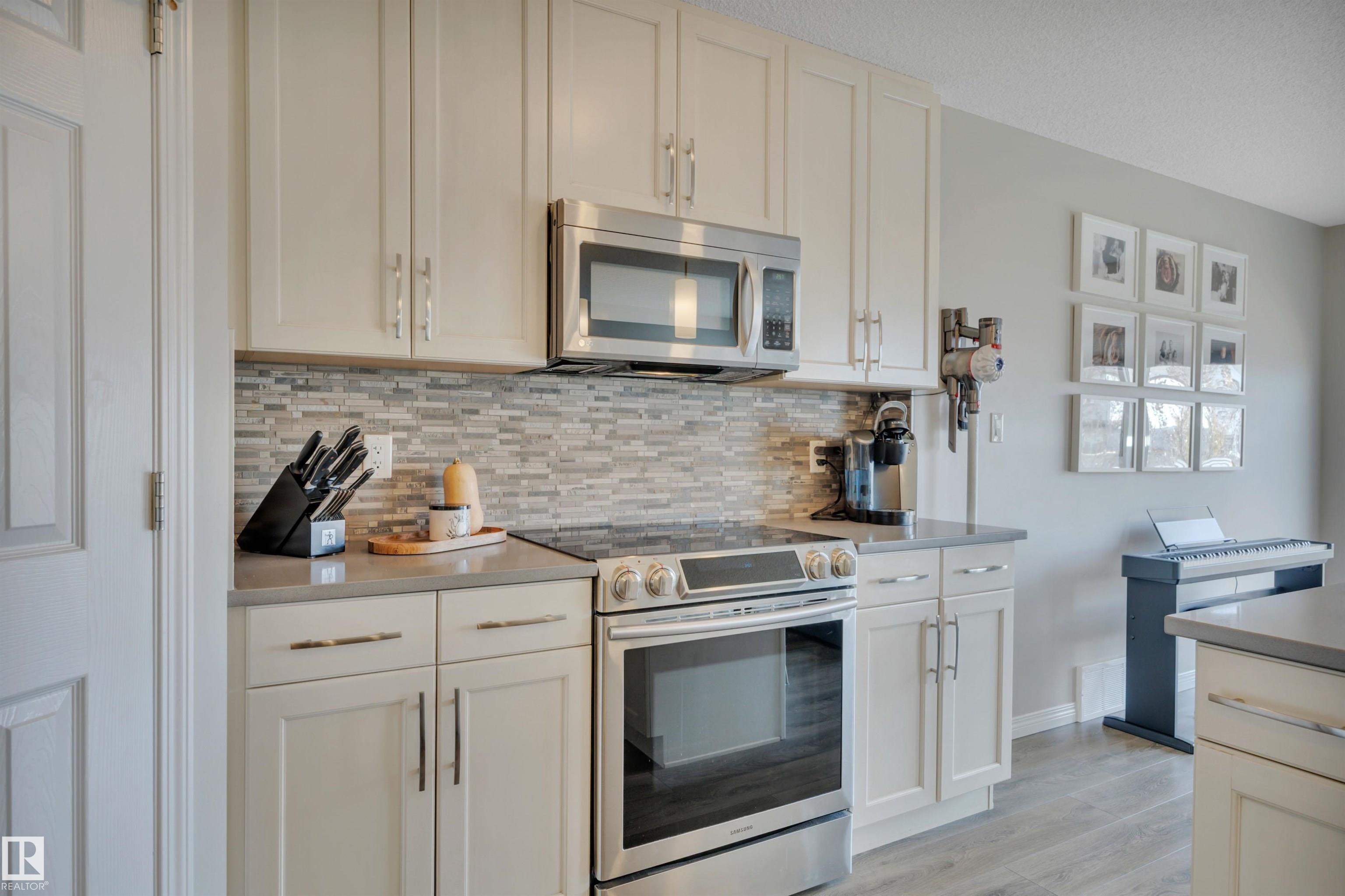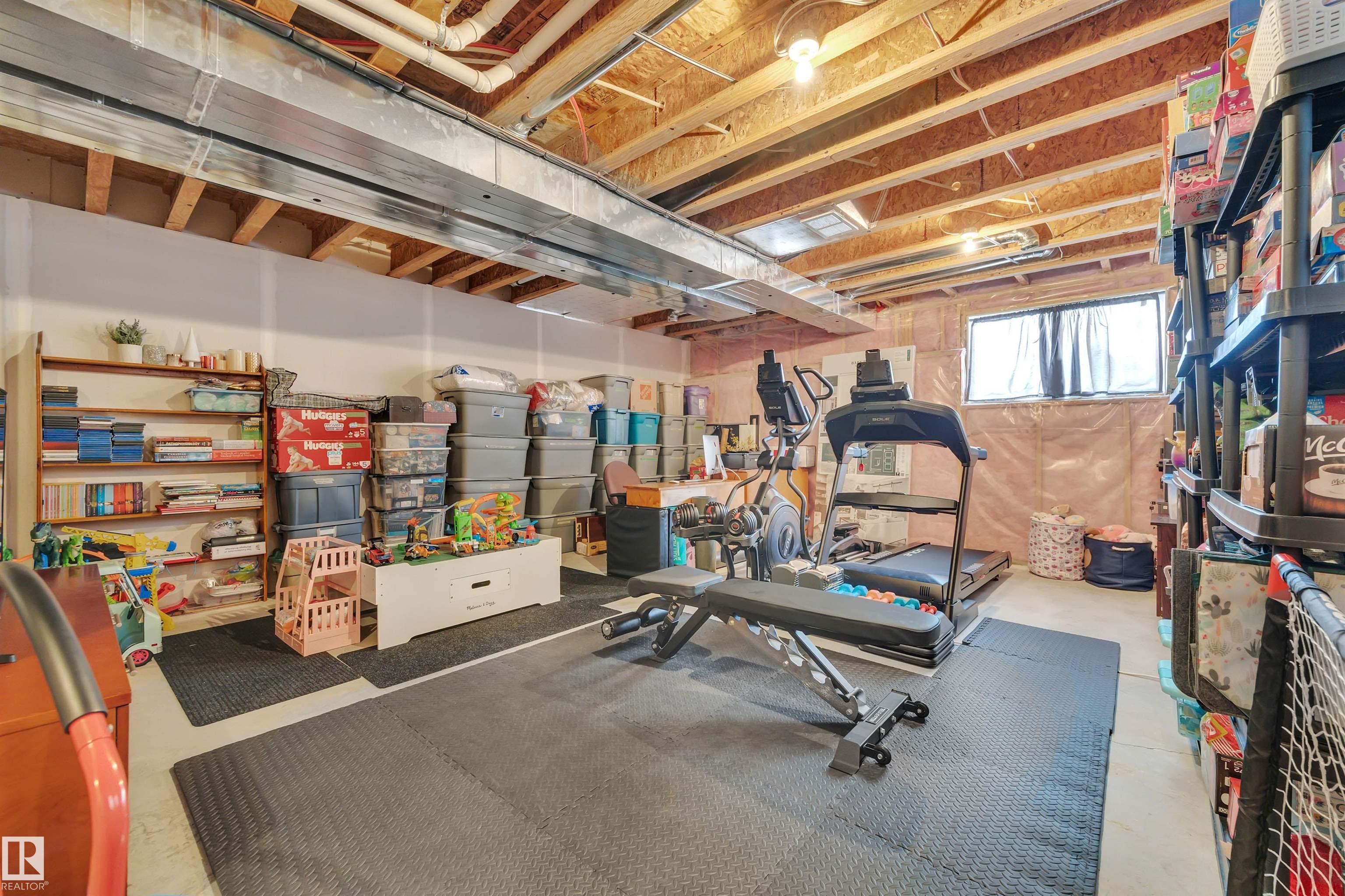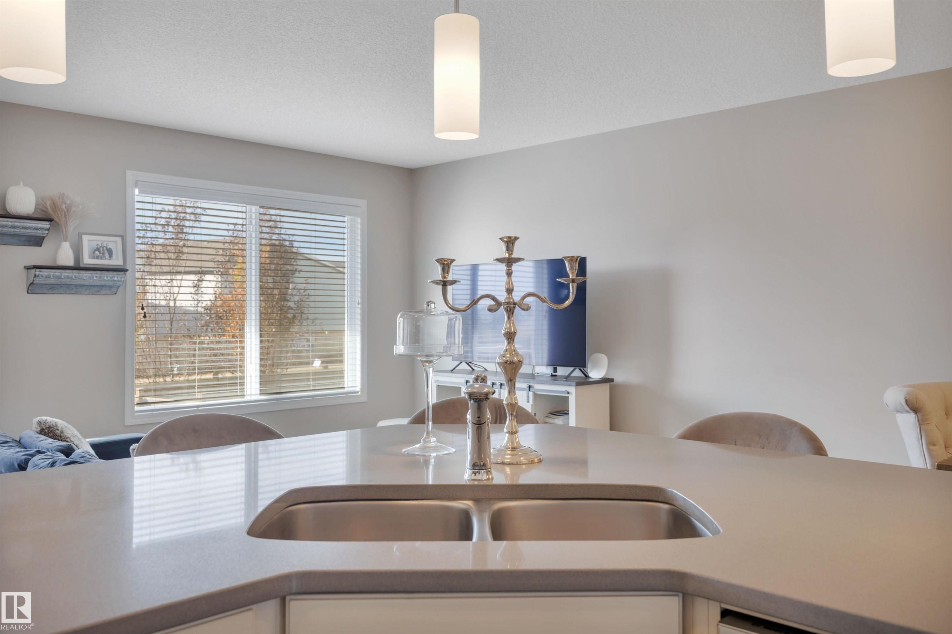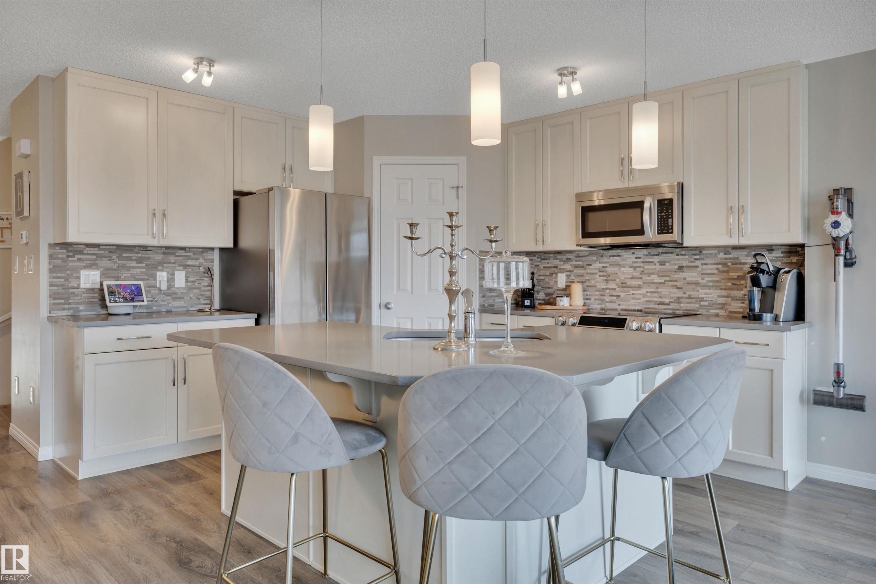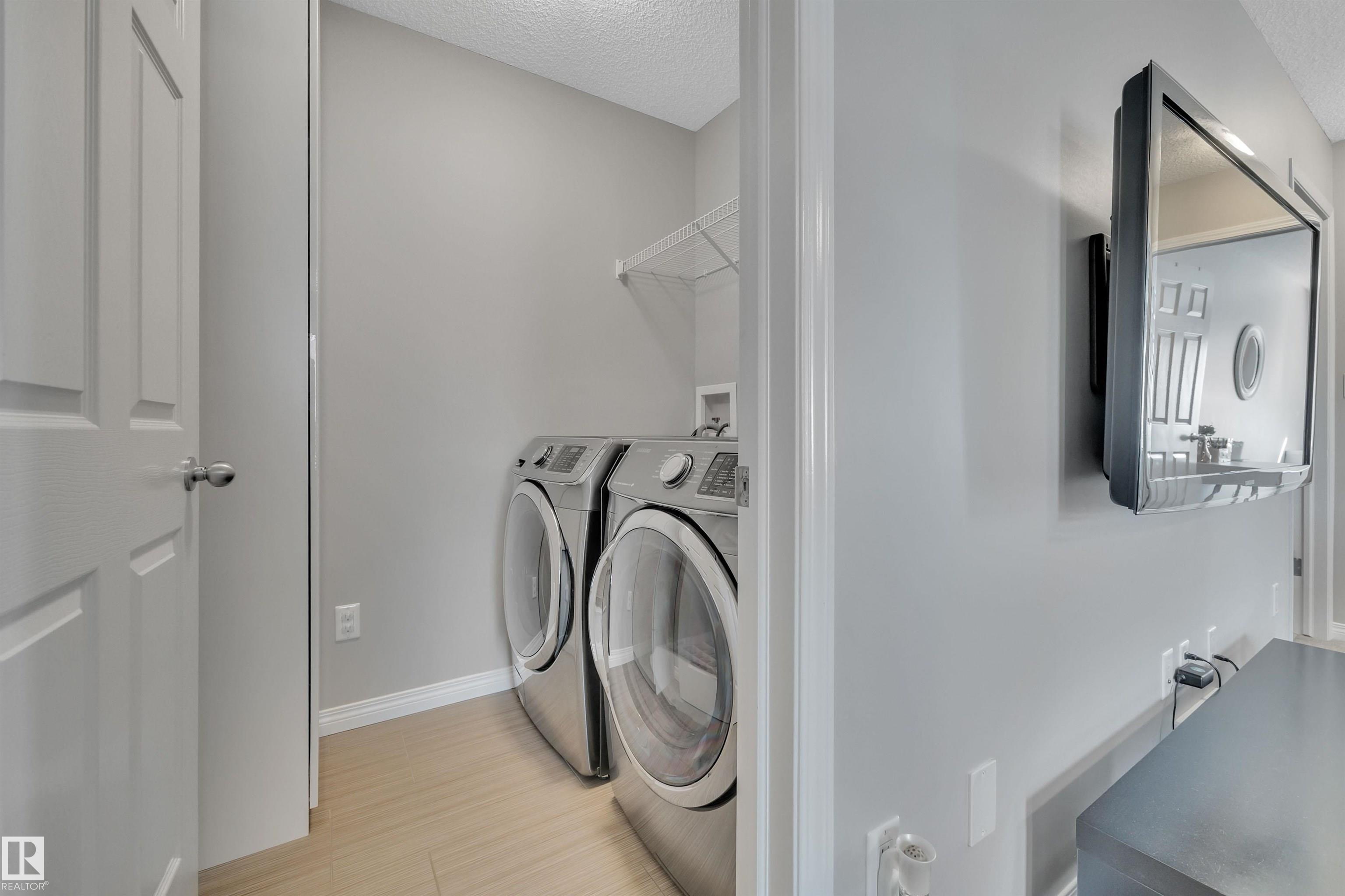 Welcome to this 3-bedroom, 2.5 bath half duplex offering over 1700 sq ft of beautifully designed living space in one of Edmonton's most sought after communities. The open-concept main floor is ideal for entertaining, featuring a spacious kitchen with stainless steel appliances, quartz countertops, and a seamless flow into the dining and living areas, plus a convenient powder room for guests. Upstairs features 3 bedrooms, including a primary with ensuite, a bonus room , another 4-piece bathroom and upper-floor laundry. Stay comfortable year round with central A/C! The huge backyard backs onto a walking path for added privacy and out-door enjoyment. The basement is unfinished and awaits your special touch. Located in the heart of Chappelle gardens you can take advantage of the amenities including outdoor skating rink, walking trails, community gardens, basketball courts, and splash park. This meticulously maintained home is move in ready and includes a single attached garage