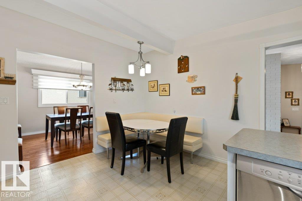 Welcome to this one-of-a-kind original owner, meticulously maintained, beautiful bungalow with attached garage in the heart of Evensdale, set on a large private lot. This well-appointed 4 bedroom, 2.5 bathroom home offers 1429 sq ft with a fully finished basement. A bright open-concept main floor anchored by an updated kitchen. Sunlit living and dining room with open beam ceiling & floor-to-ceiling front windows, flow seamlessly, highlighted by rich hardwood flooring. The main level includes a 4 pc bathroom, 2 generous bedrooms, and a spacious primary overlooking the yard, complete with a 2 pc ensuite. The fully finished basement adds a large cozy rec room anchored by a warm brick-faced wood fireplace, 1 additional bedroom, a 3 pc bathroom, and ample storage. Upgrades include hot water tank (2019), furnace & A/C (2018), and roof is Tar & Stone (2011) life expectancy of 30-40 years. Quiet location near schools, & all amentities.