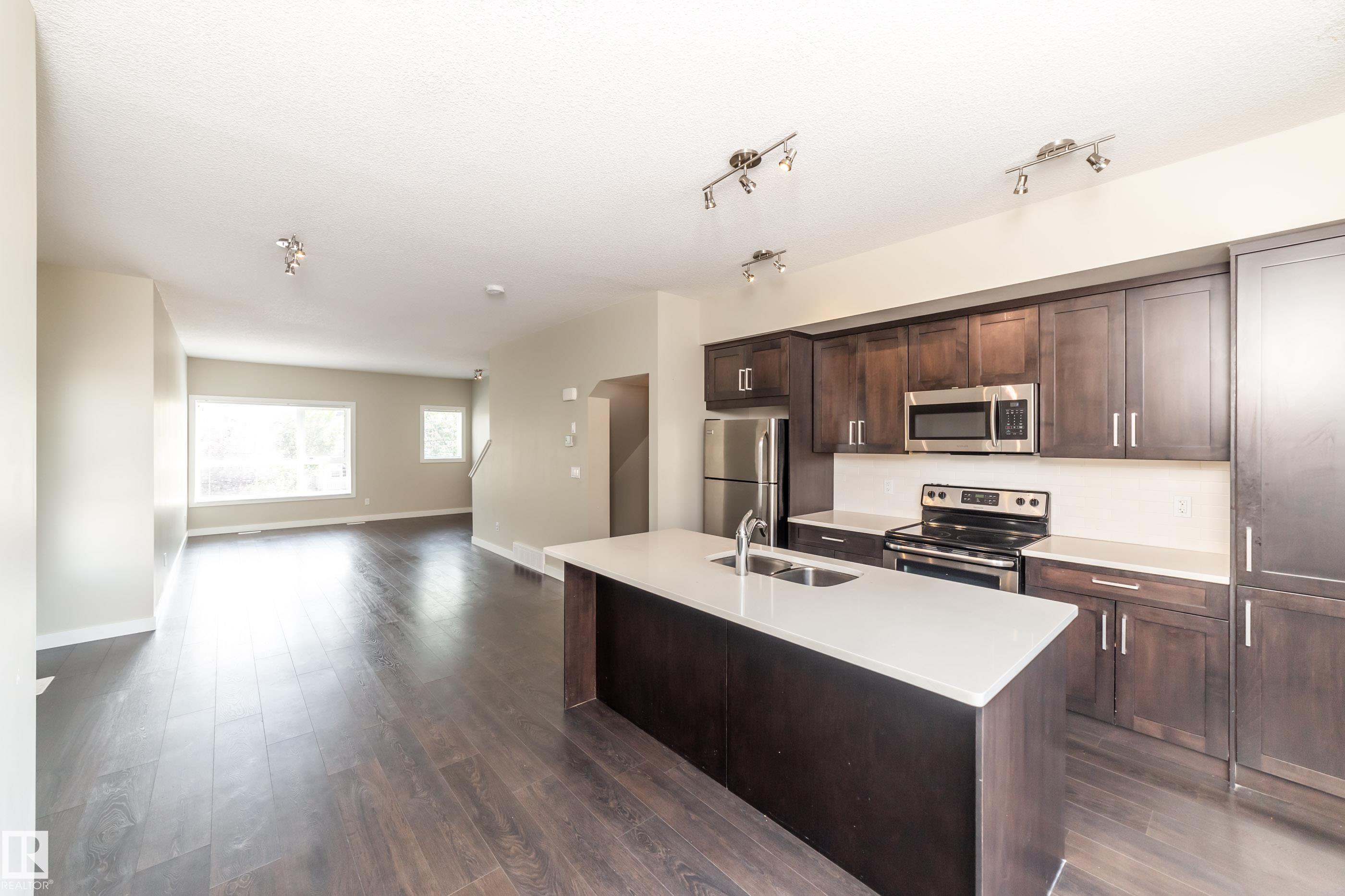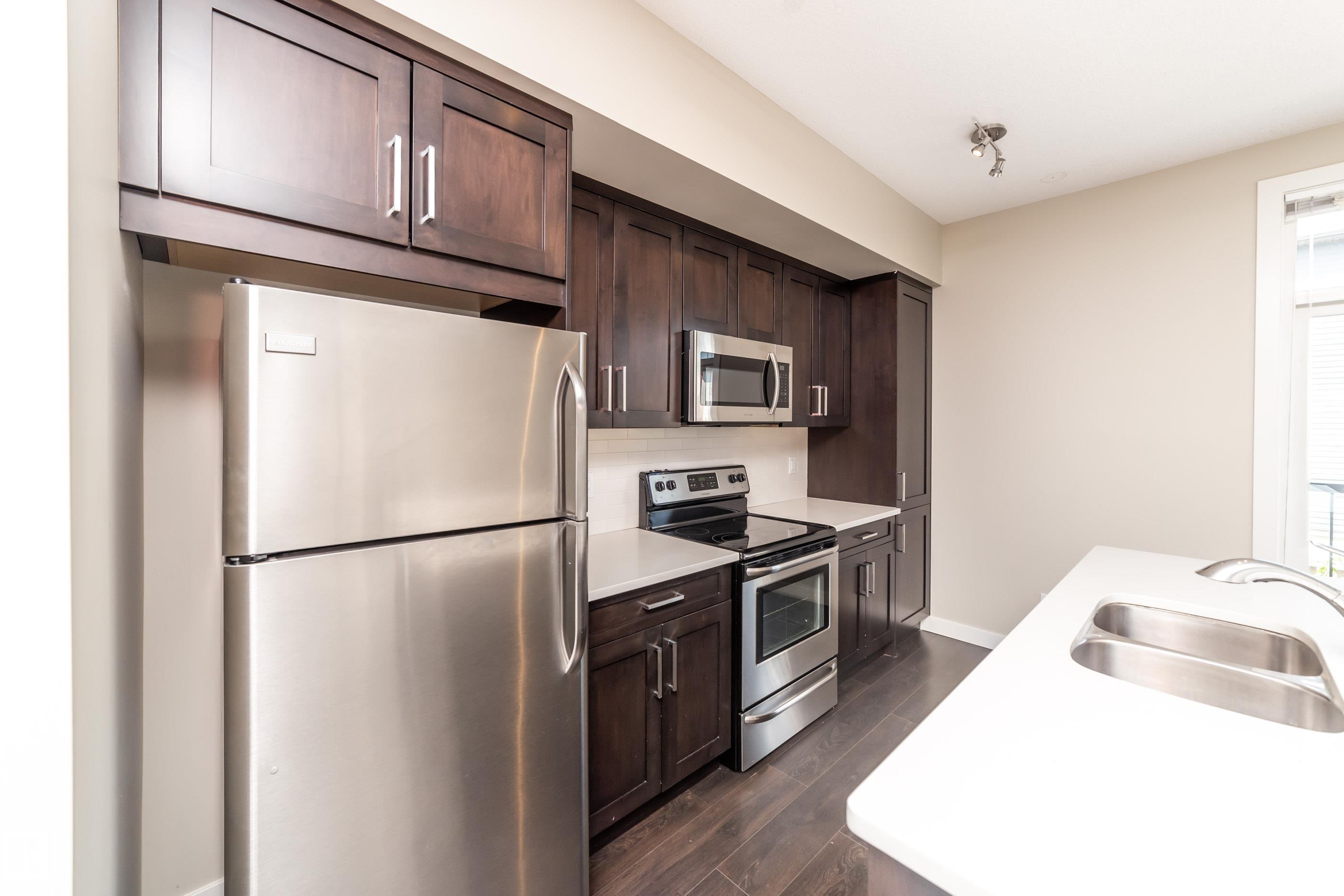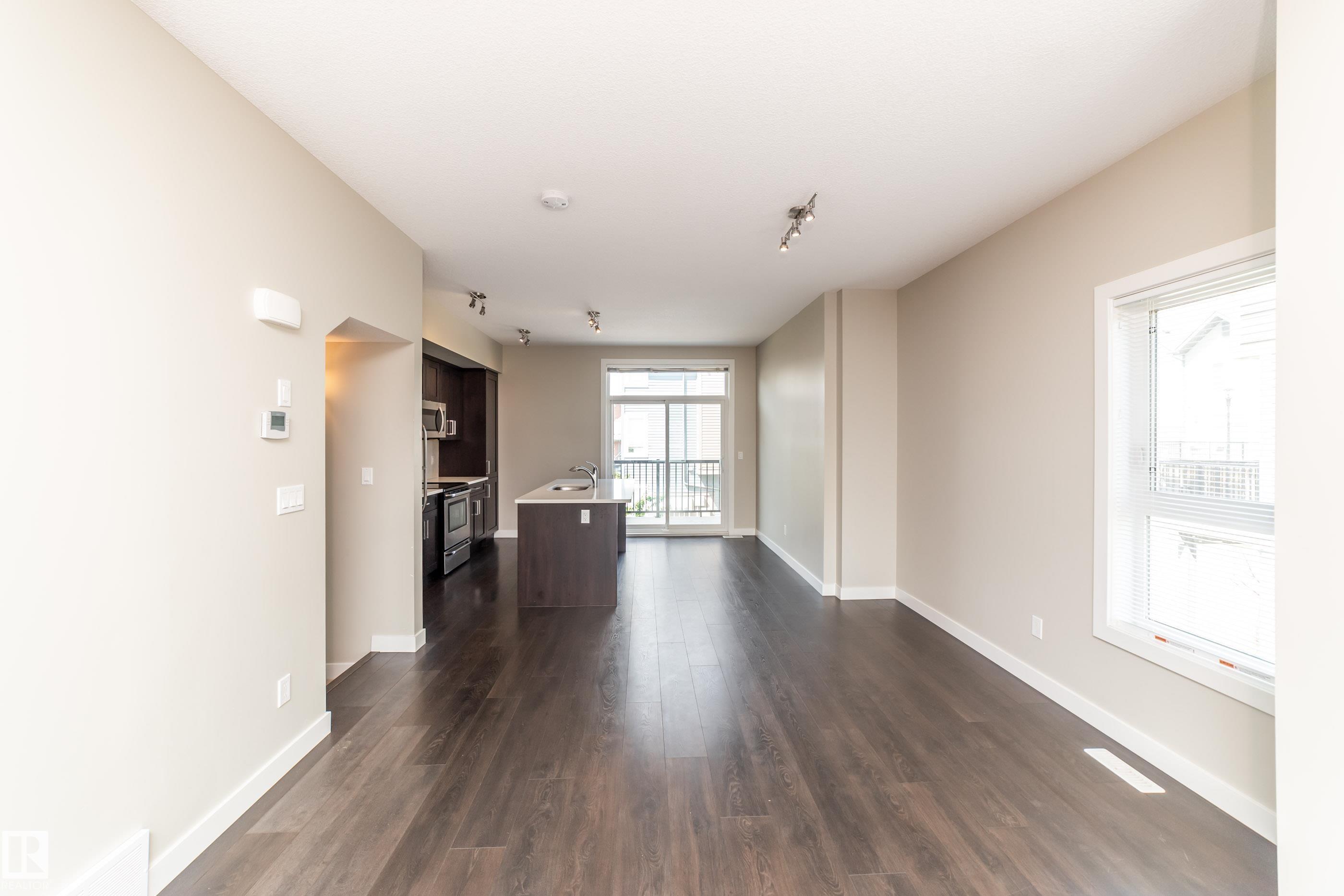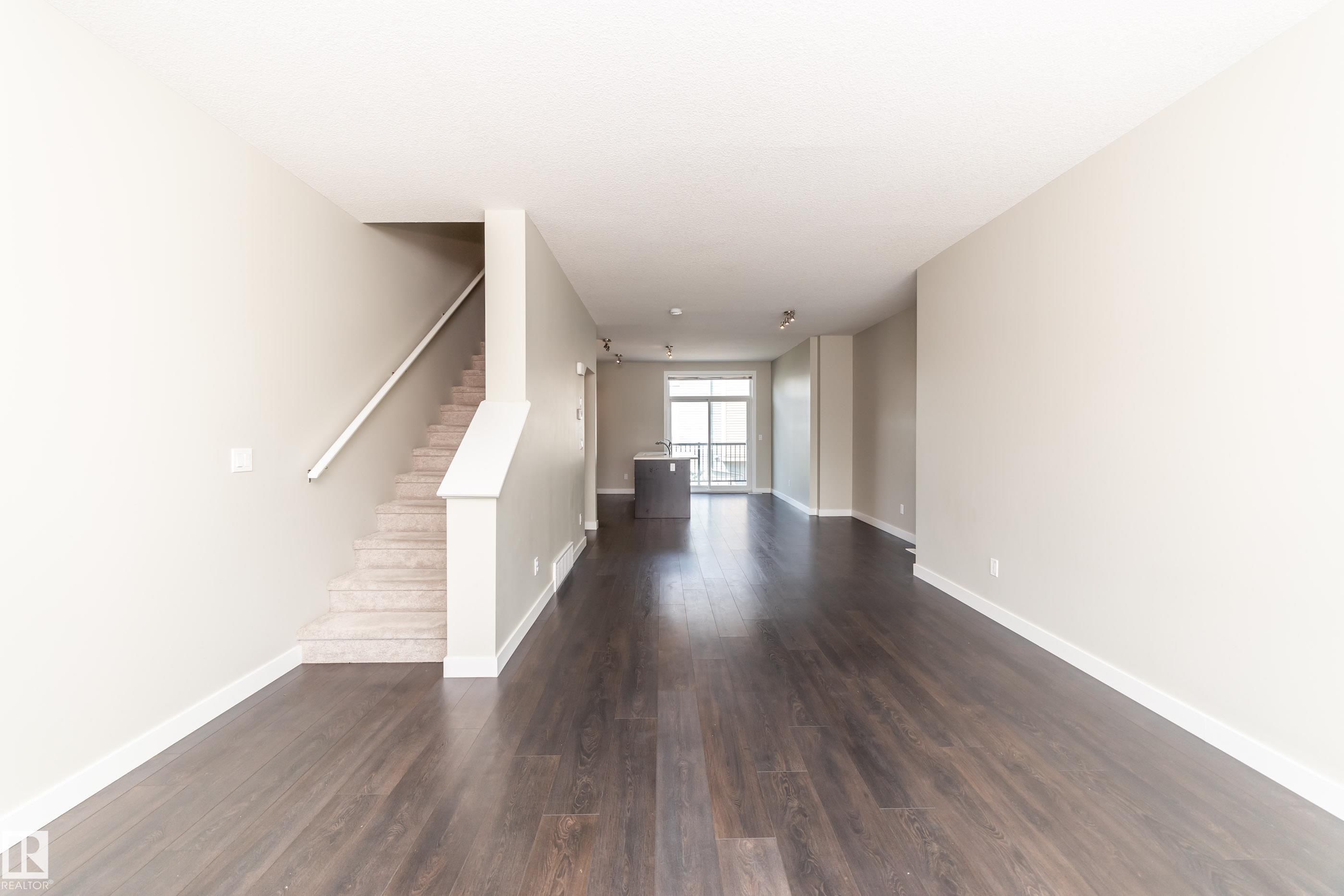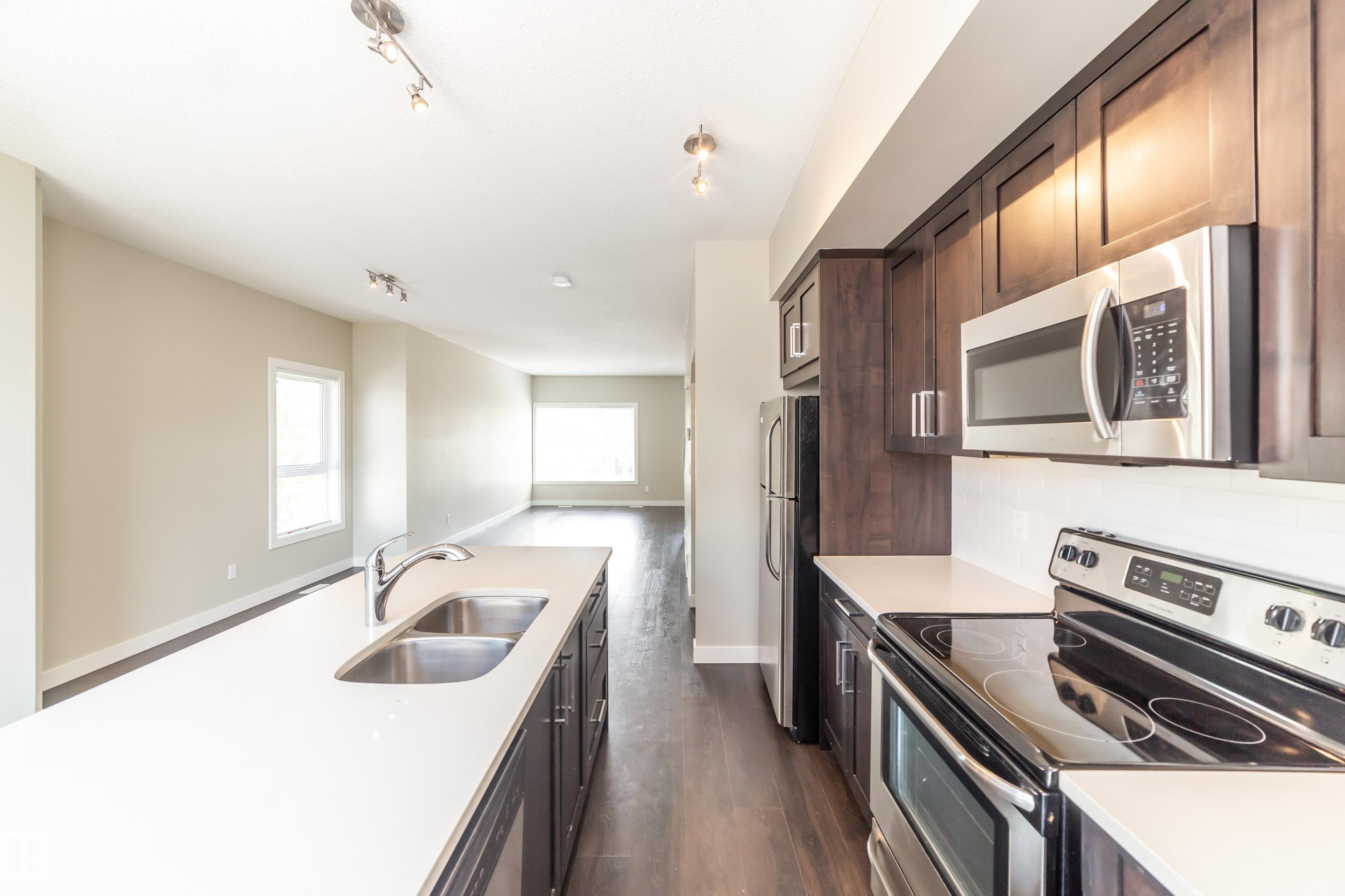 Welcome to Griesbach! Awarded this year as the Best Community in Canada, you are about to see why! This terrific END UNIT 3 bed, 2 bath, 1546 sq.ft. THREE STOREY townhouse is nothing shy of impressive. Your first floor begins with an attached garage, utility room, den & 2 piece bath. Upstairs to the 2nd storey to a generous open design floor plan showcasing a chef inspired kitchen you will LOVE. Beautiful cabinetry accented with stainless steel appliances & center island with breakfast bar. Access the balcony from the spacious dinette which is also open to the social living room with nice bright windows! Make your way upstairs to the 3 bedrooms, four piece main bath & laundry. The master features double closets & four piece ensuite. Relax and enjoy a 'maintenance free' lifestyle in this much desired community. Never cut grass or shovel snow again!!