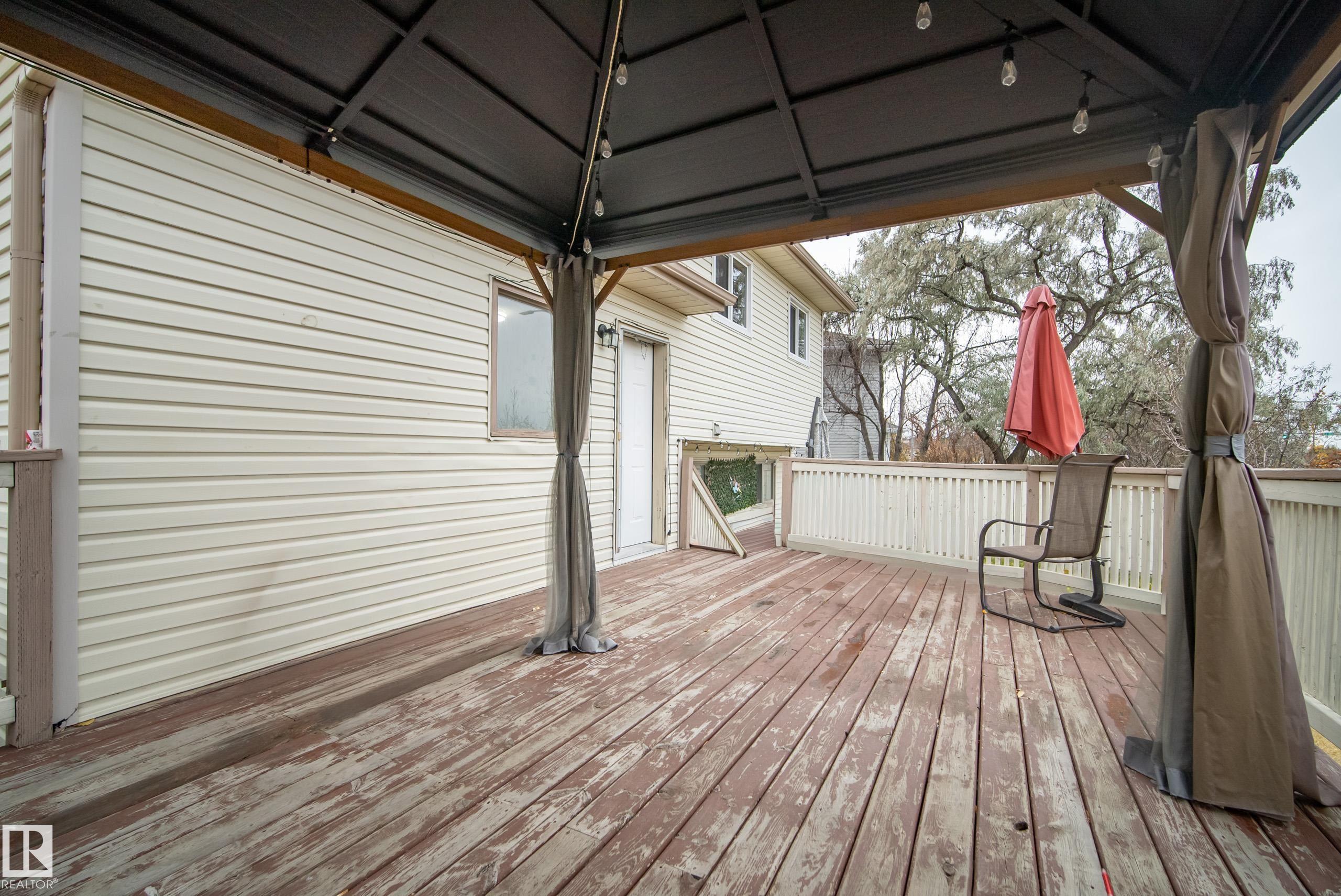 BEAUTIFUL FAMILY HOME ON A HUGE PIE LOT! Welcome to this spacious, impeccably maintained 4-level split in sought-after Matt Berry, tucked away in a quiet cul-de-sac--perfect for family living. Freshly painted with Poly-B fully replaced, this home offers peace of mind and style. The bright main floor features a large living room with picture window, formal dining area, and a stunning kitchen with granite countertops, solid oak cabinetry, stainless steel appliances, and a sunny breakfast nook leading to a west-facing deck--ideal for entertaining. Upstairs boasts a private primary suite with walk-in closet and ensuite, plus two additional bedrooms and a full bath. The cozy third level offers a family room with stone fireplace, bedroom, laundry, and full bath. The finished basement adds a huge rec room, cold room, and ample storage. Complete with a finished double garage, newer mechanical upgrades, and a massive fenced yard with fruit trees--this is the perfect place to call home!