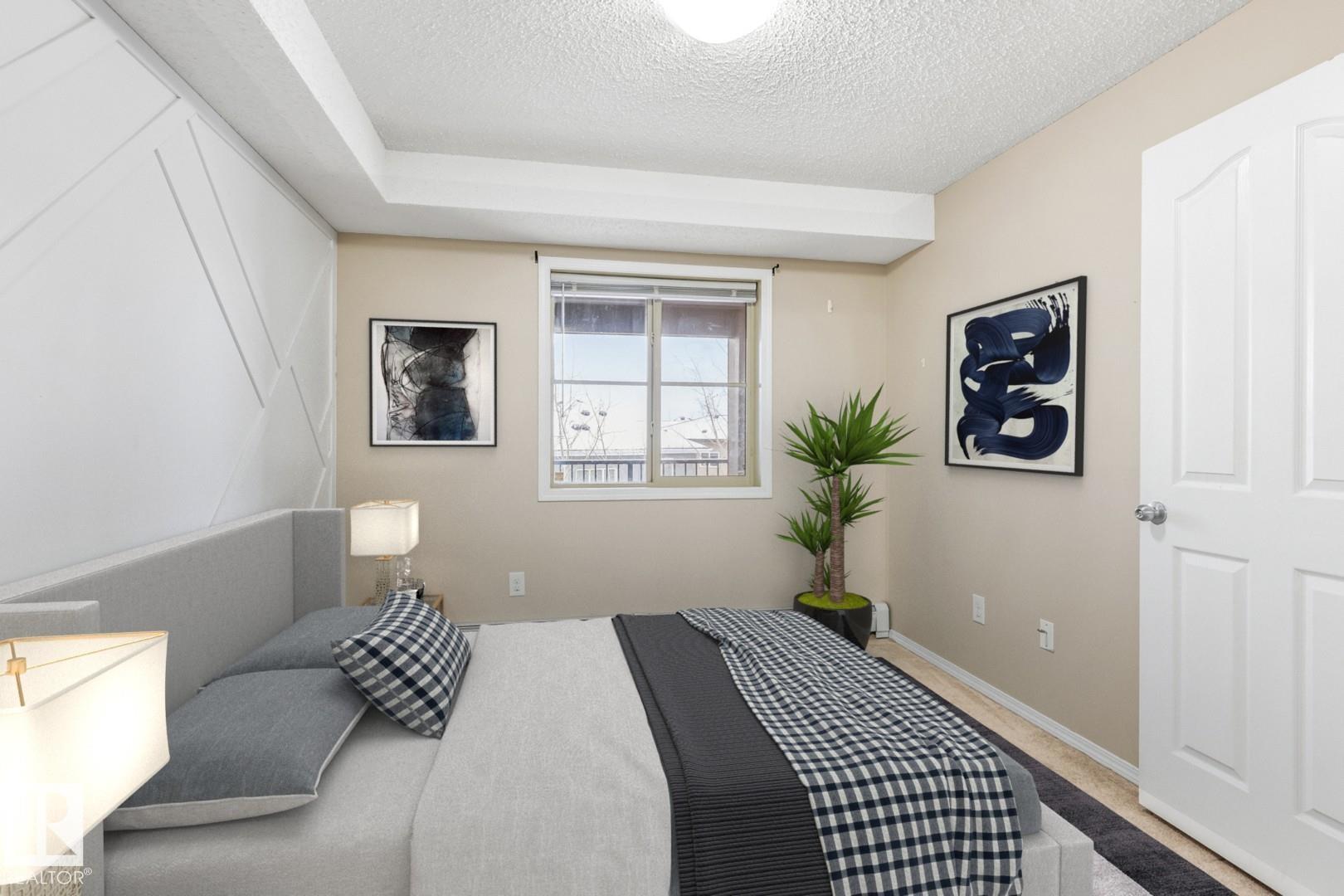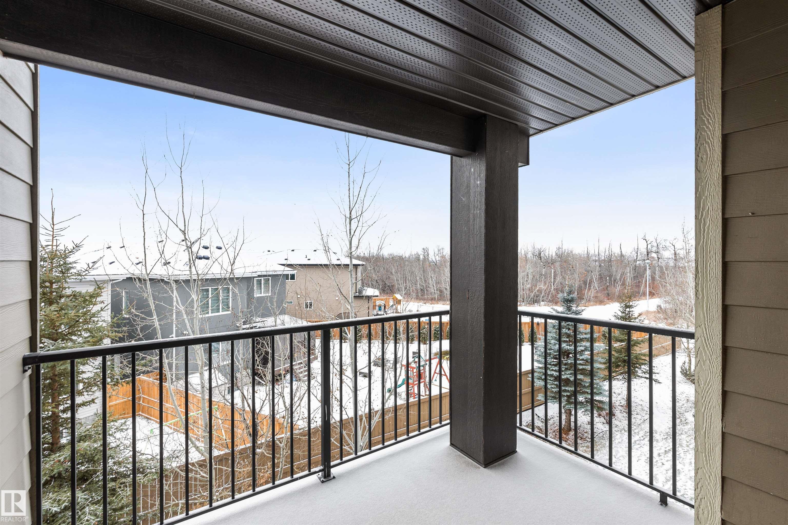 McConachie 2 bed +den, 2 full bath with a layout that truly feels like a home, crafted for real living. Soft east-facing light provides a calm, uplifting start each morning. The main living area offers impressive width and flow, easily accommodating full-size furnishings. The kitchen features rich maple cabinets, granite counters, a peninsula with extended prep space, and a black appliance package, creating a cohesive, warm aesthetic throughout. The den serves perfectly as a full dining area for hosting or a comfortable home office with room to work. Bedrooms sit on opposite sides for balance and privacy. The primary includes a walk-through closet and a 4-pc ensuite with granite and tile finishes, while the second bedroom has access to another full 4-pc bath. In-suite laundry adds convenience. The balcony is a meaningful extension of your living space with room for a BBQ. Parking is an energized stall close to the building for easy access. A home with substance, thoughtful flow, and refined finishes.