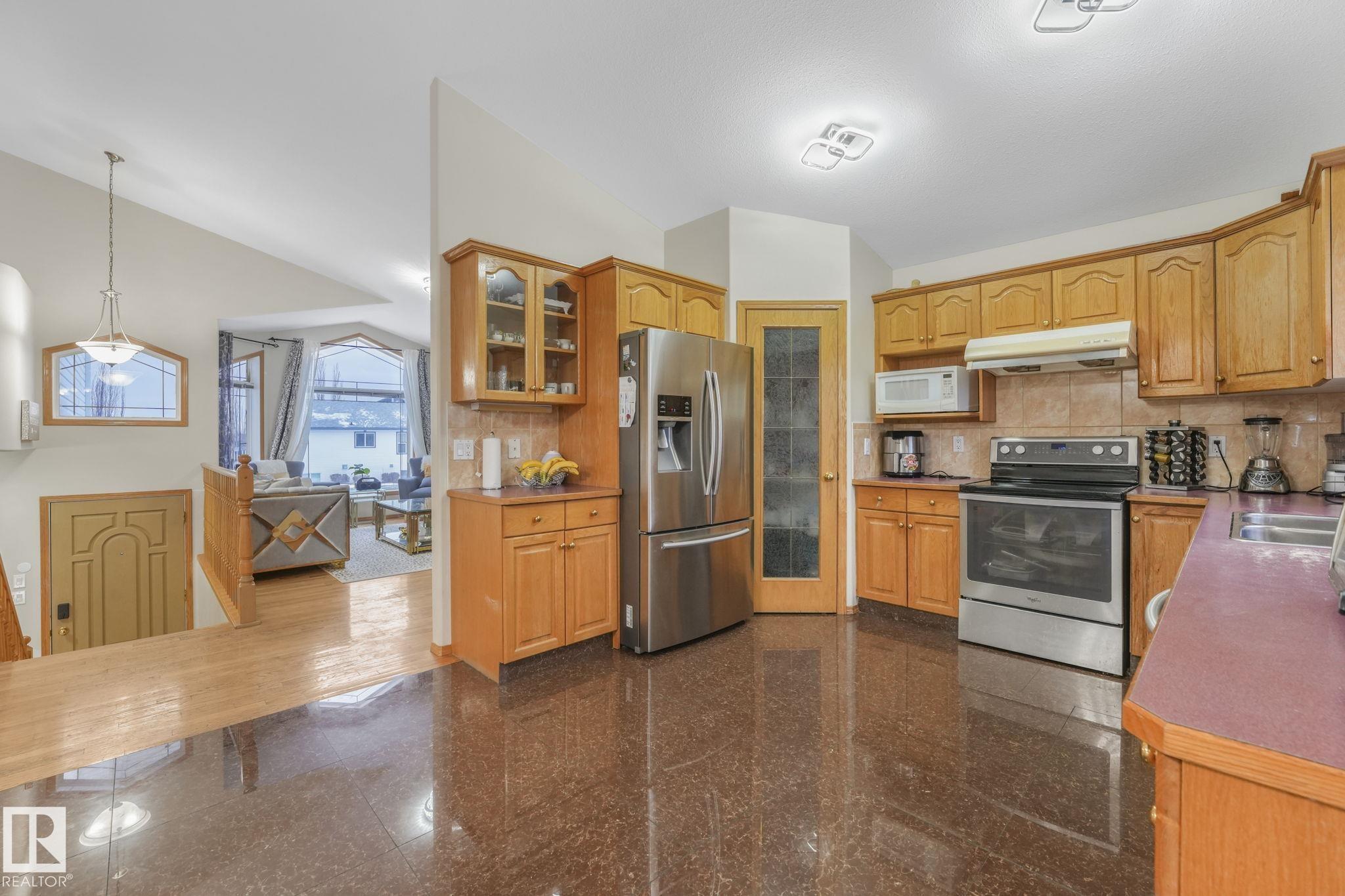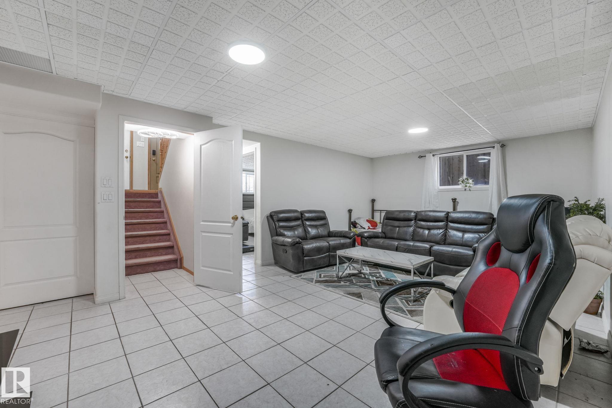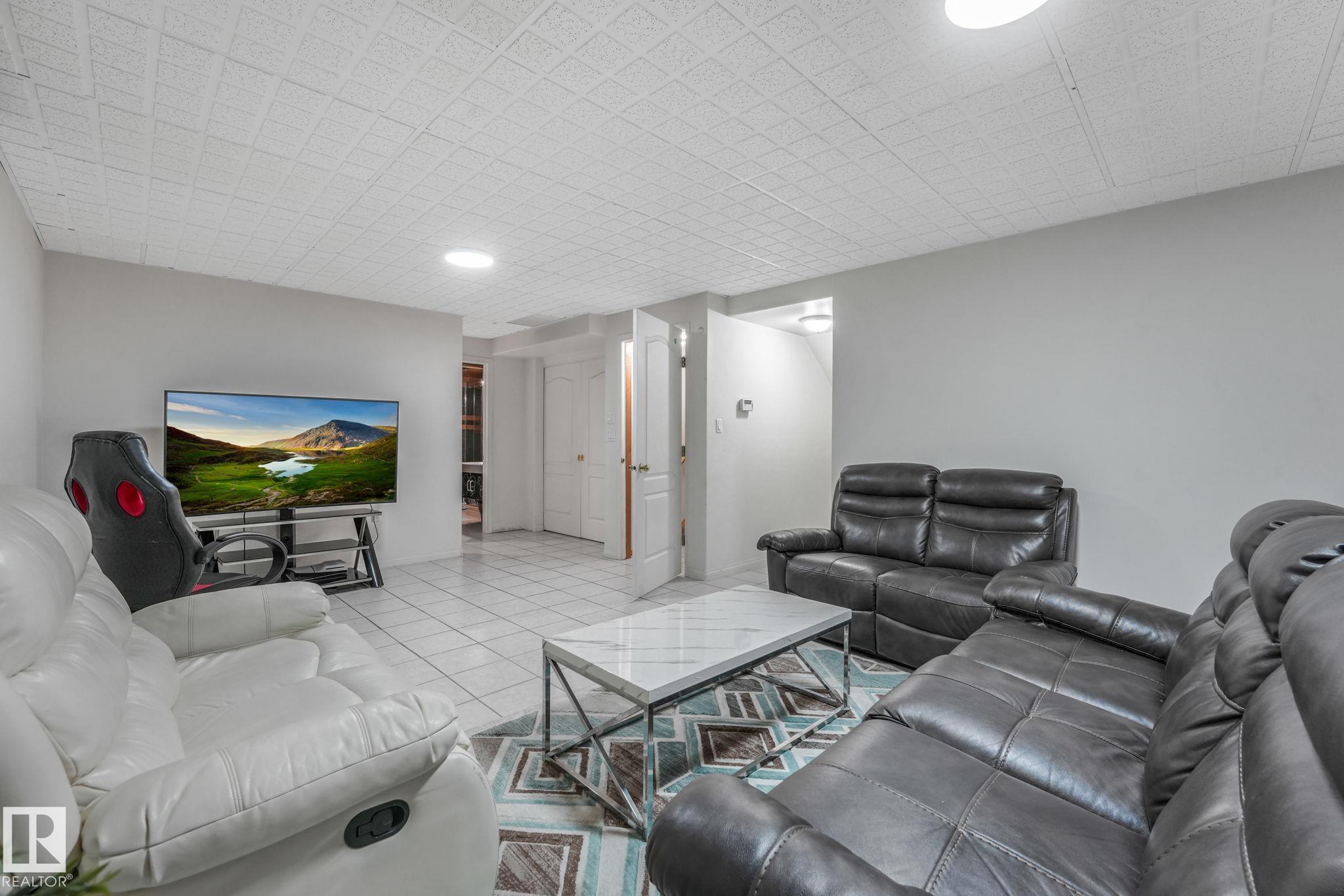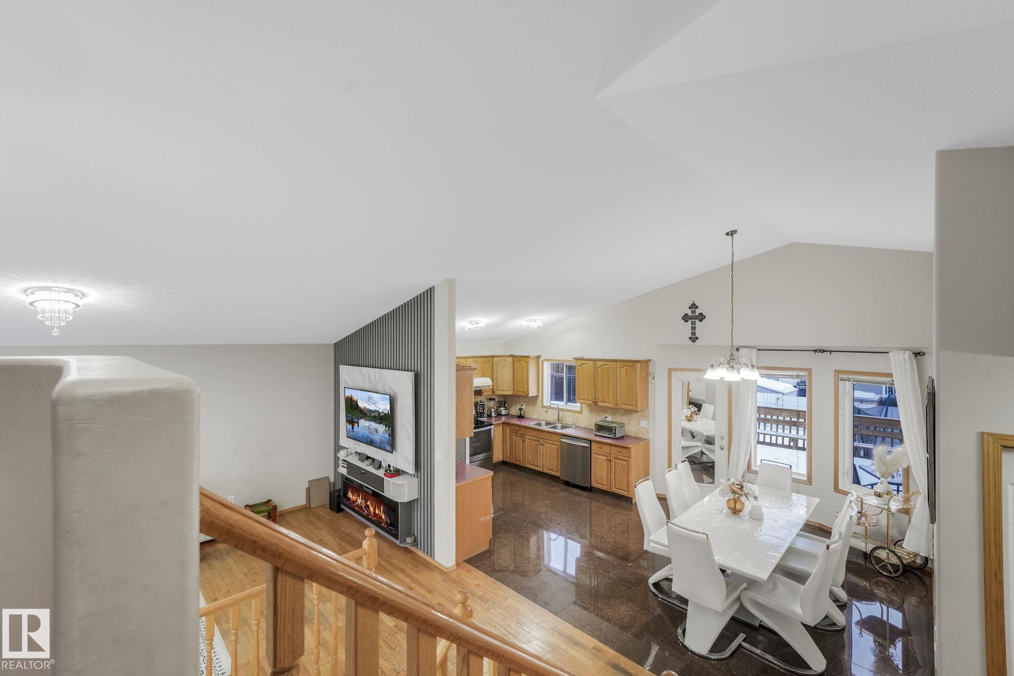 STUNNING Bi-level in Miller! This 5 bed/3 bath home features VAULTED ceilings, dbl attached garage, 3 storage sheds, EXTENDED DRIVEWAY & ample street pkg. Main flr offers a bright living room anchored by a custom architectural media wall w/ vertical slats, marble-inspired surround, floating cabinetry, wall-mounted TV, modern linear ELECTRIC FIREPLACE, & spacious dining area w/ access to a LARGE north-facing DECK. Well-equipped kitchen w/ ample cabinetry, tile backsplash, NEW STAINLESS STEEL appliances(2024), & walk-in pantry. Two bedrooms & 3 pce bath complete main lvl. The HUGE upper-lvl primary bedroom has walk-in closet & 4-pce ensuite. Bsmt w/ large family room, 2 addt'l bedrooms, & 3-pce bath. Fully fenced yard, close to schools, shopping, parks, transit, & Henday. Bsmt comes w/separate thermostats, water filter, IN-FLOOR HEATING, tankless water heater, & NEW ROOF (2024). All new light fixtures & remote-controlled round LED ceiling light throughout & high gloss ceramic tile floors. Welcome home!
