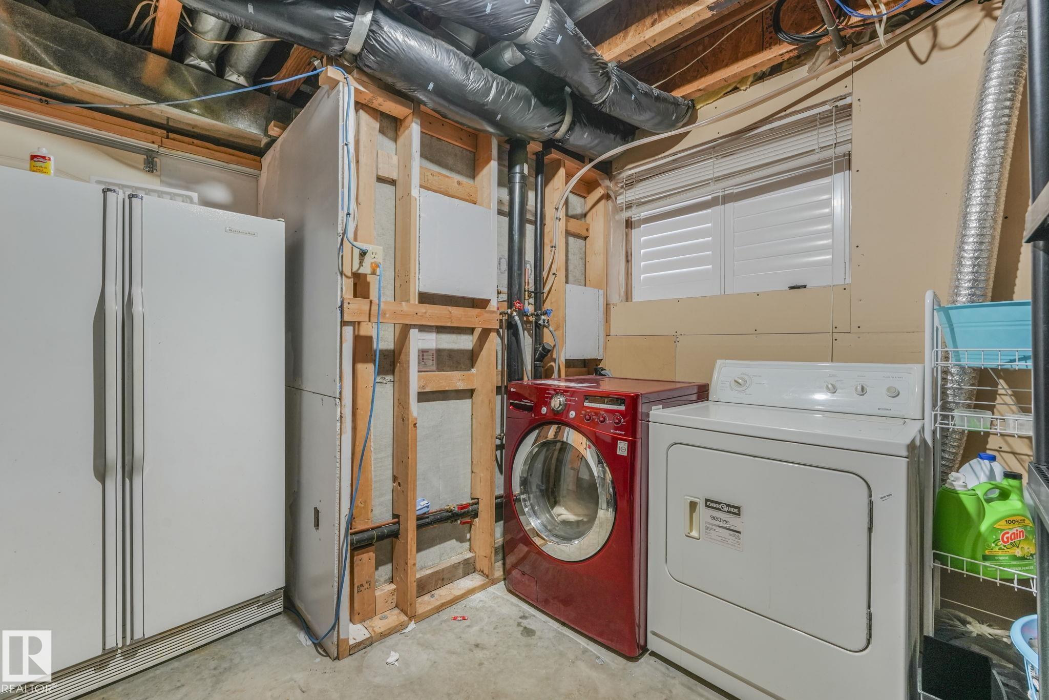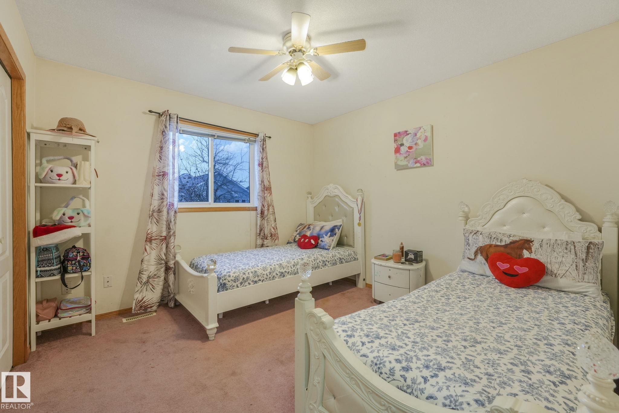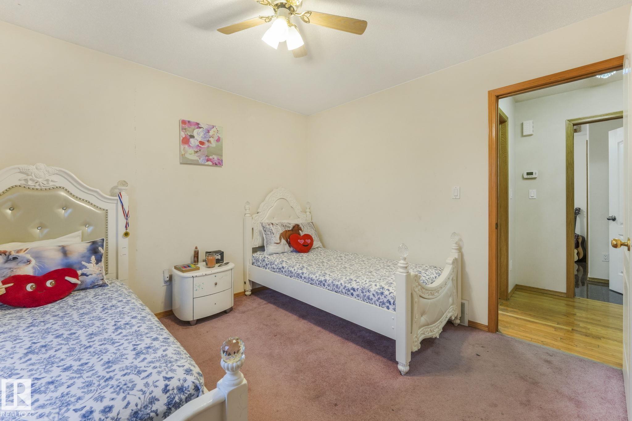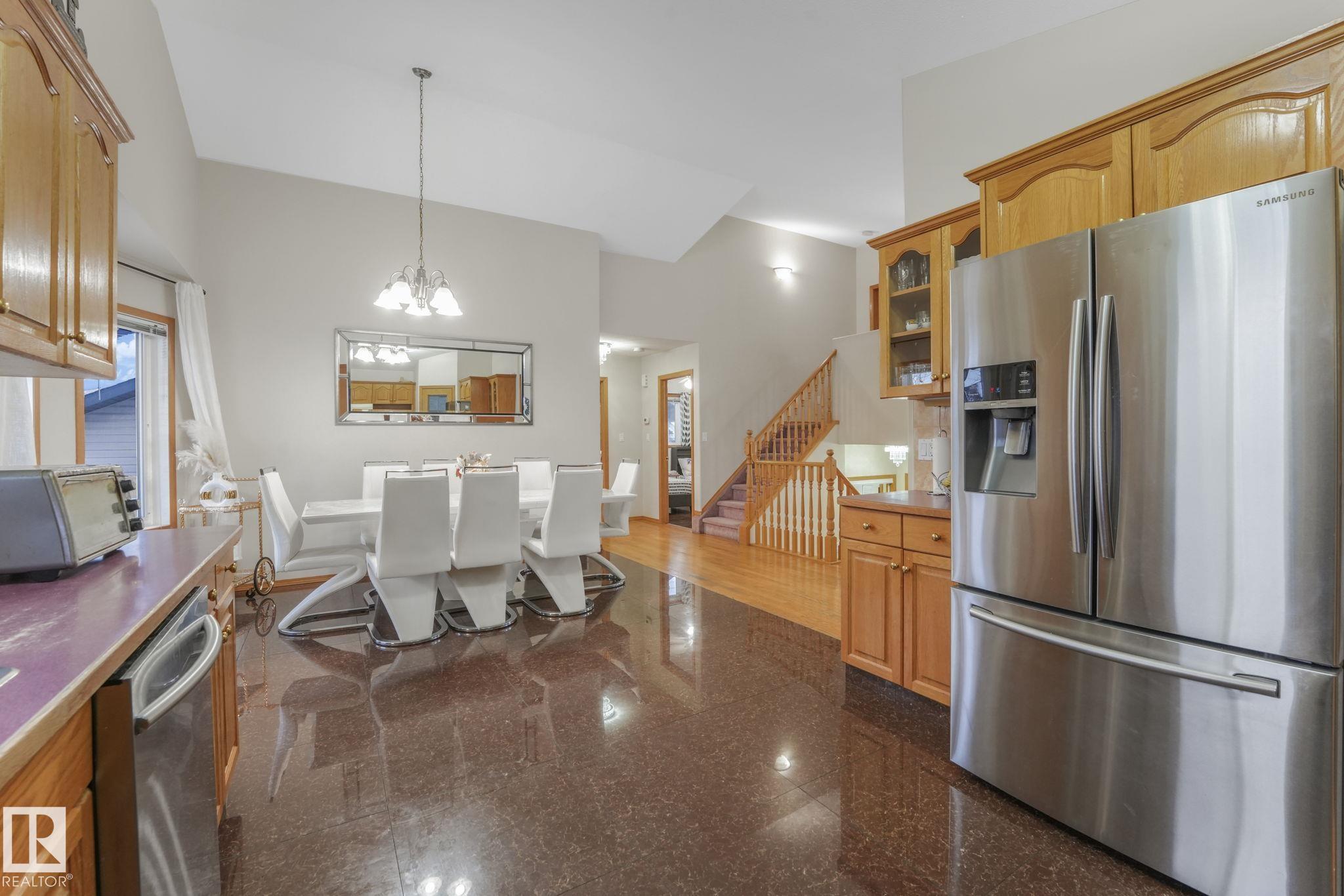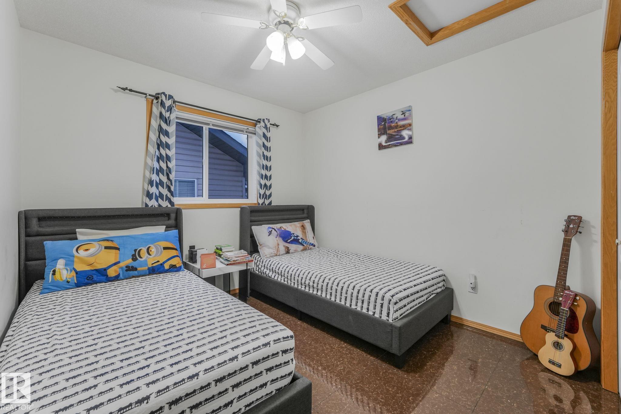 STUNNING Bi-level in Miller! This 5 bed/3 bath home features VAULTED ceilings, dbl attached garage, 3 storage sheds, EXTENDED DRIVEWAY & ample street pkg. Main flr offers a bright living room anchored by a custom architectural media wall w/ vertical slats, marble-inspired surround, floating cabinetry, wall-mounted TV, modern linear ELECTRIC FIREPLACE, & spacious dining area w/ access to a LARGE north-facing DECK. Well-equipped kitchen w/ ample cabinetry, tile backsplash, NEW STAINLESS STEEL appliances(2024), & walk-in pantry. Two bedrooms & 3 pce bath complete main lvl. The HUGE upper-lvl primary bedroom has walk-in closet & 4-pce ensuite. Bsmt w/ large family room, 2 addt'l bedrooms, & 3-pce bath. Fully fenced yard, close to schools, shopping, parks, transit, & Henday. Bsmt comes w/separate thermostats, water filter, IN-FLOOR HEATING, tankless water heater, & NEW ROOF (2024). All new light fixtures & remote-controlled round LED ceiling light throughout & high gloss ceramic tile floors. Welcome home!