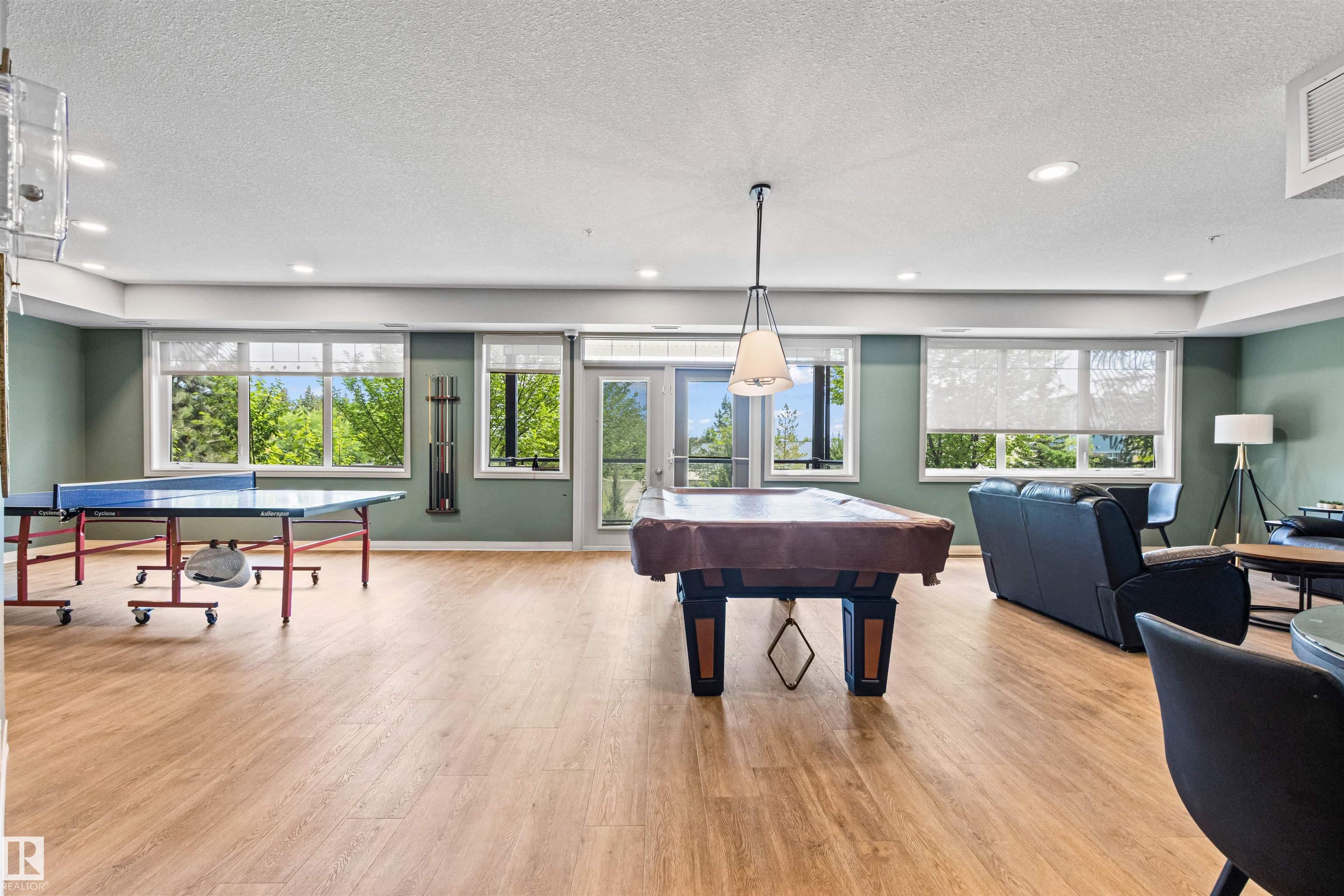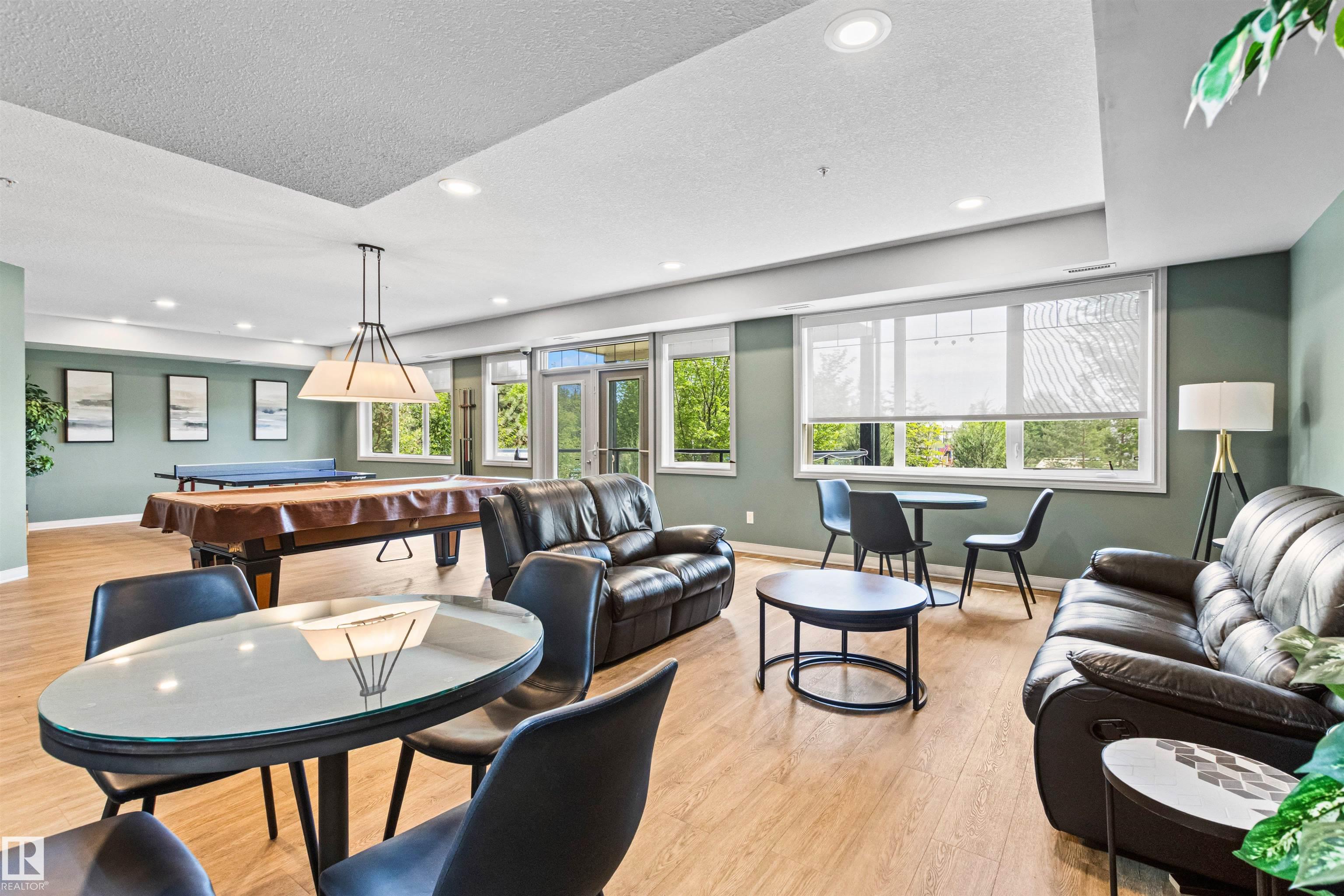 18+ living at its finest! Amazing home in a pet friendly, well managed, secure building with a healthy reserve fund! New carpets & new paint throughout give this 2 bed / 2 bath home a fresh new feel! Enjoy a main living area with maple kitchen, maple hardwood floor, S/S appliances, 9 foot ceilings, central A/C & cozy corner gas F/P. The primary suite has walk through his & her closets & a 3 piece ensuite. The good size 2nd bedroom, 4 pc main bath & in suite laundry room with ample storage space, complete the home. Spacious covered patio with view of a park is great for relaxing & very convenient for walking the dog(s). The extensive list of amenities includes a fitness center, guest suite, social room, meeting room, library, sauna, steam room, bike storage room & car wash bay. There is in suite storage plus an additional storage locker in front of your heated underground parking stall. Quiet location, close to walking/bike trails, parks, shopping, Anthony Henday & future Capital Line LRT station.