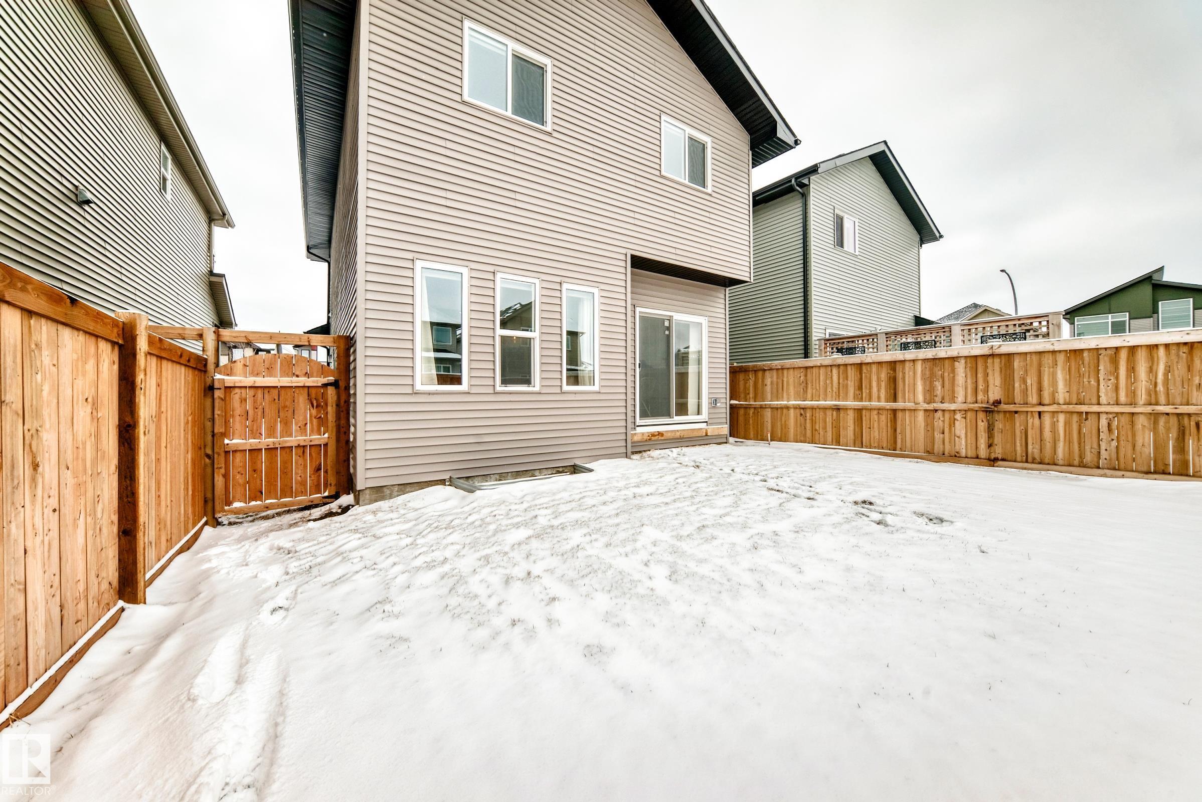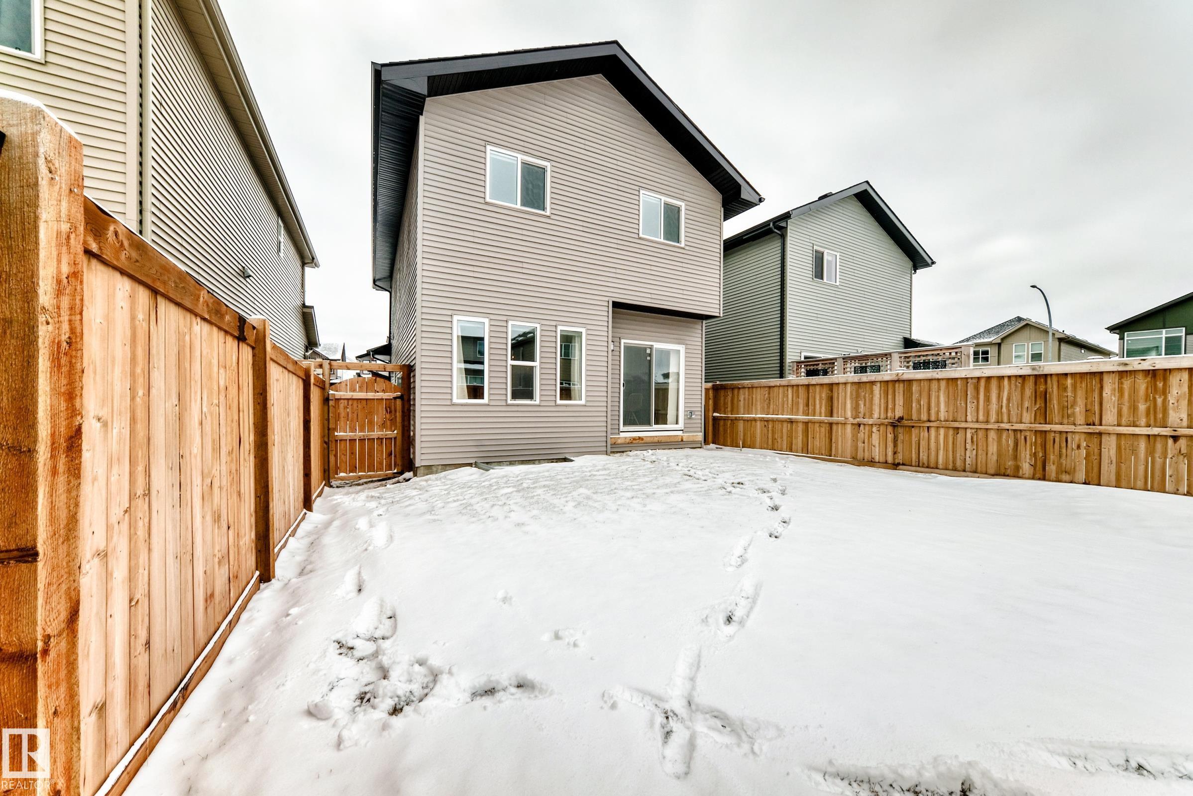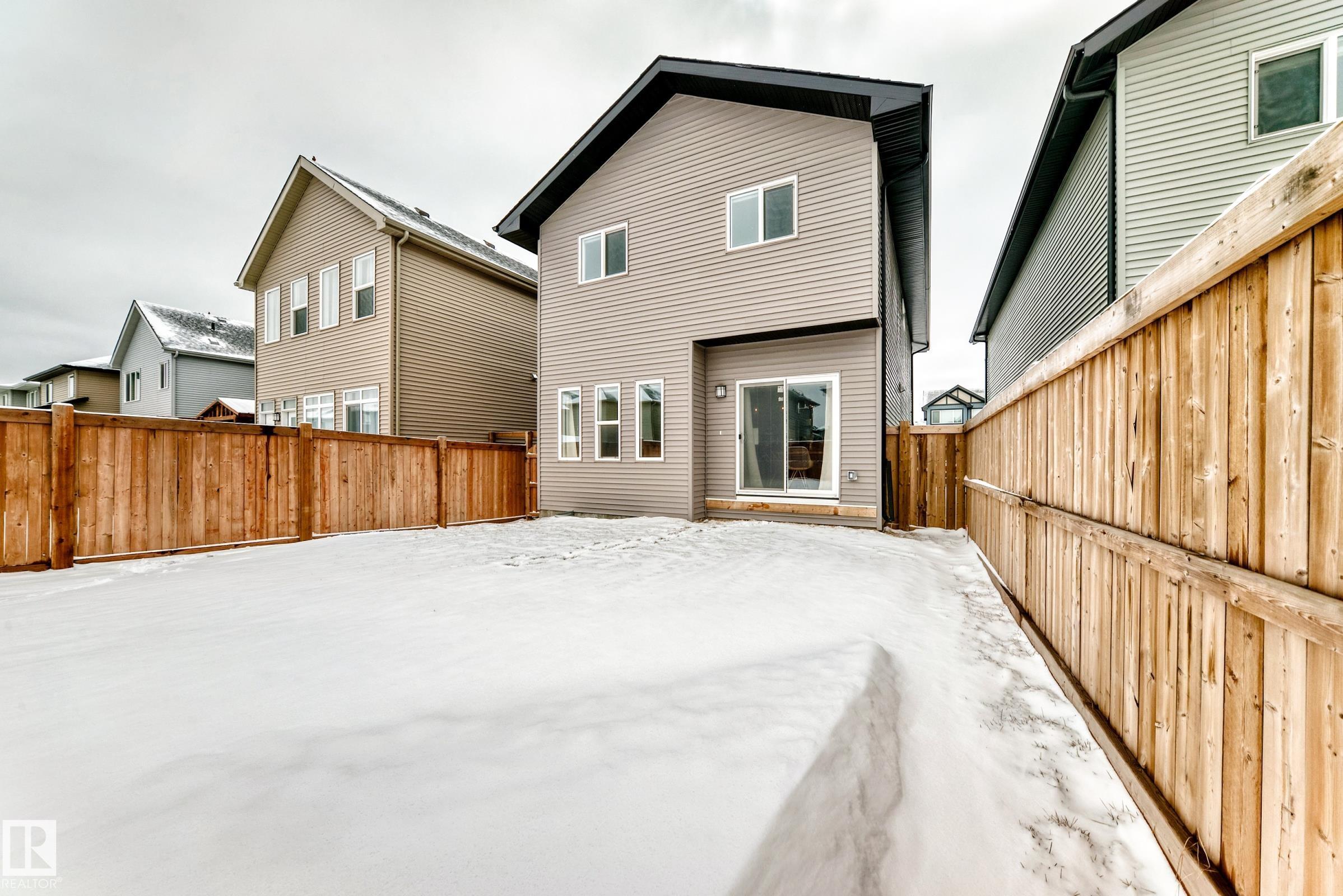 This better-than-new 3-bedroom, 2.5-bath home showcases a bright, spacious layout designed for modern living. The chef's kitchen features a chimney hood fan, stainless steel appliances, and timeless finishes that elevate the space. Upstairs, a generous bonus room is ready for entertaining. The spacious primary retreat with a spa-like ensuite offers a relaxing escape, along with two additional bedrooms perfect for family or hobbies. Enjoy year-round comfort with central A/C and the added benefit of a water softener. Control with a smart thermostat and motor blinds. A separate side entrance provides potential for future basement development - ideal for a suite or expanded family space. All of this sits on a rare full width traditional lot. Located steps from a school and minutes to shopping, including Costco and WEM, with quick access to Anthony Henday and Whitemud, this home delivers comfort, convenience, and long-term value in one of West Edmonton's top neighbourhoods.