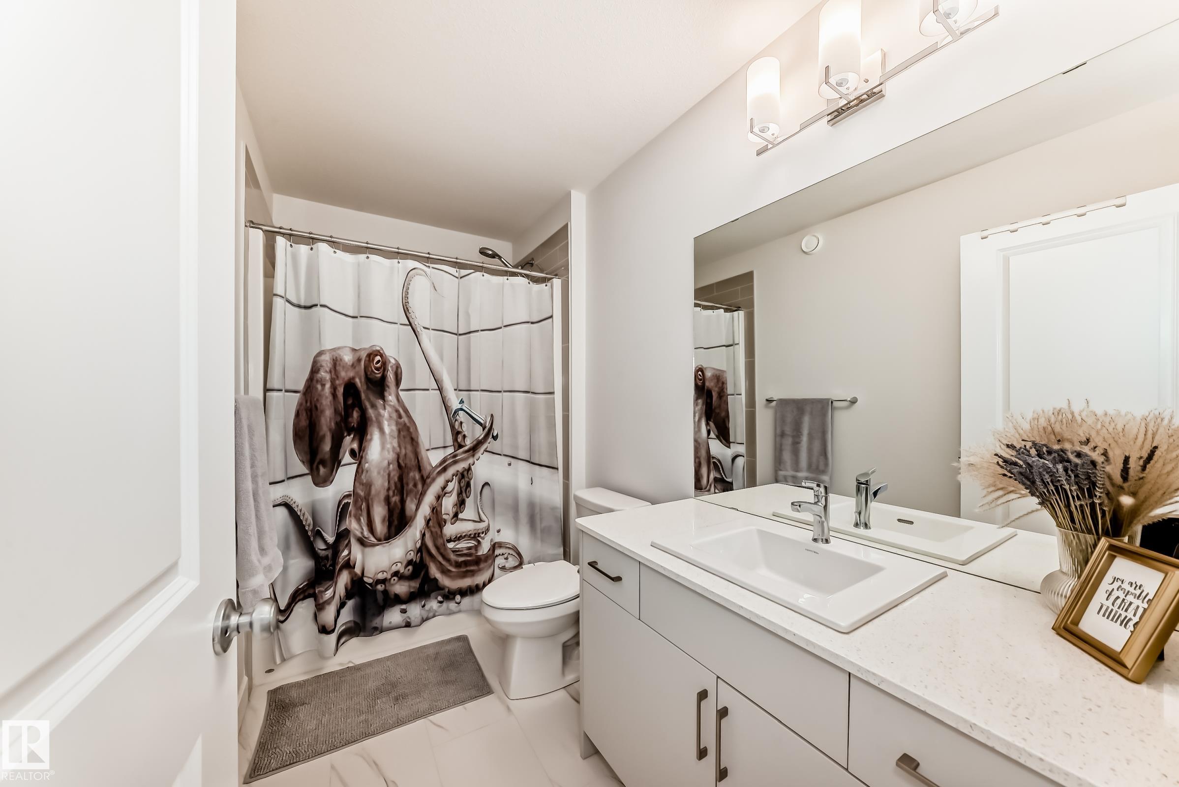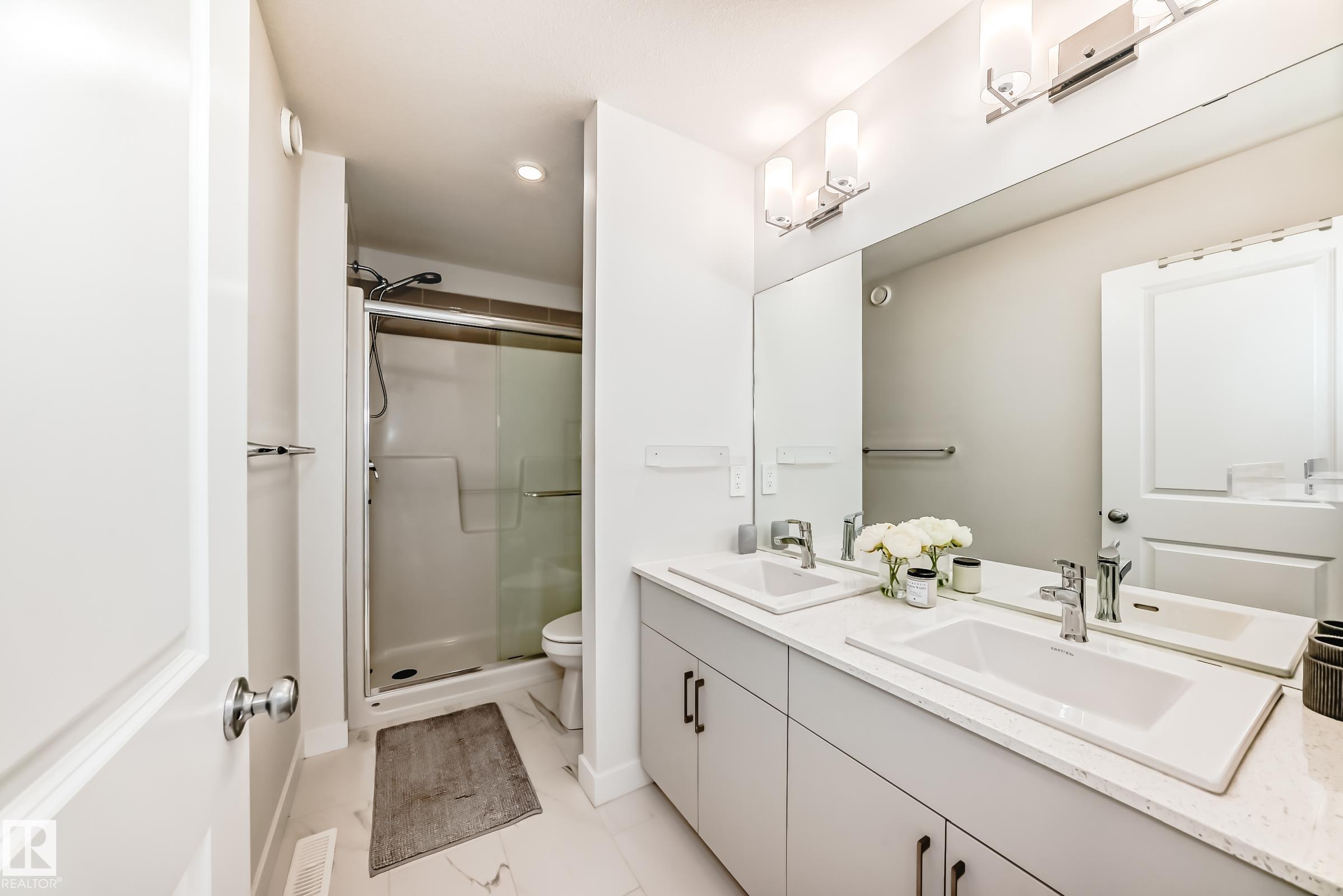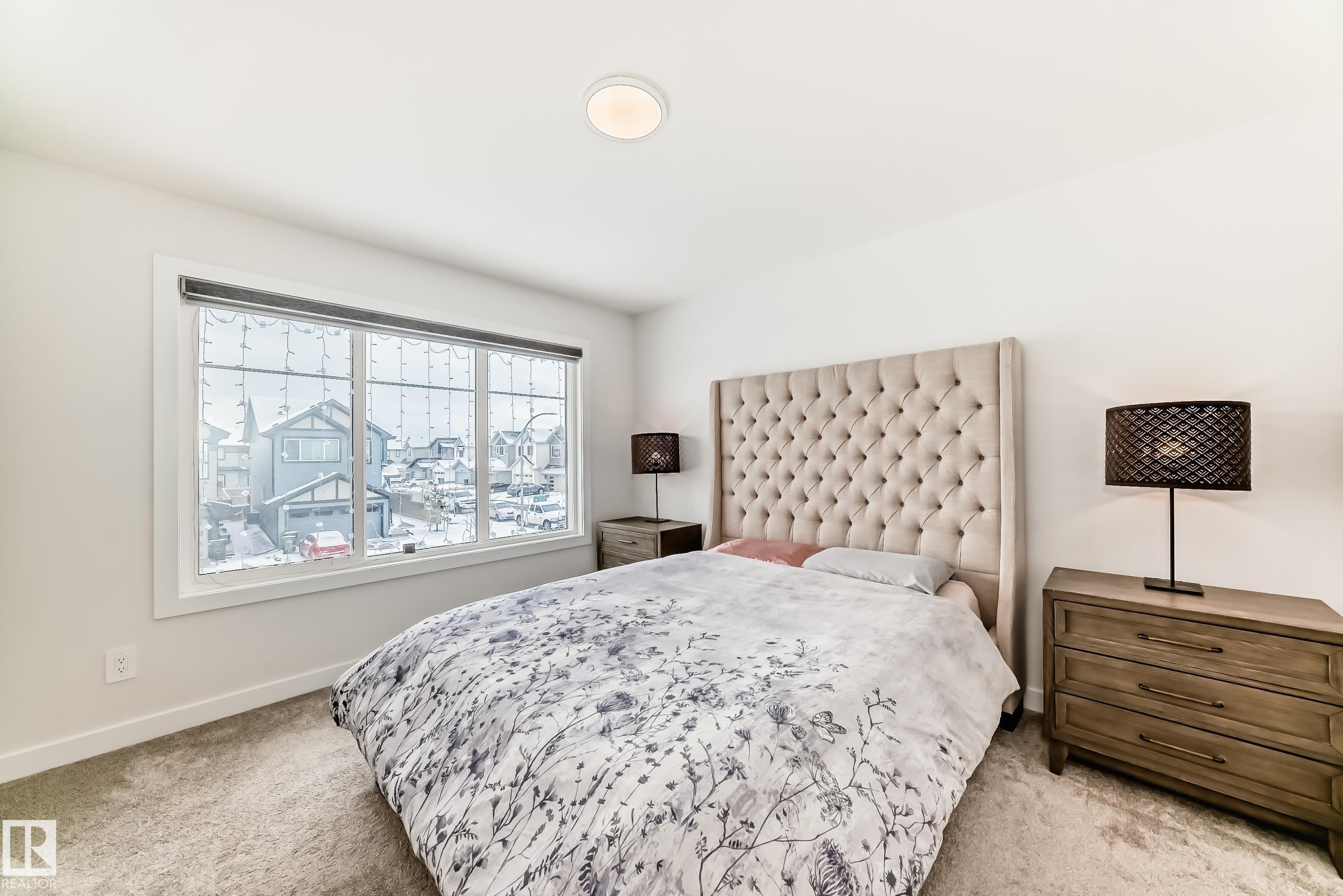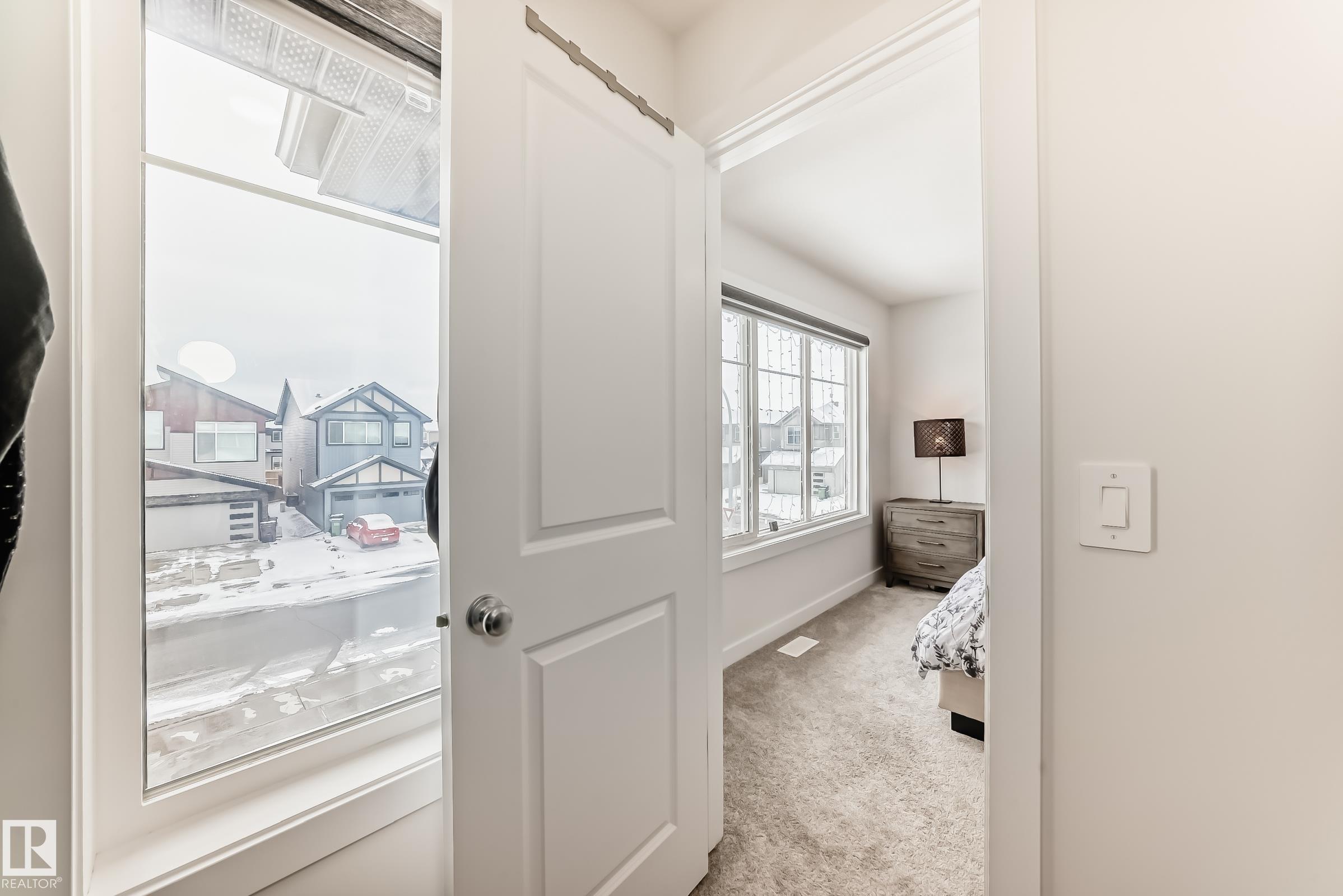 This better-than-new 3-bedroom, 2.5-bath home showcases a bright, spacious layout designed for modern living. The chef's kitchen features a chimney hood fan, stainless steel appliances, and timeless finishes that elevate the space. Upstairs, a generous bonus room is ready for entertaining. The spacious primary retreat with a spa-like ensuite offers a relaxing escape, along with two additional bedrooms perfect for family or hobbies. Enjoy year-round comfort with central A/C and the added benefit of a water softener. Control with a smart thermostat and motor blinds. A separate side entrance provides potential for future basement development - ideal for a suite or expanded family space. All of this sits on a rare full width traditional lot. Located steps from a school and minutes to shopping, including Costco and WEM, with quick access to Anthony Henday and Whitemud, this home delivers comfort, convenience, and long-term value in one of West Edmonton's top neighbourhoods.