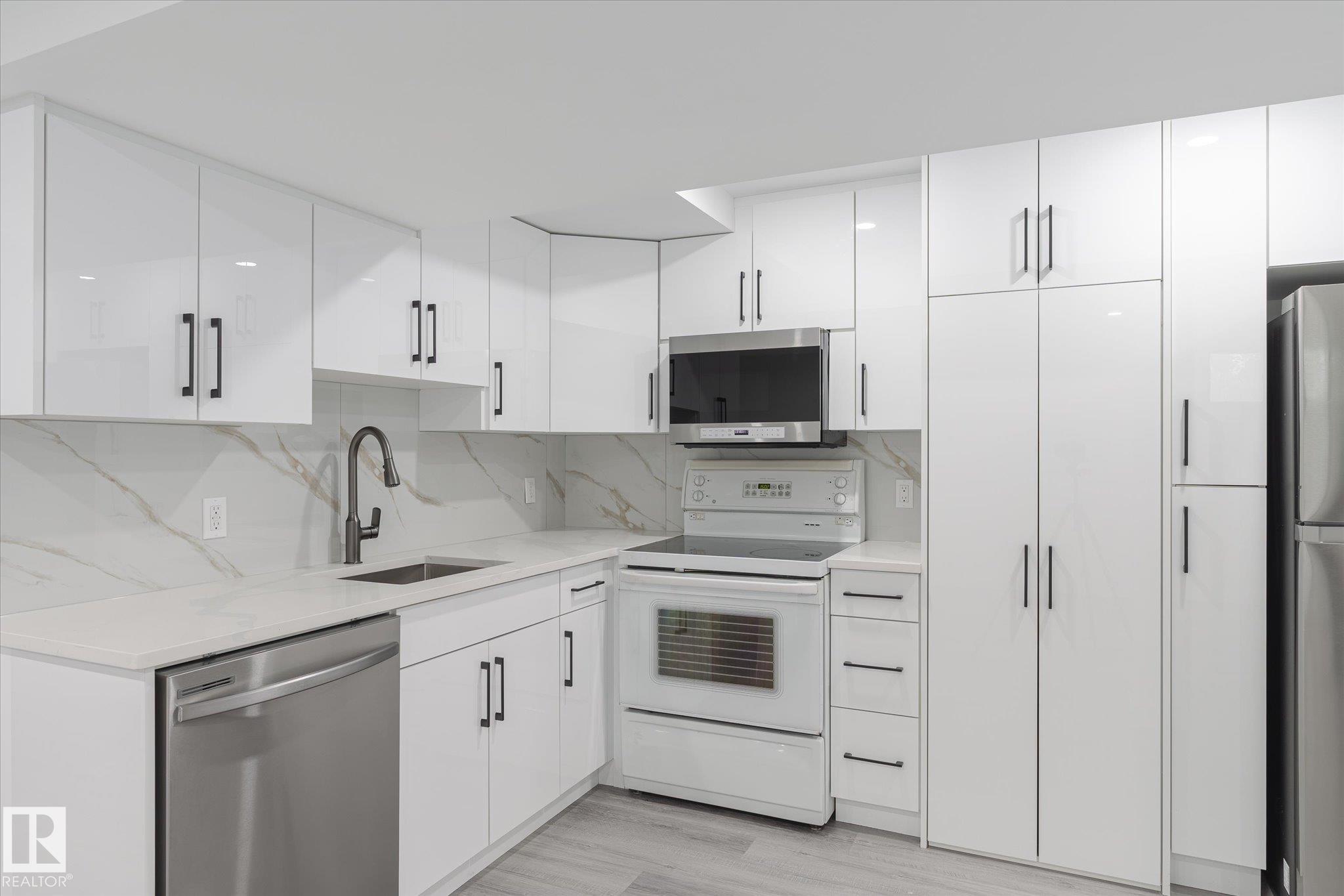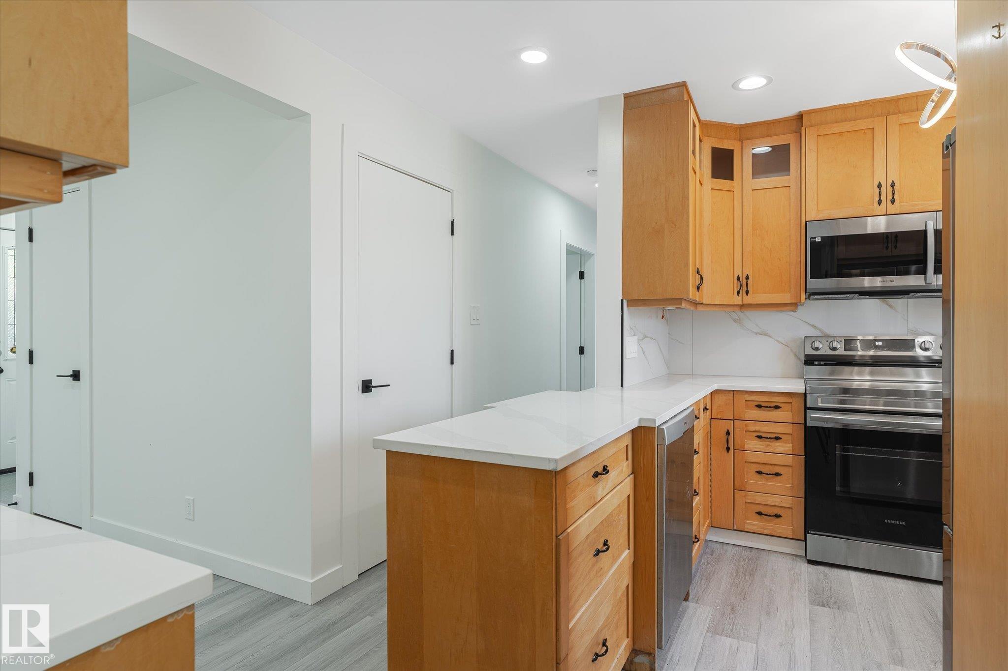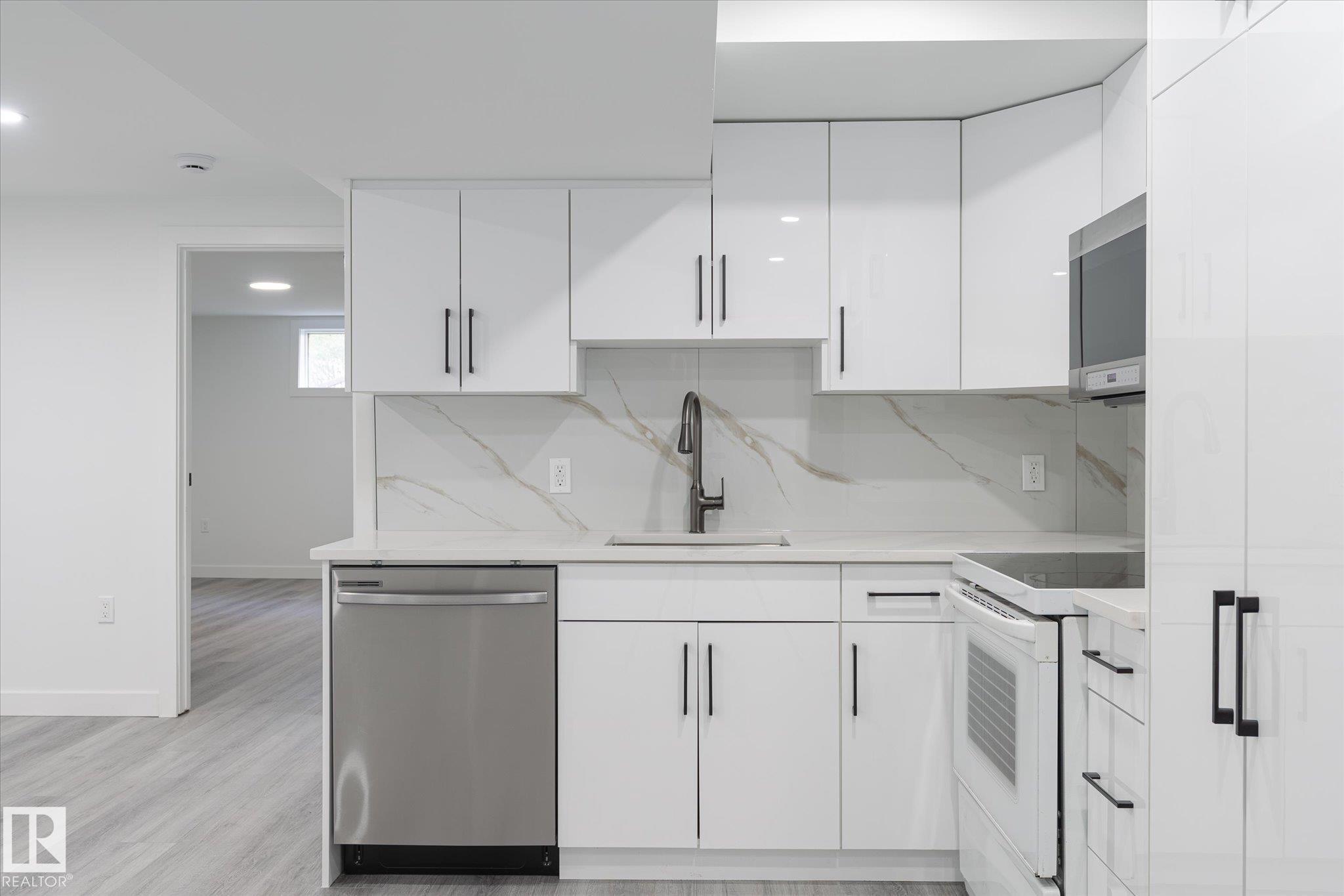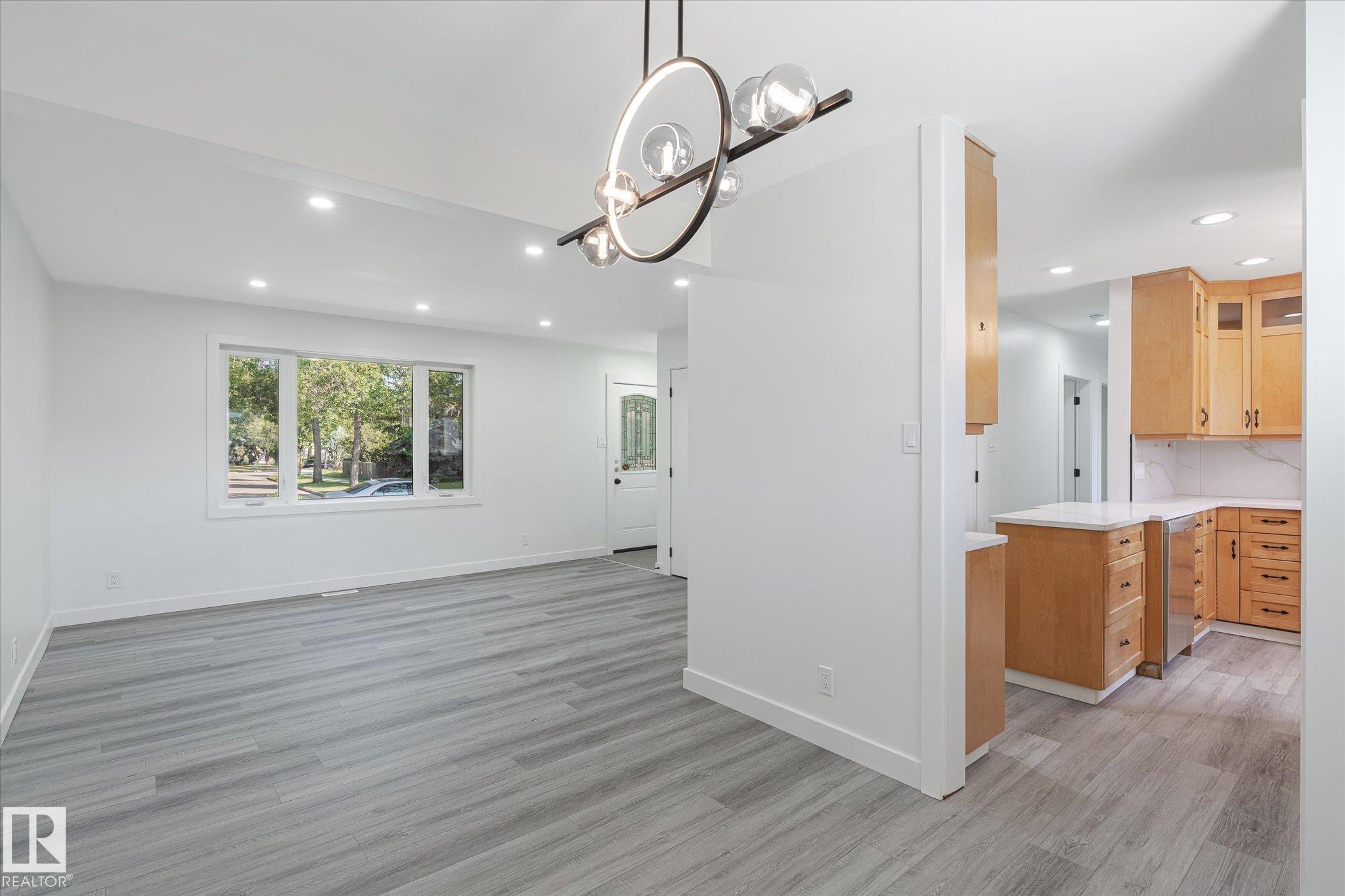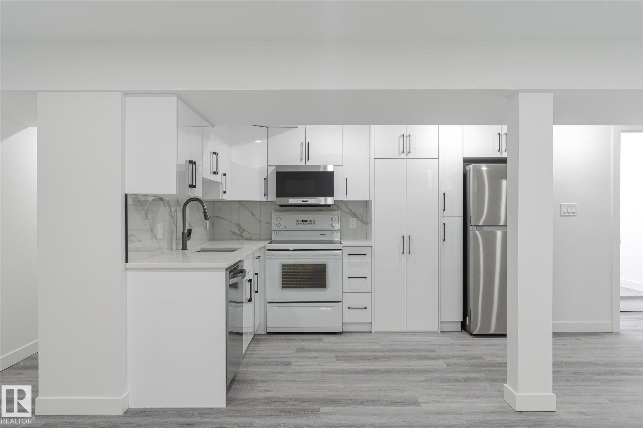 Welcome to this beautifully renovated single-family bungalow, move-in ready with thoughtful upgrades throughout. The main floor features brand-new flooring, fresh paint, stylish light fixtures, and a bright, cozy living area. The stunning updated kitchen includes quartz countertops and all-new stainless steel appliances. You'll also find three spacious bedrooms, a renovated 4-piece bathroom, and the convenience of a private laundry area on the main floor. Downstairs, the fully finished in-law suite offers a brand-new kitchen, two comfortable bedrooms, its own laundry, and a separate entrance--ideal for extended family or rental income. Additional features include: Double detached garage, Central air conditioning for year-round comfort, Fully fenced and landscaped yard perfect for outdoor living. This is a fantastic opportunity to own a completely updated home in a family-friendly community