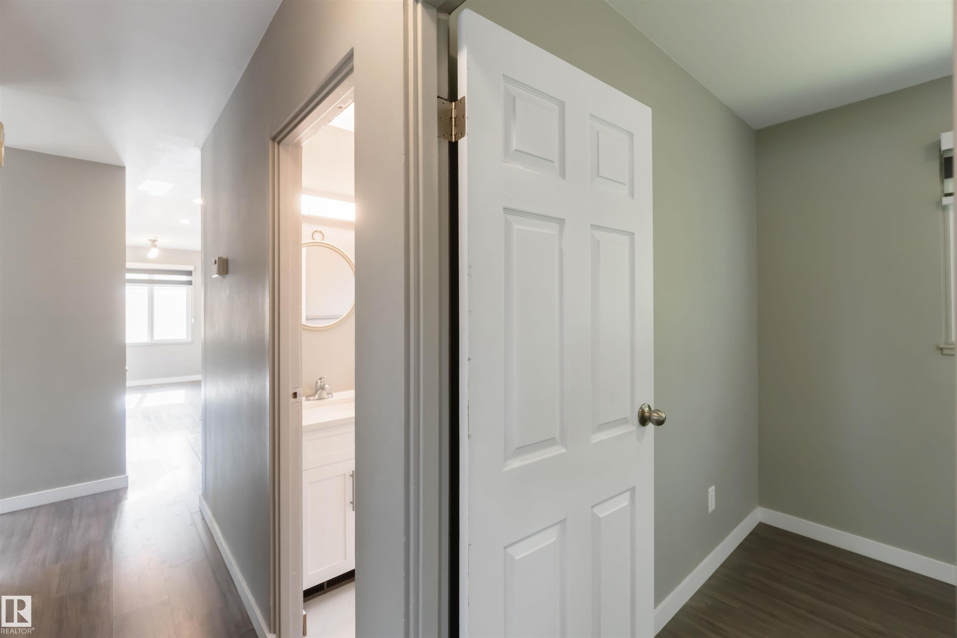 ATTENTION FIRST TIME HOME BUYERS! MODERN 3-BEDROOM RENOVATED BUNGALOW! Located in the family-friendly neighborhood of Sherbrooke, this home is just steps from schools, Westmount Mall, Groat Road with access to the Southside, Yellowhead Trail, and St. Albert Trail. 50 X 130 Lot. Discover this renovated bungalow with its modern 3-bedroom layout on the main floor, updated 4-piece bathroom, main-floor laundry, upgraded lighting, & open-concept kitchen featuring a quartz island/breakfast nook. There is plenty of storage space w/ newer sleek white cabinets & SS appliances. The basement landing & stairway has been renovated w/ fresh paint & vinyl flooring. The basement is ready for your finishing touches w/ back door entry. Bonus upgrades include newer double-pane windows, newer roof shingles, 120-amp electrical panel, blinds, & garage opener. Entertain in the large fenced backyard & park your vehicle in the single garage w/ new shingles 2025. Welcome Home.
