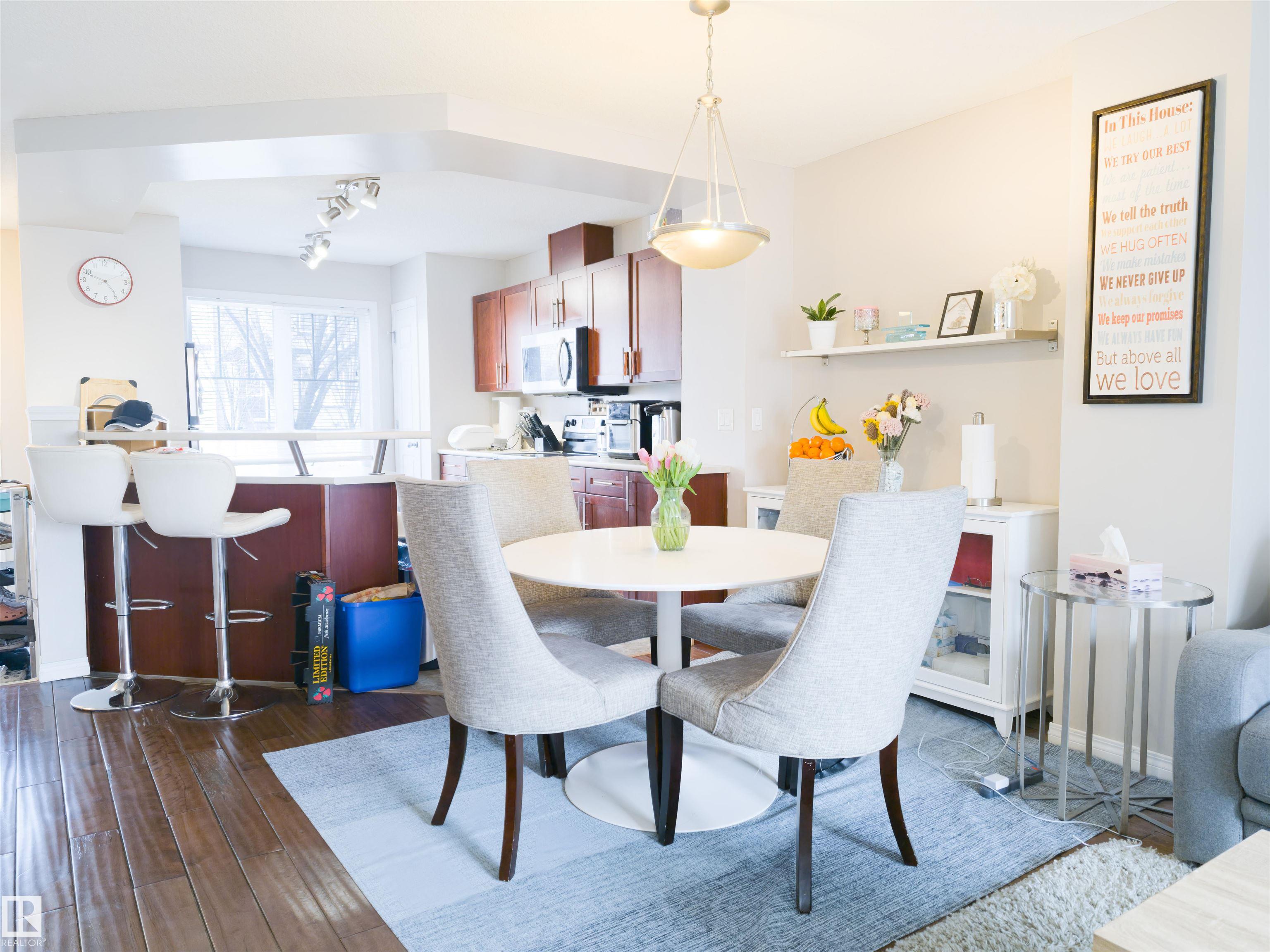 Location is key! This home is perfect as a starter home or an investment property. Welcome to this desirable South Terwillegar community. The main level features an open-concept kitchen, separate dining room, living room, and powder room. Upstairs, you'll find three bedrooms and the main bathroom. The master bedroom boasts an in-suite bathroom and a walk-in closet. The fully finished basement can be used as a recreation room, exercise space, or home office, and it also includes laundry facilities and access to the double-attached garage. It's conveniently located near Terwillegar Rec Centre, and the condo fee is low. Quick possession is available! Notable upgrades include a hot water tank in 2024 and a washer/dryer in 2025.