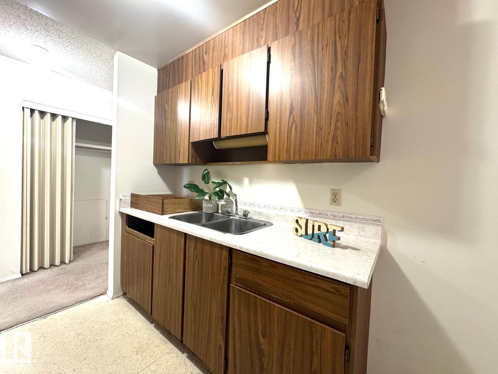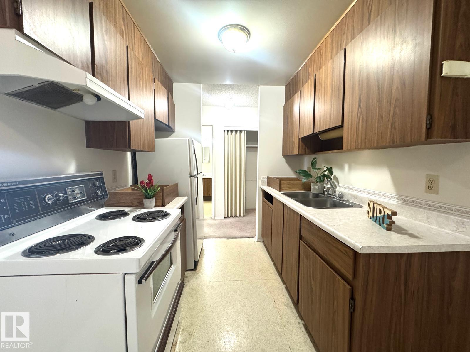 Welcome to this TOP floor, low-priced and affordable 1 bedroom, 1 bathroom condo in the desirable community of Sweet Grass! This well-located complex is right beside an elementary school and offers a sports field and playground, plus is just minutes to South Edm Common, Southgate Centre, Century Park LRT Station, parks, school, trails, river valley. This unit features a large living room with an open layout and patio doors leading to a private balcony. Oak-color kitchen adjacent to dining area. The primary bedroom includes a closet, along with a 4-piece bathroom, storage room, and linen closet. One energized parking stall included. Condo fees cover exterior maintenance, heat, water, power, building insurance, landscaping, property management, and access to amenities including a tennis/basketball court, indoor swimming pool, and full equipped exercise room. In-door daycare & property management company. Perfect for first-time buyers or investors -- don't miss this opportunity!