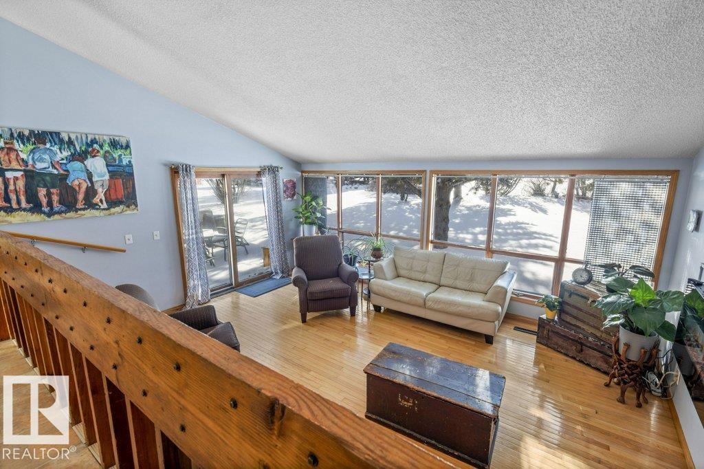 Opportunity knocks! Here is a very rare property with an amazing location. This 30.59 Acre property was part of one of the original river lots in the Hamlet of Lamoureux along the North Saskatchewan river. The home has a unique split level layout. The main floor has vaulted ceilings, large windows and amazing natural lighting. the kitchen and dining nook have a great layout for any culinary enthusiast as it has a nice center island and hanging pot rack. Step down into the living room that has space for your home theatre set up as well as sliding patio doors leading out to back yard deck. Down the hall you will find 2 large bedrooms and a a 4pc bathroom. On the 3rd level there is one more bedroom, a 3pc bathroom and utility room. On the 4th level there is a large family room with room for the kids to play. The balance of the property is is agricultural fields but has immense potential for a possible second residence, home based agricultural business or endless recreational opportunities.