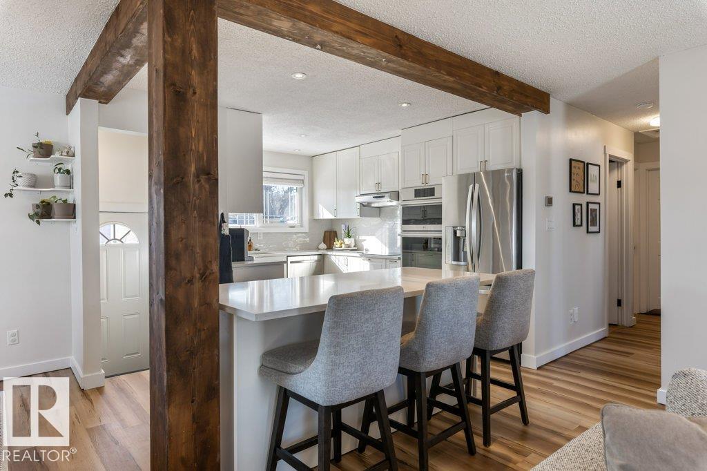 Welcome to this adorable, FULLY RENOVATED home located across the street from a PARK! The main floor features a newer white kitchen with a large island, PANTRY, tile backsplash, stainless steel appliances. The kitchen is OPEN CONCEPT the living room and dining room and has VINYL plank flooring through out. There are 3 bedrooms on the main floor with a RENOVATED 4pce main bathroom. The primary bedroom has a WALK IN CLOSET and can easily accommodate a king bed. The basement is FULLY FINISHED with a warm and inviting family room, renovated 3pce bathroom and 4th bedroom (currently used as storage). There is CENTRAL A/C and an oversized DOUBLE DETACHED HEATED garage with r/i in floor heating. Recent upgrades include windows, doors, trim, lighting, furnace and HWT (2022). This home is truly immaculate inside and out!