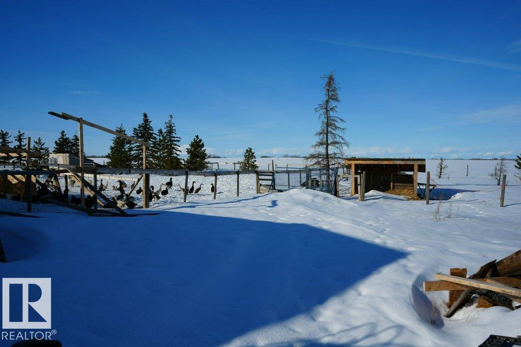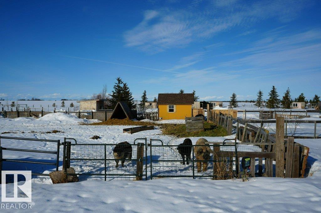 Rare opportunity to own 74.9 acres of versatile farmland set up for livestock and hobby farming. The property includes fenced and separated areas for animals, a dugout water system, and 8 chicken coops with enclosed yards suitable for poultry or small livestock. The charming Cape Cod style home offers 3 bedrooms and 3 bathrooms, including a primary bedroom with private ensuite and two bedrooms upstairs. Interior finishes feature wood ceilings, hardwood floors, and ceramic tile, creating a warm country feel. Recent upgrades include a newer furnace, air conditioning, and on-demand hot water system. Enjoy the outdoors with a large wraparound deck, rear deck, pool, and fire pit areas. The property also includes a triple attached heated garage with its own power panel and hot/cold water sink, plus a large unfinished basement ideal for storage or future development. A great opportunity for those seeking rural living with farming potential.
