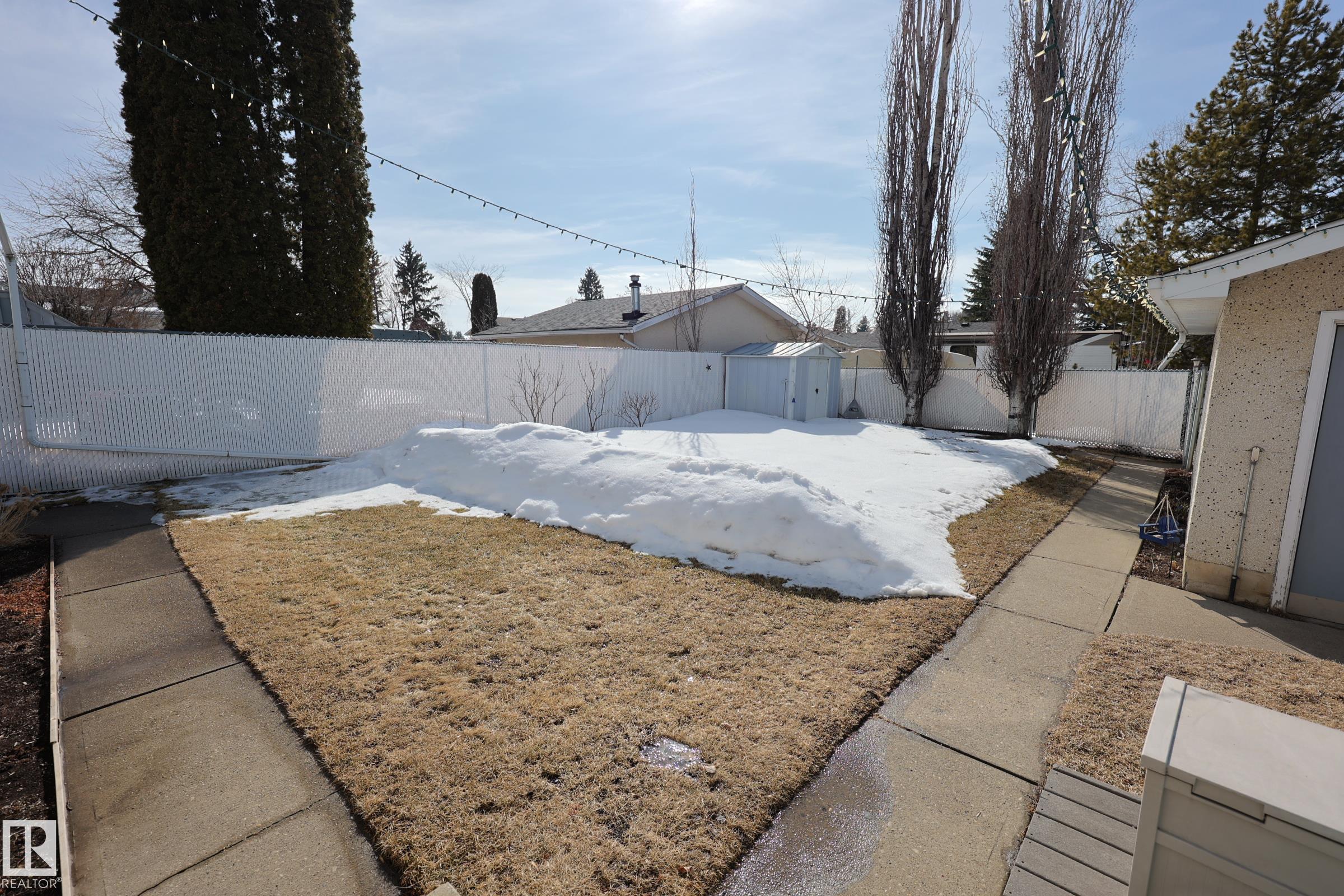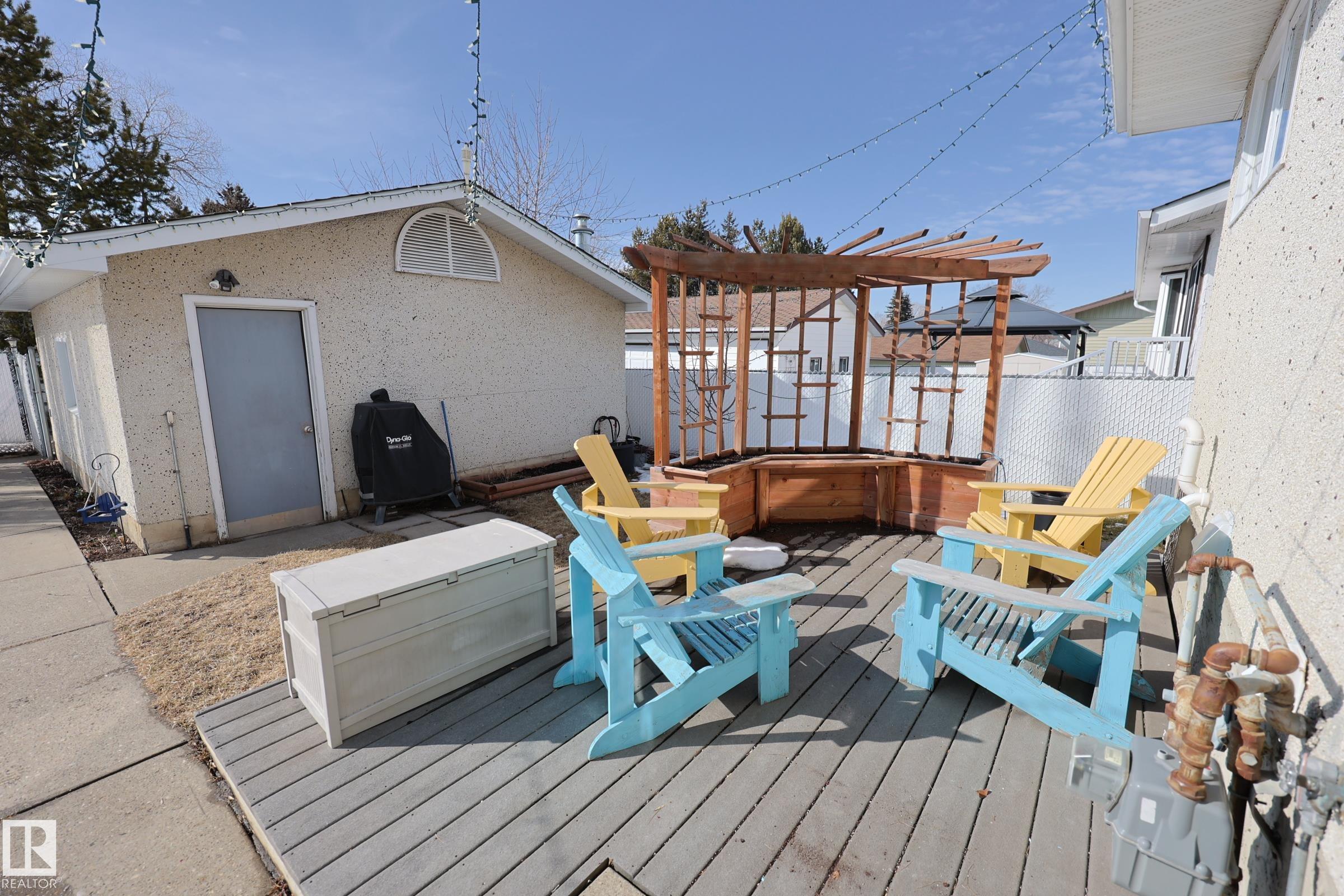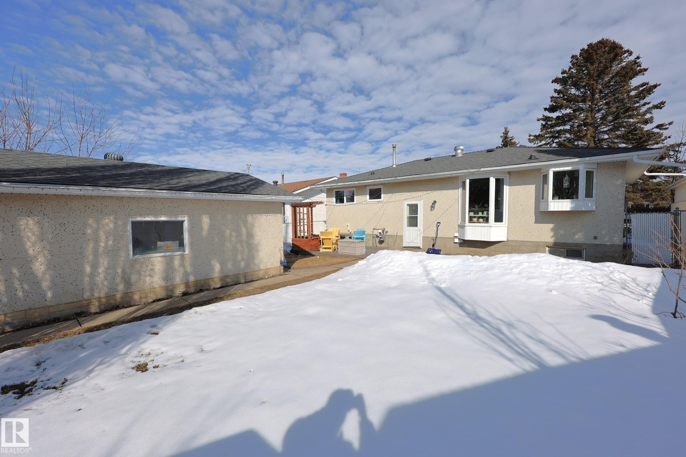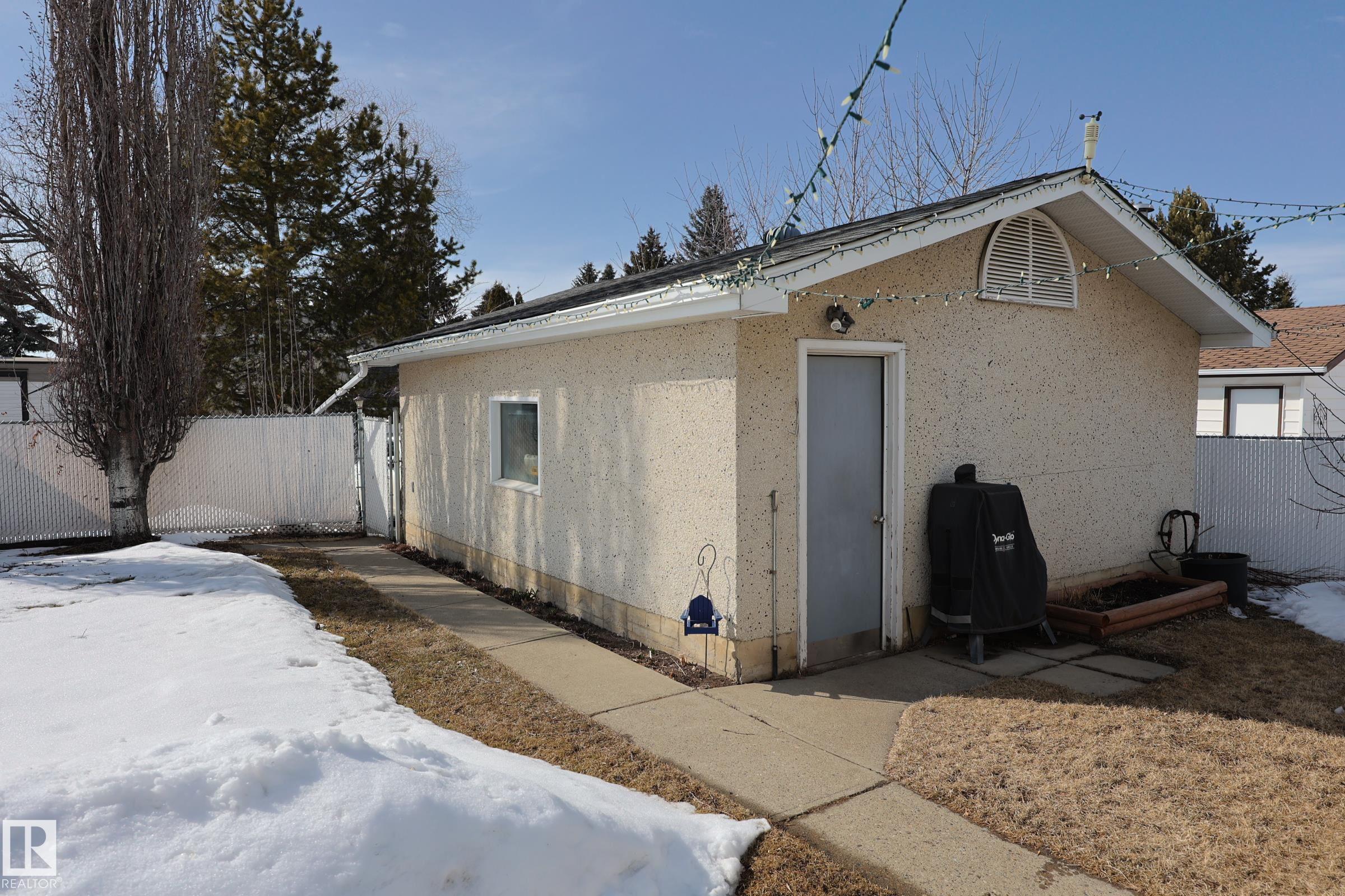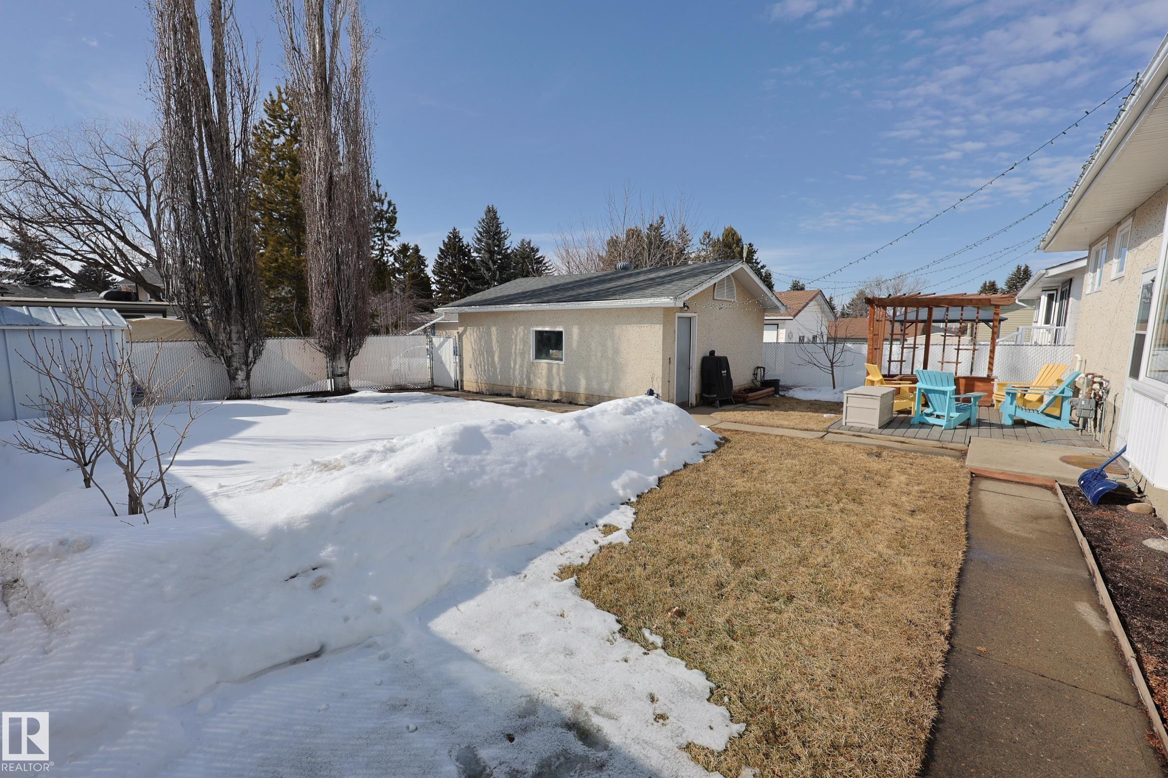 Opportunity is Knocking! Well LOVED BUNGALOW in an IDEAL LOCATION, on a quiet and mature tree lined street, WALKING DISTANCE TO MULTIPLE SCHOOLS AND PARKS with quick and easy access to Edmonton. Main floor FEELS FRESH with updated paint and maple hardwood floors and FILED WITH NATURAL LIGHT. Large living room with is OPEN TO THE DINETTE and Oak Kitchen with rows of cabinetry, GRANITE TOPS AND A VIEW OF THE YARD. 3 Bedrooms on the main and an UPDATED BATHROOM with custom tub shower. Rear entry to COMPOSITE DECK AND FENCED YARD that is landscaped. FULLY FINISHED BASEMENT with floor to ceiling STONE FIREPLACE and a custom climbing gym that stays and was designed to be easily removed. 4th bedroom with another full bathroom and STORAGE ROOM THAT COULD BECOME BEDROOM 5. Washer Dryer with a large laundry tub. Updated Furnace with A/C and HWT. DOUBLE GARAGE IS HEATED and ready for your projects. Bonus RV PARKING space off the alley for your Toys. MOVE IN READY HOME - is sure to impress.