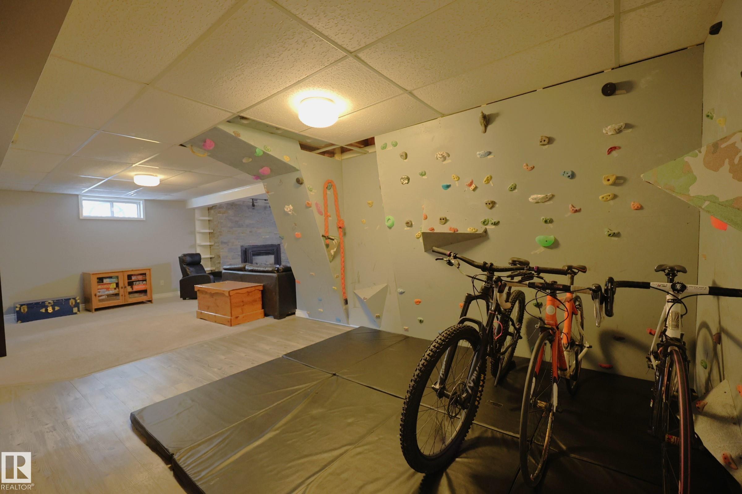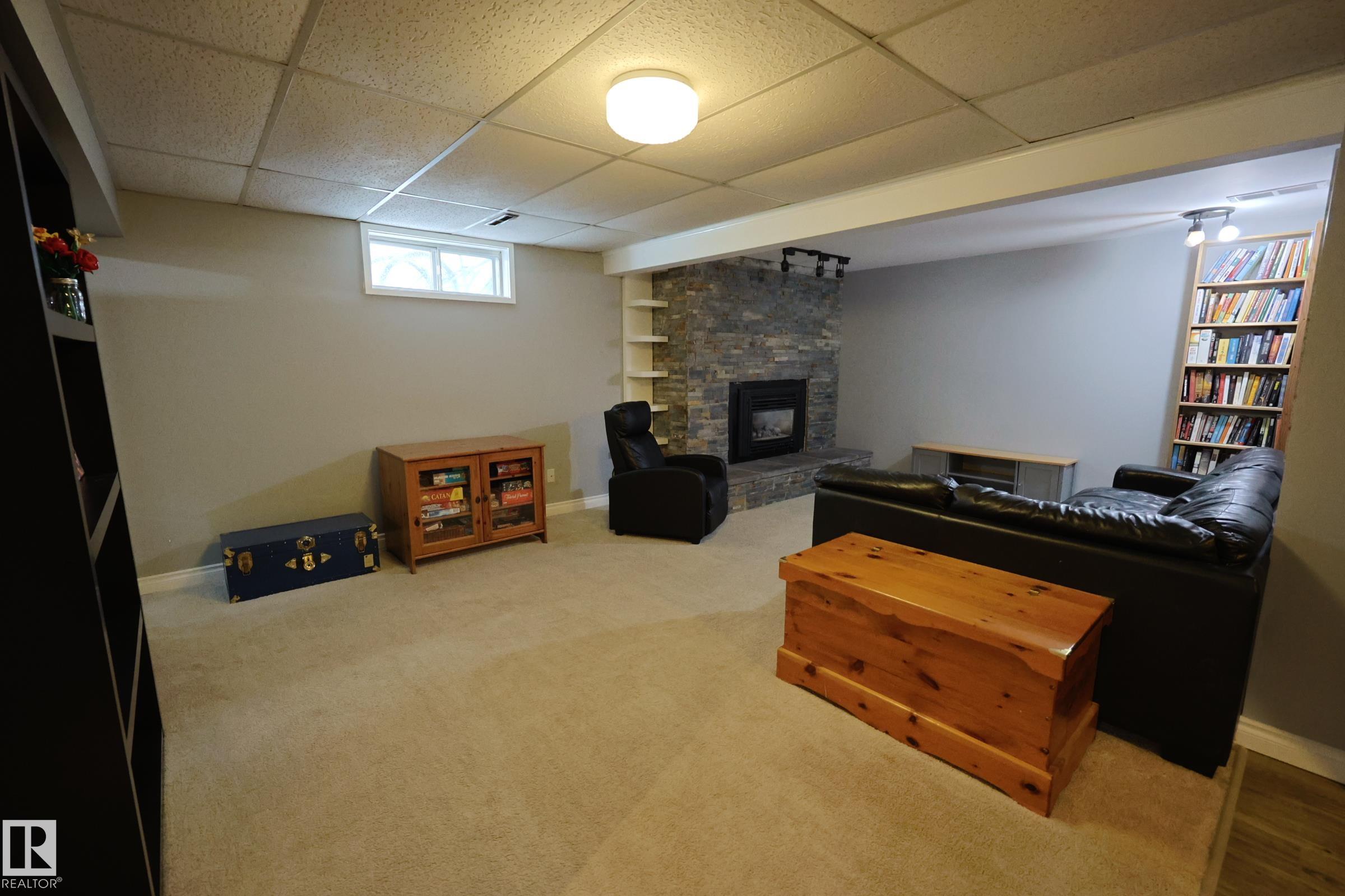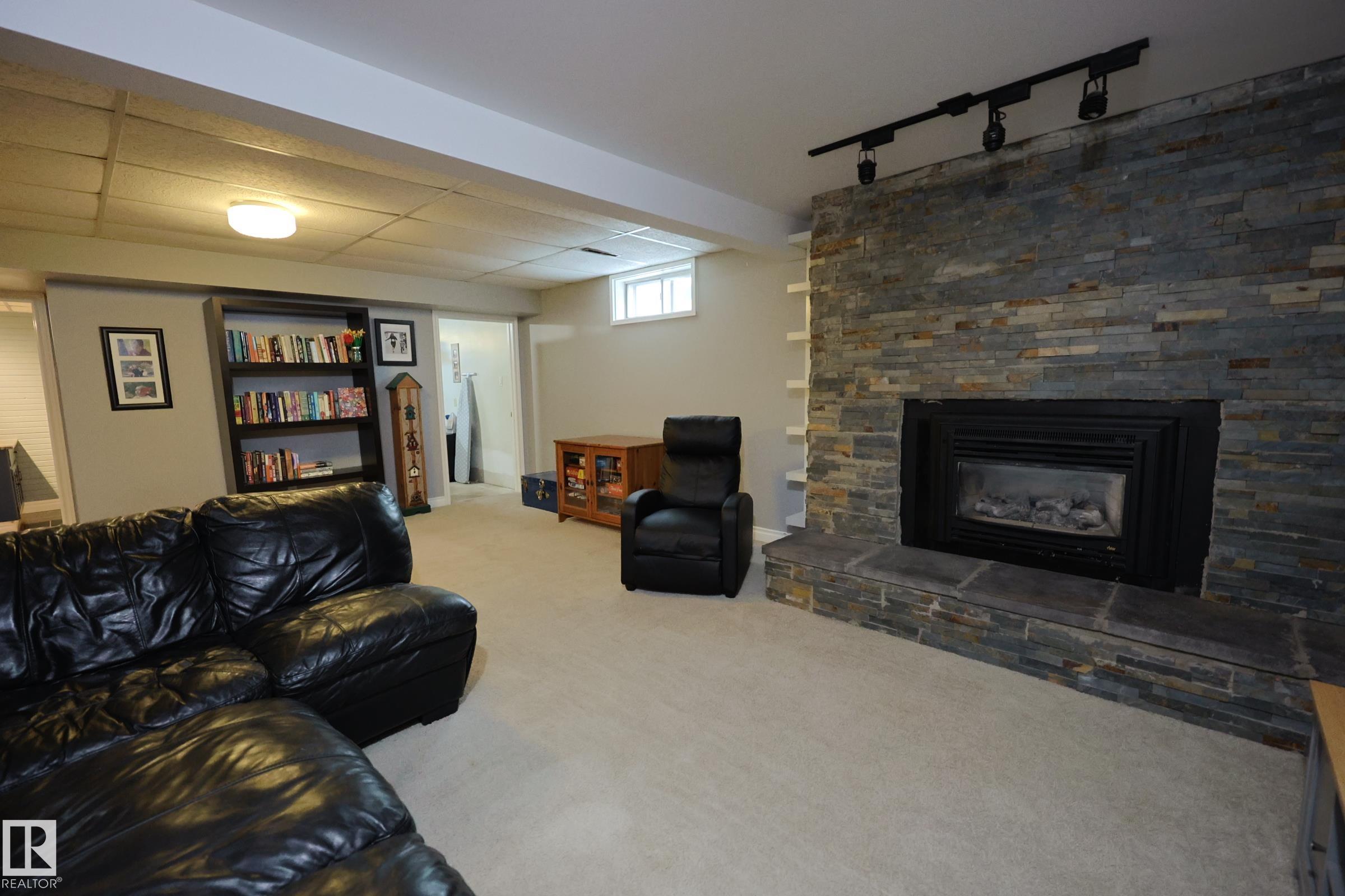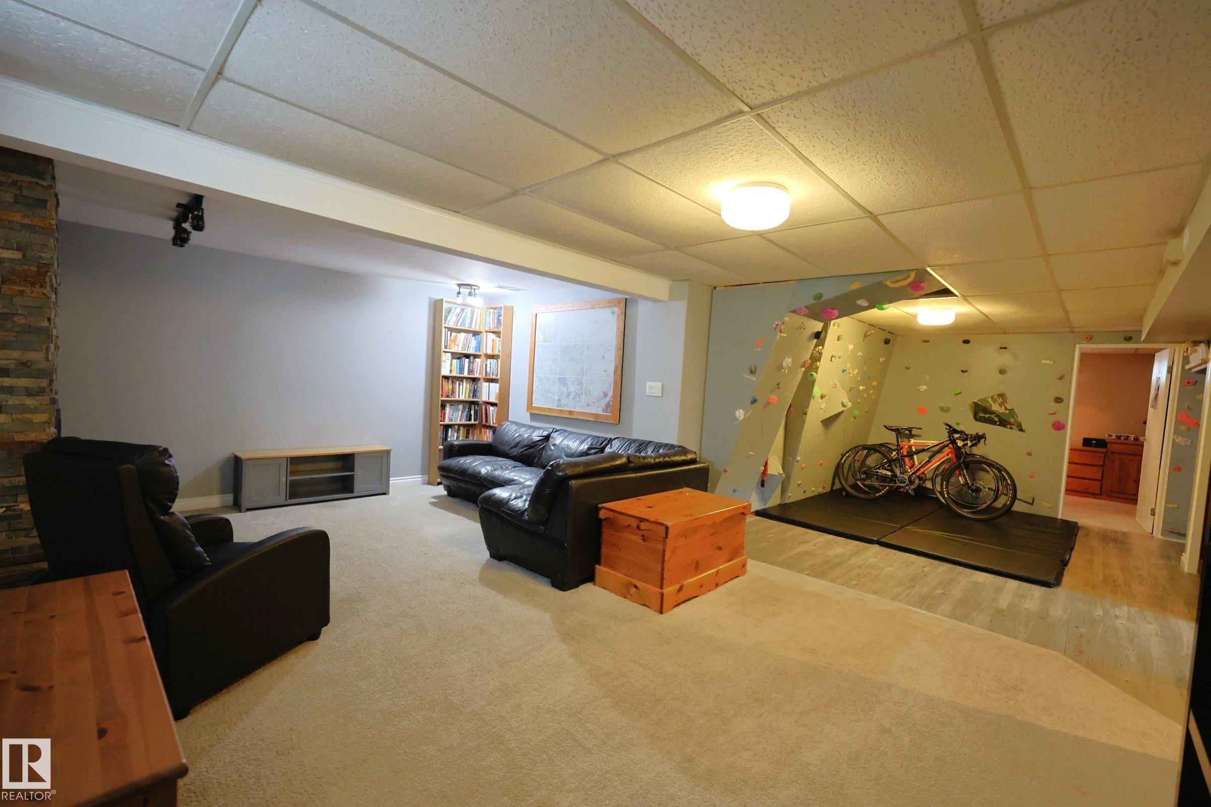 Opportunity is Knocking! Well LOVED BUNGALOW in an IDEAL LOCATION, on a quiet and mature tree lined street, WALKING DISTANCE TO MULTIPLE SCHOOLS AND PARKS with quick and easy access to Edmonton. Main floor FEELS FRESH with updated paint and maple hardwood floors and FILED WITH NATURAL LIGHT. Large living room with is OPEN TO THE DINETTE and Oak Kitchen with rows of cabinetry, GRANITE TOPS AND A VIEW OF THE YARD. 3 Bedrooms on the main and an UPDATED BATHROOM with custom tub shower. Rear entry to COMPOSITE DECK AND FENCED YARD that is landscaped. FULLY FINISHED BASEMENT with floor to ceiling STONE FIREPLACE and a custom climbing gym that stays and was designed to be easily removed. 4th bedroom with another full bathroom and STORAGE ROOM THAT COULD BECOME BEDROOM 5. Washer Dryer with a large laundry tub. Updated Furnace with A/C and HWT. DOUBLE GARAGE IS HEATED and ready for your projects. Bonus RV PARKING space off the alley for your Toys. MOVE IN READY HOME - is sure to impress.