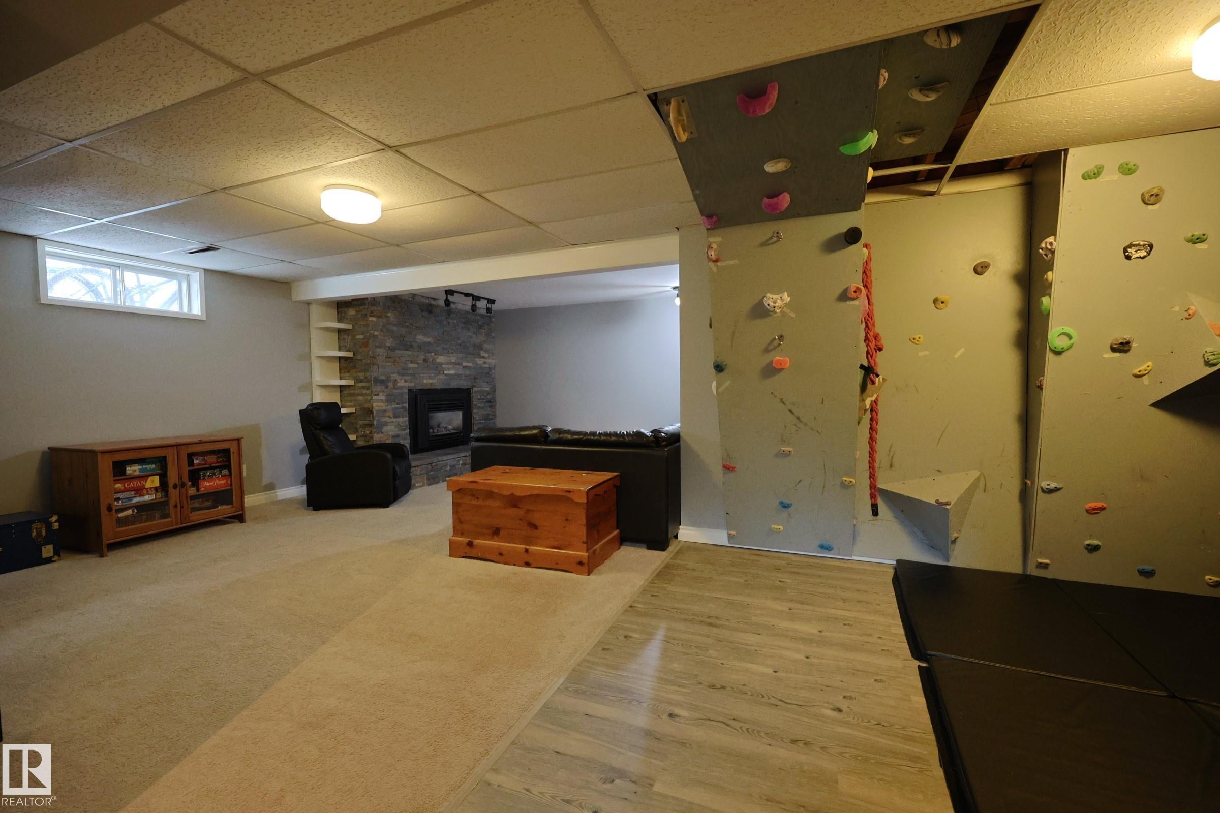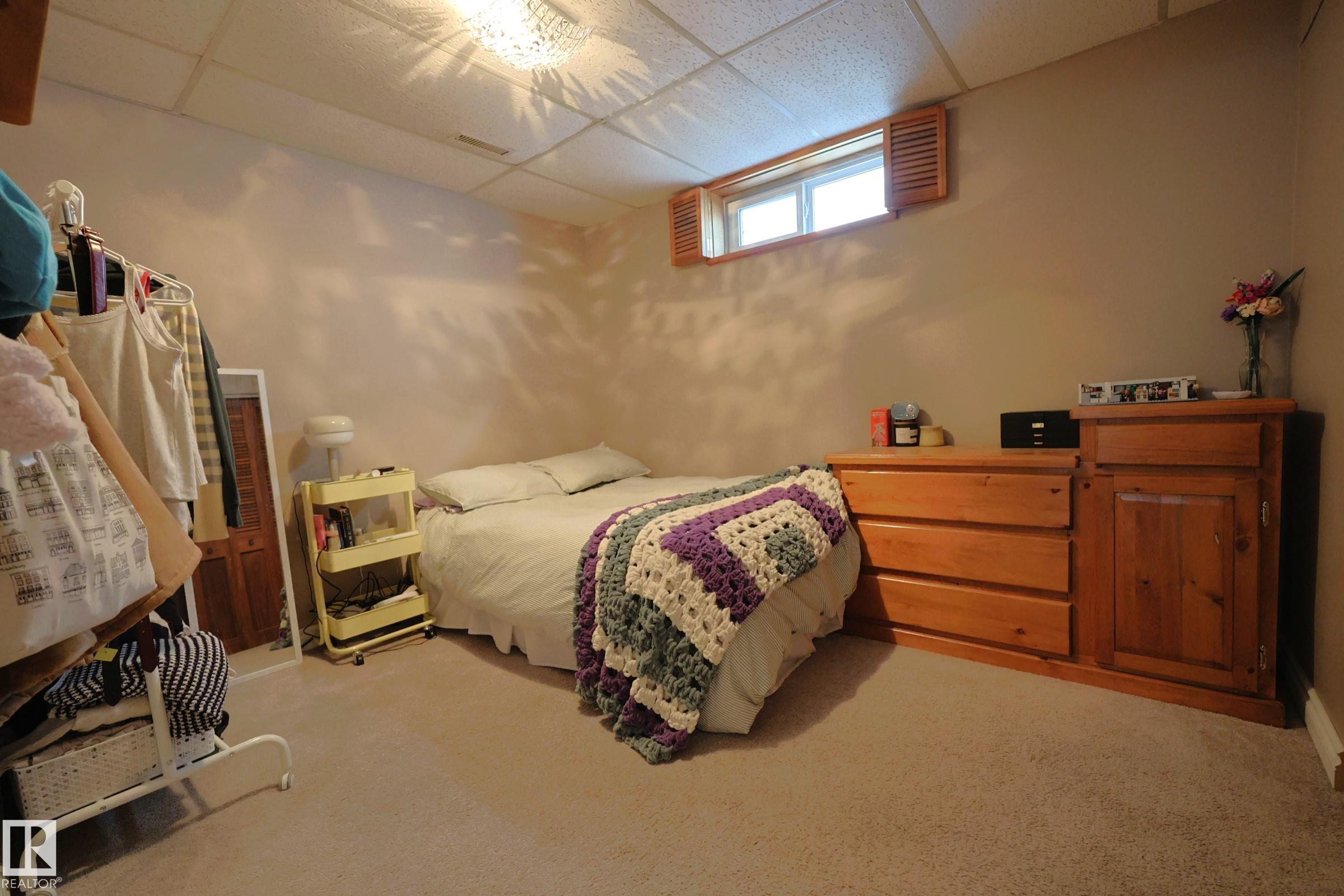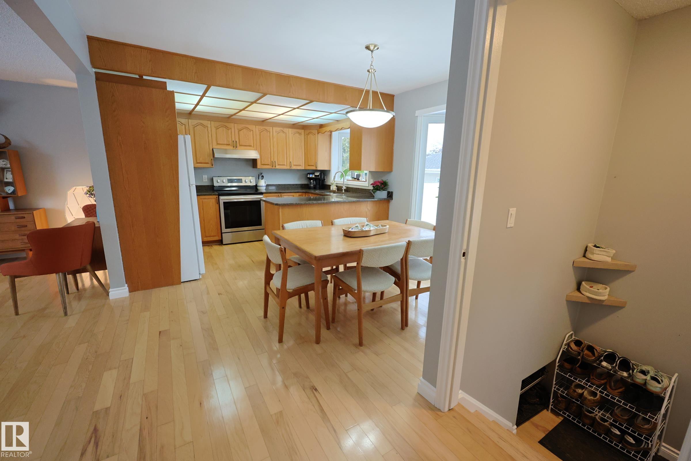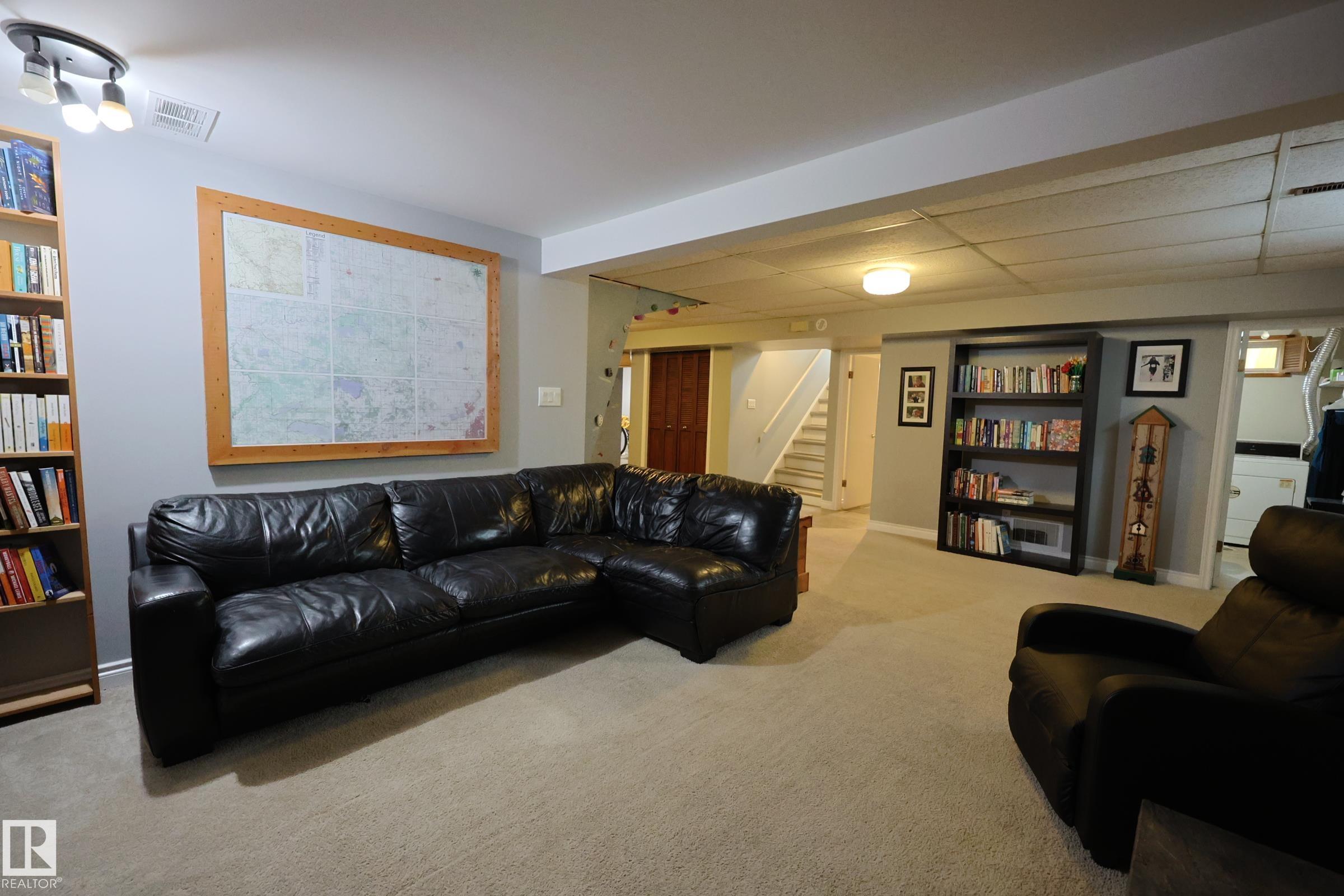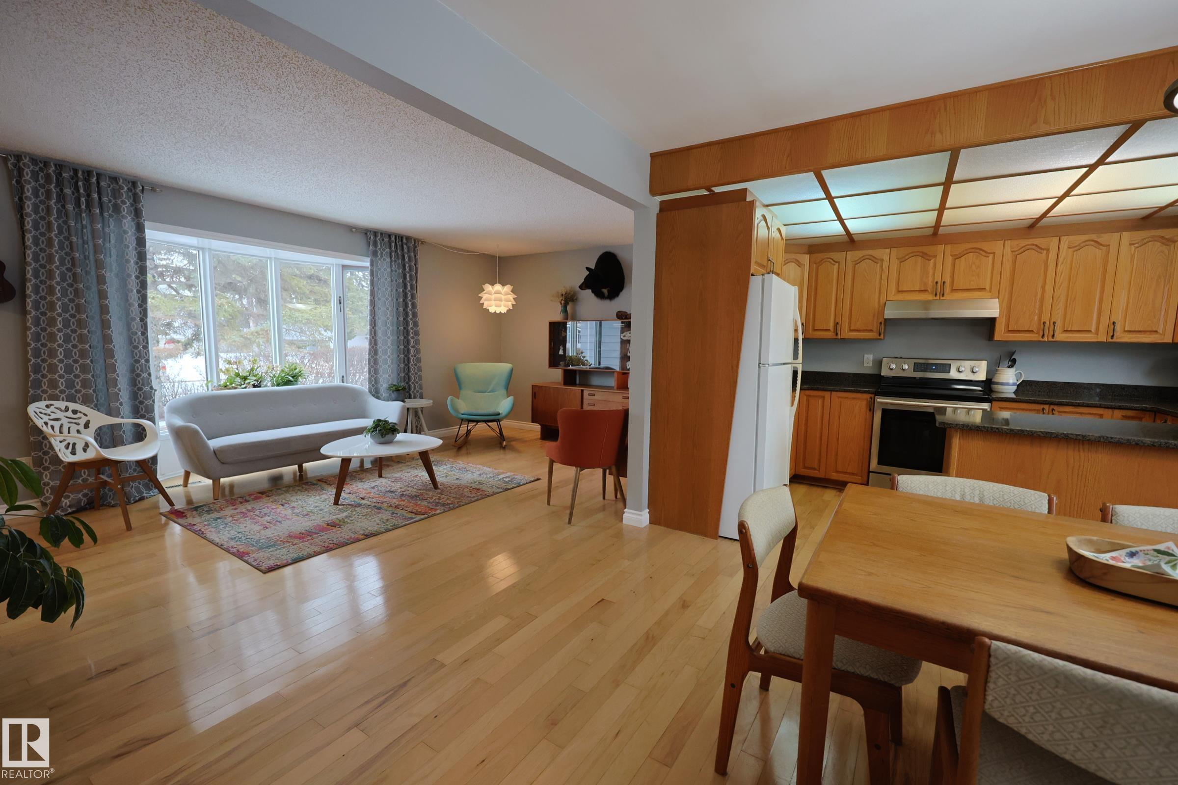 Opportunity is Knocking! Well LOVED BUNGALOW in an IDEAL LOCATION, on a quiet and mature tree lined street, WALKING DISTANCE TO MULTIPLE SCHOOLS AND PARKS with quick and easy access to Edmonton. Main floor FEELS FRESH with updated paint and maple hardwood floors and FILED WITH NATURAL LIGHT. Large living room with is OPEN TO THE DINETTE and Oak Kitchen with rows of cabinetry, GRANITE TOPS AND A VIEW OF THE YARD. 3 Bedrooms on the main and an UPDATED BATHROOM with custom tub shower. Rear entry to COMPOSITE DECK AND FENCED YARD that is landscaped. FULLY FINISHED BASEMENT with floor to ceiling STONE FIREPLACE and a custom climbing gym that stays and was designed to be easily removed. 4th bedroom with another full bathroom and STORAGE ROOM THAT COULD BECOME BEDROOM 5. Washer Dryer with a large laundry tub. Updated Furnace with A/C and HWT. DOUBLE GARAGE IS HEATED and ready for your projects. Bonus RV PARKING space off the alley for your Toys. MOVE IN READY HOME - is sure to impress.