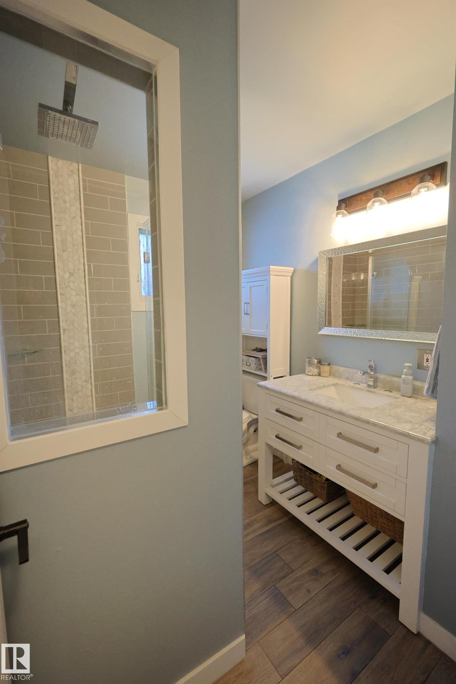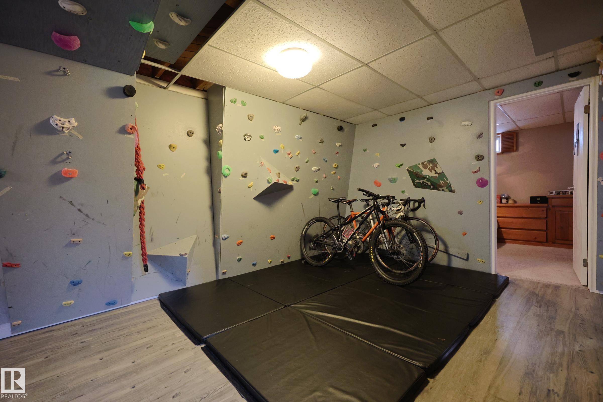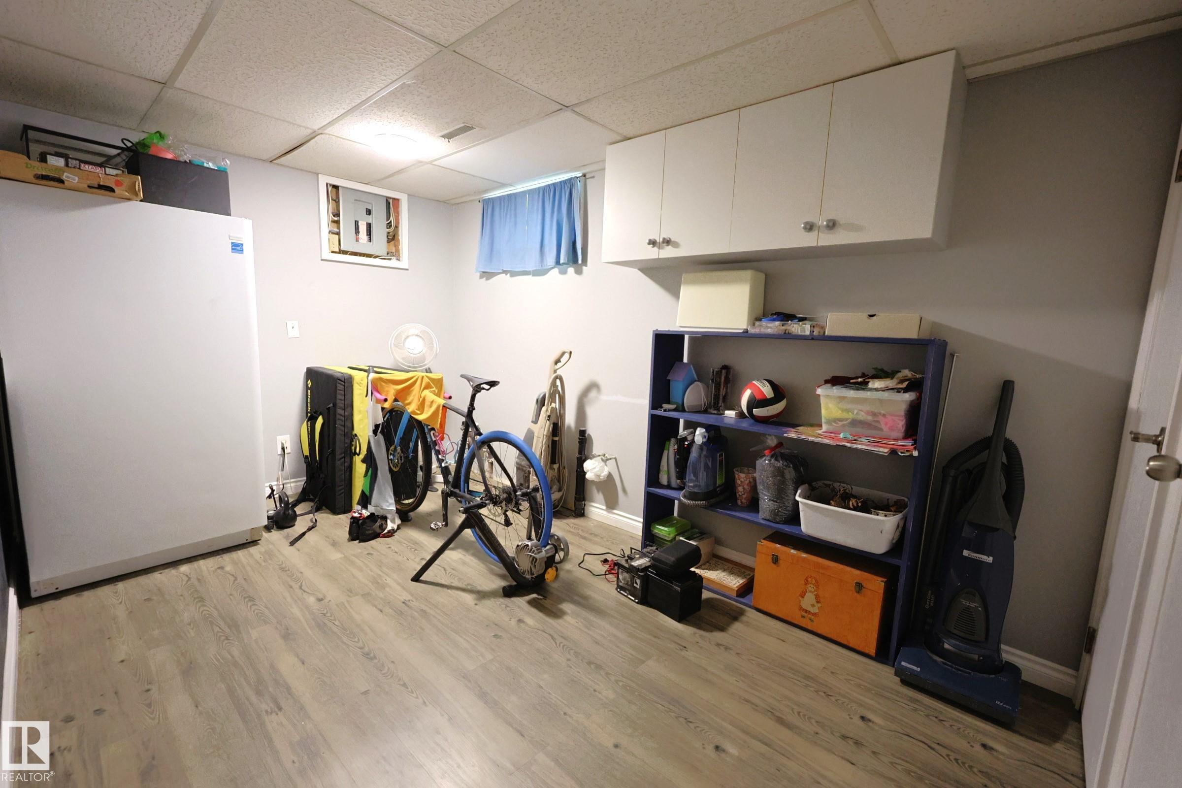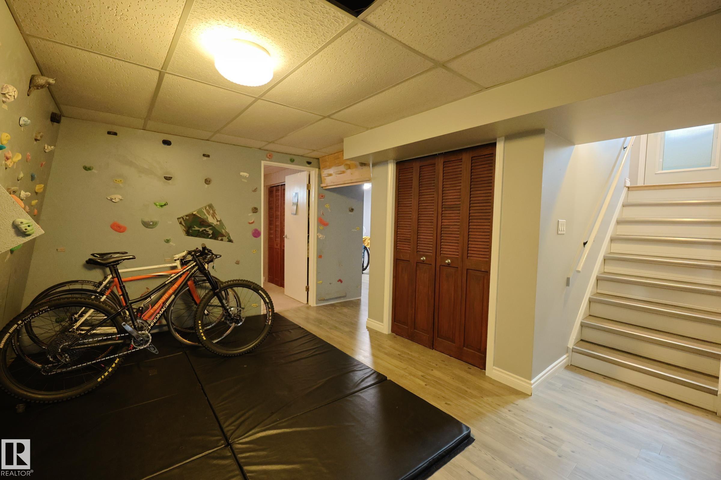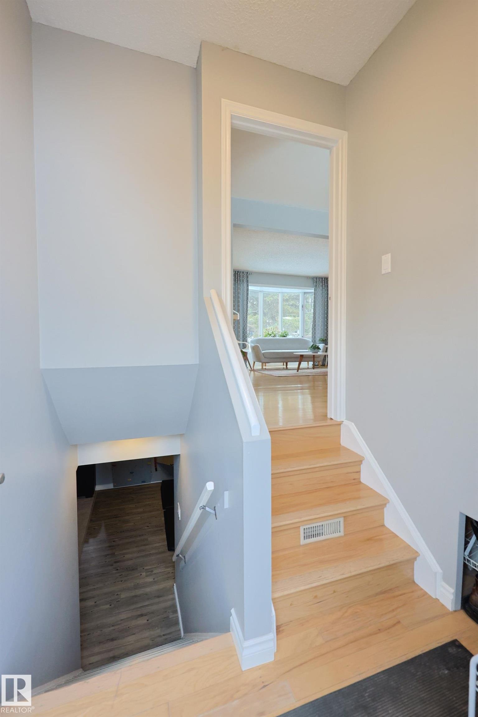 Opportunity is Knocking! Well LOVED BUNGALOW in an IDEAL LOCATION, on a quiet and mature tree lined street, WALKING DISTANCE TO MULTIPLE SCHOOLS AND PARKS with quick and easy access to Edmonton. Main floor FEELS FRESH with updated paint and maple hardwood floors and FILED WITH NATURAL LIGHT. Large living room with is OPEN TO THE DINETTE and Oak Kitchen with rows of cabinetry, GRANITE TOPS AND A VIEW OF THE YARD. 3 Bedrooms on the main and an UPDATED BATHROOM with custom tub shower. Rear entry to COMPOSITE DECK AND FENCED YARD that is landscaped. FULLY FINISHED BASEMENT with floor to ceiling STONE FIREPLACE and a custom climbing gym that stays and was designed to be easily removed. 4th bedroom with another full bathroom and STORAGE ROOM THAT COULD BECOME BEDROOM 5. Washer Dryer with a large laundry tub. Updated Furnace with A/C and HWT. DOUBLE GARAGE IS HEATED and ready for your projects. Bonus RV PARKING space off the alley for your Toys. MOVE IN READY HOME - is sure to impress.