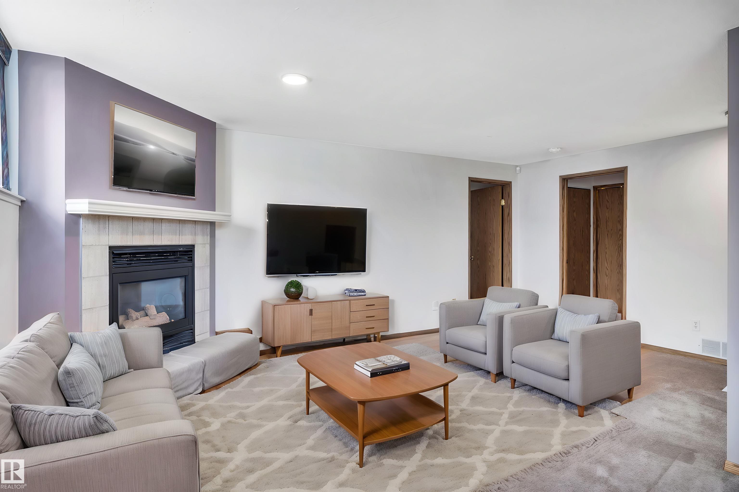 Well-kept and lovingly maintained 1,200 sq. ft. ft. bi-level located on a quiet crescent in Deer Ridge! The main floor features spacious living and dining rooms with laminate flooring and vaulted ceilings. A large kitchen with plenty of counter space, a pantry with upgraded drawers and newer stove. Two large bedrooms including a spacious primary with a renovated ensuite. Triple pane windows and laundry on the main level. The fully finished basement features a family room with a gas fireplace, 2 additional bedrooms (including a huge third), a 3-piece bathroom, and storage. Enjoy the east facing backyard this summer with its newer maintenance-free deck. Heated, double attached garage. Upgrades include: furnace and A/C (2021), Shingles (2013) and a stairlift installed in 2024 for accessibility. Some photos have been virtually staged.