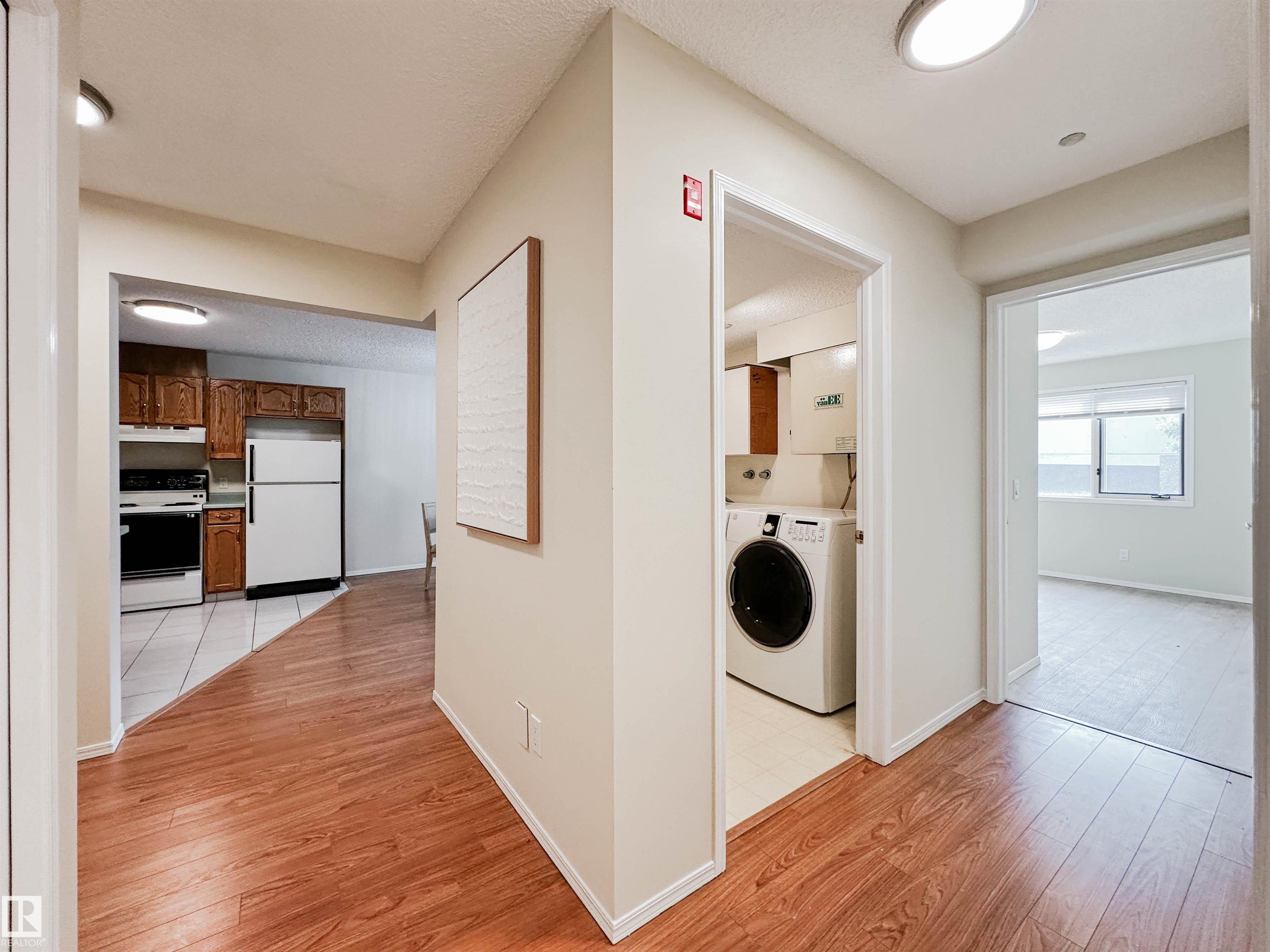 Welcome to this charming 40+ condo perfectly situated in the vibrant heart of St. Albert! Recently updated with fresh paint and new flooring, this spacious unit offers 2 bedrooms and 2 full bathrooms, including a private en-suite. The open concept layout creates a bright, inviting living space, while the large in-suite laundry room adds excellent storage convenience. Enjoy the comfort of heated underground parking and a well managed building known for its affordability and community feel. Richmond House residents appreciate fantastic amenities such as an elevator and a lounge/recreation room. Step outside your door to experience everything Downtown St. Albert has to offer, boutique shopping, restaurants, the farmers' market, library, Arden Theatre, art galleries, and scenic river valley trails. Ideal for those seeking a low-maintenance lifestyle with modern comforts and walkable access to the best of downtown living.
