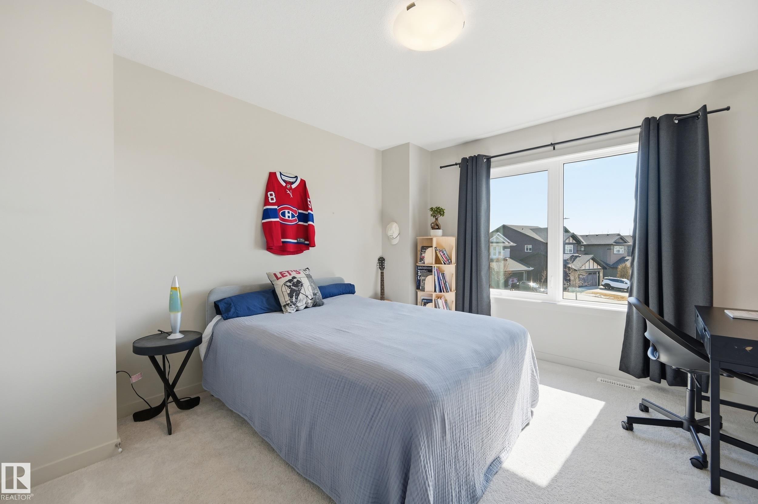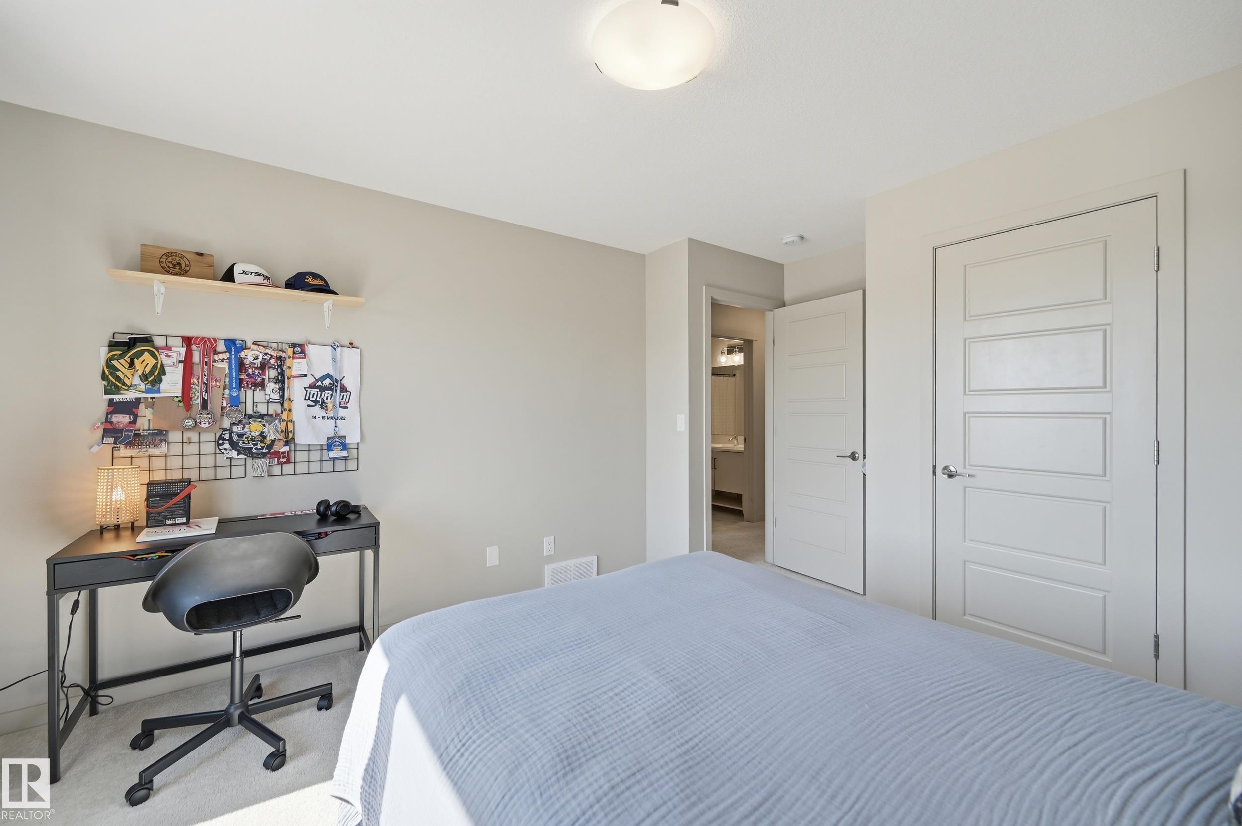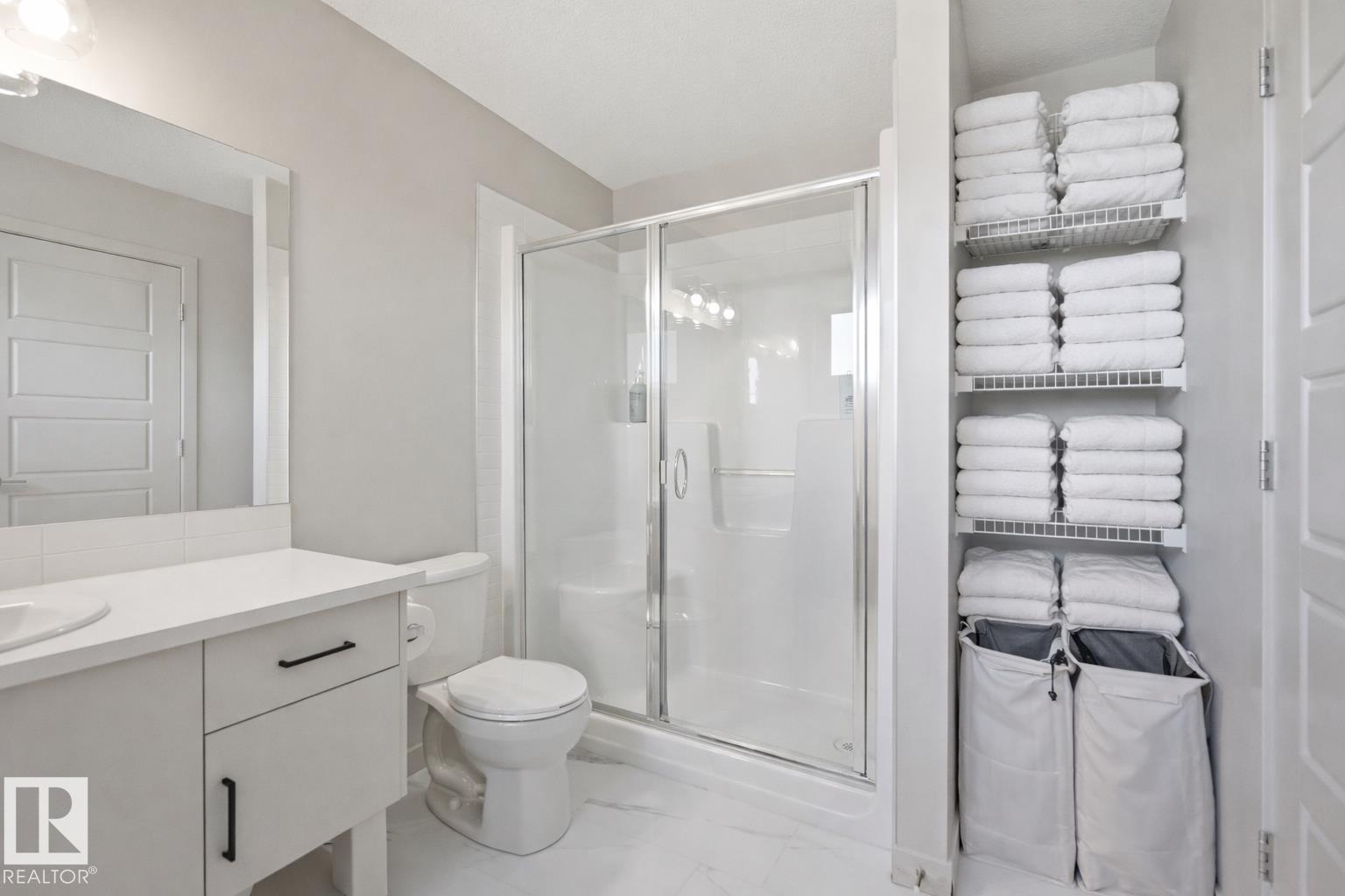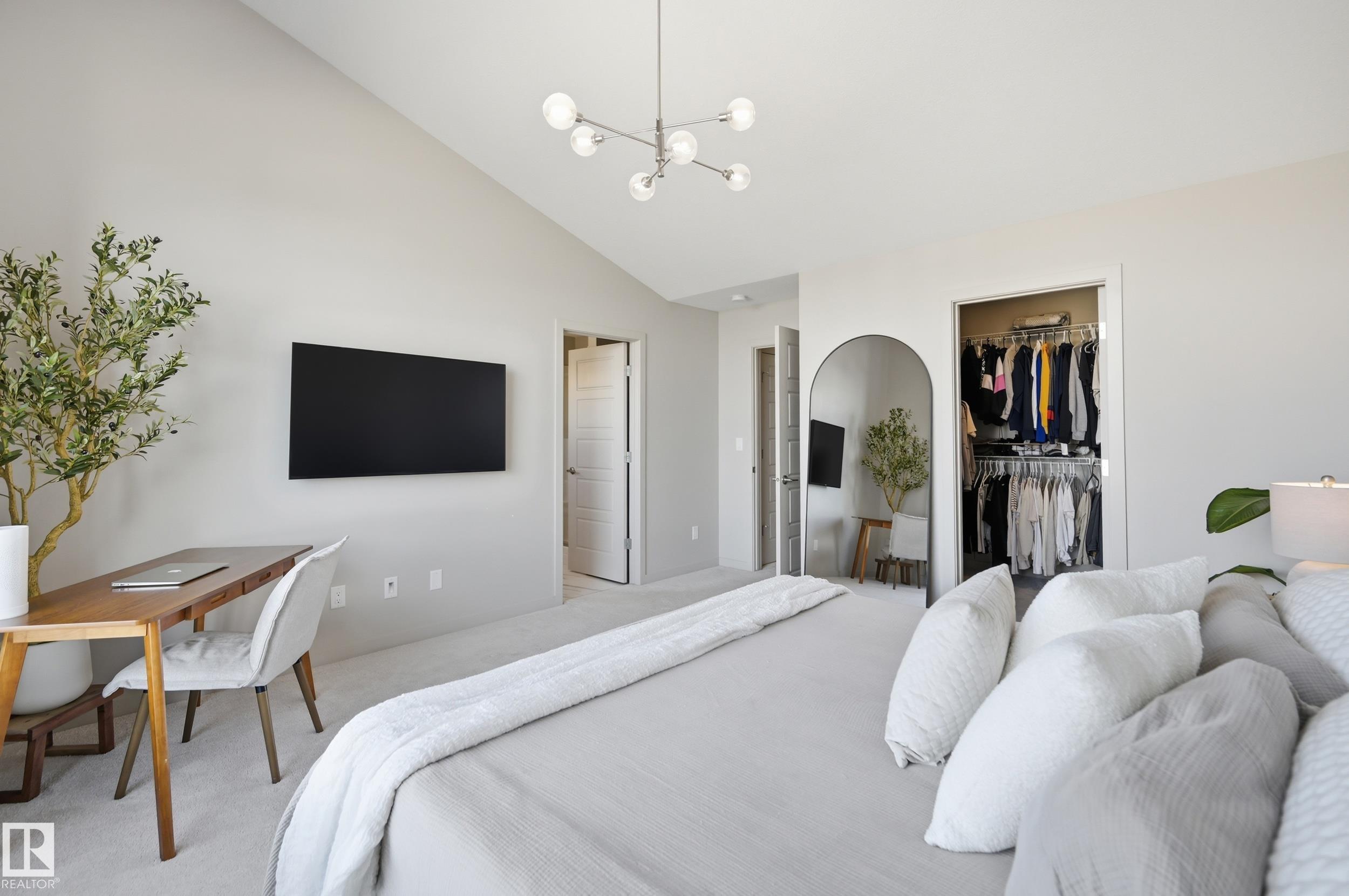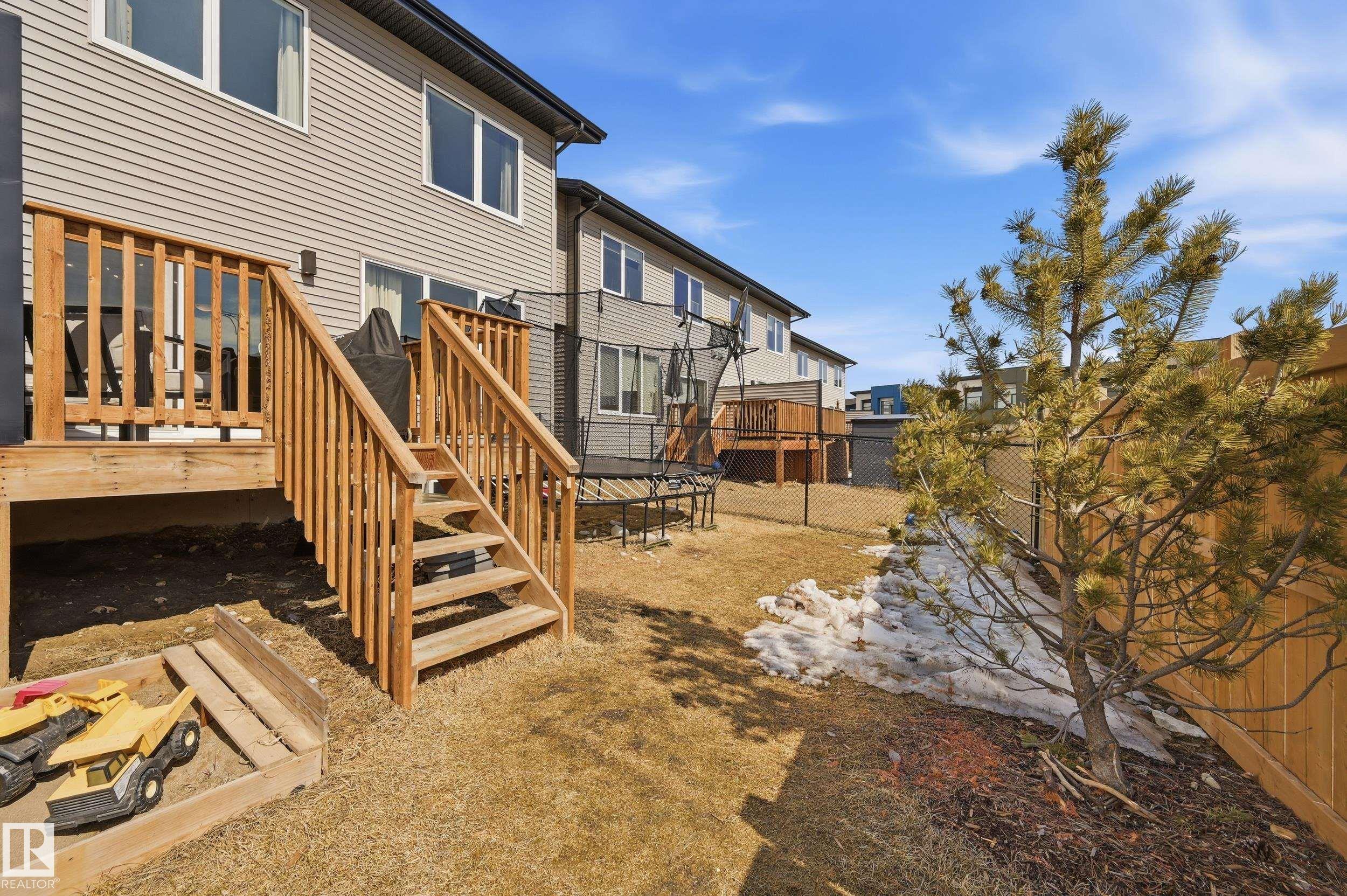 Welcome to this beautiful half duplex tucked away in Erin Ridge North. The main floor is sunfilled, and hosts an open concept living space. The kitchen features warm neutral colours, plenty of cabinetry and counter space, modern appliances and details, complete w/ a central island and closet pantry. The living room has large windows and an electric fireplace. The dining space has easy access to your back deck & fenced in back yard! Completing this level is a 2 pce bathroom & access to your insulated double attached garage. Upstairs has a spacious laundry room, 4 pce main bathroom & 3 good sized bedrooms incl. the primary suite w/ soaring vaulted ceilings, large window, walk-in closet and 3 pce ensuite. The basement is partially finished w/ a den/4th bedroom, large rec space & utility room. (Future bathroom rough ins are there for your future plans). Other notable features: A/C, gas line to BBQ, full basement electrical outlets complete, steps to Lois Hole Elementary, shopping & all amenities!