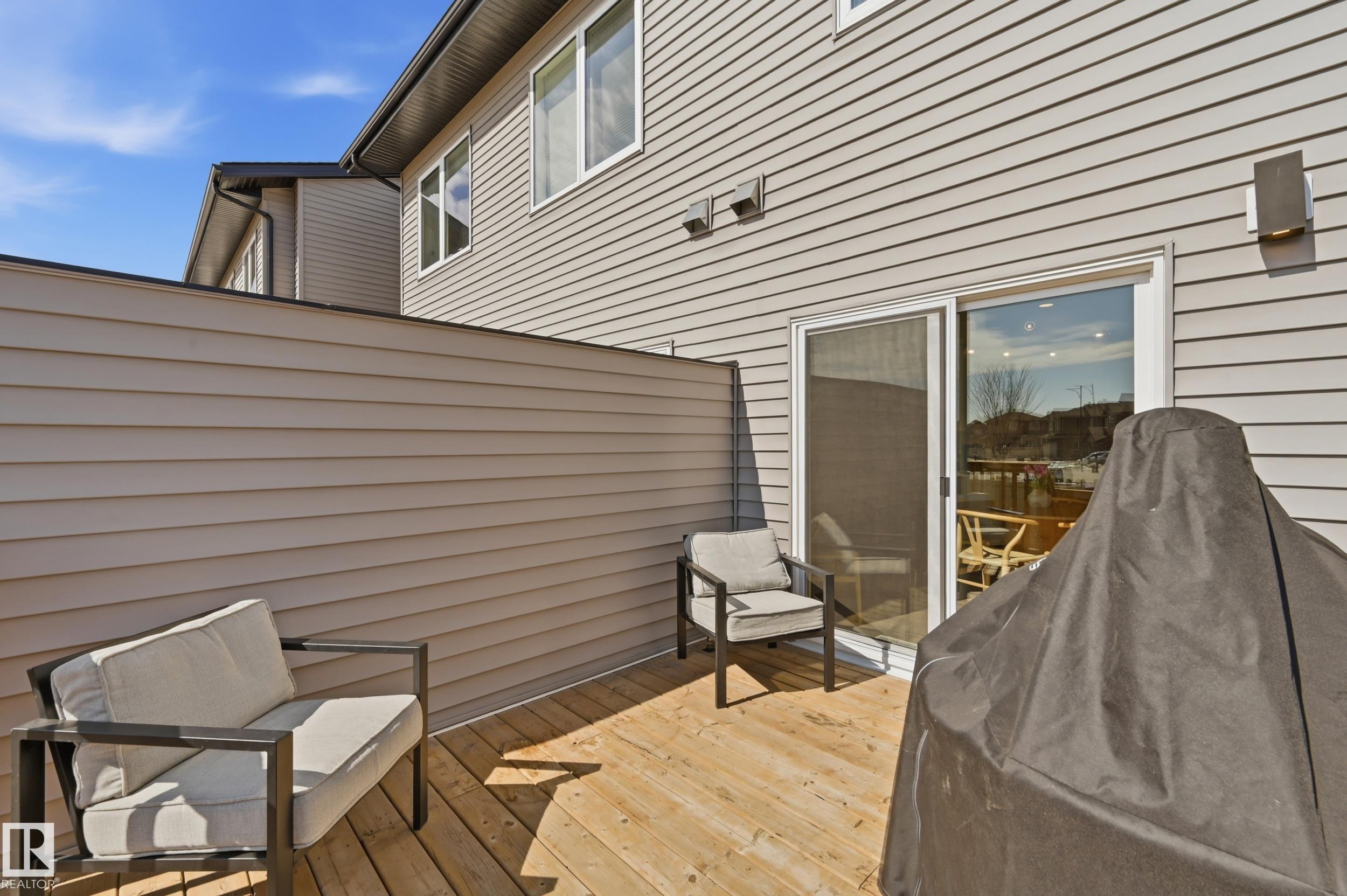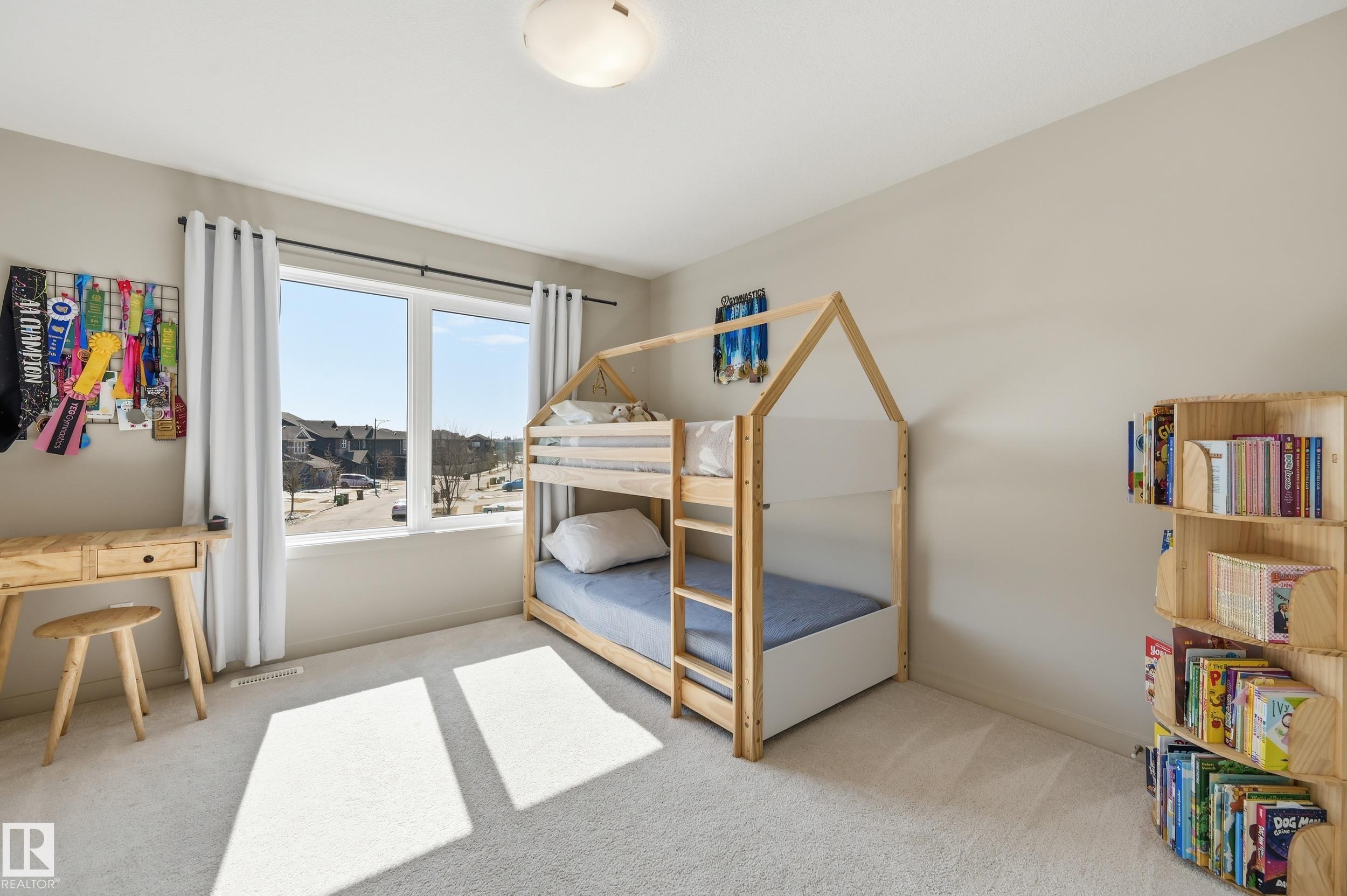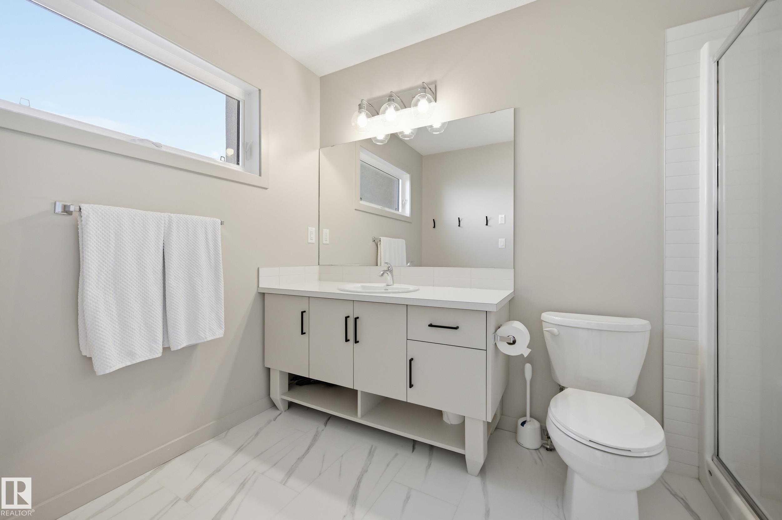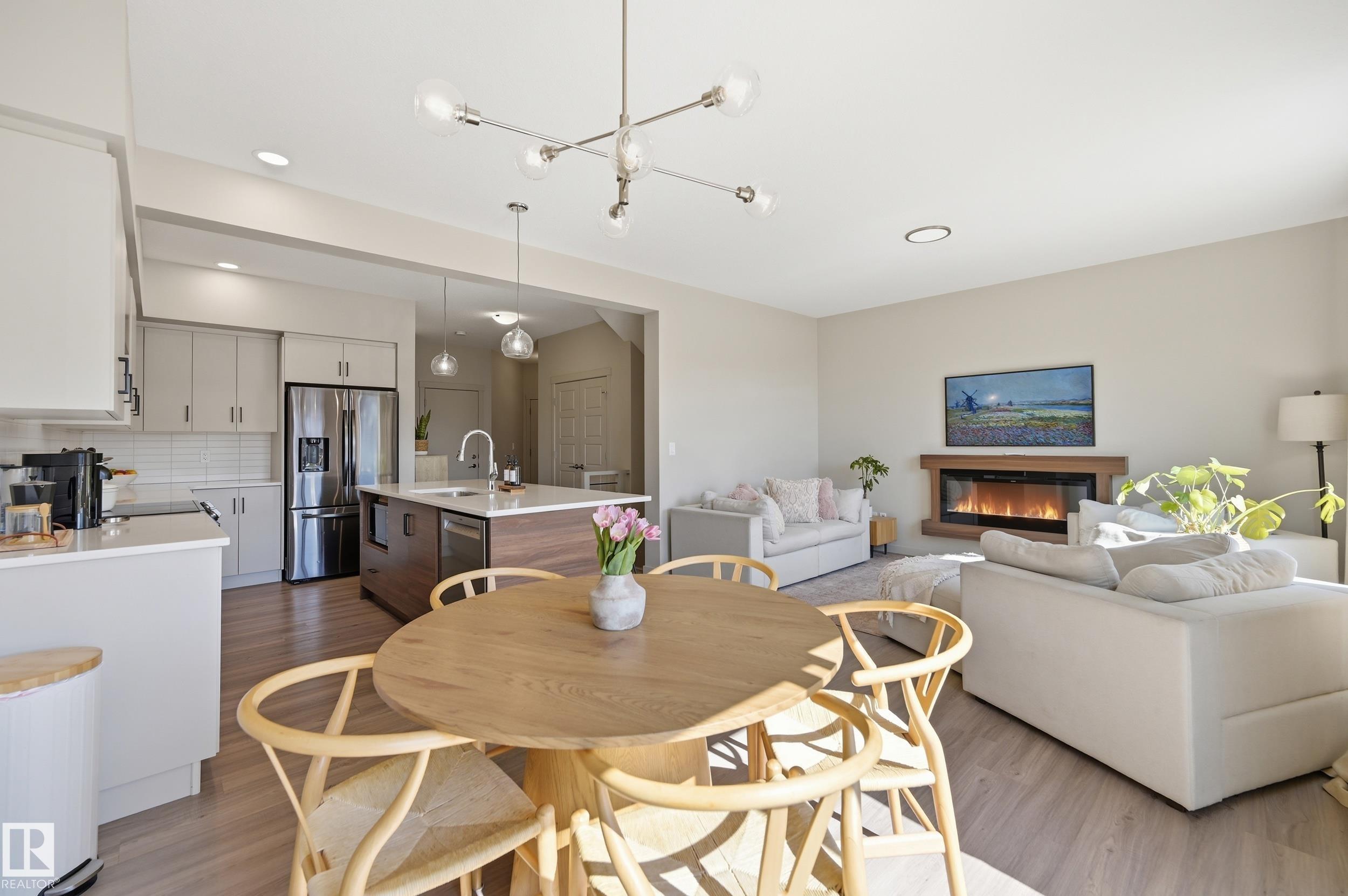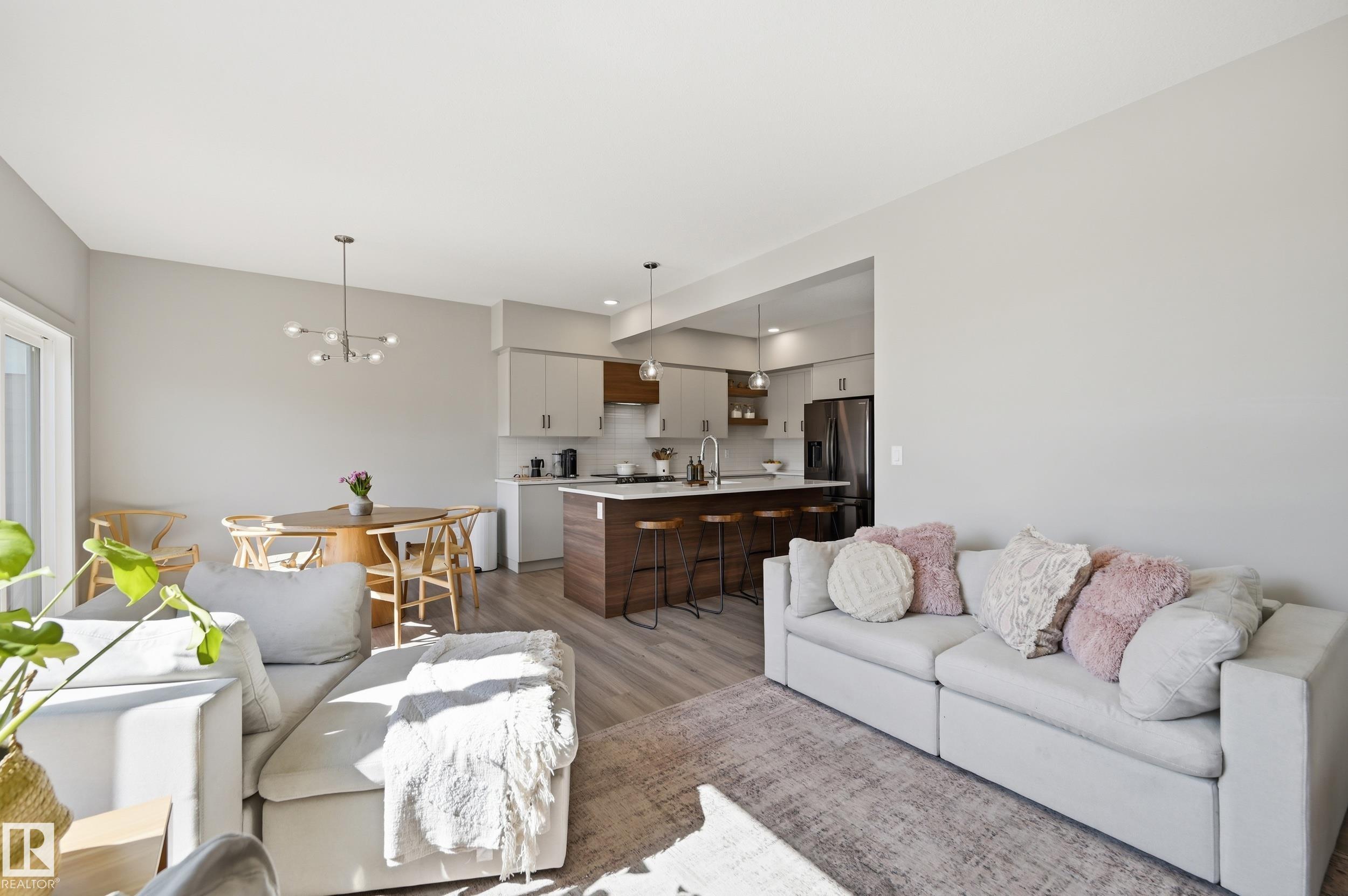 Welcome to this beautiful half duplex tucked away in Erin Ridge North. The main floor is sunfilled, and hosts an open concept living space. The kitchen features warm neutral colours, plenty of cabinetry and counter space, modern appliances and details, complete w/ a central island and closet pantry. The living room has large windows and an electric fireplace. The dining space has easy access to your back deck & fenced in back yard! Completing this level is a 2 pce bathroom & access to your insulated double attached garage. Upstairs has a spacious laundry room, 4 pce main bathroom & 3 good sized bedrooms incl. the primary suite w/ soaring vaulted ceilings, large window, walk-in closet and 3 pce ensuite. The basement is partially finished w/ a den/4th bedroom, large rec space & utility room. (Future bathroom rough ins are there for your future plans). Other notable features: A/C, gas line to BBQ, full basement electrical outlets complete, steps to Lois Hole Elementary, shopping & all amenities!