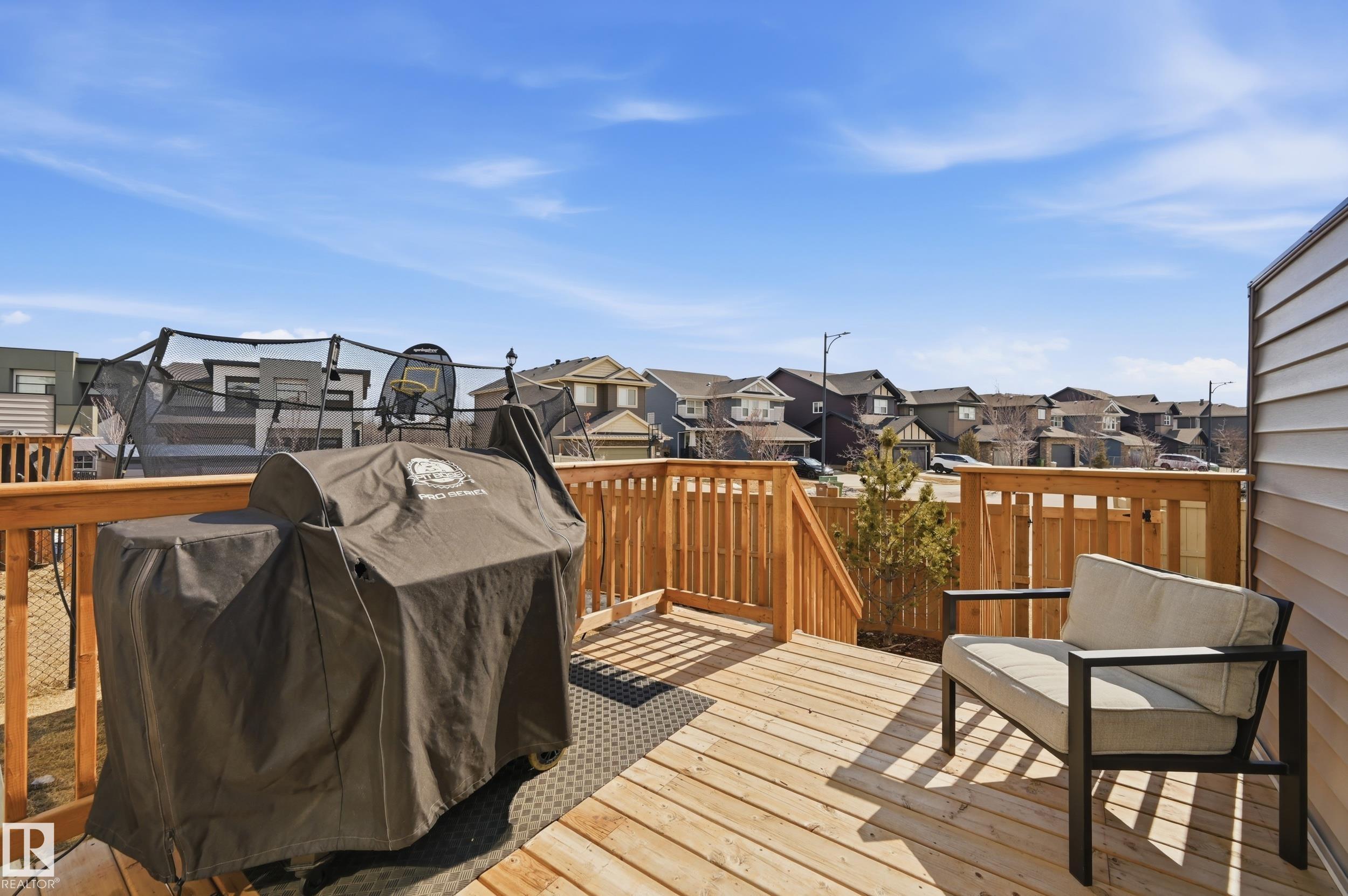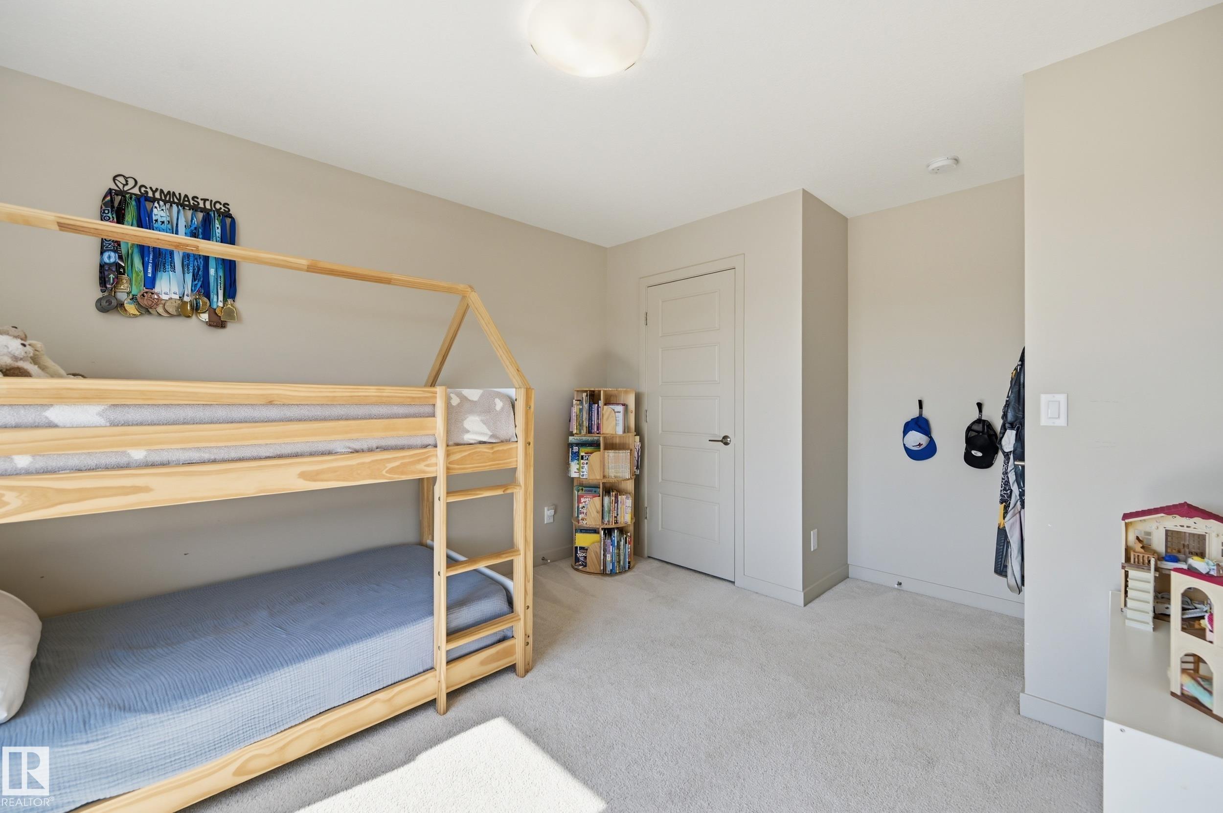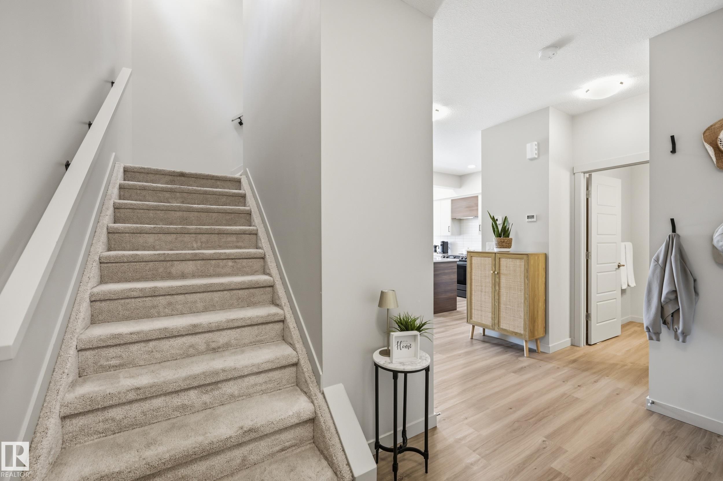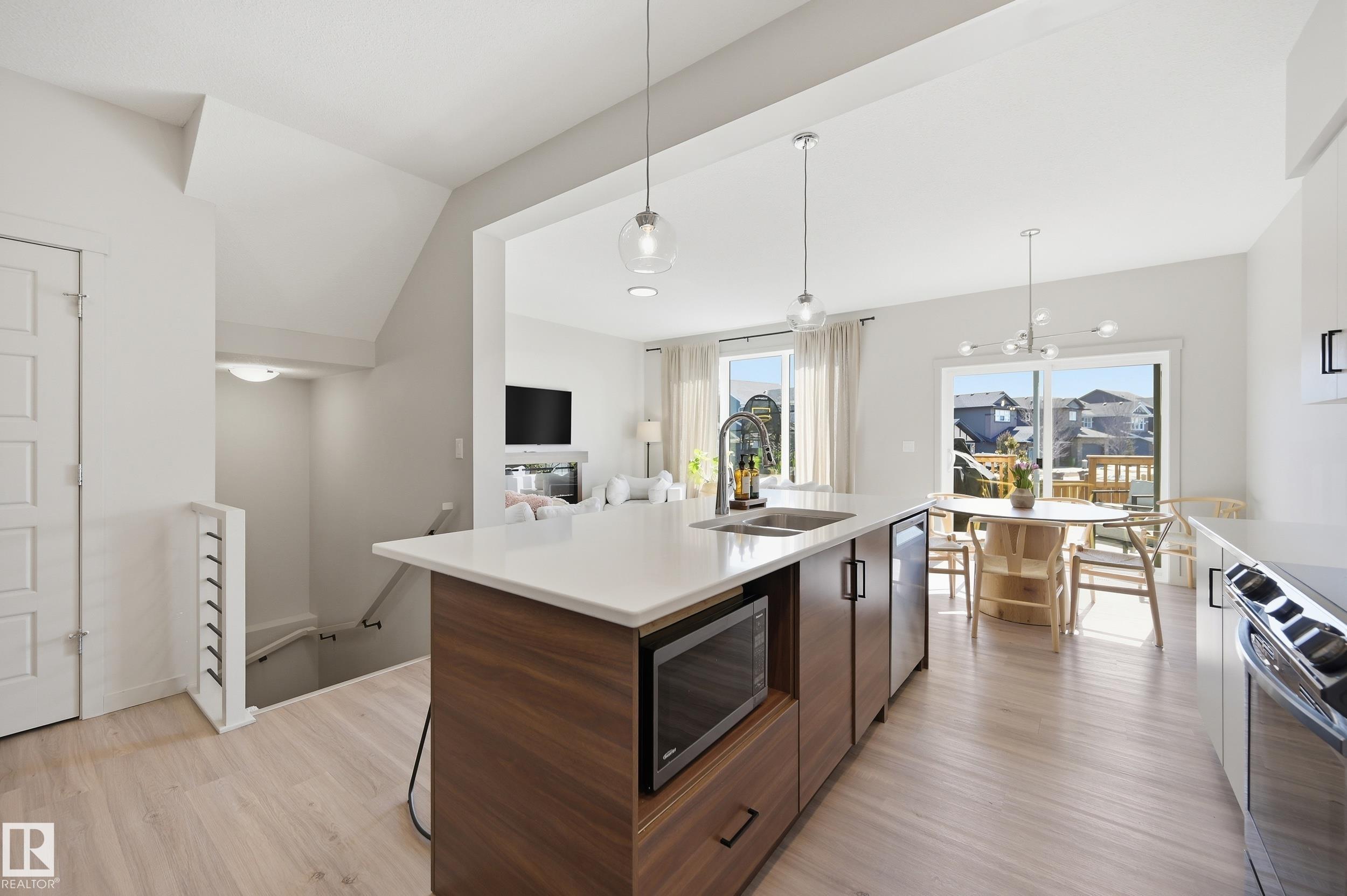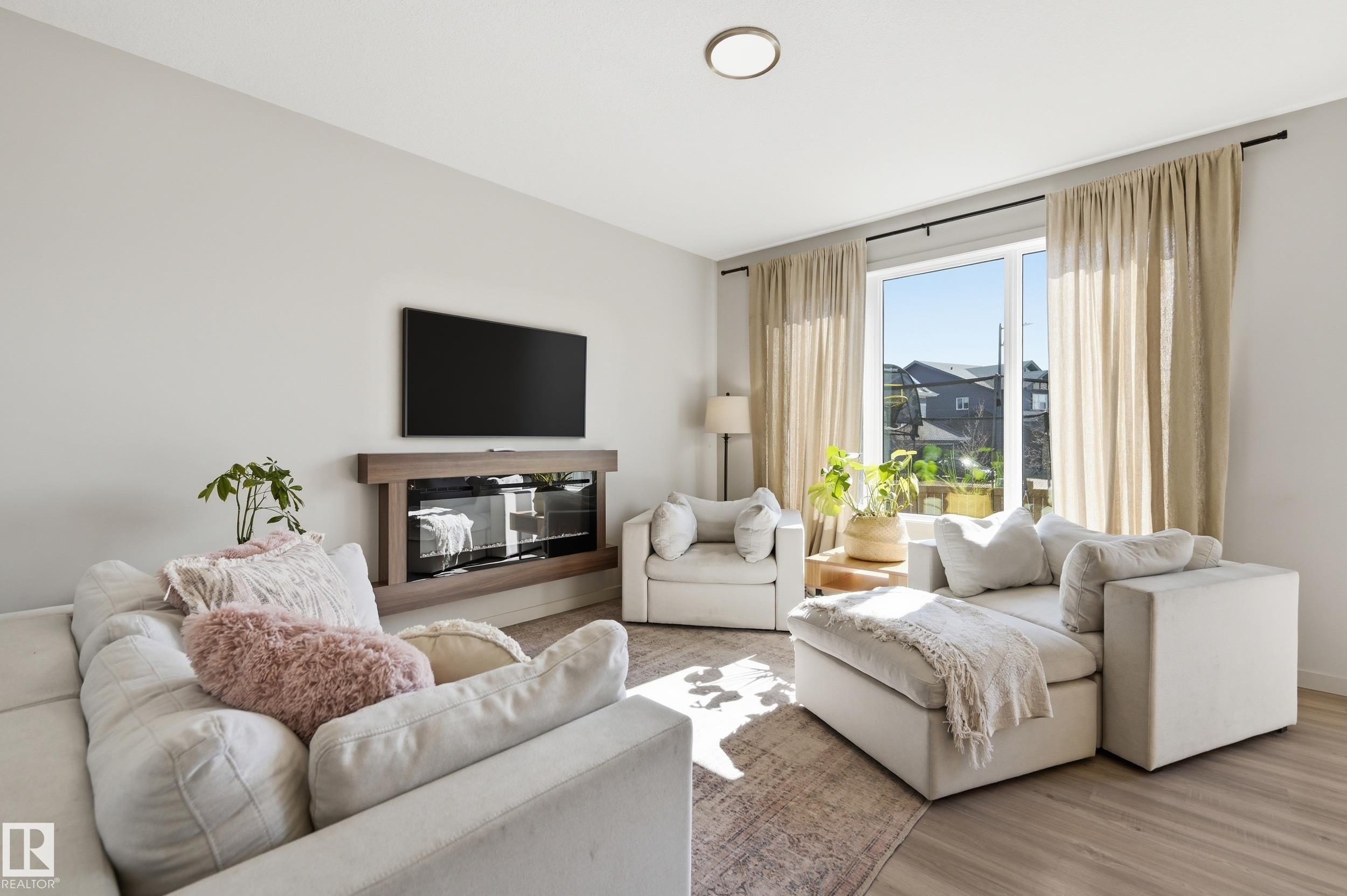 Welcome to this beautiful half duplex tucked away in Erin Ridge North. The main floor is sunfilled, and hosts an open concept living space. The kitchen features warm neutral colours, plenty of cabinetry and counter space, modern appliances and details, complete w/ a central island and closet pantry. The living room has large windows and an electric fireplace. The dining space has easy access to your back deck & fenced in back yard! Completing this level is a 2 pce bathroom & access to your insulated double attached garage. Upstairs has a spacious laundry room, 4 pce main bathroom & 3 good sized bedrooms incl. the primary suite w/ soaring vaulted ceilings, large window, walk-in closet and 3 pce ensuite. The basement is partially finished w/ a den/4th bedroom, large rec space & utility room. (Future bathroom rough ins are there for your future plans). Other notable features: A/C, gas line to BBQ, full basement electrical outlets complete, steps to Lois Hole Elementary, shopping & all amenities!