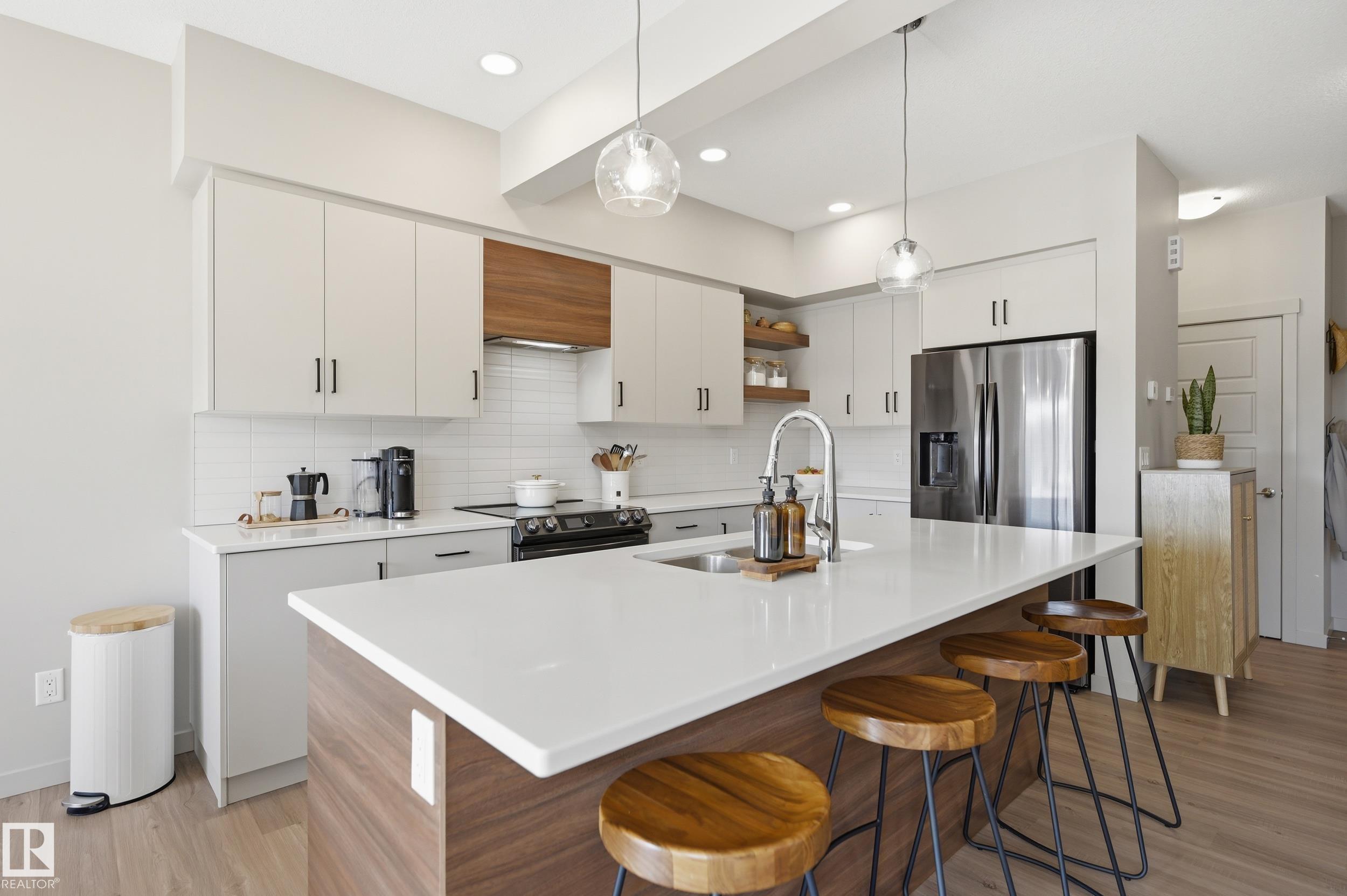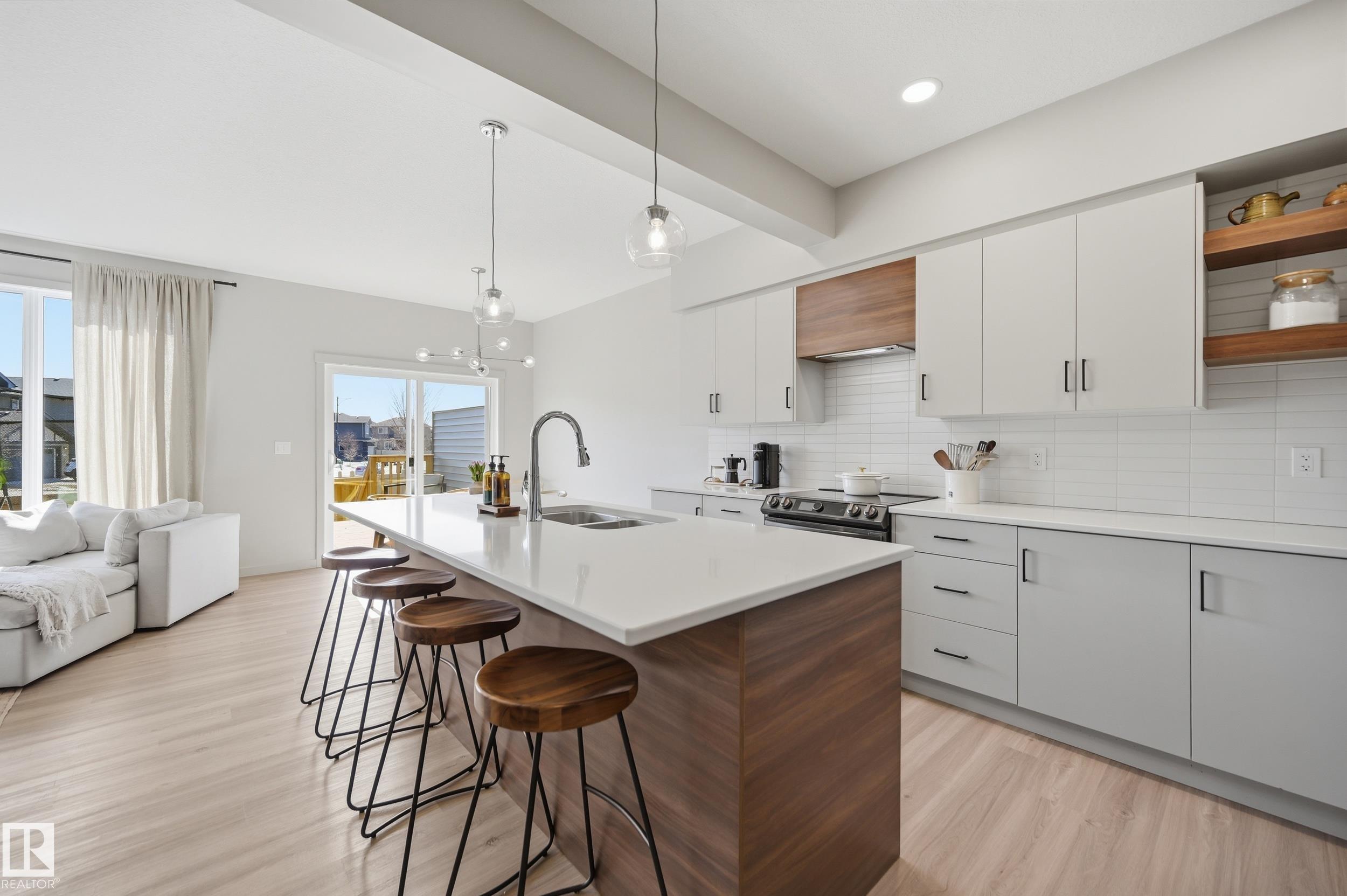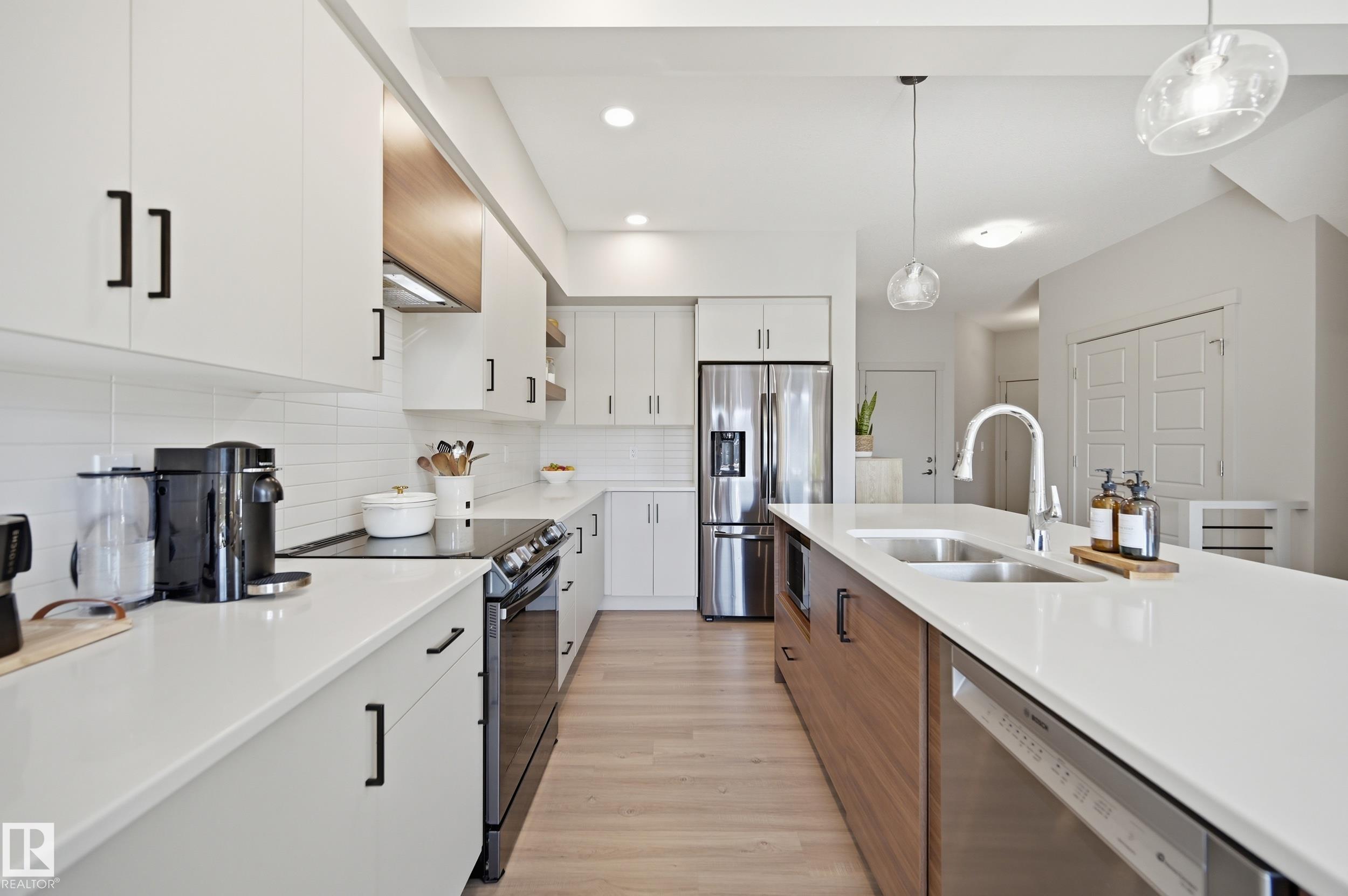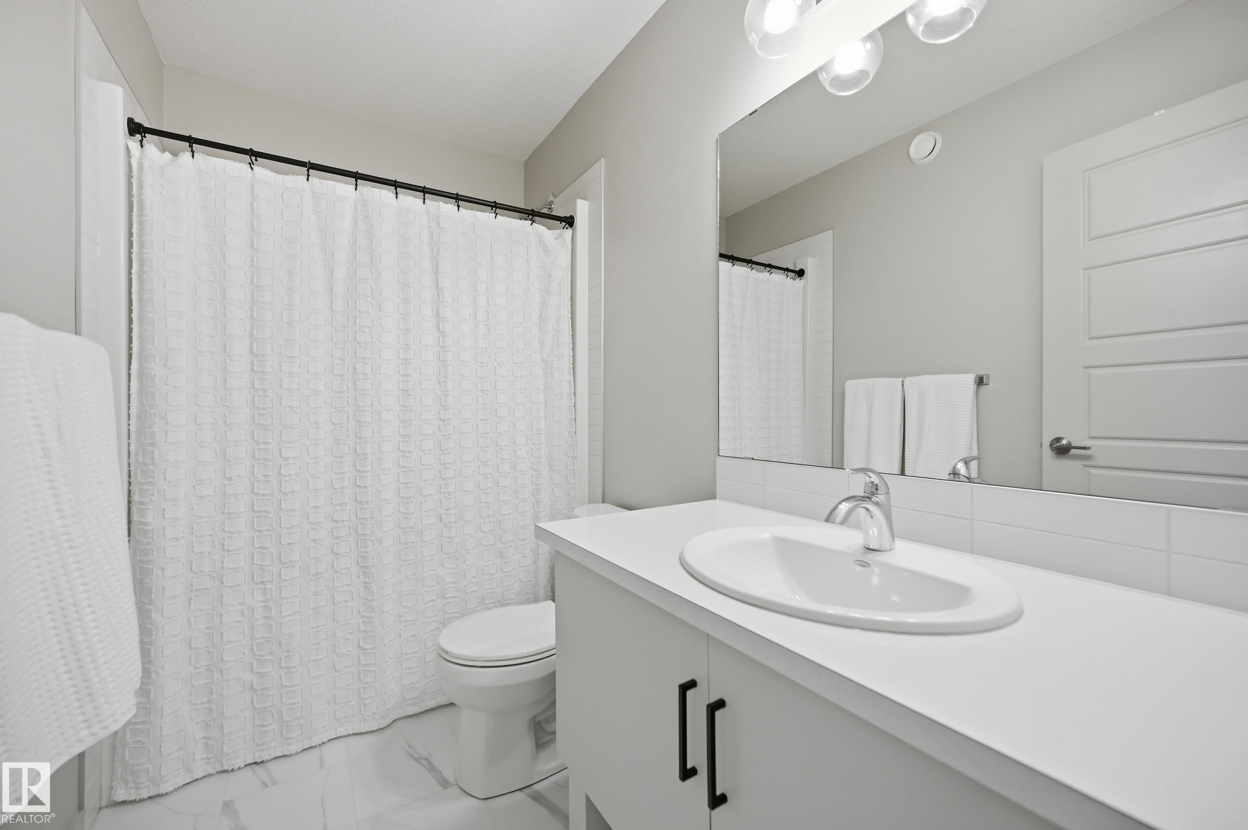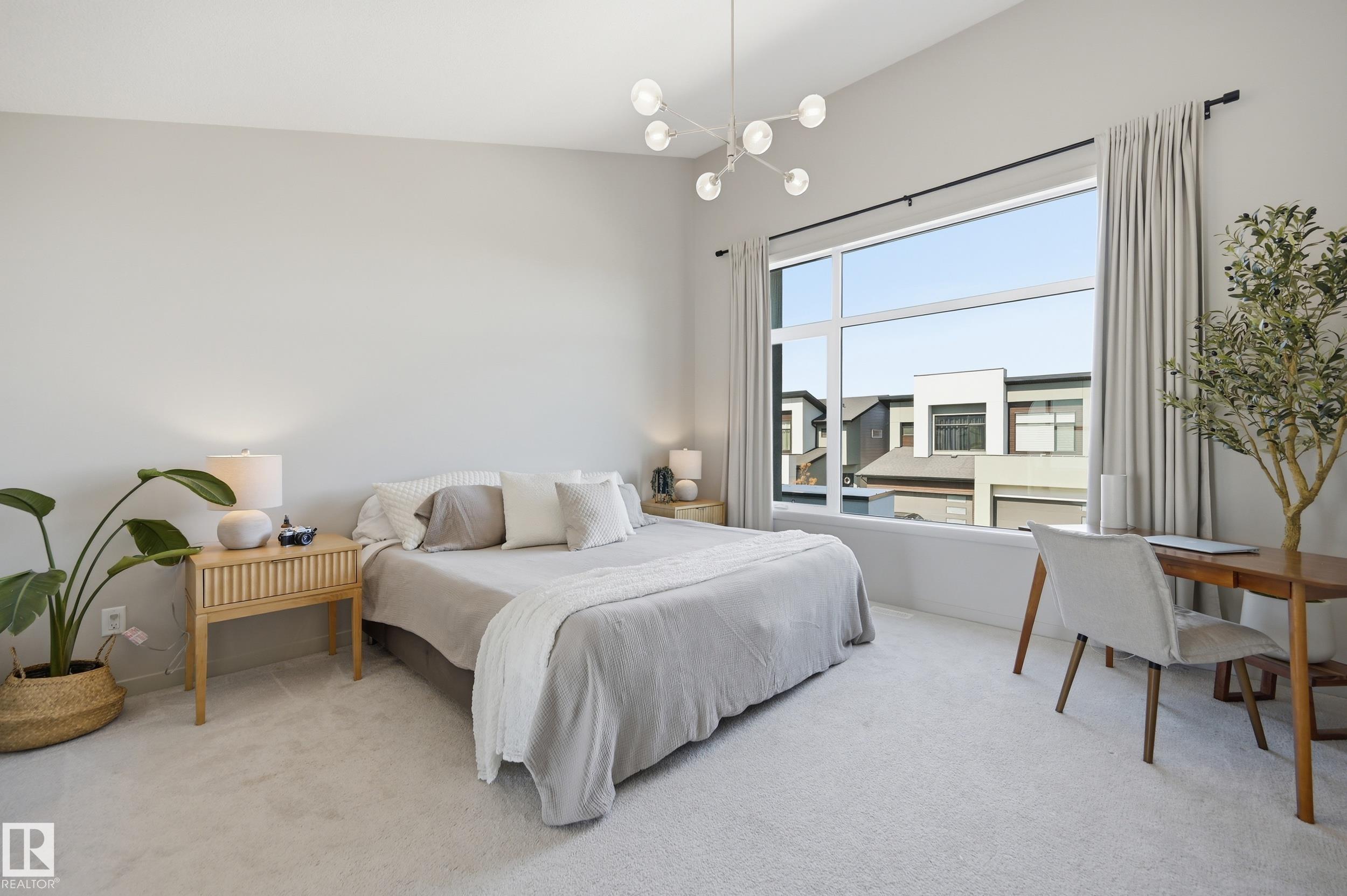 Welcome to this beautiful half duplex tucked away in Erin Ridge North. The main floor is sunfilled, and hosts an open concept living space. The kitchen features warm neutral colours, plenty of cabinetry and counter space, modern appliances and details, complete w/ a central island and closet pantry. The living room has large windows and an electric fireplace. The dining space has easy access to your back deck & fenced in back yard! Completing this level is a 2 pce bathroom & access to your insulated double attached garage. Upstairs has a spacious laundry room, 4 pce main bathroom & 3 good sized bedrooms incl. the primary suite w/ soaring vaulted ceilings, large window, walk-in closet and 3 pce ensuite. The basement is partially finished w/ a den/4th bedroom, large rec space & utility room. (Future bathroom rough ins are there for your future plans). Other notable features: A/C, gas line to BBQ, full basement electrical outlets complete, steps to Lois Hole Elementary, shopping & all amenities!