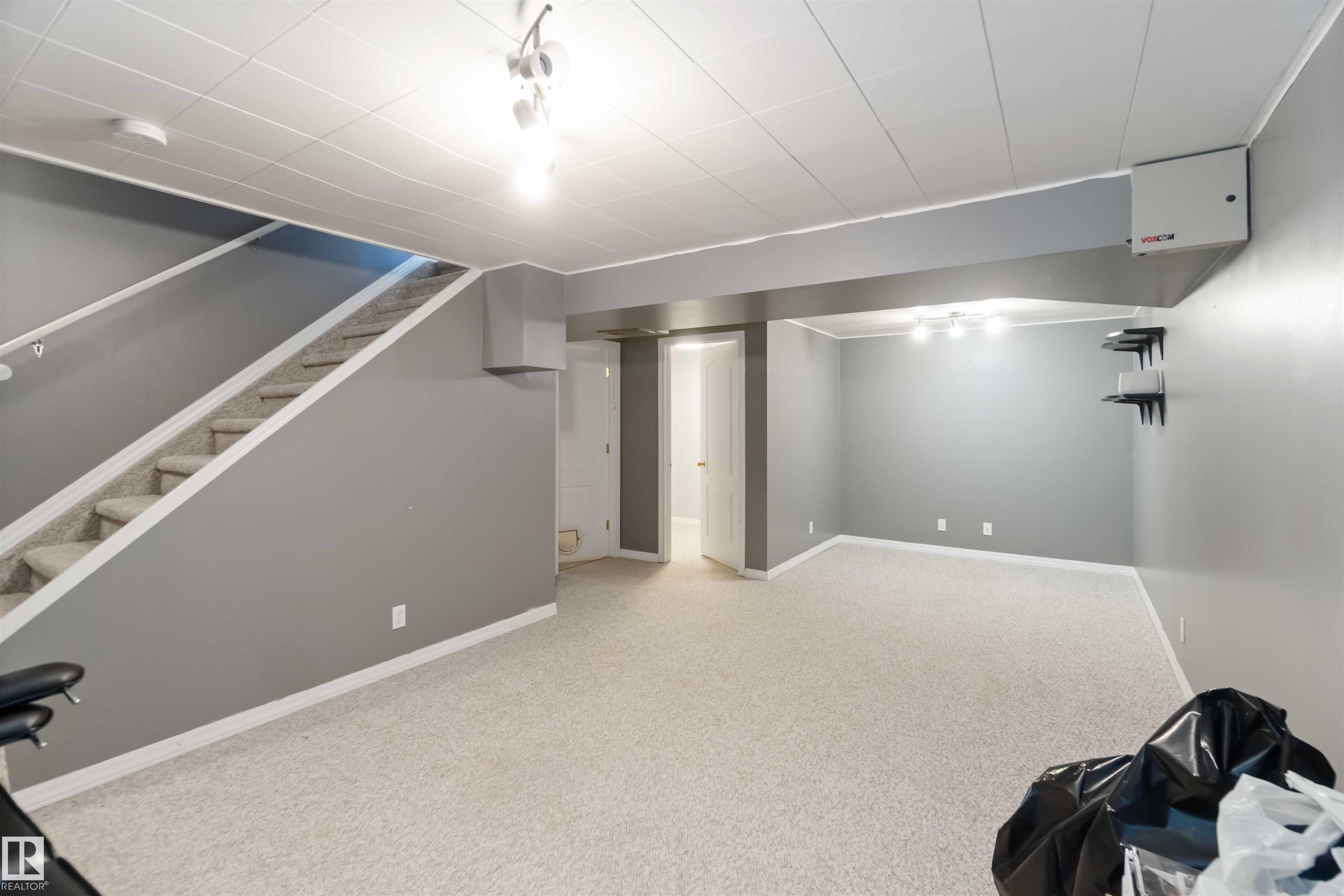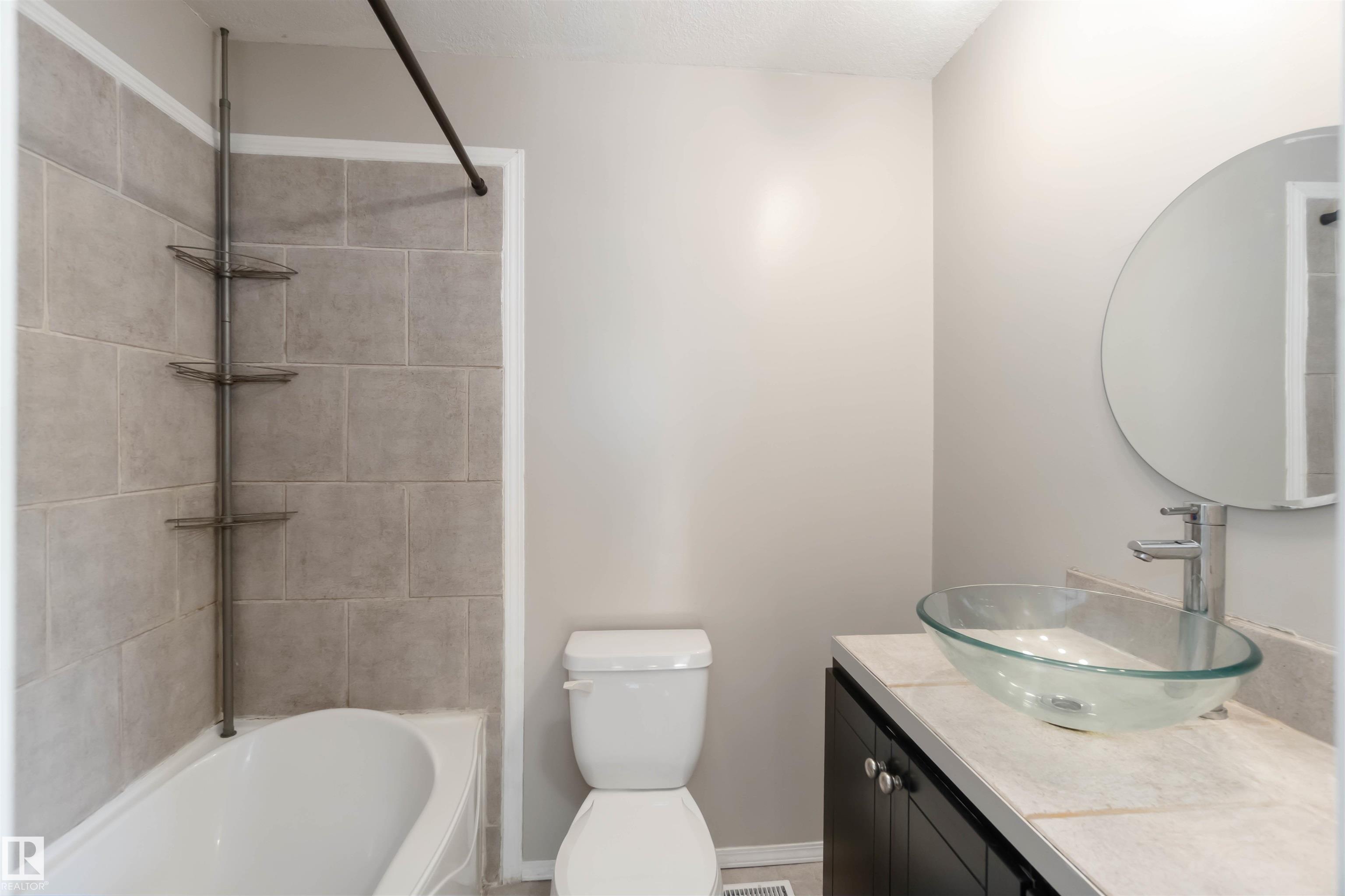 MOVE-IN-READY WITH BEAUTIFUL UPGRADES! This well-maintained 3 bed, 1 full + 2 half baths townhouse condo offers bright, functional living. Enjoy a spacious living room with BRAND NEW vinyl plank flooring, a formal dining area with garden doors to the freshly landscaped backyard, and an UPDATED kitchen with new fridge, dishwasher, cabinets, and fresh paint. Upstairs features three bedrooms including a primary with walk-through closet to a 2pc ensuite, plus a 4pc bath with a luxurious soaker tub. The fully finished basement includes a cozy family room, den, and laundry. Recent upgrades: new hot water tank, updated furnace, duct/dryer vent cleaning, new sod, new garage door opener, and freshly concreted driveway & walkway and fresh paved cul-de-sac. Located near schools, parks, trails, shopping & transit, with quick access to Ray Gibbon Dr, St Albert Trail, and Anthony Henday. Move-in ready & perfect for families! All this home needs is YOU!