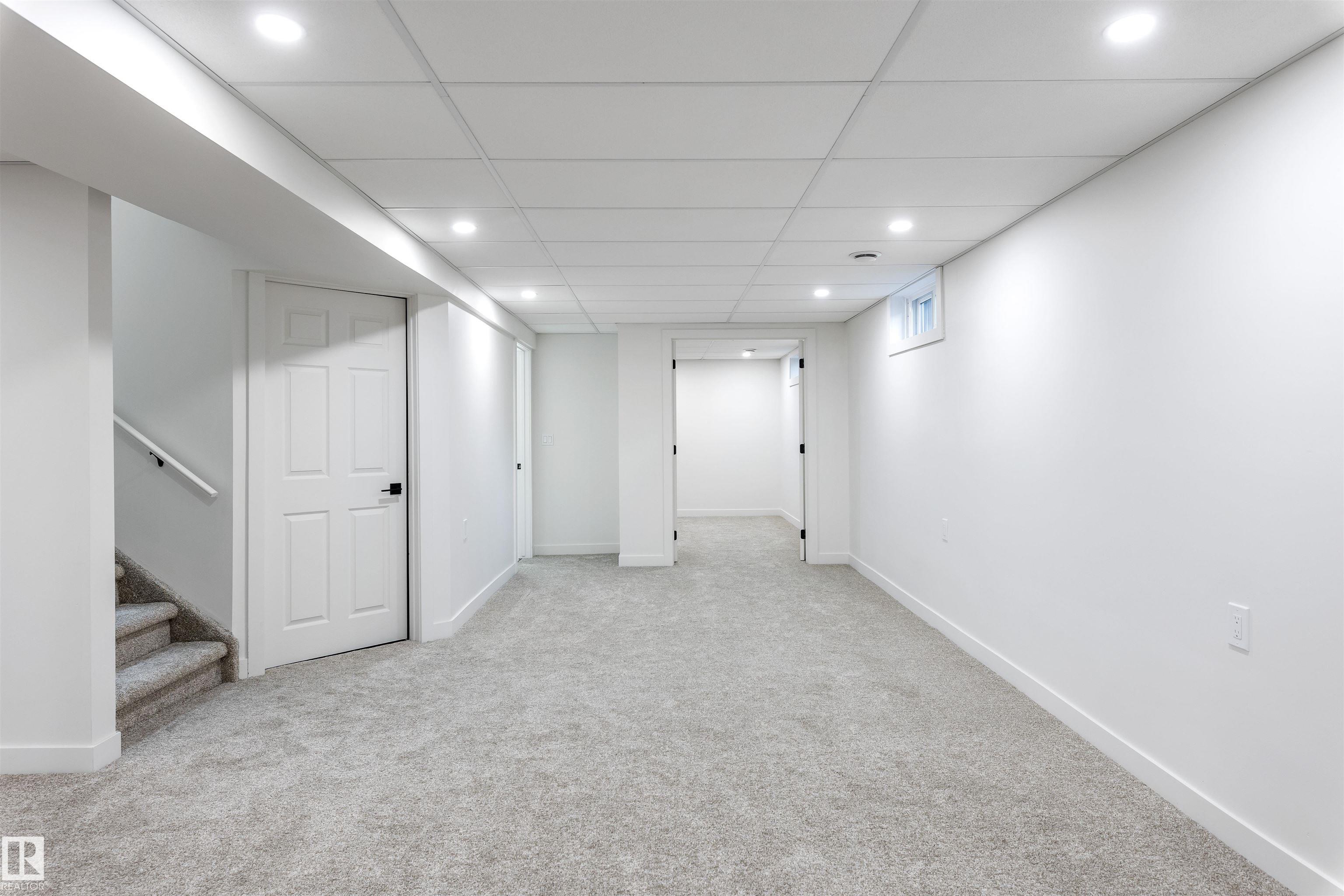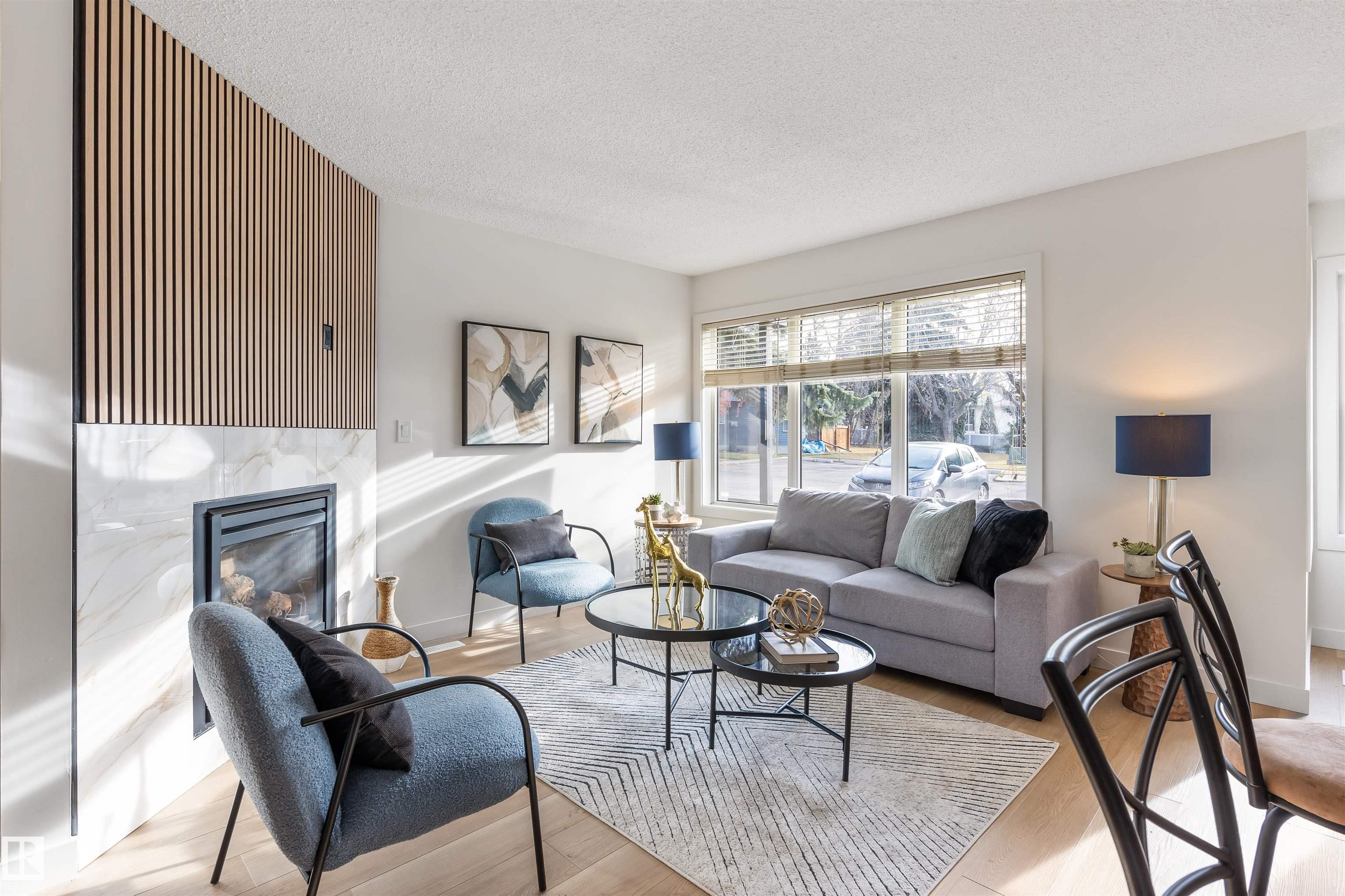 Discover this RENOVATED fully finished BUNGALOW in Grandin Estates. Siding onto GREENSPACE, this unit has an amazing location w/ a fenced yard & a large storage shed. The entrance enters into a modernized OPEN DESIGN. VINYL FLOORING spreads throughout the main floor. The kitchen has white cabinetry, QUARTZ COUNTERS, eating bar island, tiled back splash, pot/pan drawers, s/s appliances & more. The living room has large windows looking out front & a corner GAS F/P. There are double French doors off the entrance into the flex room, which makes an amazing office or an ADDITIONAL BEDROOM. The main bathroom is completely renovated w/ new cabinetry, tub/shower & fixtures. The spacious primary bedroom has double closets, sliding doors to a private back deck & a brand new 3pce ENSUITE. Across from the primary bedroom is the laundry. The basement is finished w/ a massive family room, 3pce bath & flex room. There are 2 assigned parking stalls in front of this unit!