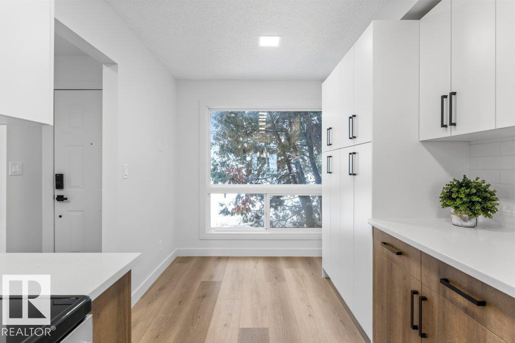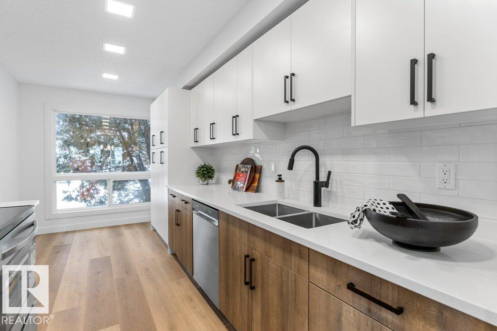 STYLISHLY RENOVATED & MOVE-IN READY! This beautifully updated 1,162 sq ft condo offers modern comfort and effortless living. The brand-new kitchen is a standout, featuring quartz countertops, tile backsplash, new cabinetry with pantry space, and updated appliances--perfect for everyday living and entertaining. New vinyl plank flooring and plush carpet flow throughout, complemented by updated light fixtures and sleek new pot lights that brighten every space. The bathrooms have been fully refreshed with a new stand-up shower, new bathtub, modern tilework, and updated plumbing fixtures for a clean, contemporary feel. Additional upgrades include a newer hot water tank, adding peace of mind. Thoughtfully renovated from top to bottom, this home offers a fresh, modern look with nothing left to do but move in and enjoy. Conveniently located close to schools, shopping, and quick access to the Anthony Henday, making daily commutes and errands easy. Ideal for first-time buyers, downsizers.