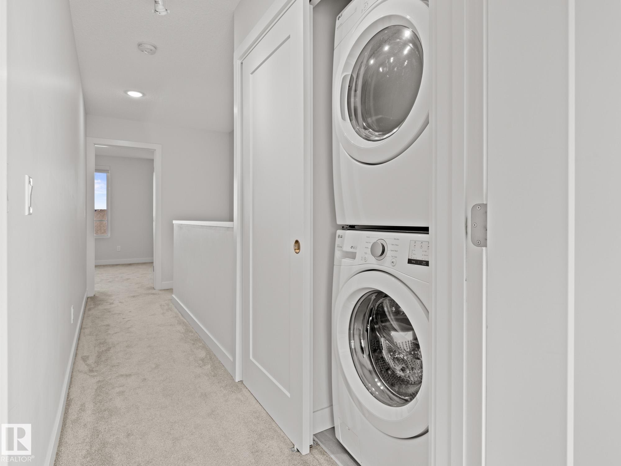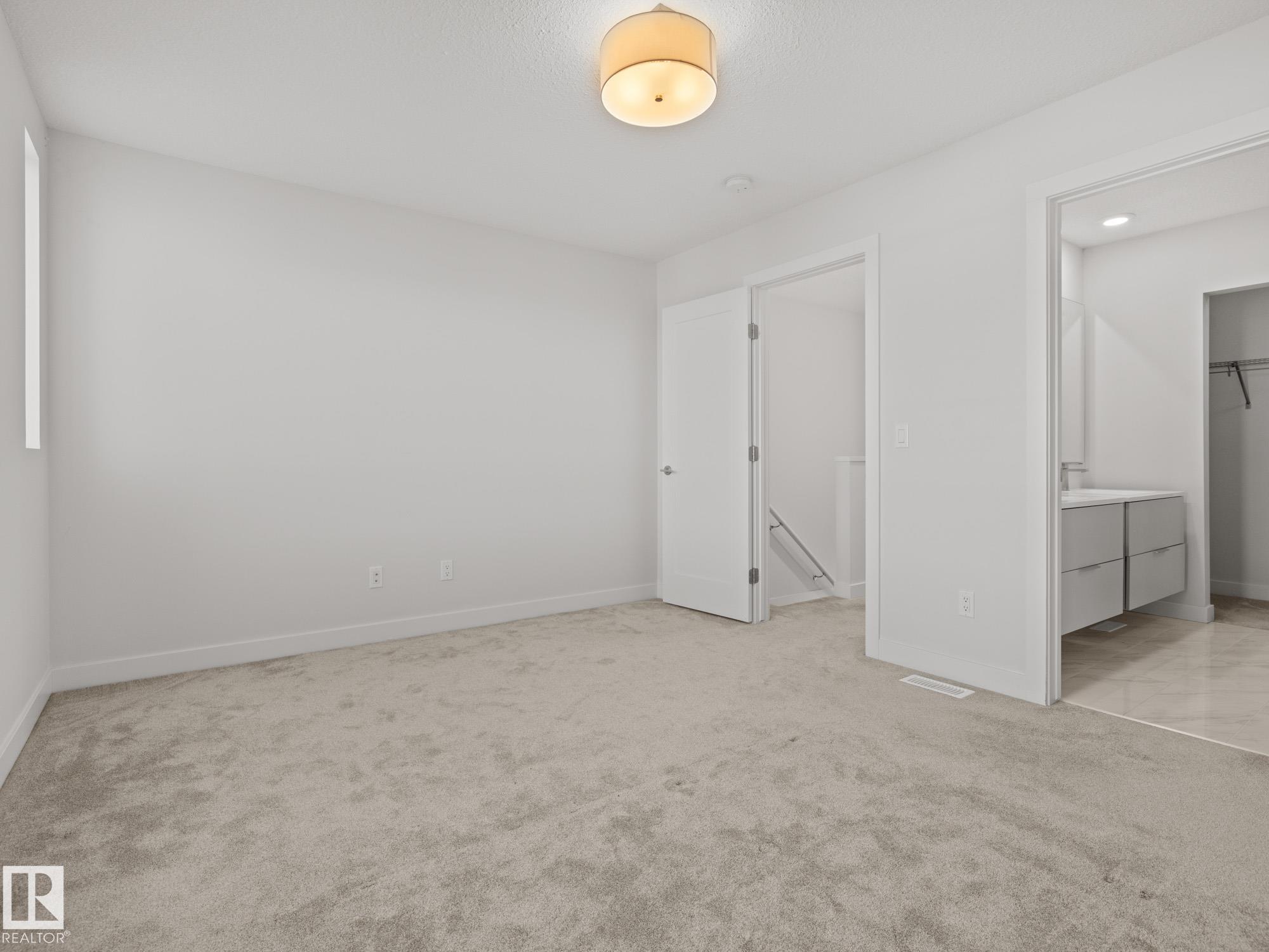 Welcome to this nearly NEW townhome in the beautiful Jensen Lakes community of St. Albert! Enjoy MAINTENANCE-FREE living just steps from the BEACH, parks, trails, dining, and theatre. This STYLISH home offers an open-concept layout with 2 bedrooms and 2.5 modern bathrooms. NATURAL LIGHT pours in through large windows, creating a warm, welcoming space for entertaining or relaxing. The SLEEK kitchen features white cabinetry, quartz countertops with a breakfast bar, and stainless-steel appliances. It flows seamlessly into the SPACIOUS living and dining areas and opens to a CHARMING upper deck. Upstairs, you'll find 2 PRIMARY SUITES--each with its own ensuite and closet--plus a convenient laundry area. The ground level includes a MASSIVE tandem garage, utility space, and access to a fenced yard and green space. Whether you're starting out or downsizing, this home is move-in ready, low maintenance, and ideally located--it truly rates a perfect 10/10!