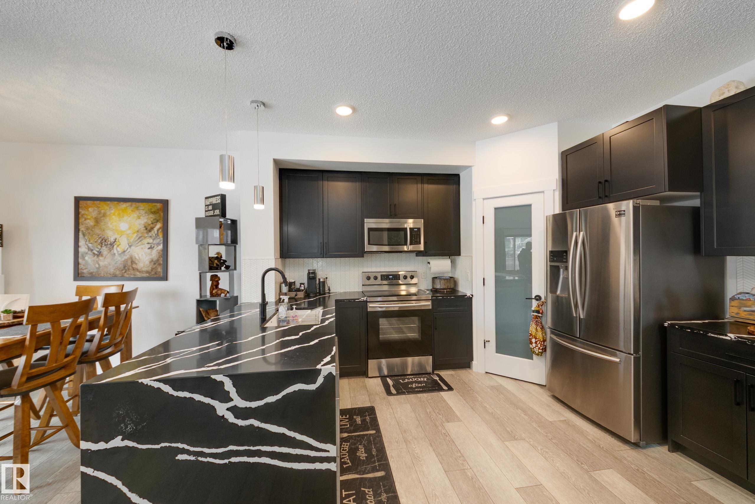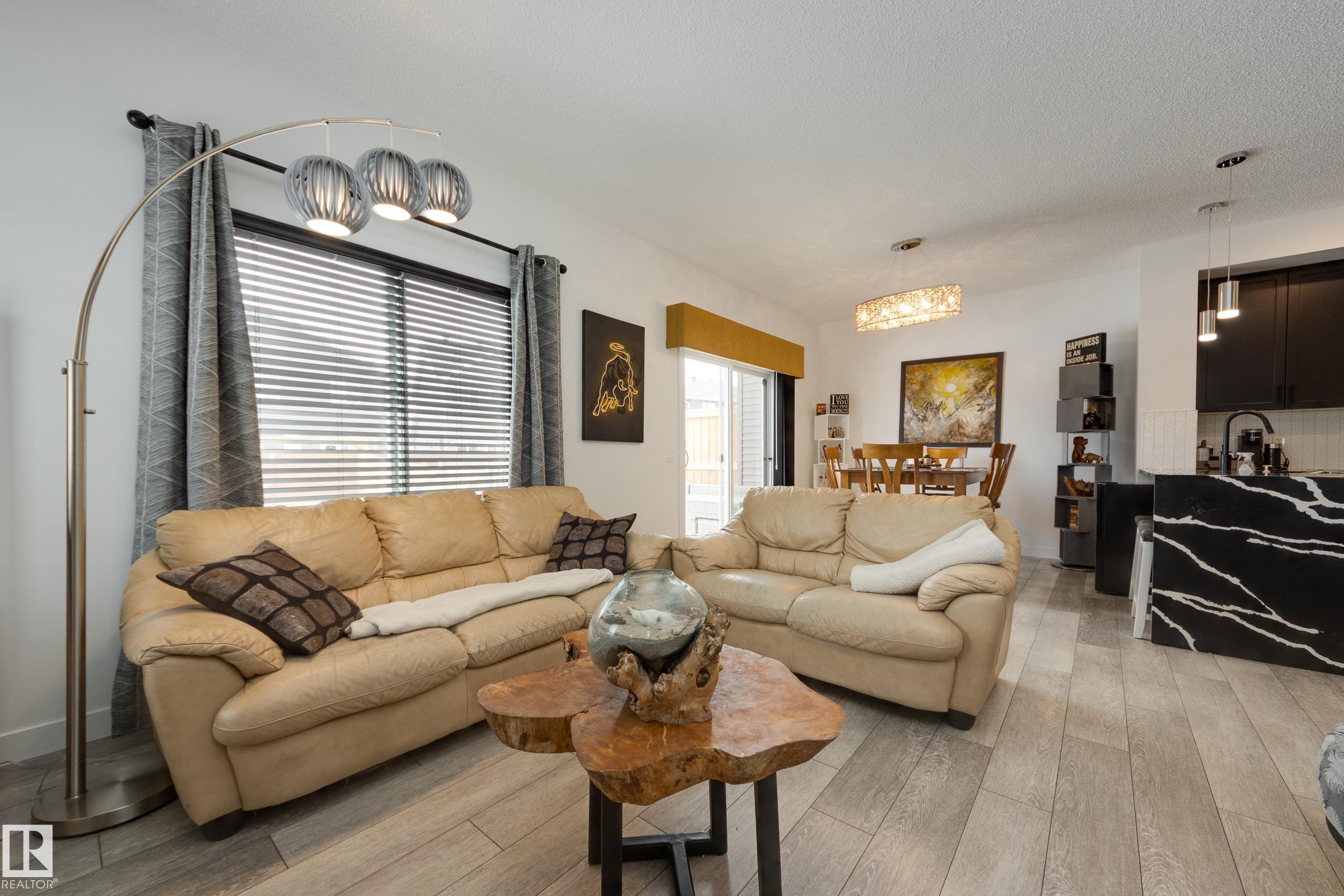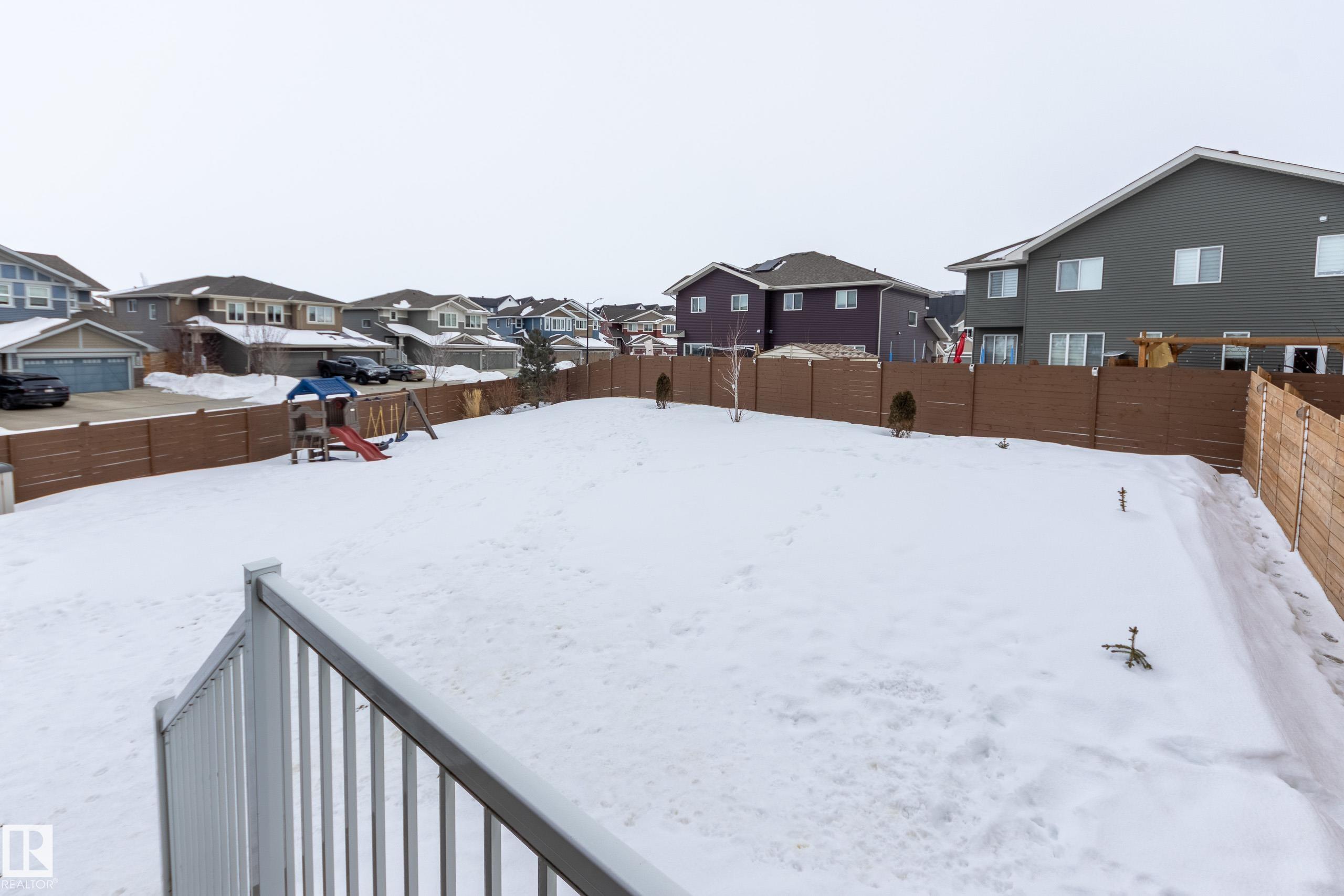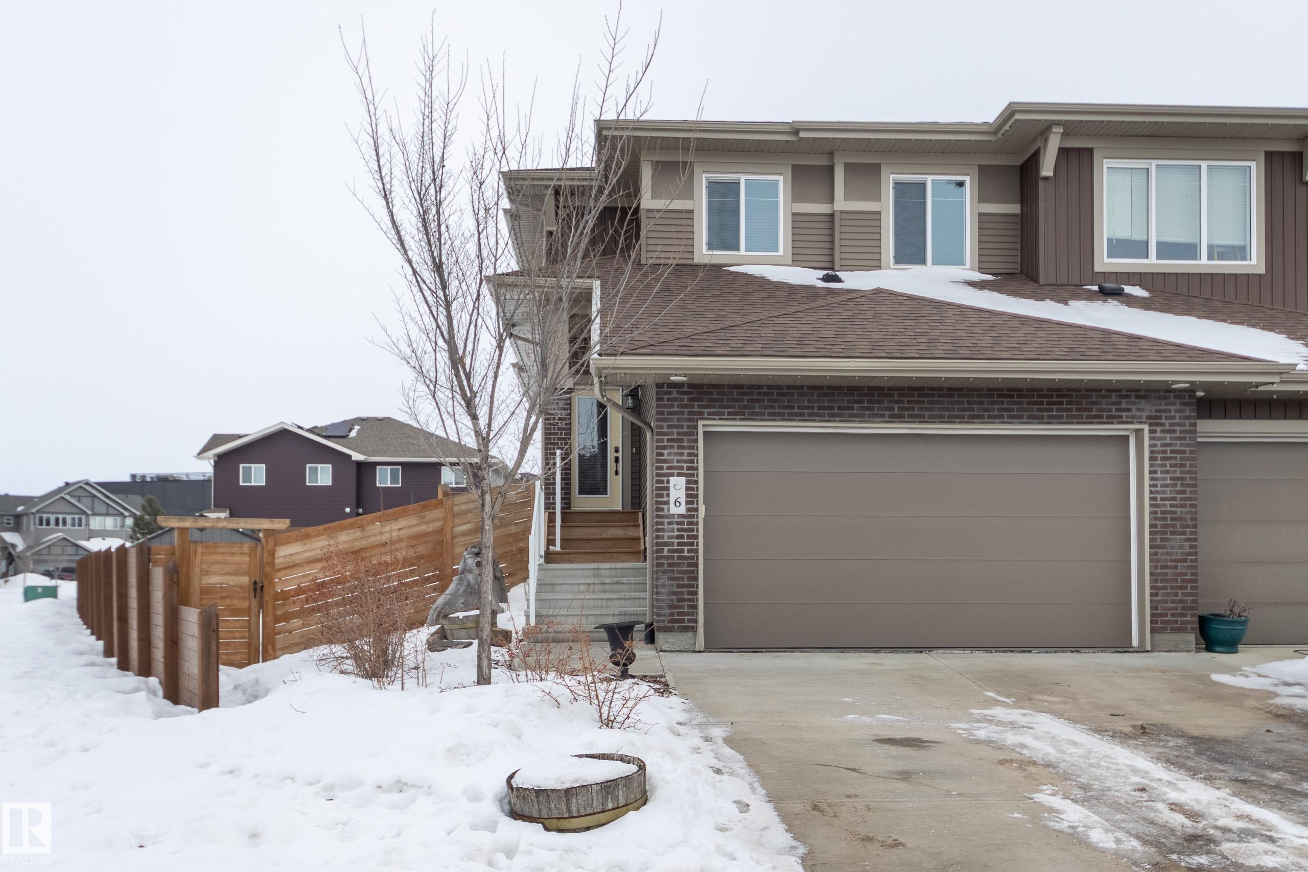 Jensen Lakes beauty on a HUGE lot! Room to roam, perfect location for family and pets. Spacious duplex is a former showhome with fully finished and heated double attached garage that also features epoxy flooring. The main floor has laminate flooring; a huge kitchen with corner pantry and lots of cabinet space and granite counter tops including a showy 'waterfall' edge. Large great room & dining area with doors to the deck and backyard living space. Spindle rail accents the stairs to the second floor - loft area would be perfect reading nook, games area or home office! Large primary bedroom has a walk-in closet and a full ensuite, plus there are two more good sized bedrooms, a second full bath and the laundry is located here. The third bedroom also has a walk-in closet. Downstairs is set up with a large rec room, FOURTH bedroom and a FOURTH bathroom! Lots of extra storage here as well. Wonderful opportunity to live in this amazing family community