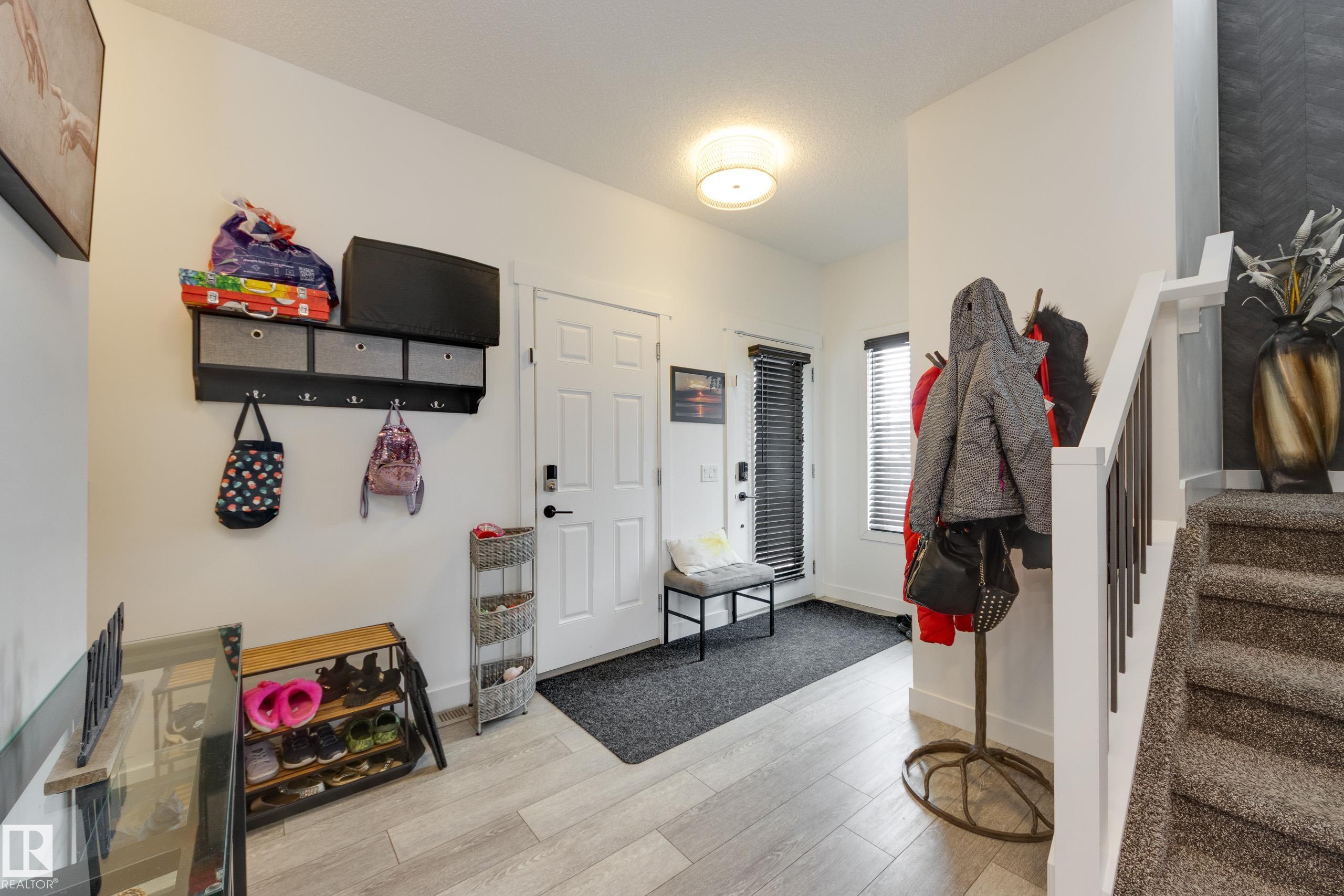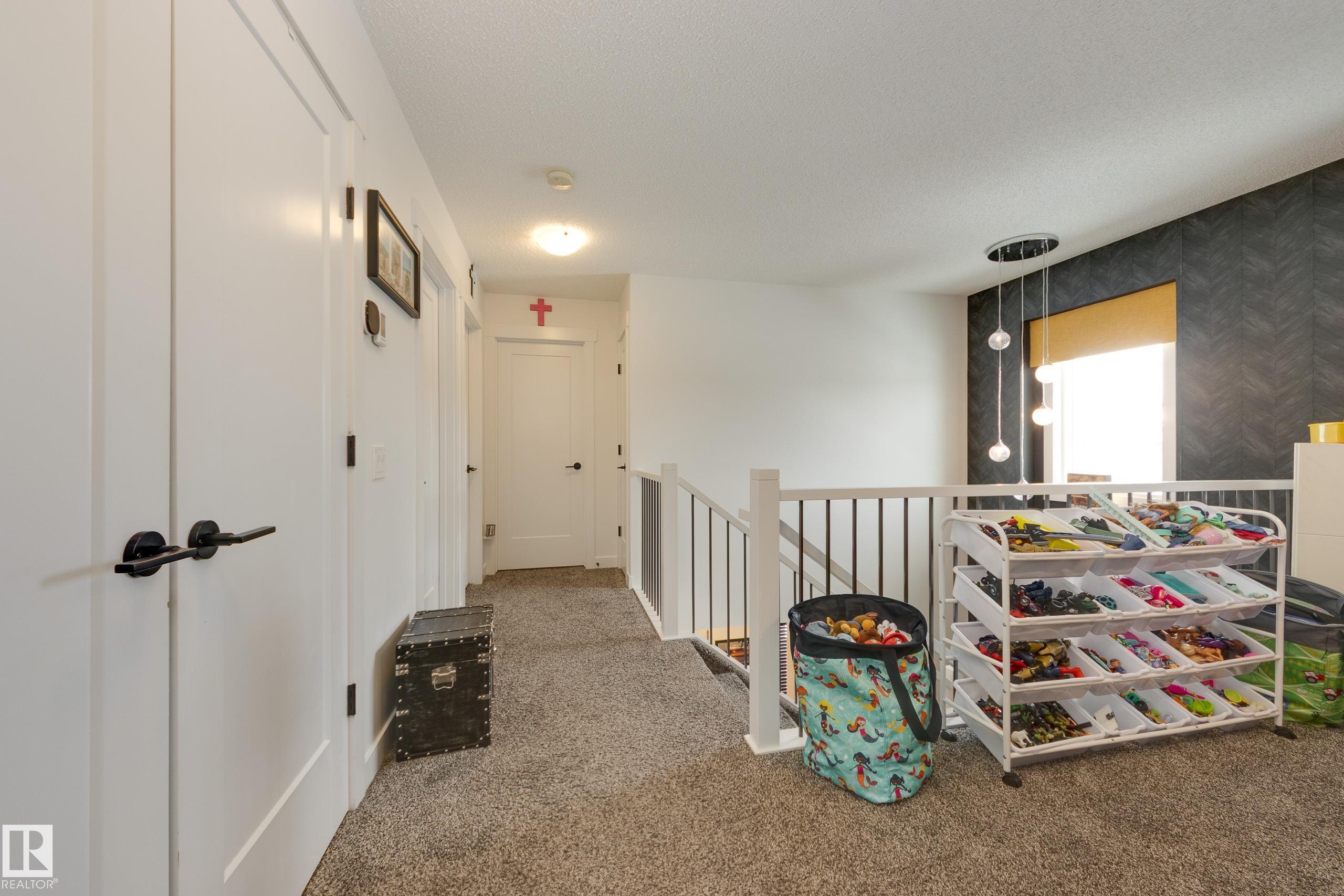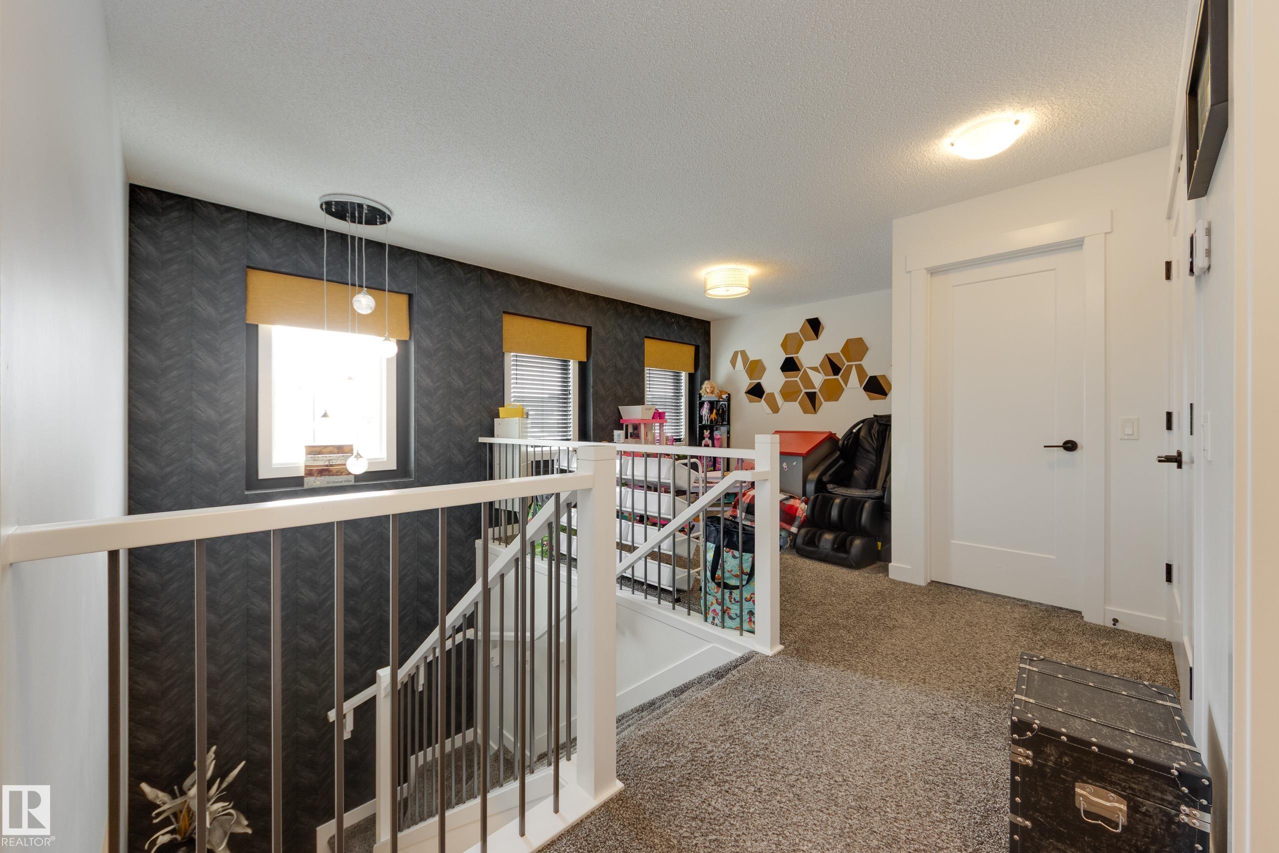 Jensen Lakes beauty on a HUGE lot! Room to roam, perfect location for family and pets. Spacious duplex is a former showhome with fully finished and heated double attached garage that also features epoxy flooring. The main floor has laminate flooring; a huge kitchen with corner pantry and lots of cabinet space and granite counter tops including a showy 'waterfall' edge. Large great room & dining area with doors to the deck and backyard living space. Spindle rail accents the stairs to the second floor - loft area would be perfect reading nook, games area or home office! Large primary bedroom has a walk-in closet and a full ensuite, plus there are two more good sized bedrooms, a second full bath and the laundry is located here. The third bedroom also has a walk-in closet. Downstairs is set up with a large rec room, FOURTH bedroom and a FOURTH bathroom! Lots of extra storage here as well. Wonderful opportunity to live in this amazing family community