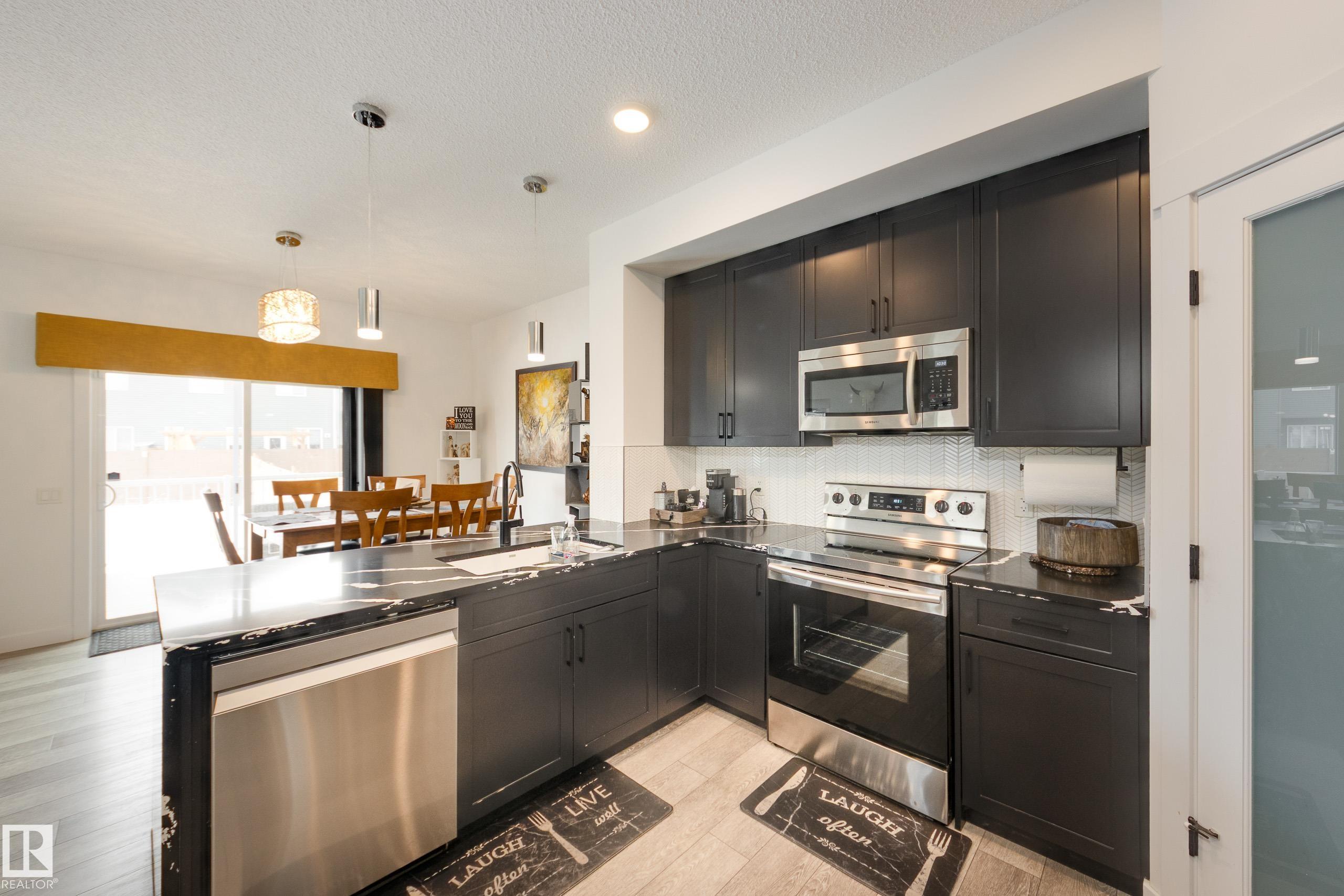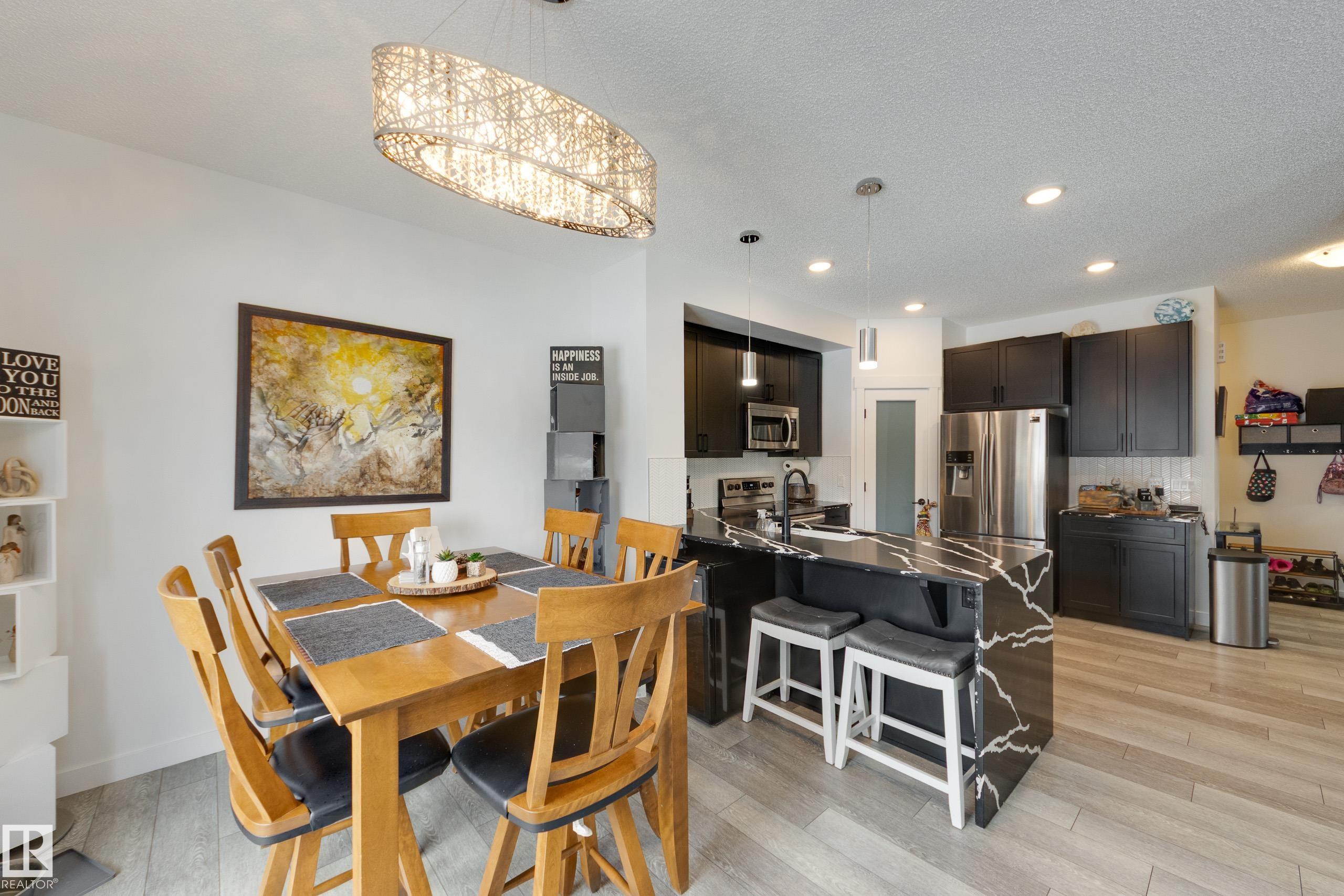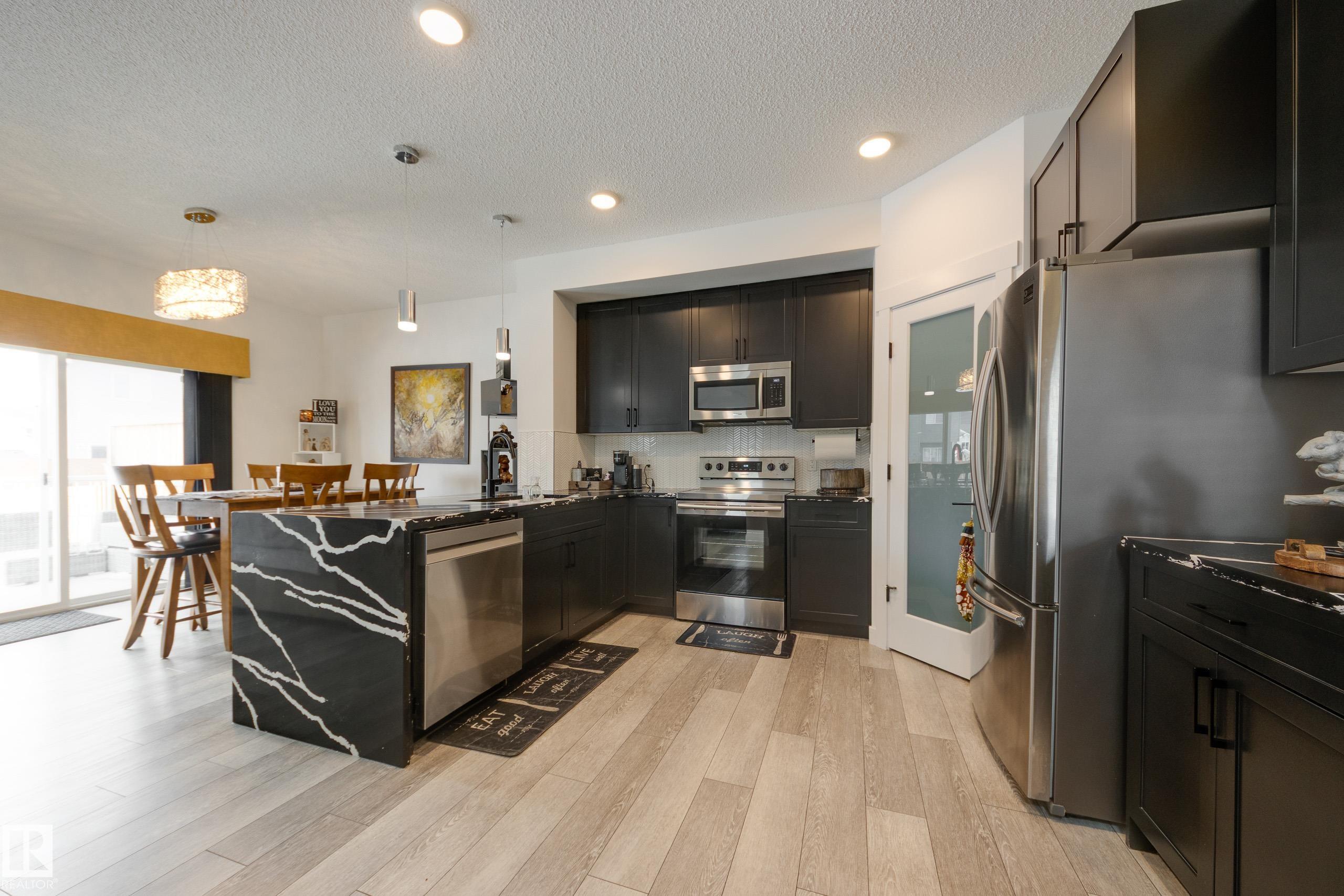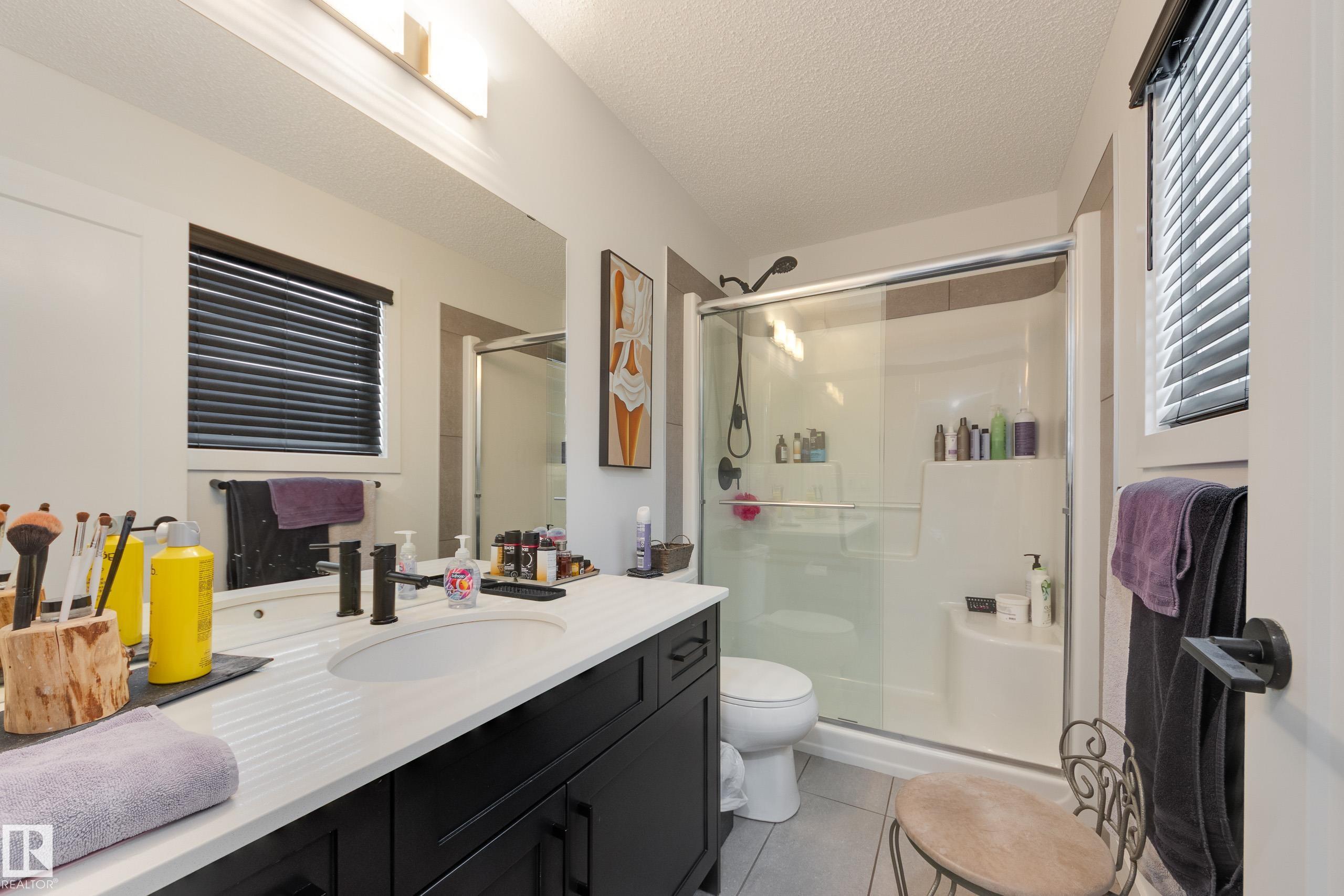 Jensen Lakes beauty on a HUGE lot! Room to roam, perfect location for family and pets. Spacious duplex is a former showhome with fully finished and heated double attached garage that also features epoxy flooring. The main floor has laminate flooring; a huge kitchen with corner pantry and lots of cabinet space and granite counter tops including a showy 'waterfall' edge. Large great room & dining area with doors to the deck and backyard living space. Spindle rail accents the stairs to the second floor - loft area would be perfect reading nook, games area or home office! Large primary bedroom has a walk-in closet and a full ensuite, plus there are two more good sized bedrooms, a second full bath and the laundry is located here. The third bedroom also has a walk-in closet. Downstairs is set up with a large rec room, FOURTH bedroom and a FOURTH bathroom! Lots of extra storage here as well. Wonderful opportunity to live in this amazing family community