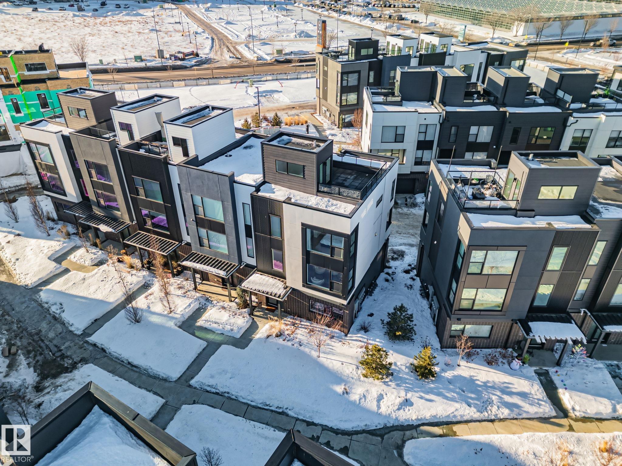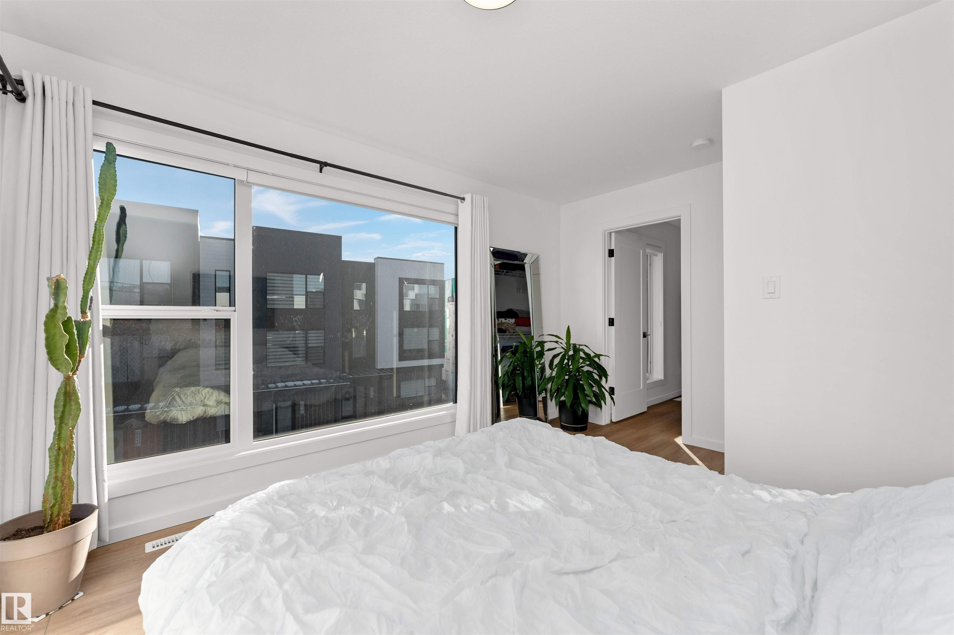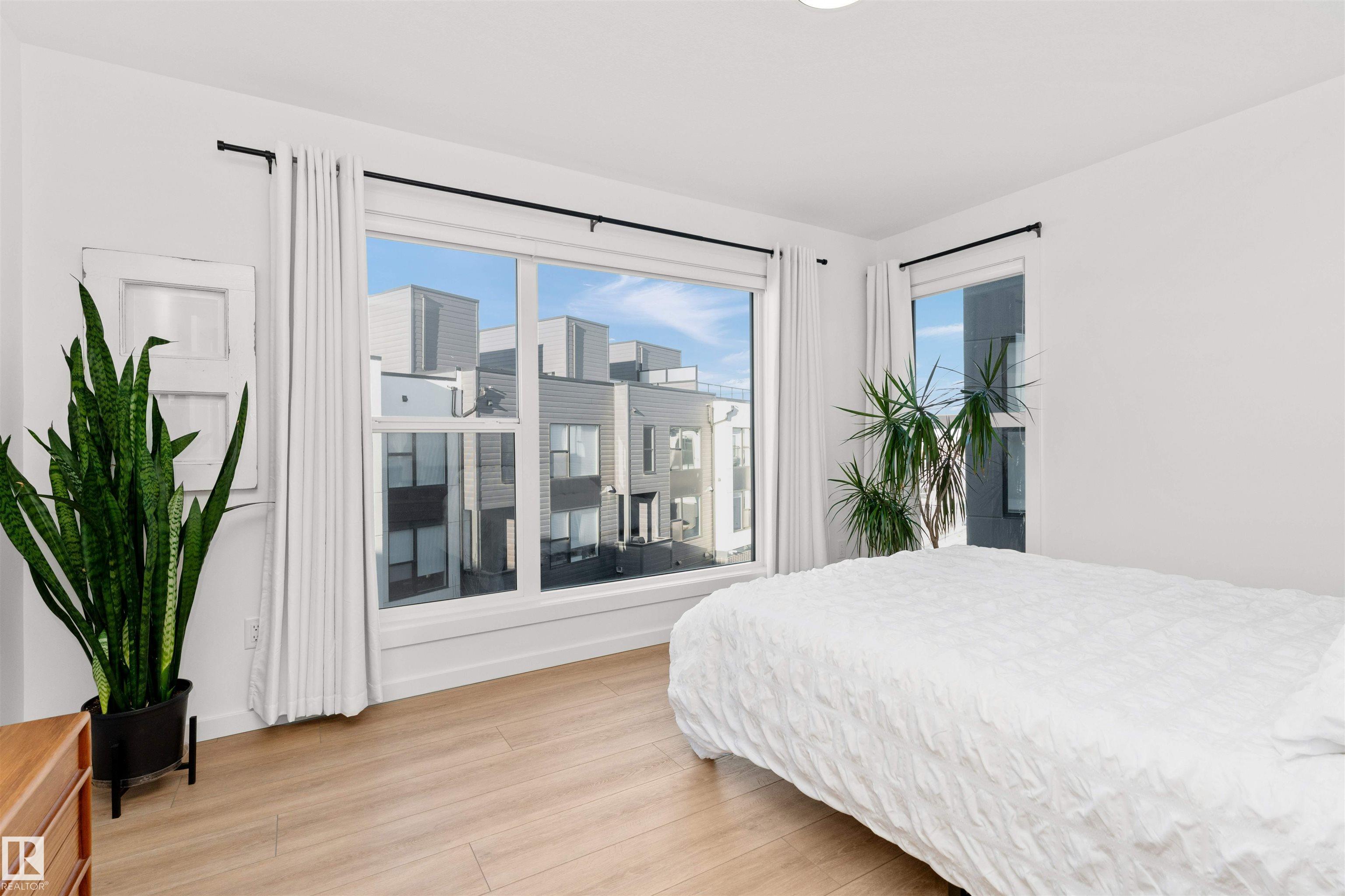 This exceptional end-unit, corner townhome offers 1,775ft2 of contemporary living, thoughtfully designed for those who appreciate elevated finishes & effortless indoor-outdoor living. With 9ft ceilings & expansive windows the main level is flooded w/ natural light, creating a sophisticated & inviting atmosphere. At the centre of the home is a chef-inspired kitchen, full-depth custom cabinetry with open shelving, quartz counters, outdoor deck & upgraded LG Smart appliances. An open-concept layout flows into the dining & living areas, enhanced by luxury vinyl plank flooring that offers both elegance & durability. The upper level is a private retreat, offering two large bedrooms & upgraded full-size laundry room. The ground floor is a versatile flex space provides the perfect setting for home office or fitness studio. Addt. upgrades include central AC & custom blackout & privacy blinds. With west-facing exposure, the oversized rooftop patio is a true showpiece. Welcome to a truly maintenance-free lifestyle.