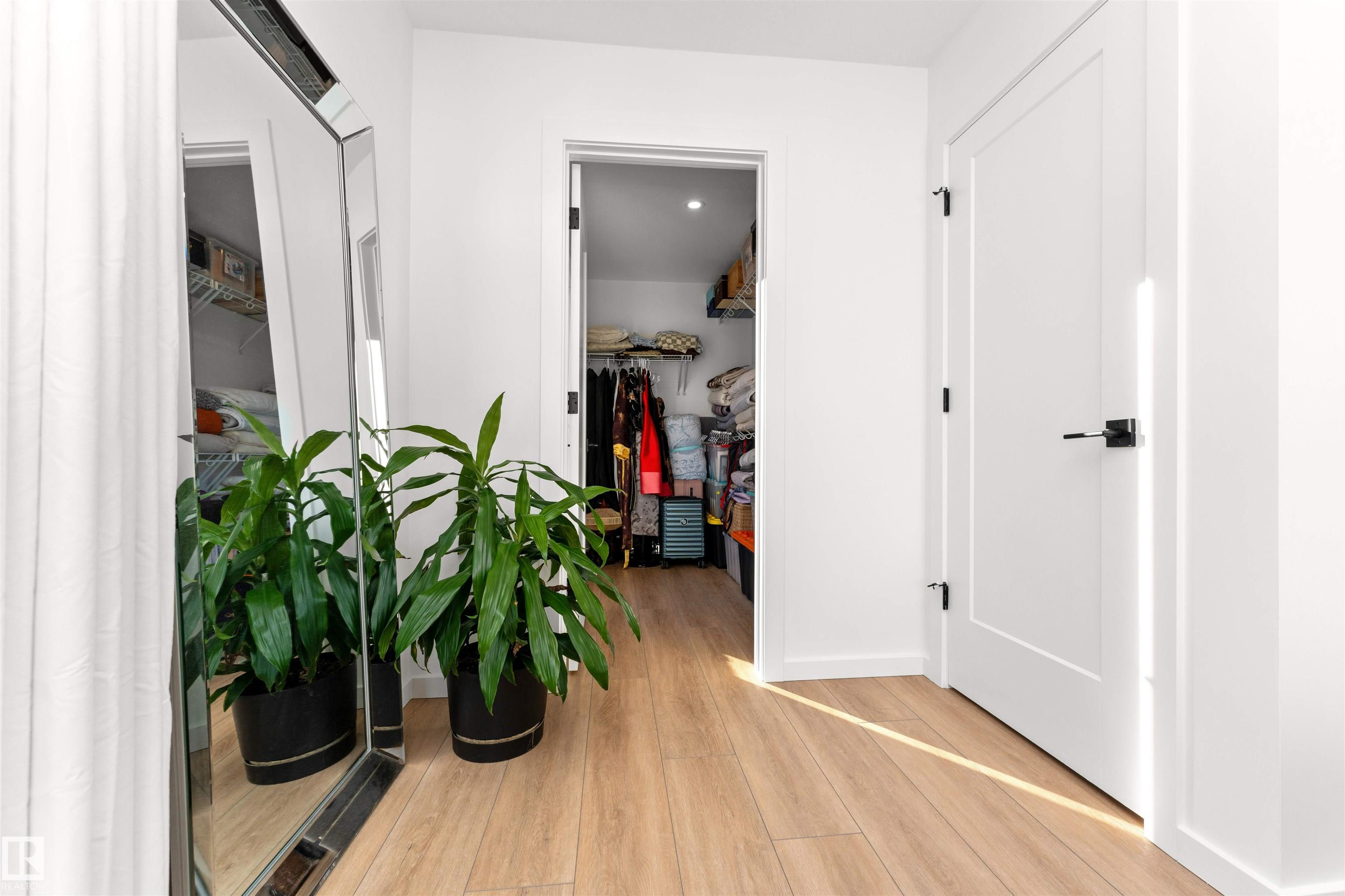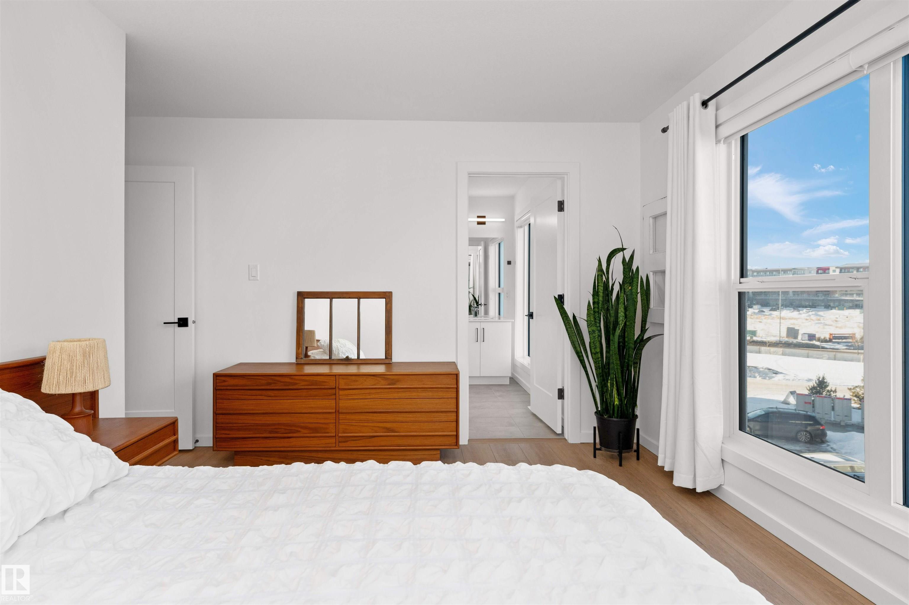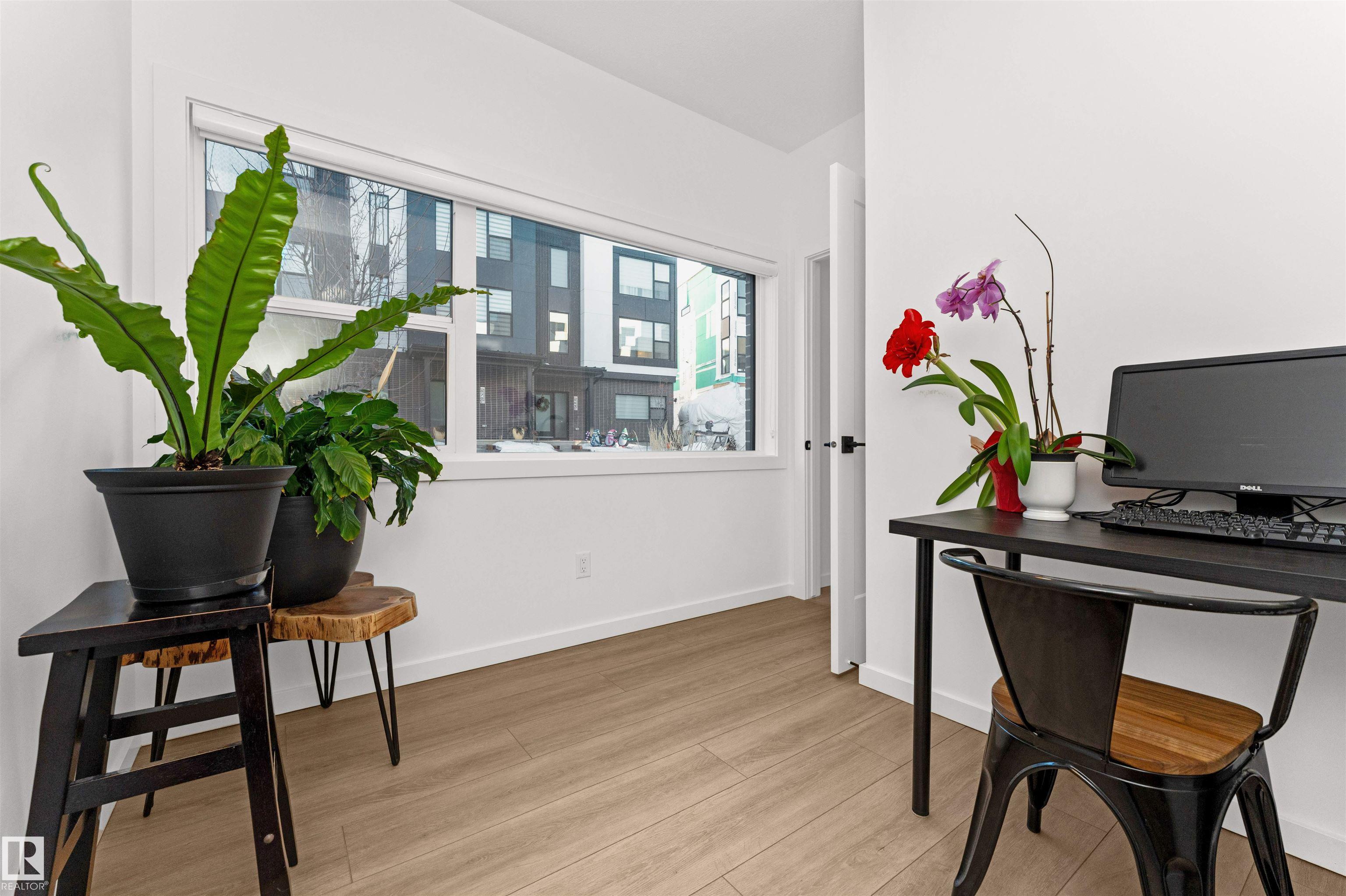 This exceptional end-unit, corner townhome offers 1,775ft2 of contemporary living, thoughtfully designed for those who appreciate elevated finishes & effortless indoor-outdoor living. With 9ft ceilings & expansive windows the main level is flooded w/ natural light, creating a sophisticated & inviting atmosphere. At the centre of the home is a chef-inspired kitchen, full-depth custom cabinetry with open shelving, quartz counters, outdoor deck & upgraded LG Smart appliances. An open-concept layout flows into the dining & living areas, enhanced by luxury vinyl plank flooring that offers both elegance & durability. The upper level is a private retreat, offering two large bedrooms & upgraded full-size laundry room. The ground floor is a versatile flex space provides the perfect setting for home office or fitness studio. Addt. upgrades include central AC & custom blackout & privacy blinds. With west-facing exposure, the oversized rooftop patio is a true showpiece. Welcome to a truly maintenance-free lifestyle.
