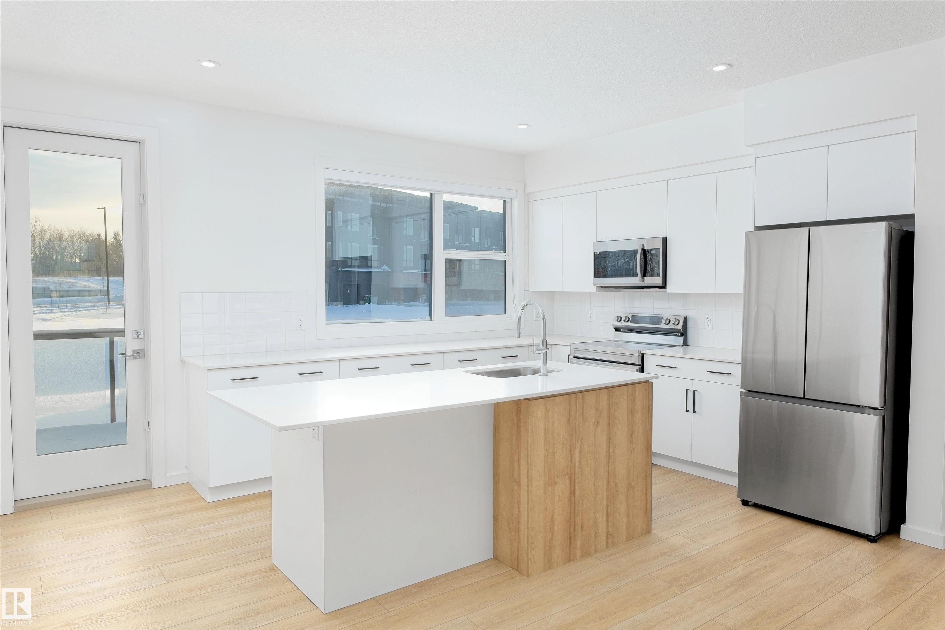 Experience low-maintenance modern living in this beautifully designed end-unit townhome backing onto an expansive greenway walking trail, ideally located in one of St. Albert's most sought-after communities. Thoughtfully crafted for comfort and style, the open-concept main floor welcomes you with abundant natural light and an upgraded kitchen featuring sleek cabinetry, stainless steel appliances, and ample counter space. Upstairs, the spacious primary suite offers a private ensuite and generous closet space, while the second bedroom and full bath provide versatility for guests or a home office. Enjoy year-round comfort with central A/C, a double attached garage, and an end-unit position that offers additional light and privacy. Surrounded by parks, schools, and everyday amenities, this home blends modern design with low-maintenance living in a prime St. Albert setting. This low-maintenance condo is a great option for investors or homeowners alike!